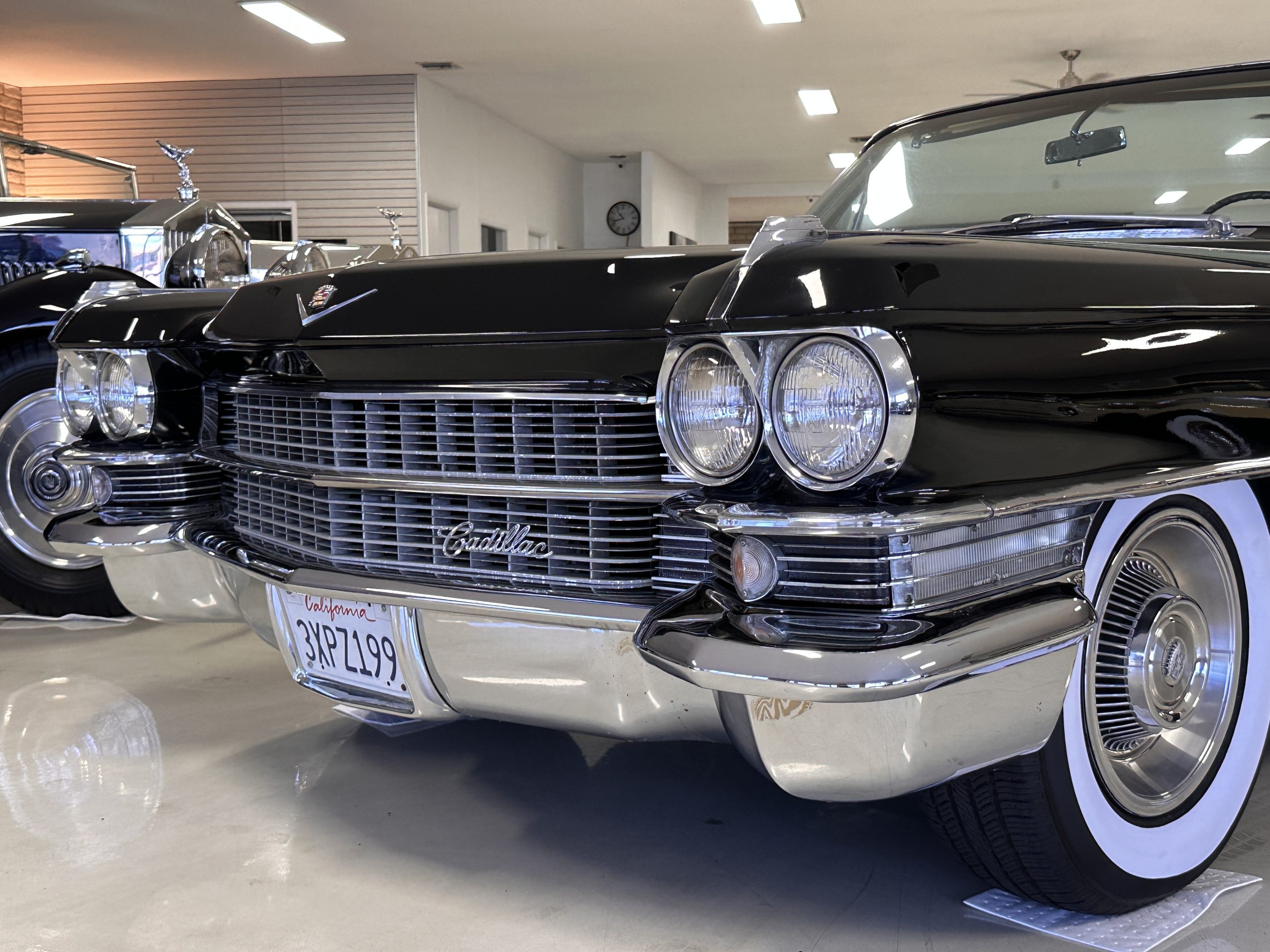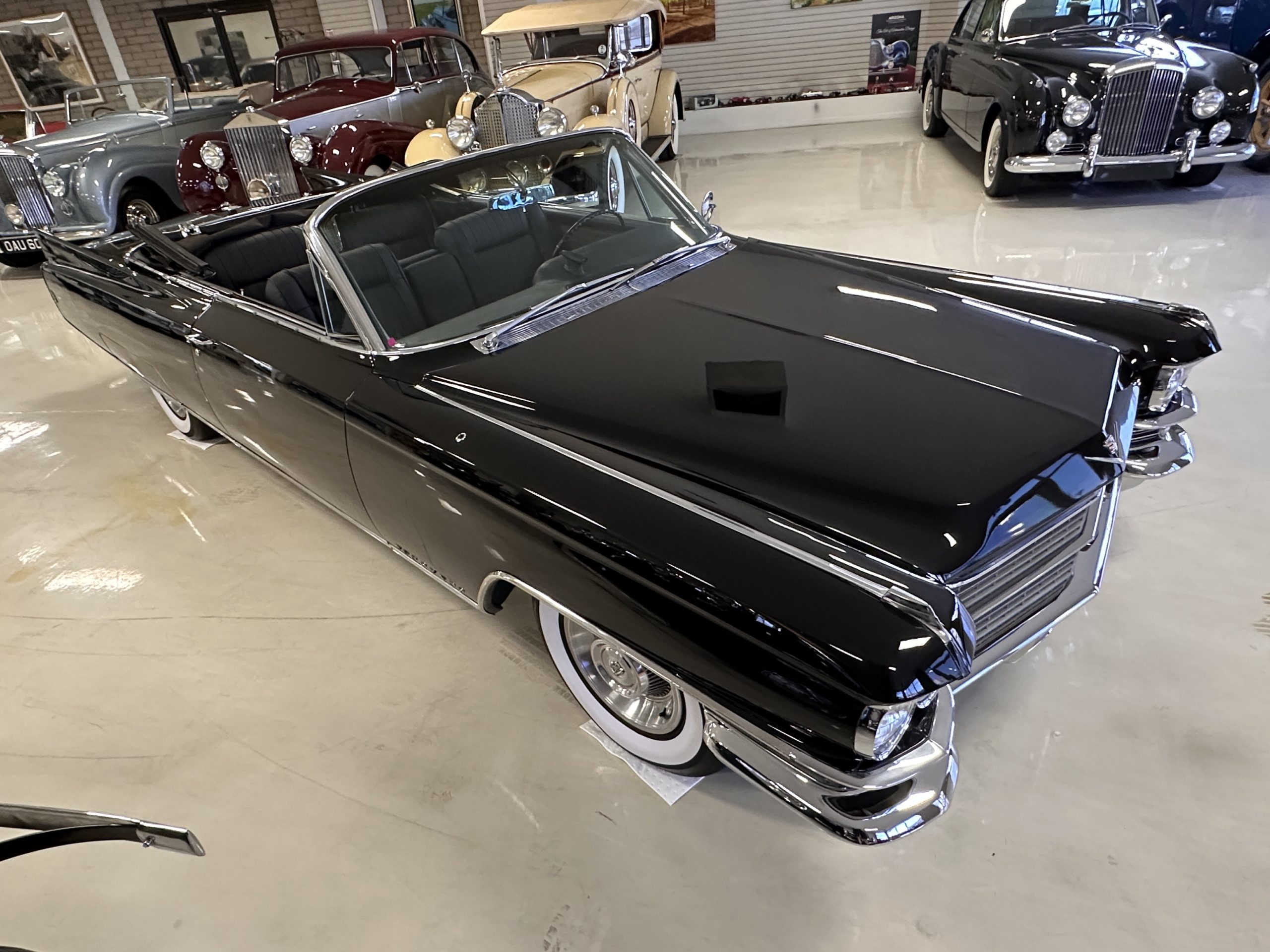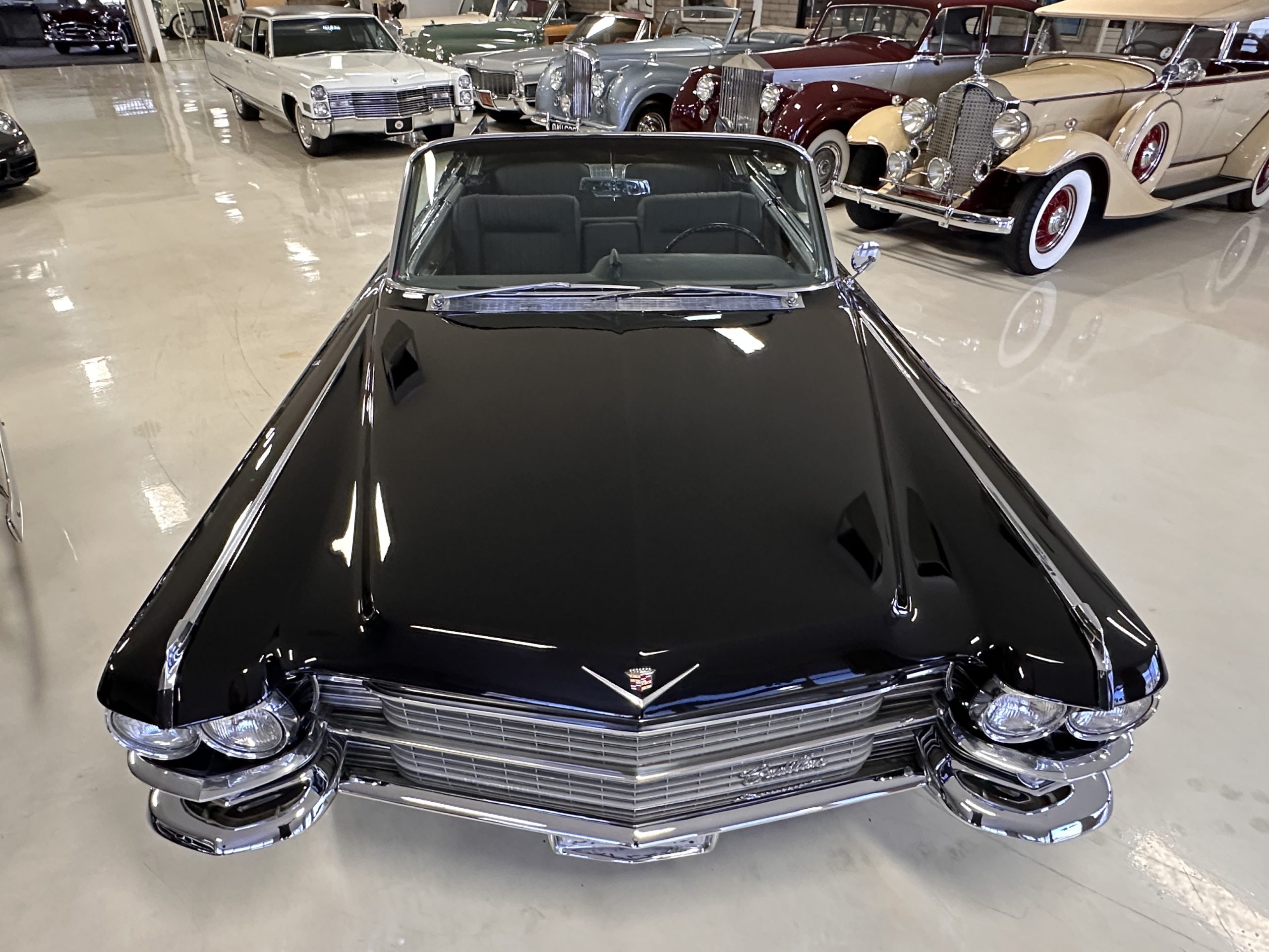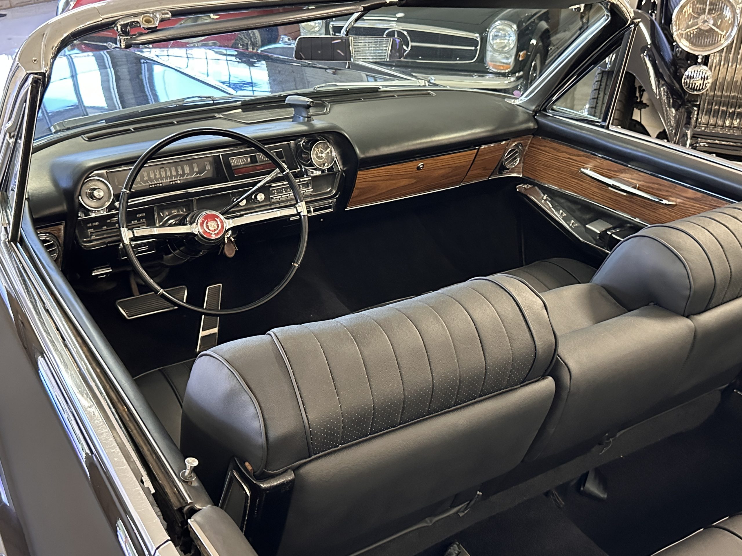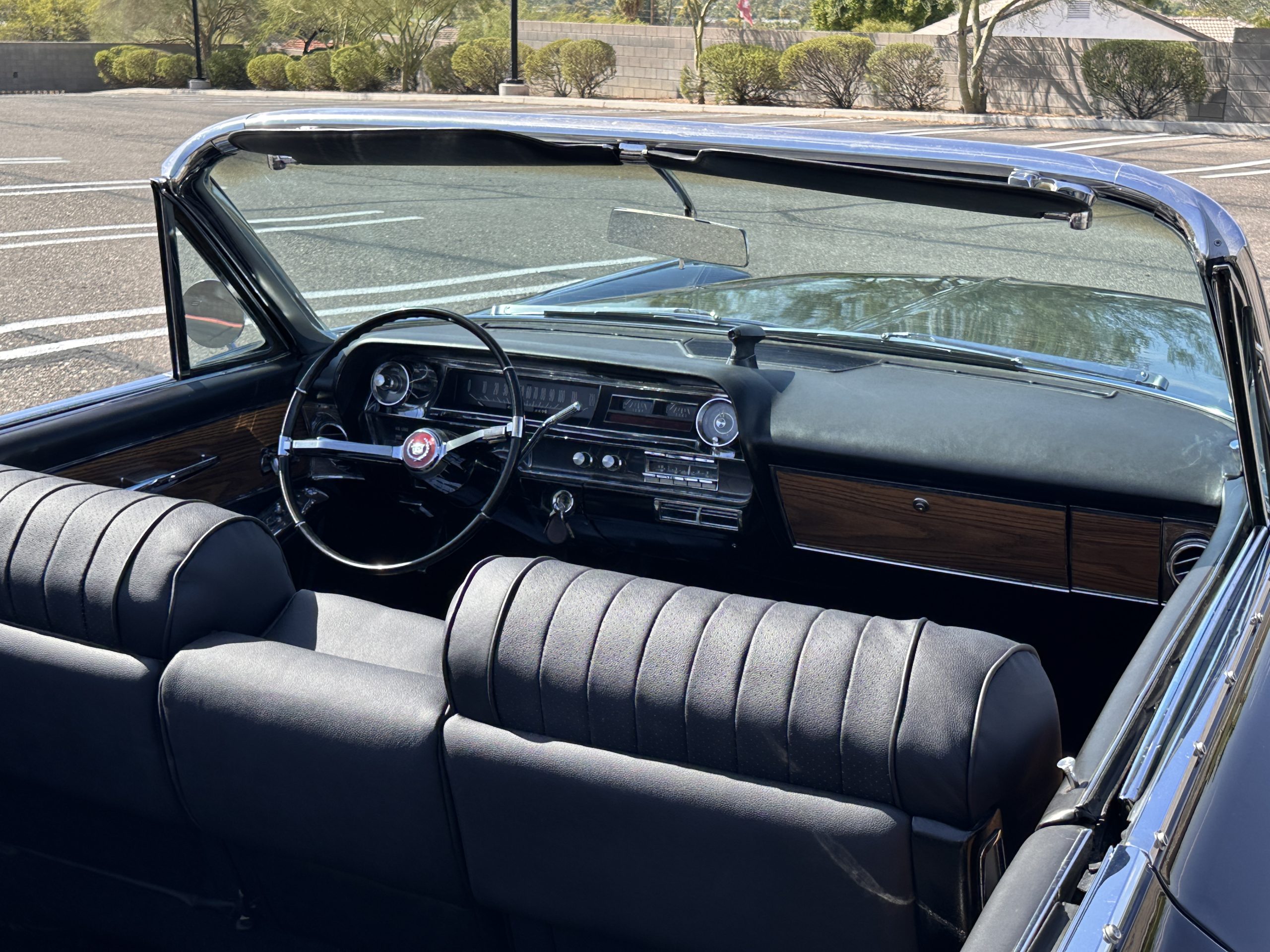 HISTORY OF THIS ELDORADO: According to the factory build records, this Eldorado Biarritz was built on March 4th, 1963, and delivered new to the Los Angeles W Seventh Street Branch (Outlet Code 811910). Still retaining its original engine number 089852 (build records matches present engine). Build records and the Trim Tag show original Ebony Black paint, black convertible top and black leather interior.