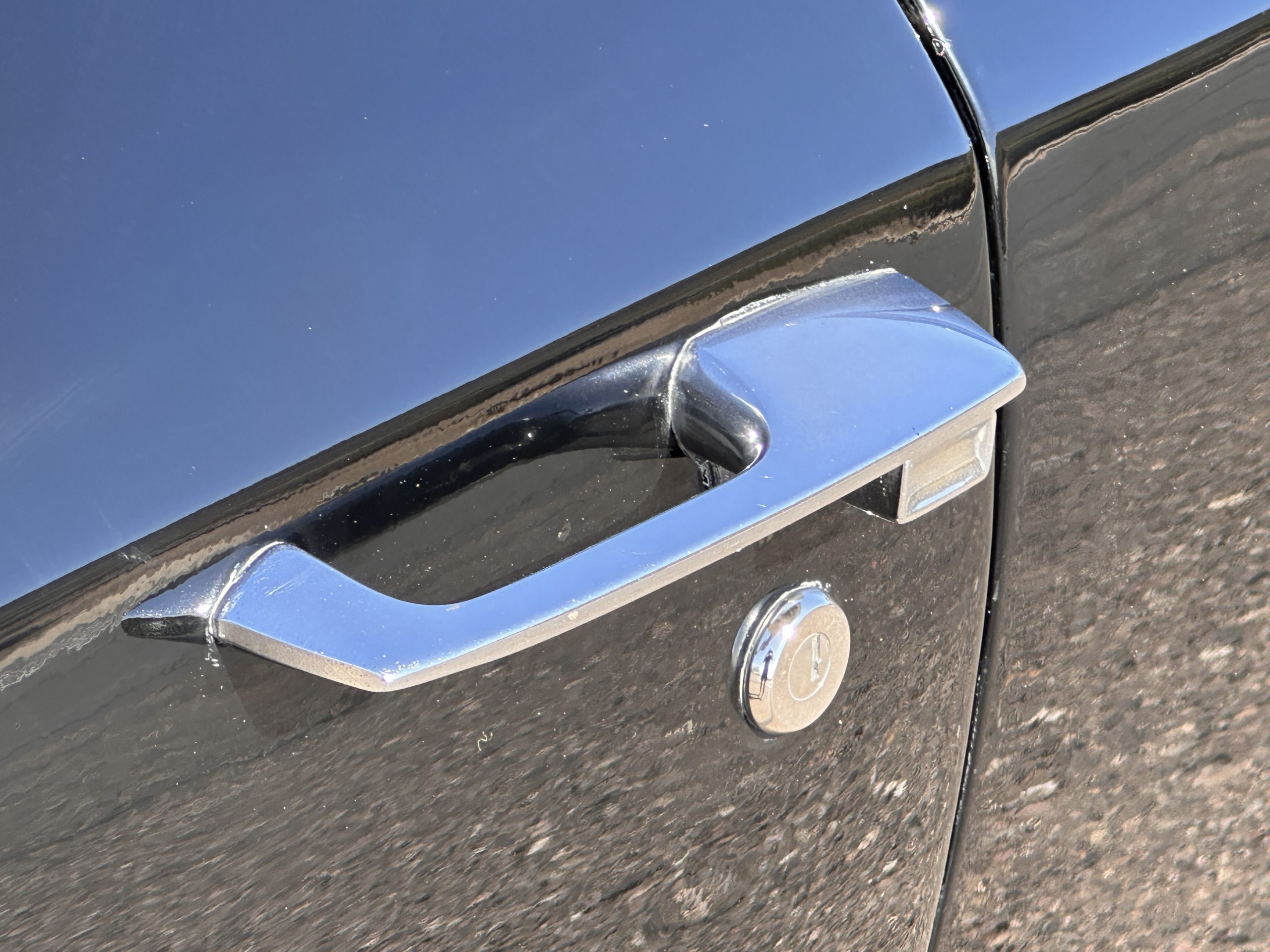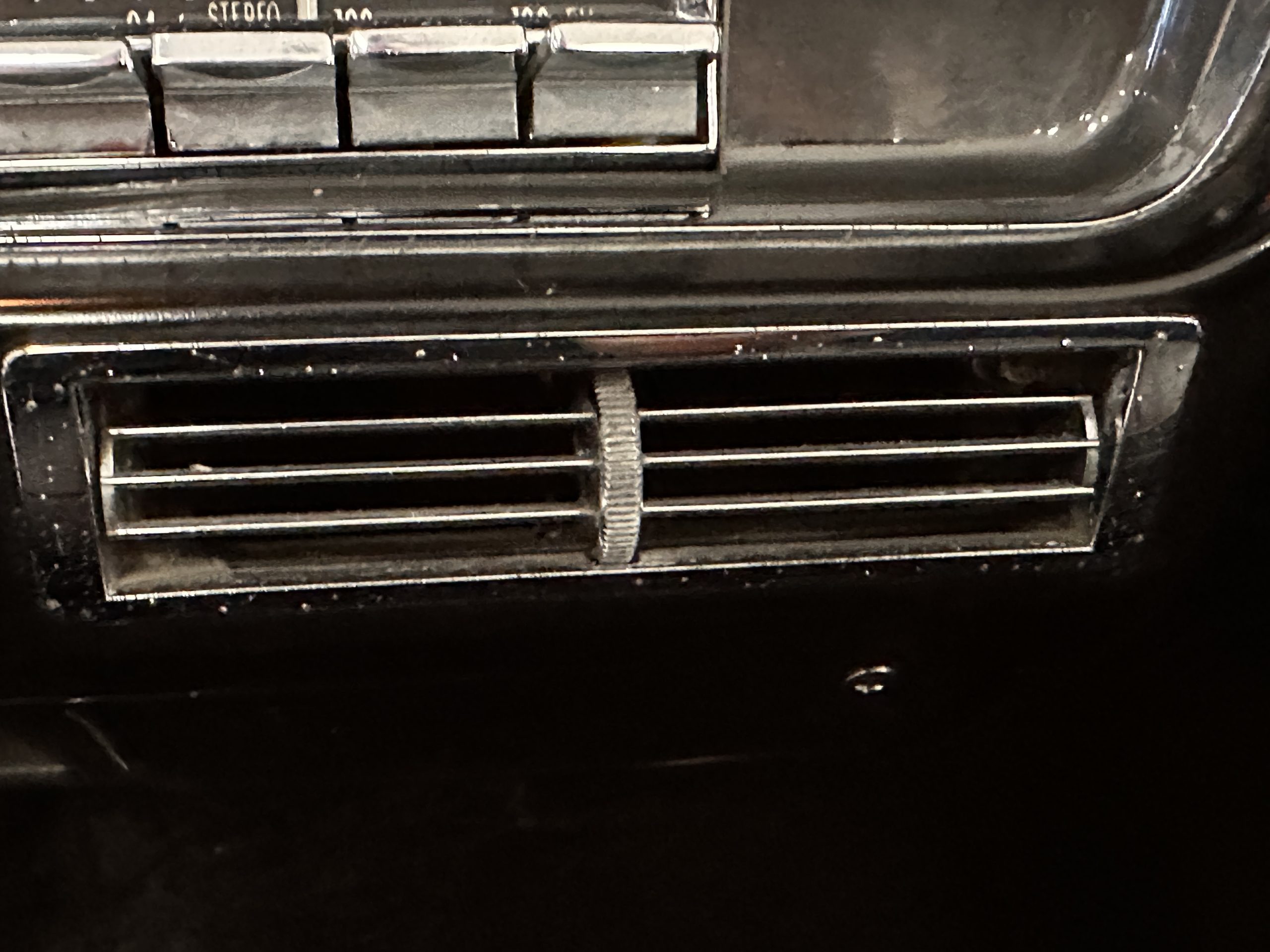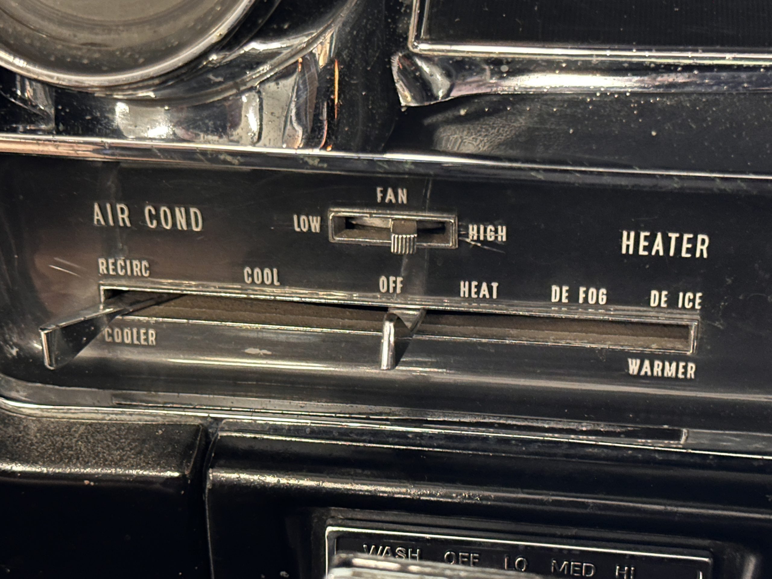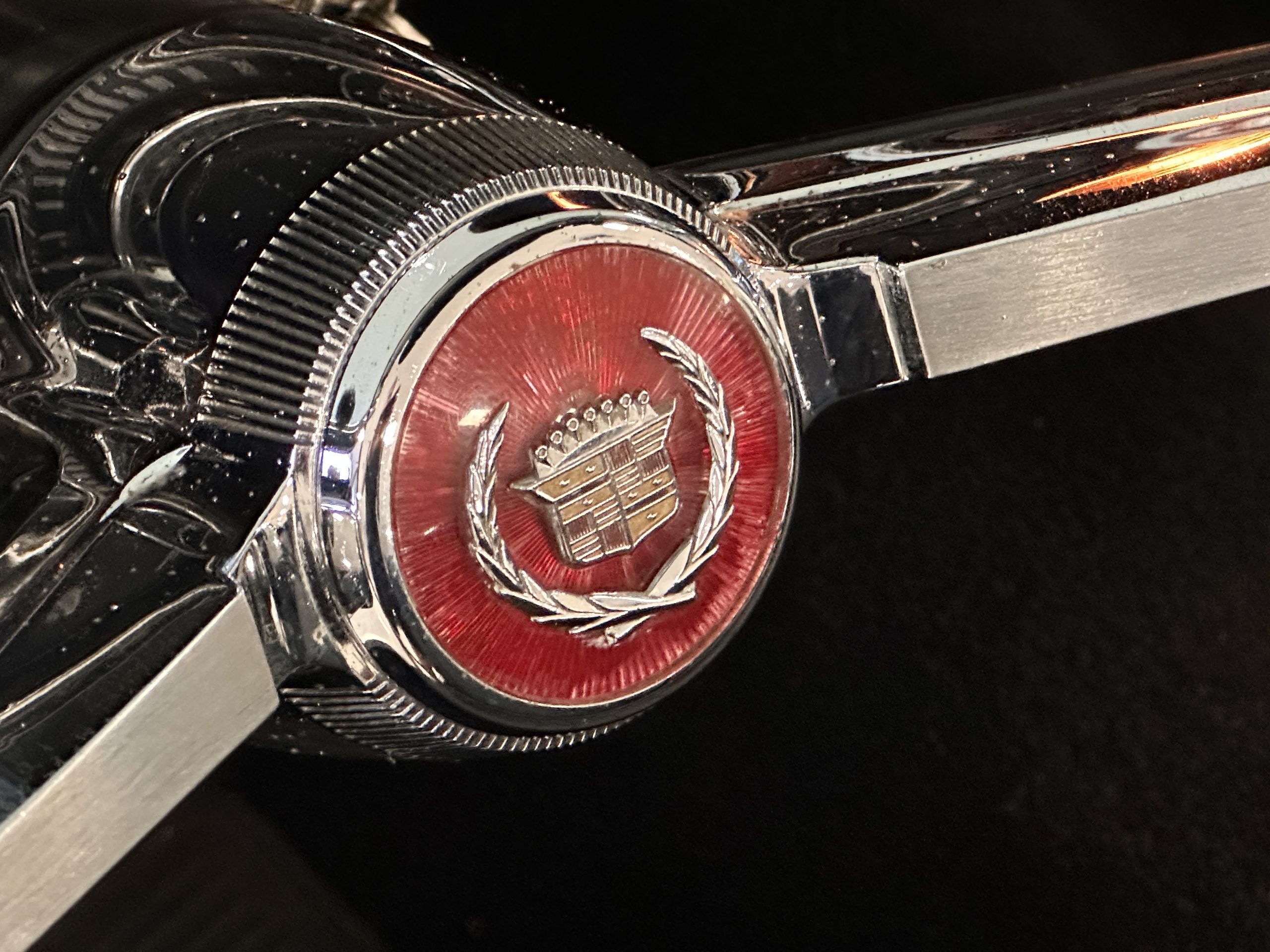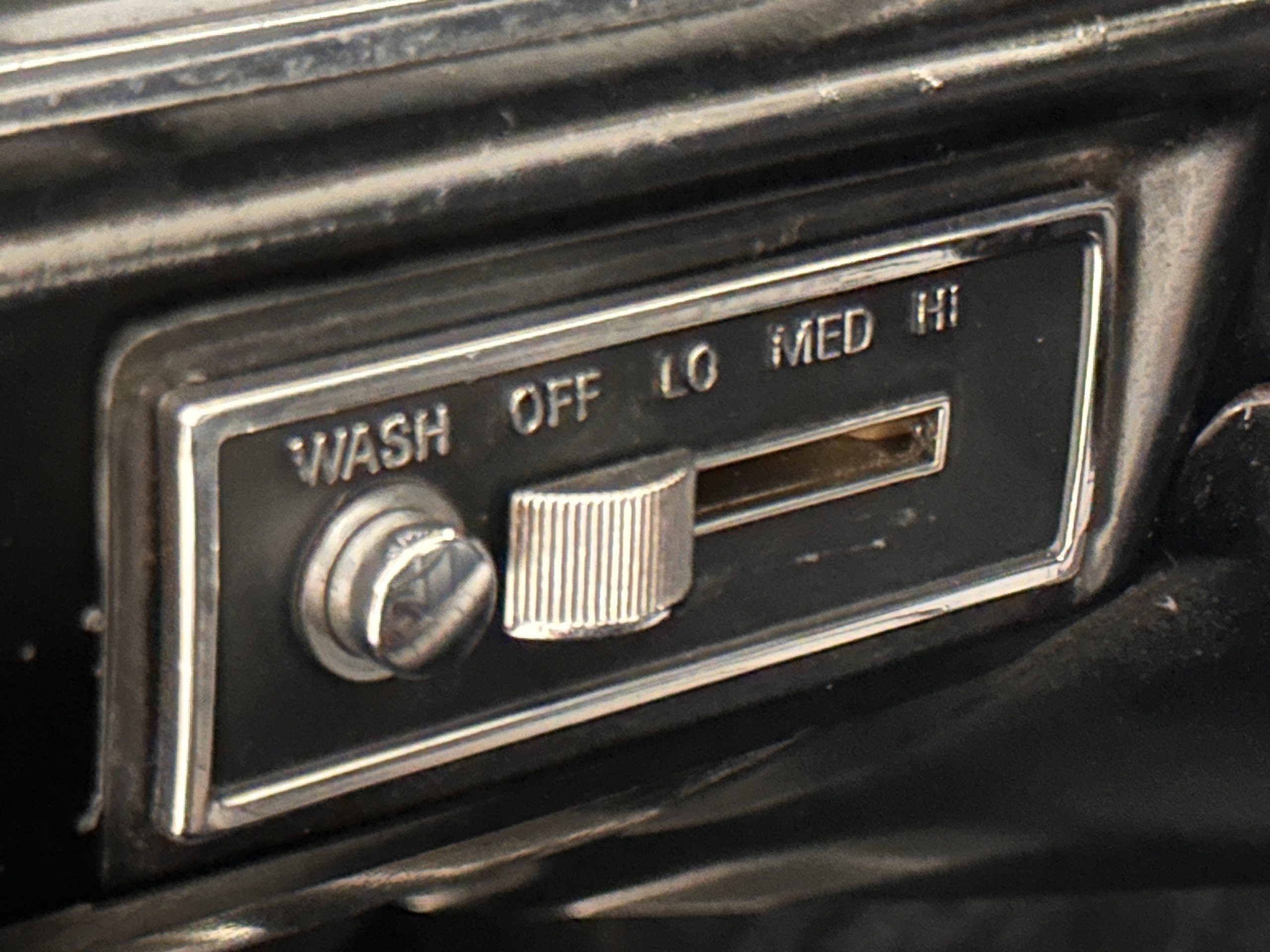 The Ebony Black livery has been beautifully wet sanded and polished. The shine and luster are fabulous. Much of the chrome has been replated over the years and is overall in good condition. The rear bumper has a couple of dings and the rear taillight surrounds have some pitting, but the overall presentation of the Eldorado is beautiful. The Black vinyl power convertible top looks as new and works perfectly (the black vinyl top boot cover is original and has shrunk, no longer fitting properly). The wide white walled radials are new and look great.