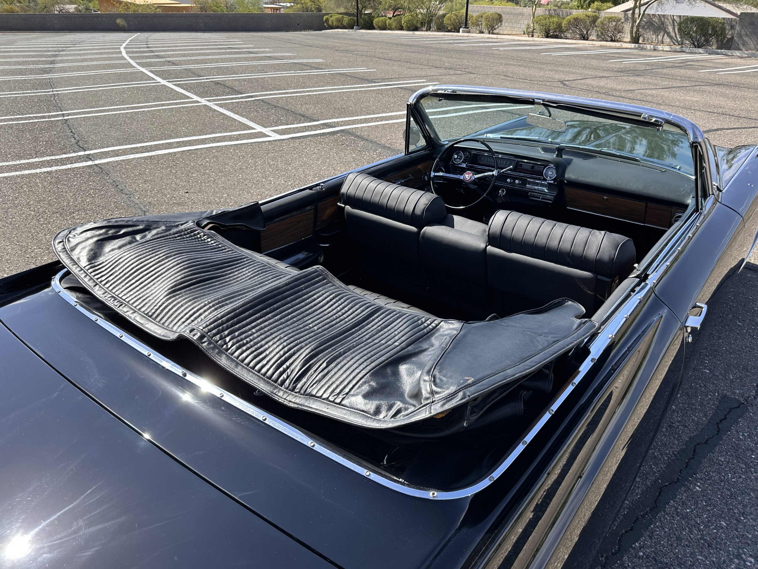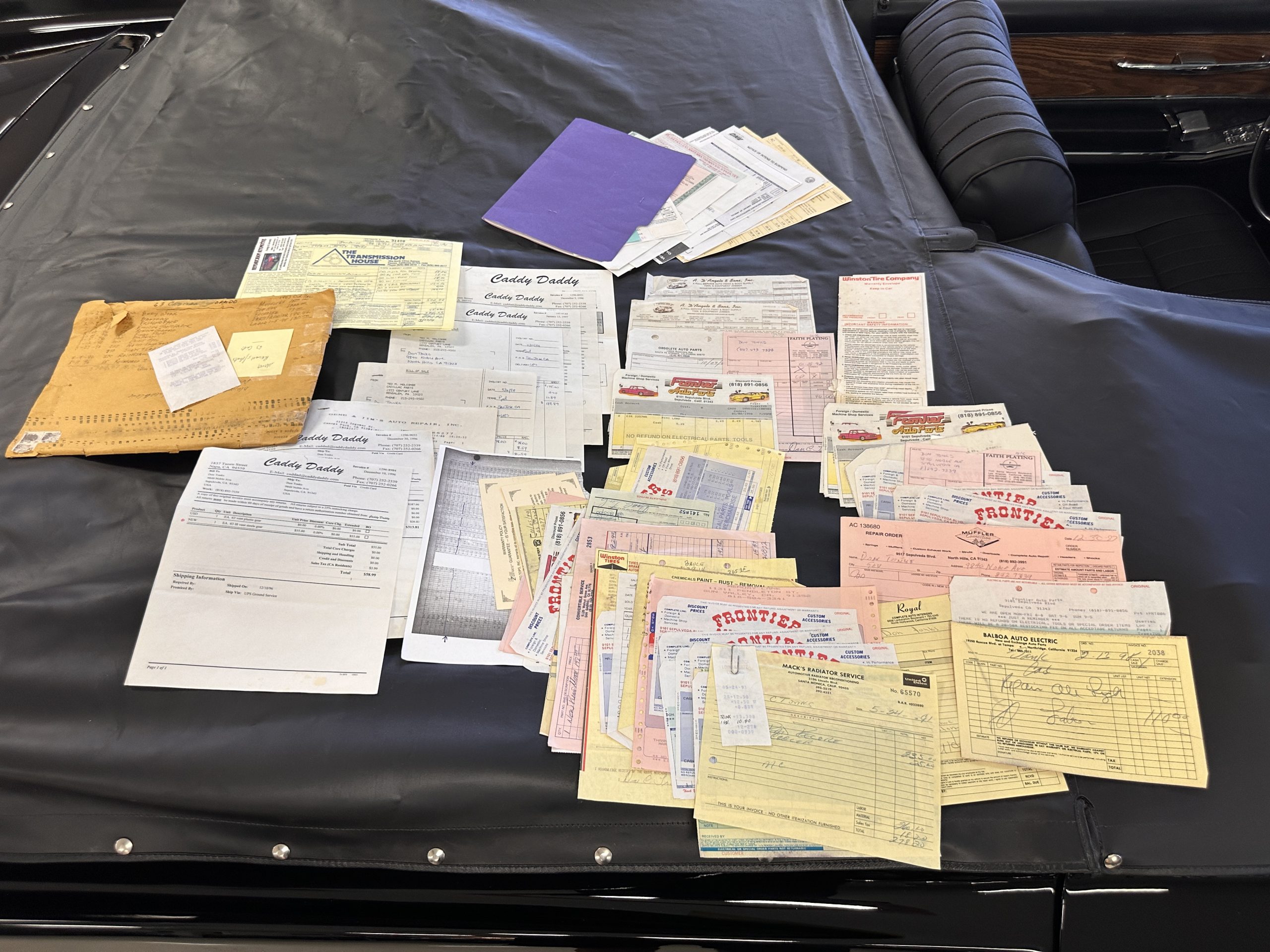 This Eldorado comes complete with 33 years worth of restoration and service records, California registrations, old bills of sale and more. Also included is a black vinyl custom fitted tonneau cover that covers the interior completely.