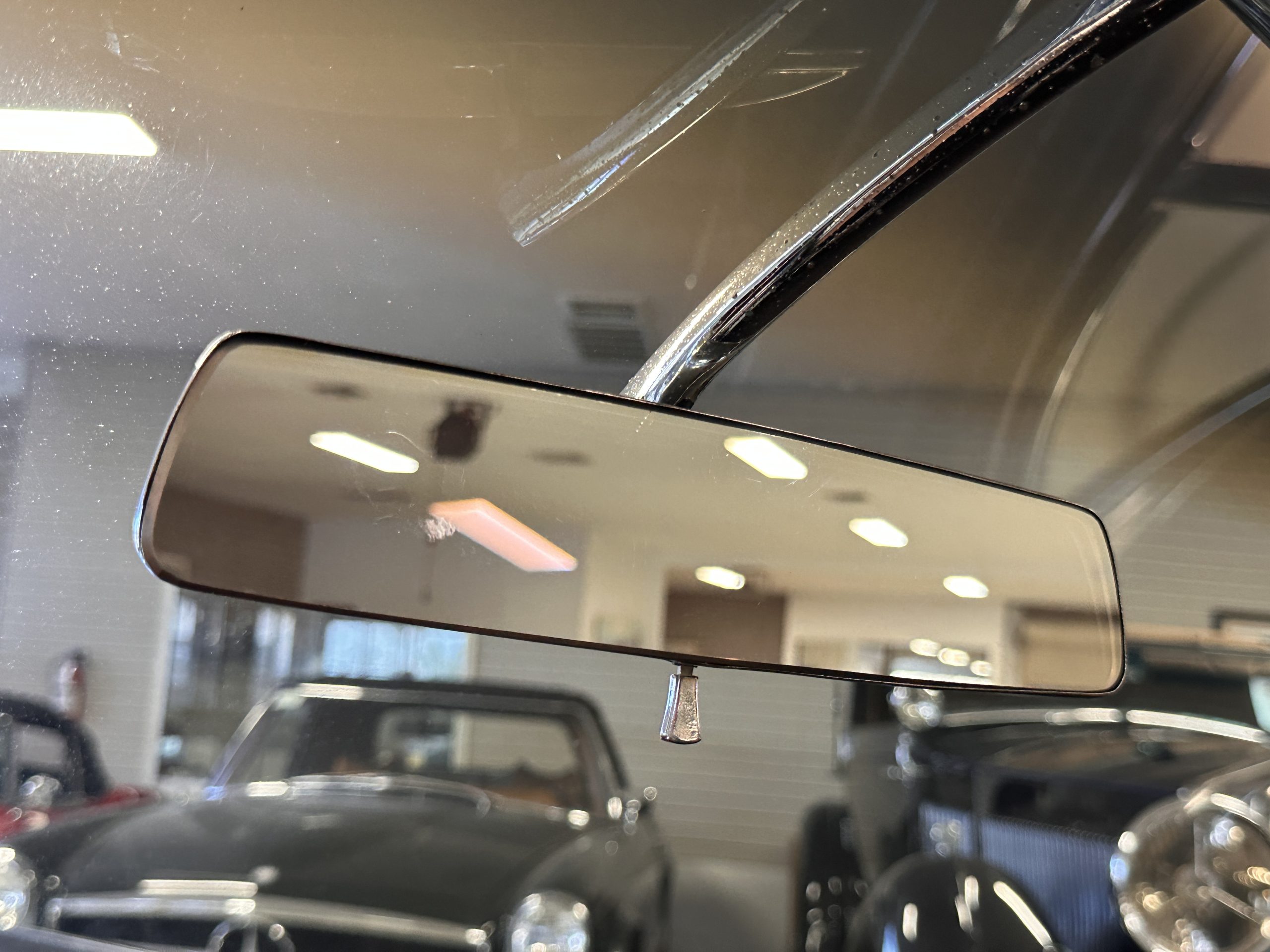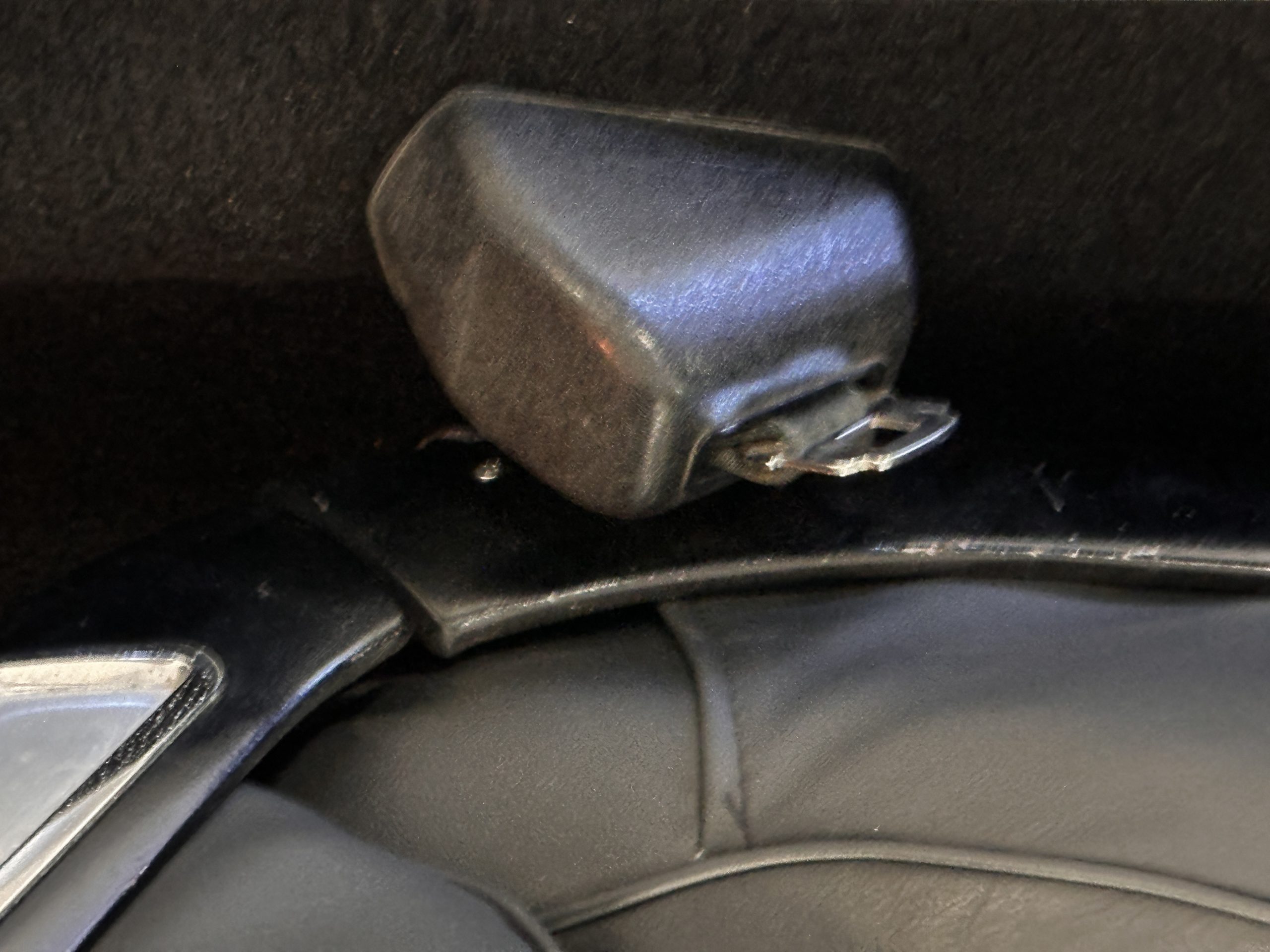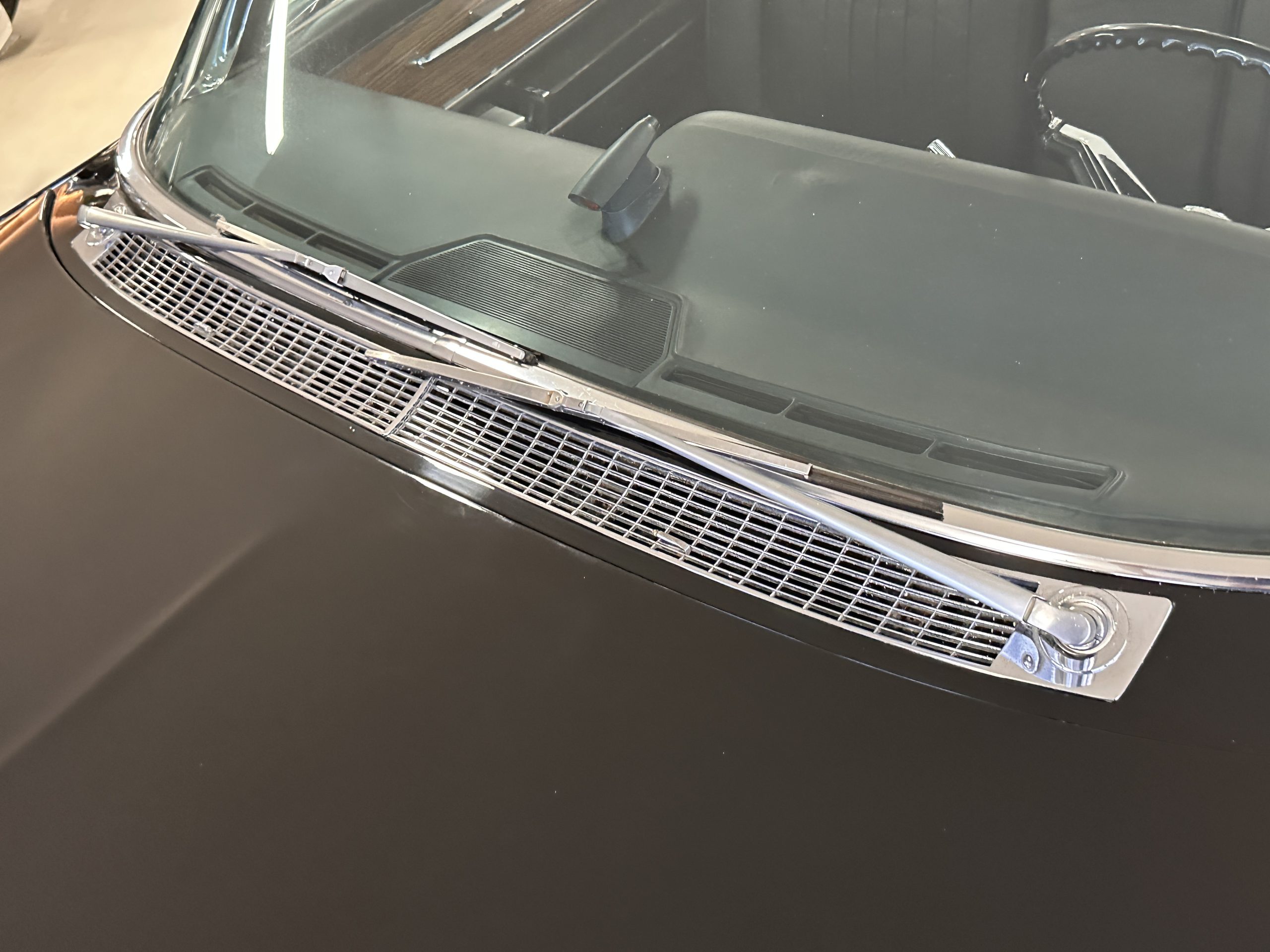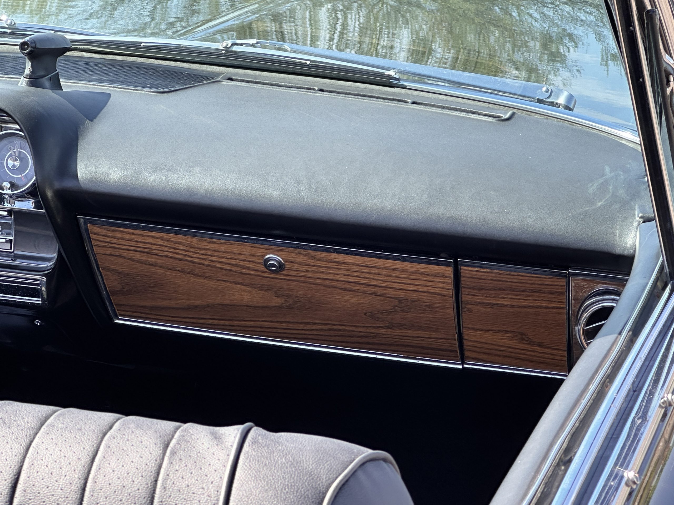 The interior has new black leather in the correct style and the seats have been rebuilt to provide original support. The black carpeting was replaced earlier and looks great. The wood veneer is in overall very good condition and is correct and original. There are no cracks in the steering wheel nor on the dashboard cap. The AM/FM stereo and power antenna work well and the air condition also blows nice and cold. The interior also features tilt steering wheel, power door locks, power windows and front seat as well as a remote truck opener. Overall, the interior looks very sharp and is correct.
