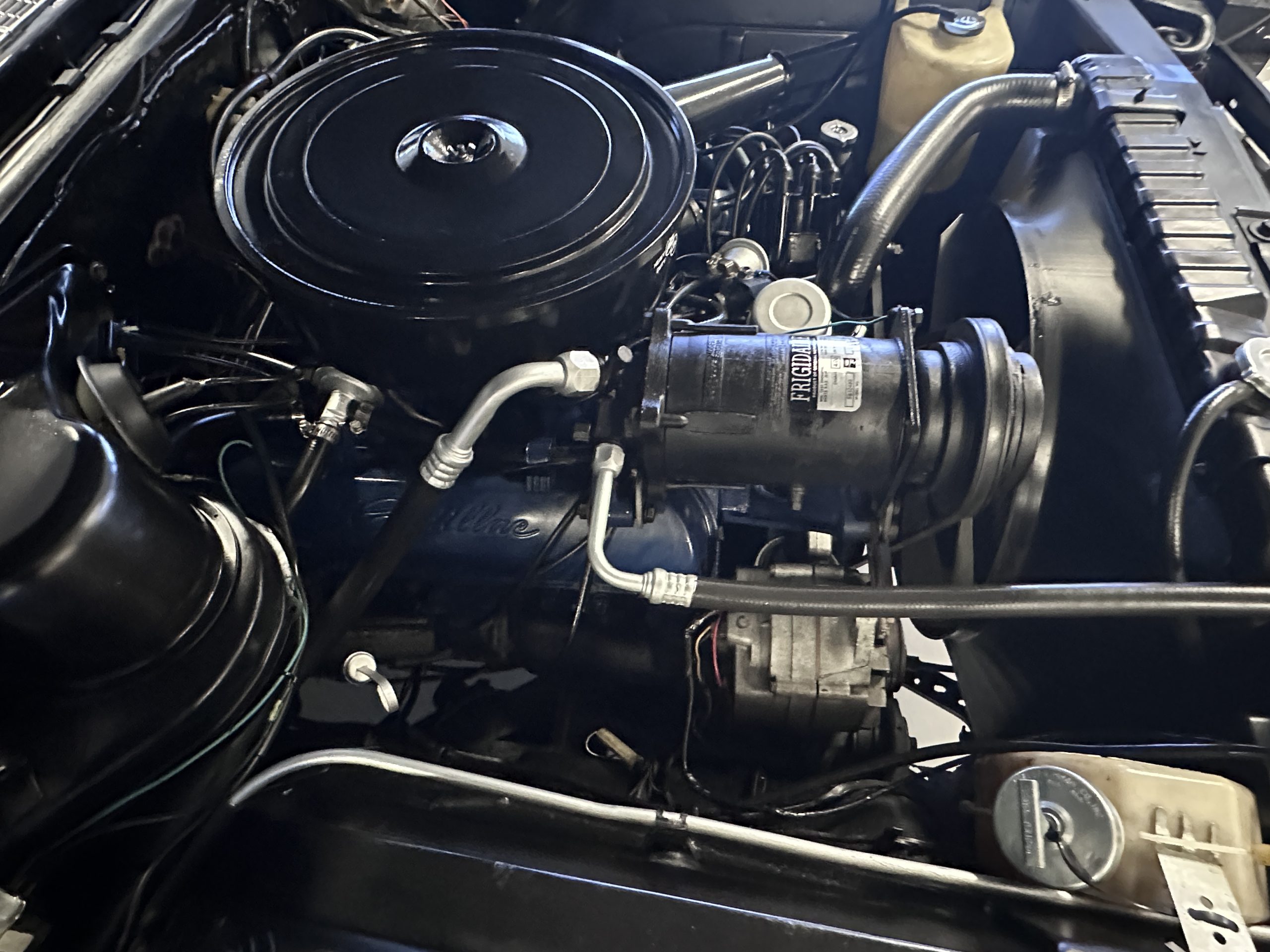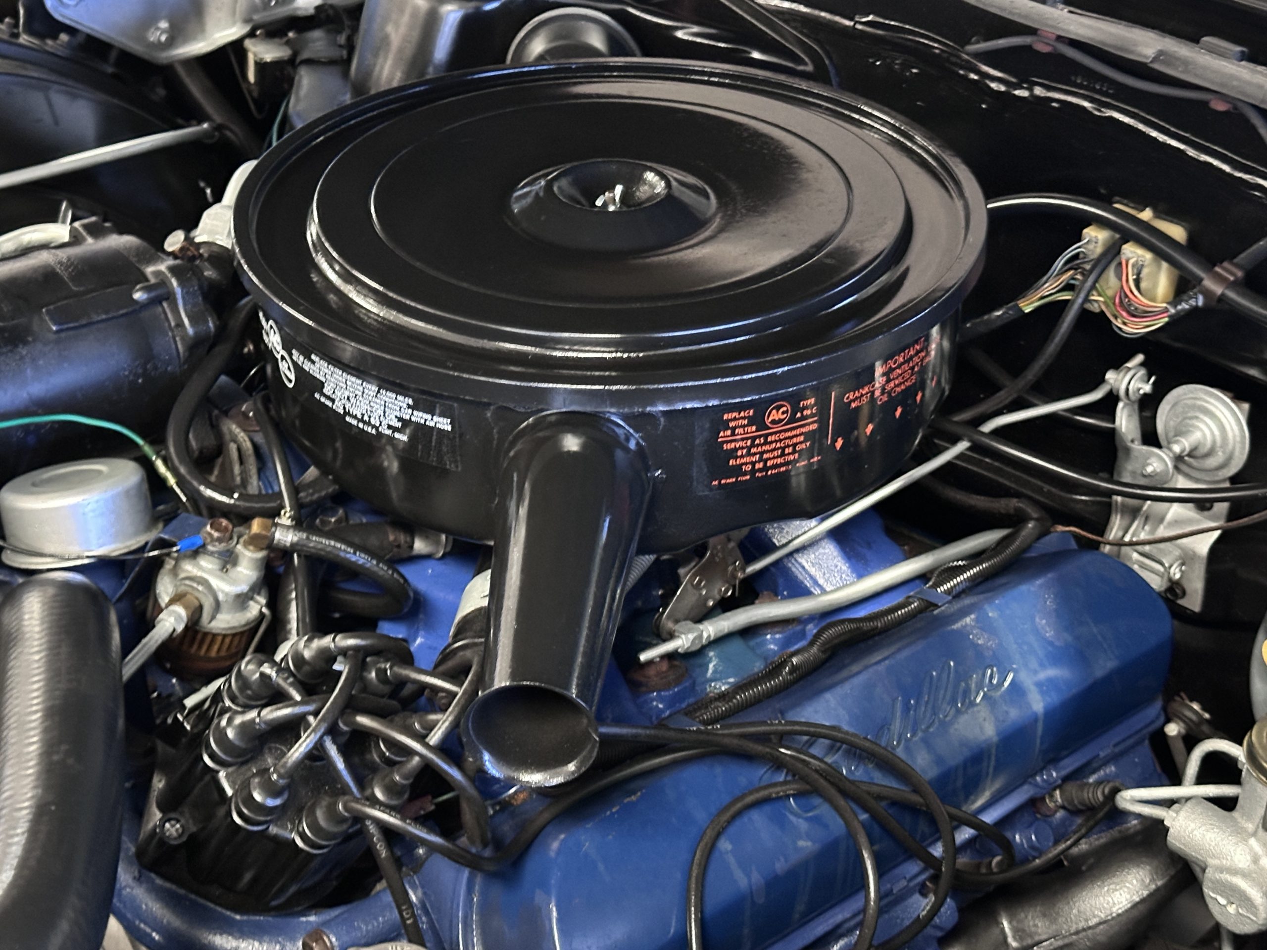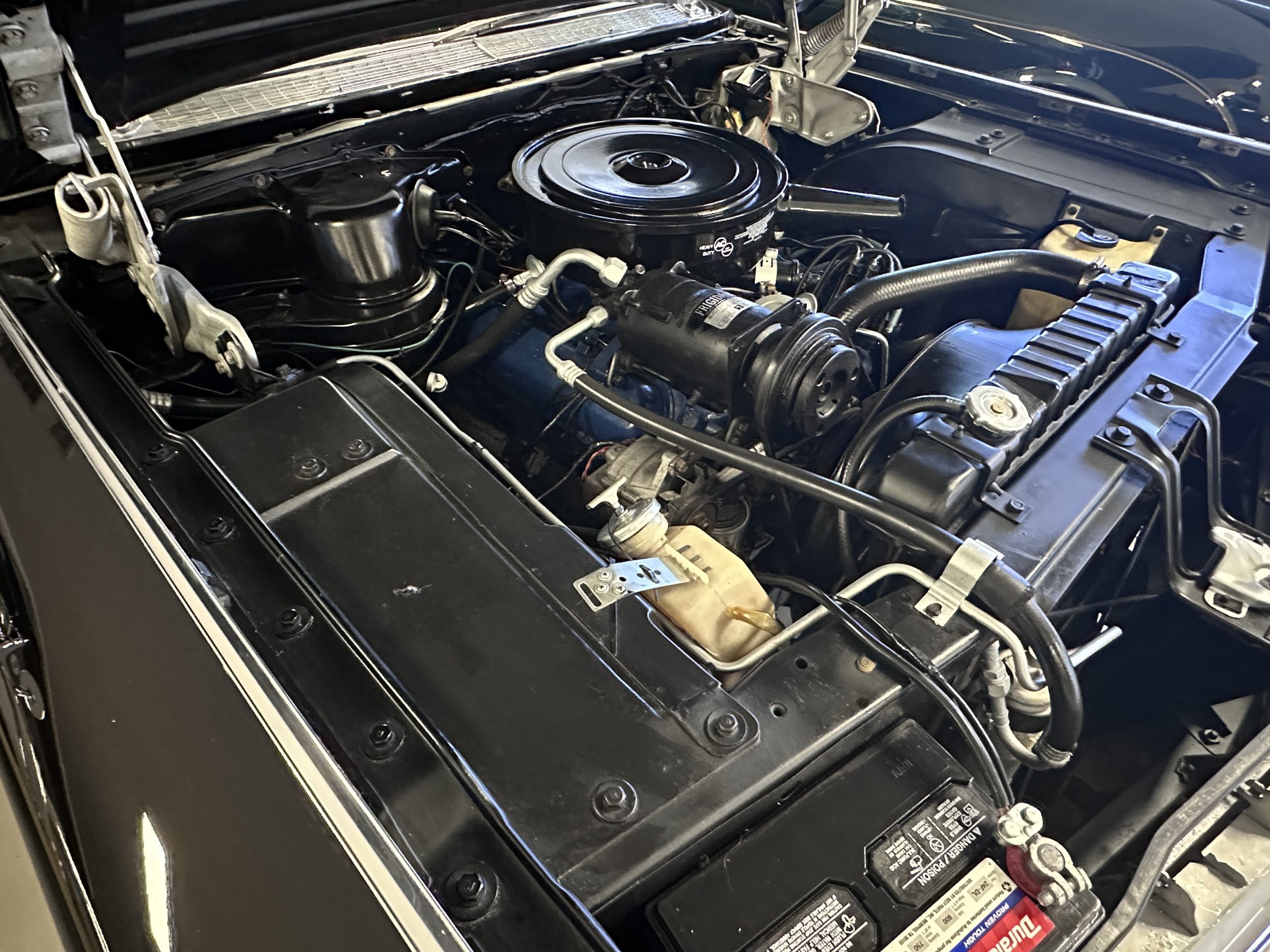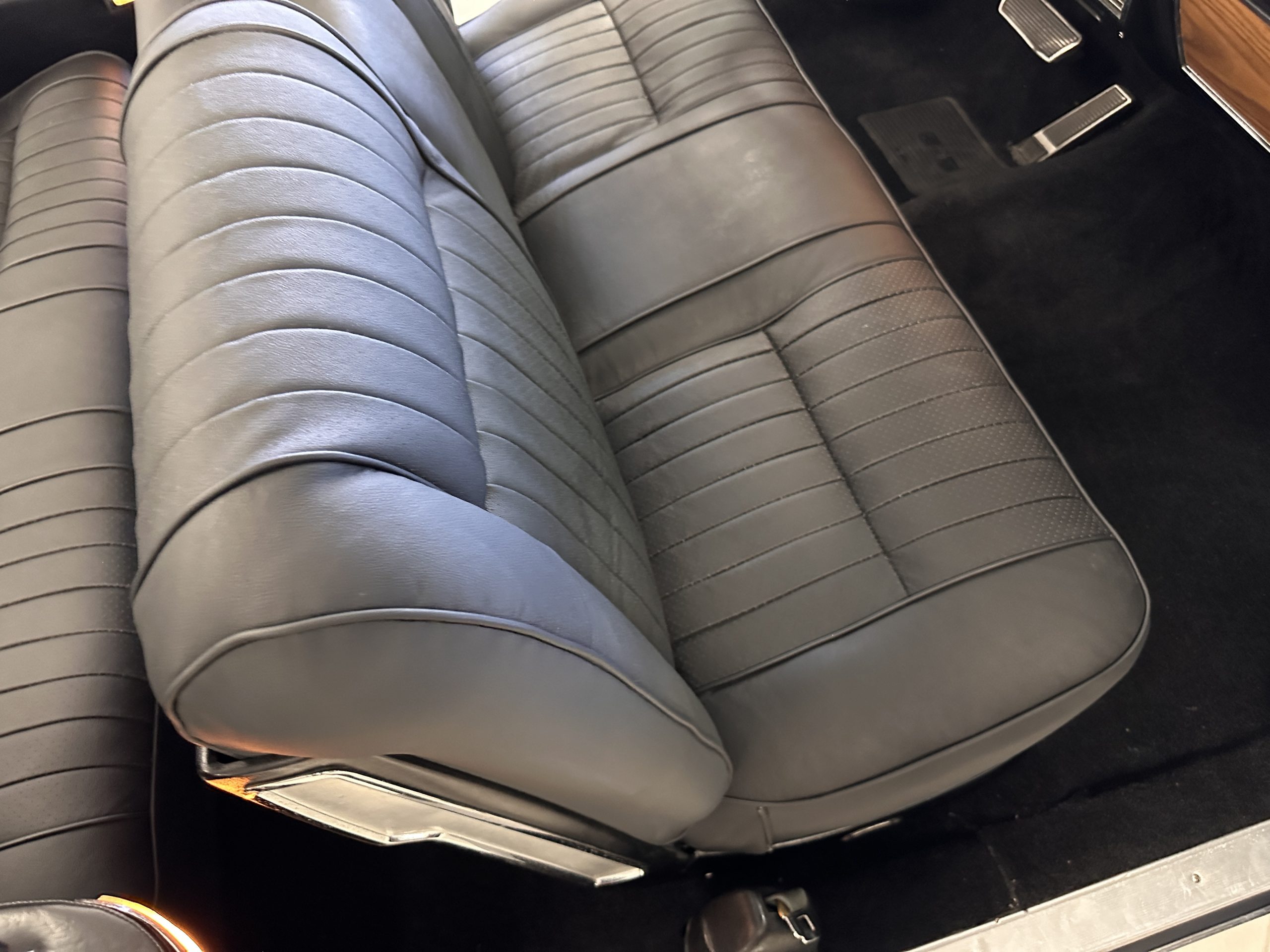 Work performed June through August 2024 includes new leather seating front and rear, wet sanded, buffed and polished the Ebony Black paint, five new Hankook 235/75 R15 white wall radials (Winston Radials on it upon purchase were from 1996- photos in the photo gallery), replaced the intake manifold, new intake manifold and carburetor gaskets, rebuild the carburetor, new fuel pump, front end rebuild (strut rod bushing kit, ball joints, control arm bushings, center link assembly), air conditioning servicing, fixing vacuum leaks, clean and paint the undercarriage, major service with oil change and lube service. At present, everything works with the exception of the clock and Autronitic eye.