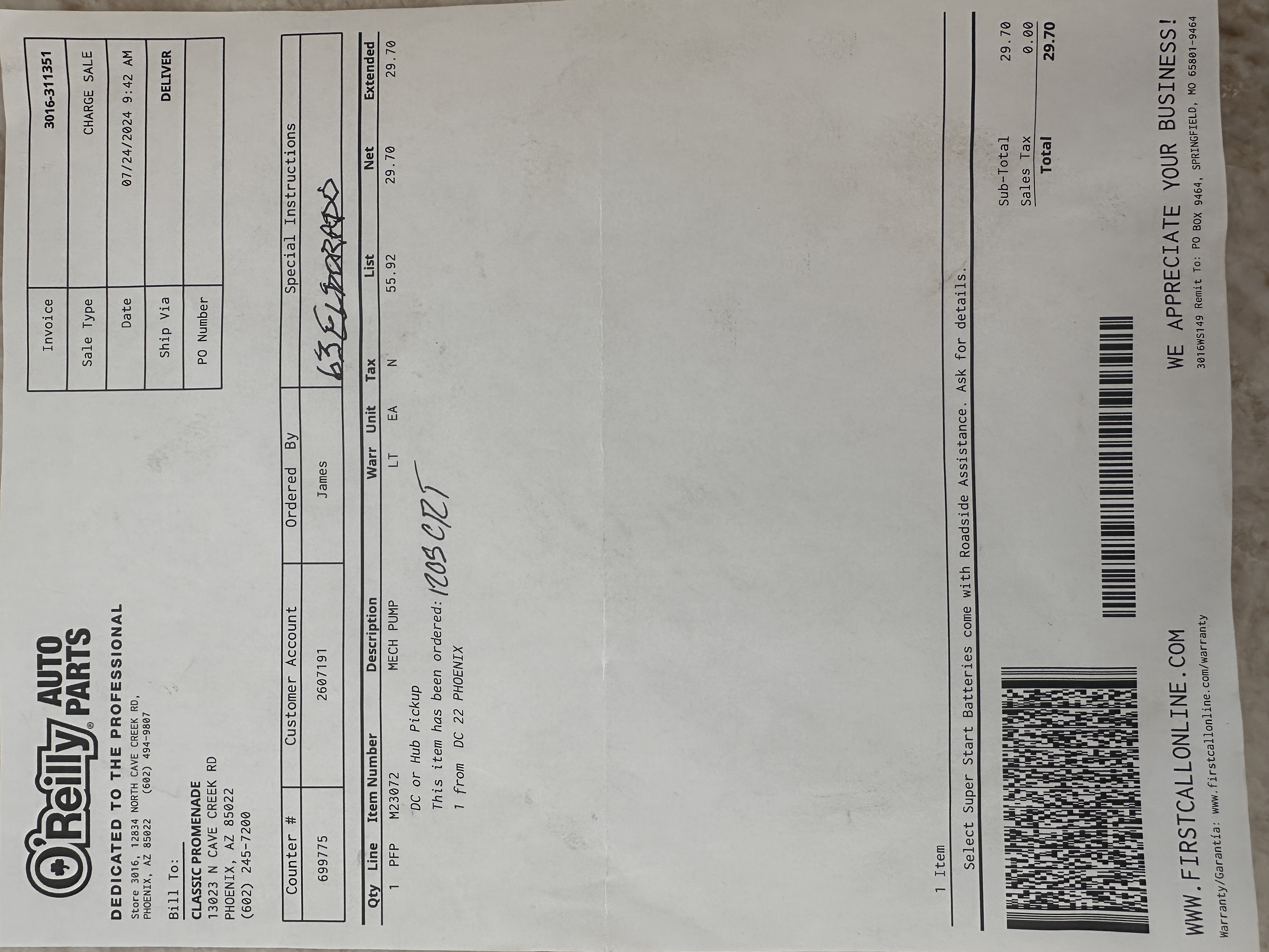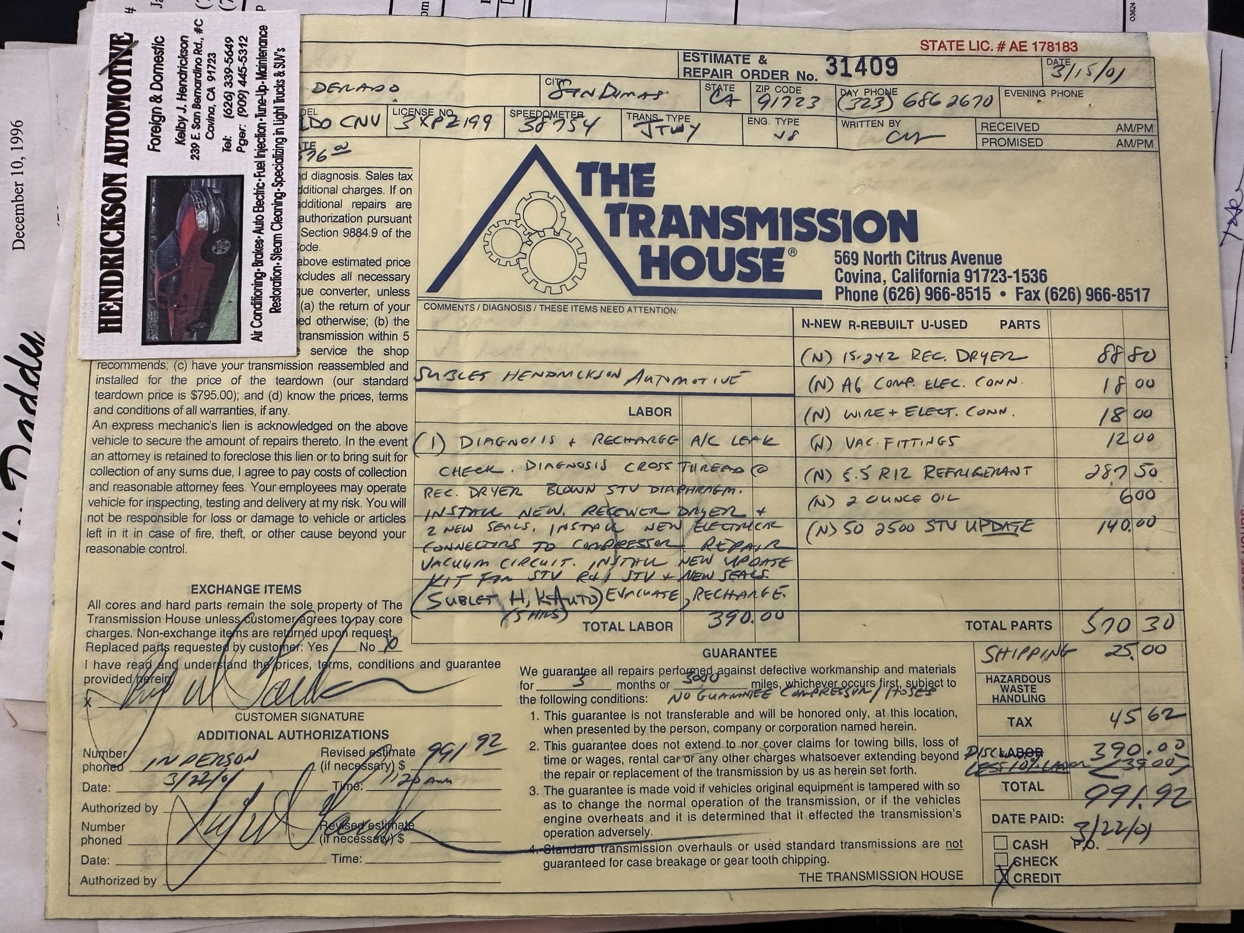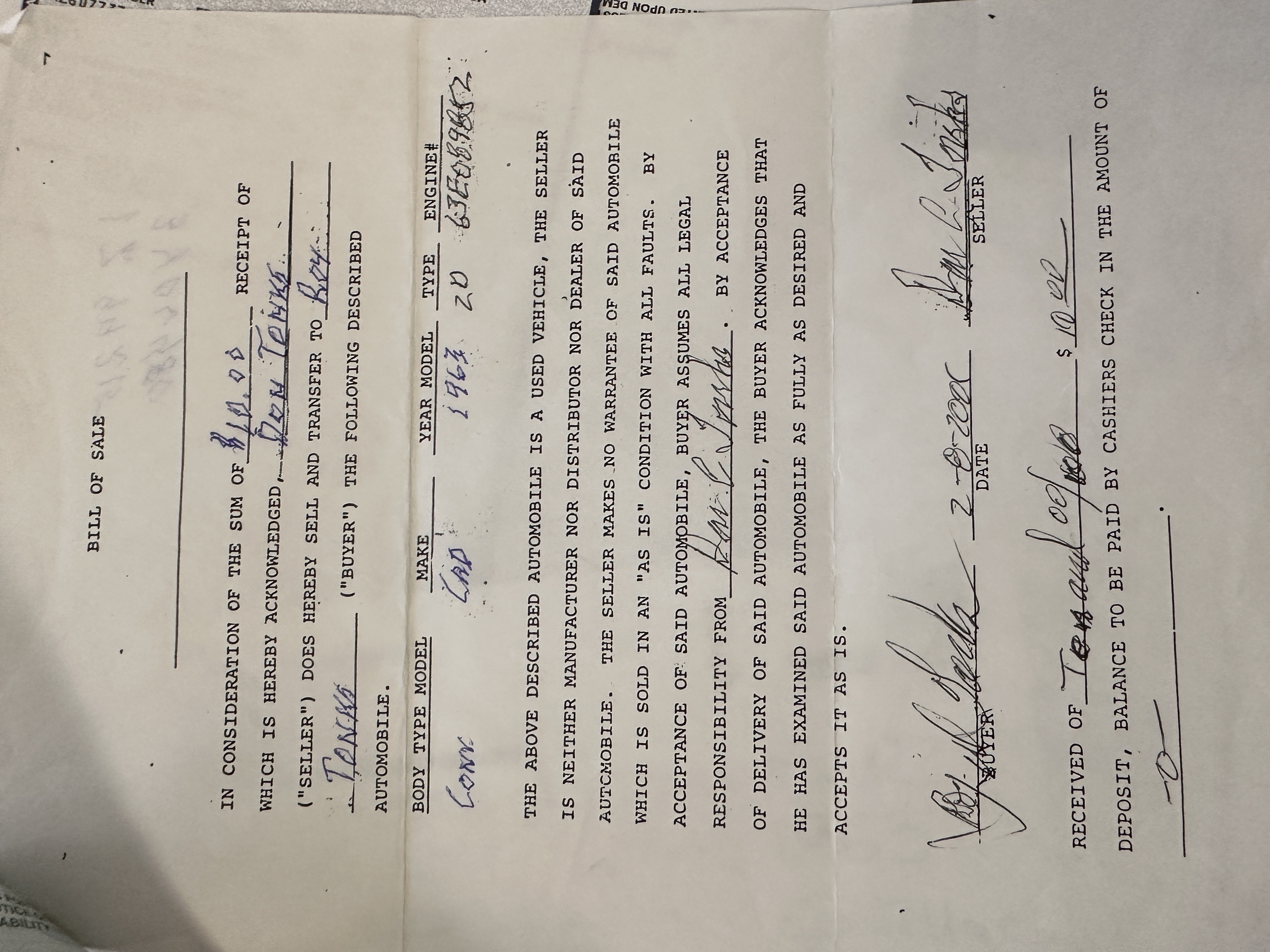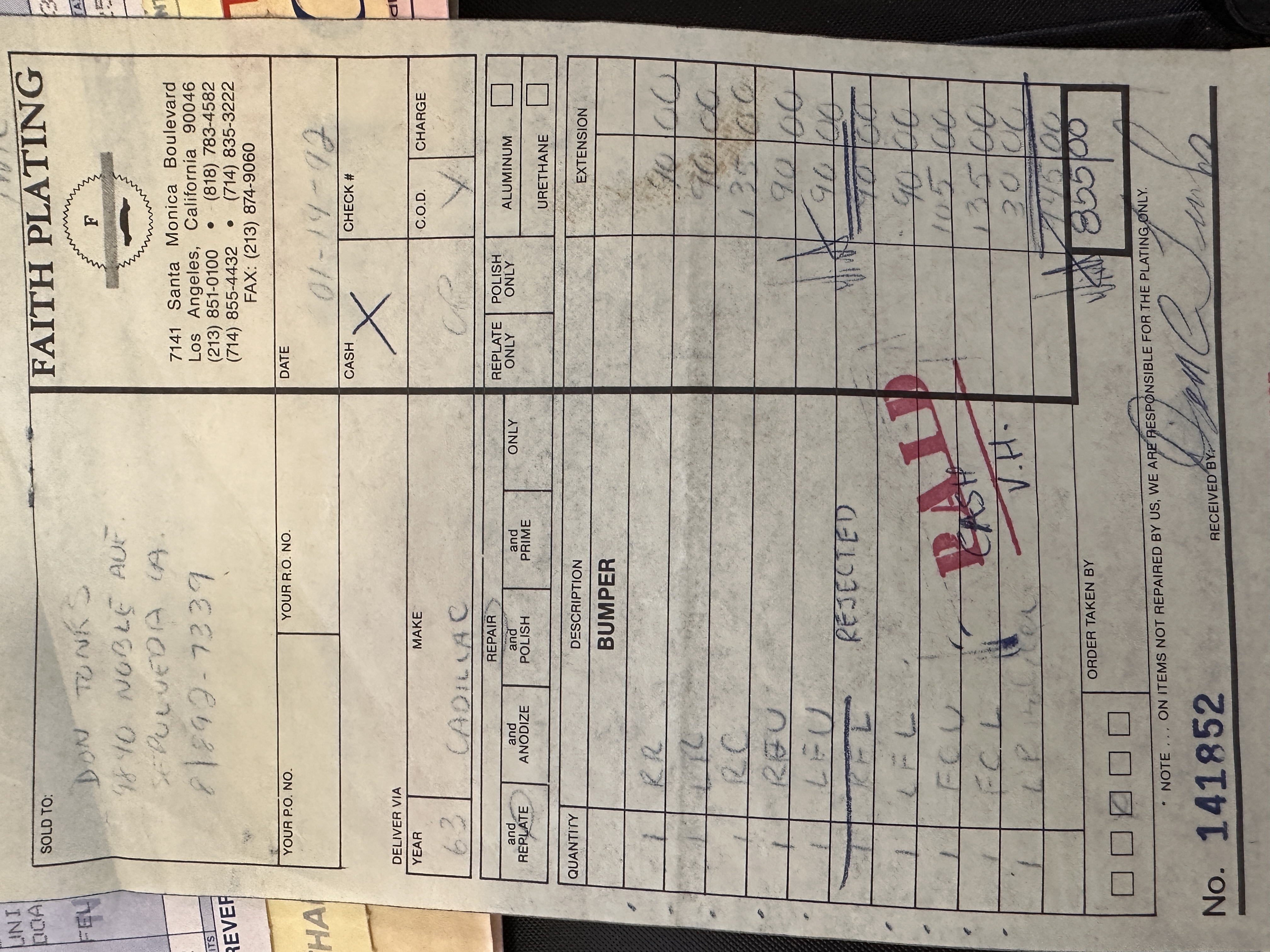 Sold new in Los Angeles and lived its life in Los Angeles until acquired by Classic Promenade in May 2024. By January 1991, the Cadillac was owned by Don Tonks of Sepulveda, CA. Don proceeded to commence a driving restoration. There is a stack of receipts for the work he performed on the Eldorado. The mileage reading on the odometer on January 14, 2000, was 37,807. Don sold to Roy Tonks of San Dimas, CA on February 8, 2001. The odometer reading was then 38,754. The Eldorado now has 43,158 showing on its odometer.