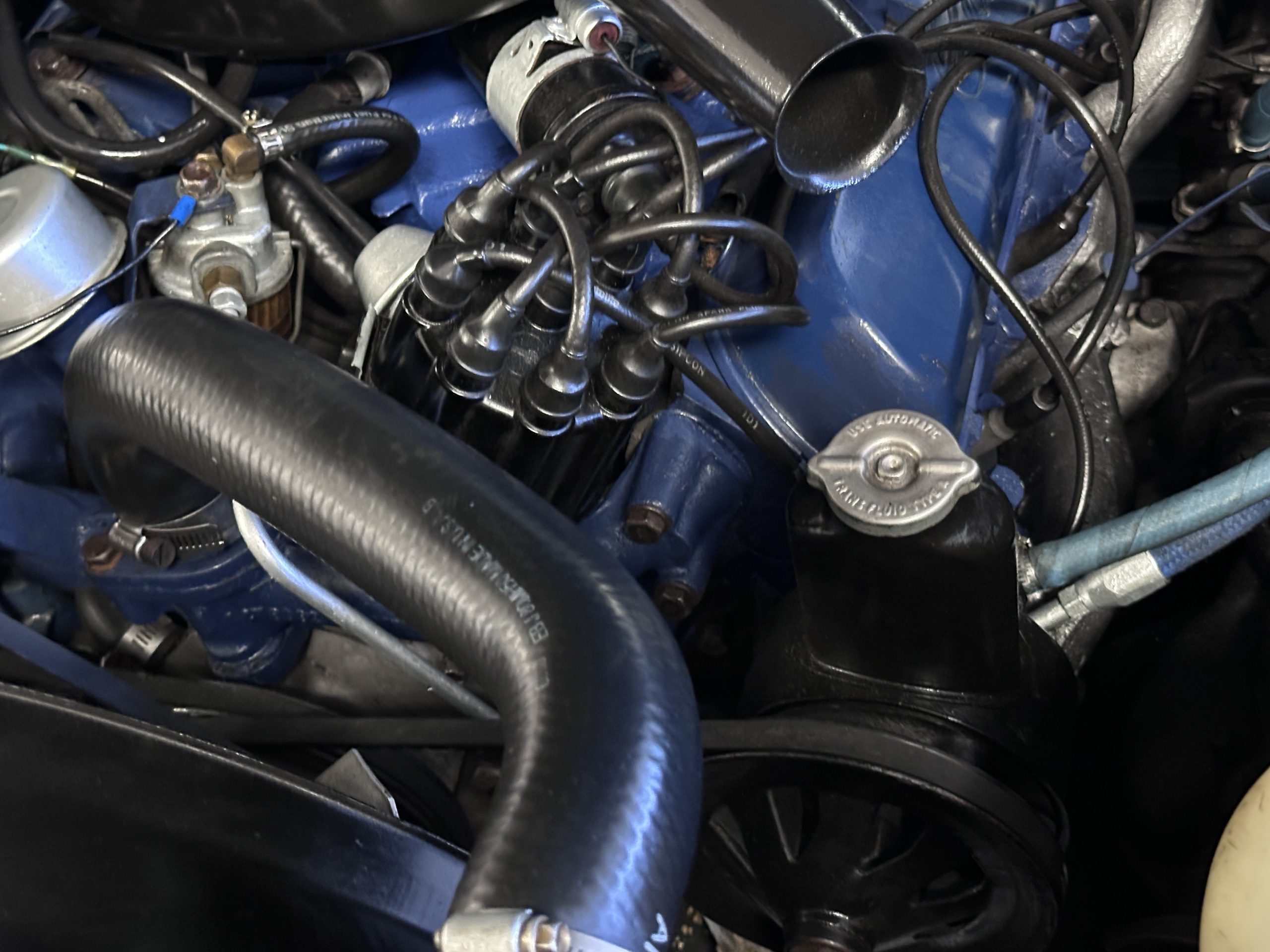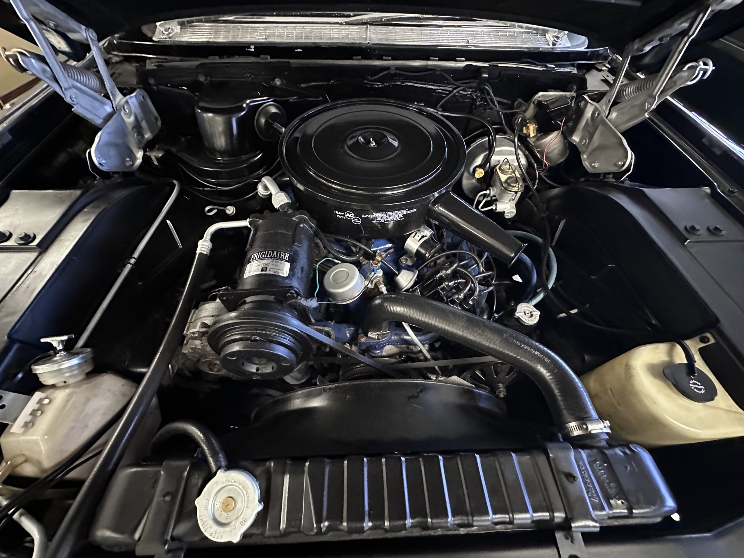 The engine compartment has been well detailed, and we have performed a substantial amount of recommissioning work. The venerable 390 cu in V8 has 325 hp and is driven through the four-speed Hydra-Matic transmission. The ride is very smooth on its 129.5-inch wheelbase. Restoration and service work performed by Don Tonks from 1992 through 1998 included body and paint work, seat and carpeting, chrome plating, convertible top, new tires, custom tonneau cover, mufflers and radiator re-cored and more.