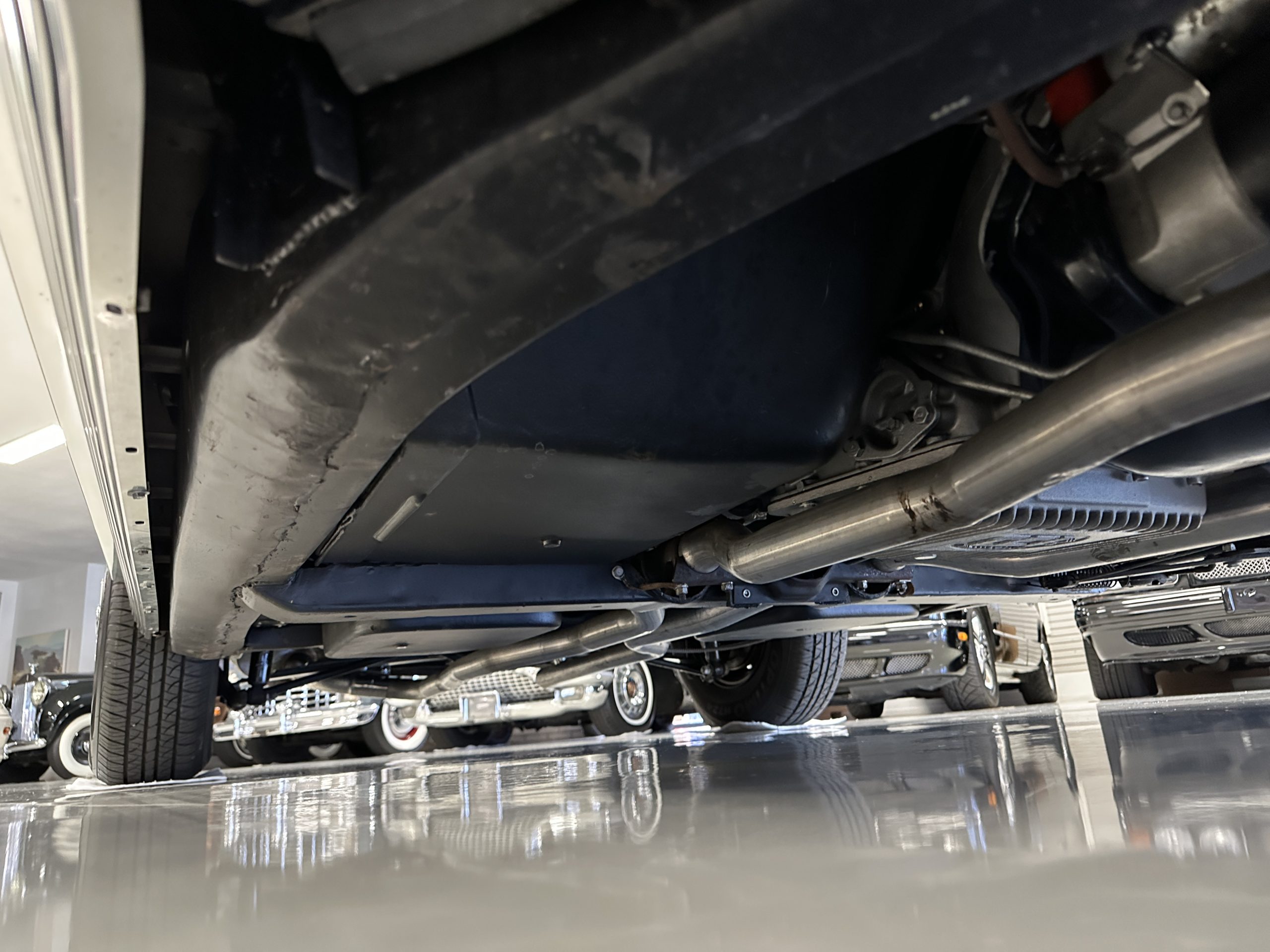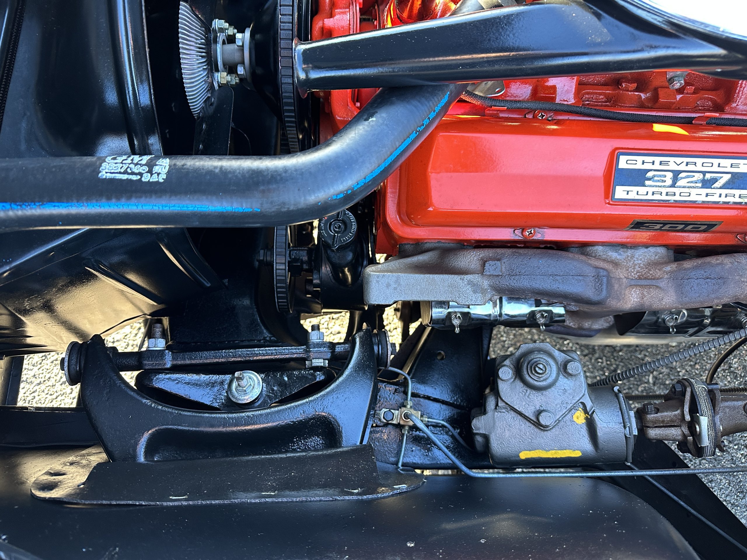 This Corvette was ordered new with the 327 cid/300 hp L75 engine package with a single four-barrel carburetor. The power is transmitted through its two-speed Power Glide automatic transmission with a 3:36 positraction rear axle. The engine shows its original engine numbers as from the factory. The engine compartment is nicely detailed and shows very well. The chassis is also very well detailed and restored and is in overall show condition today.
