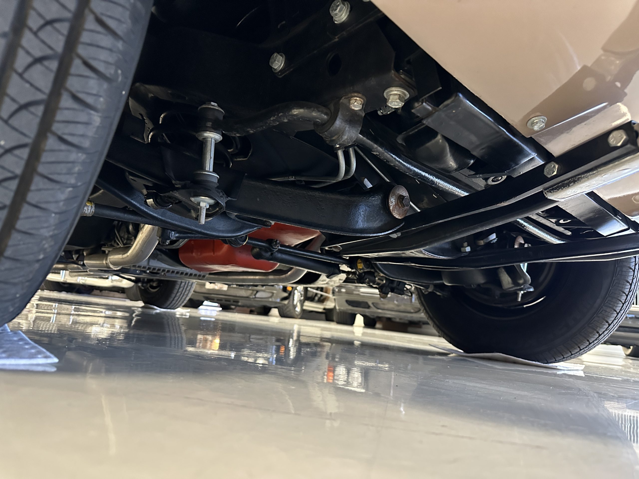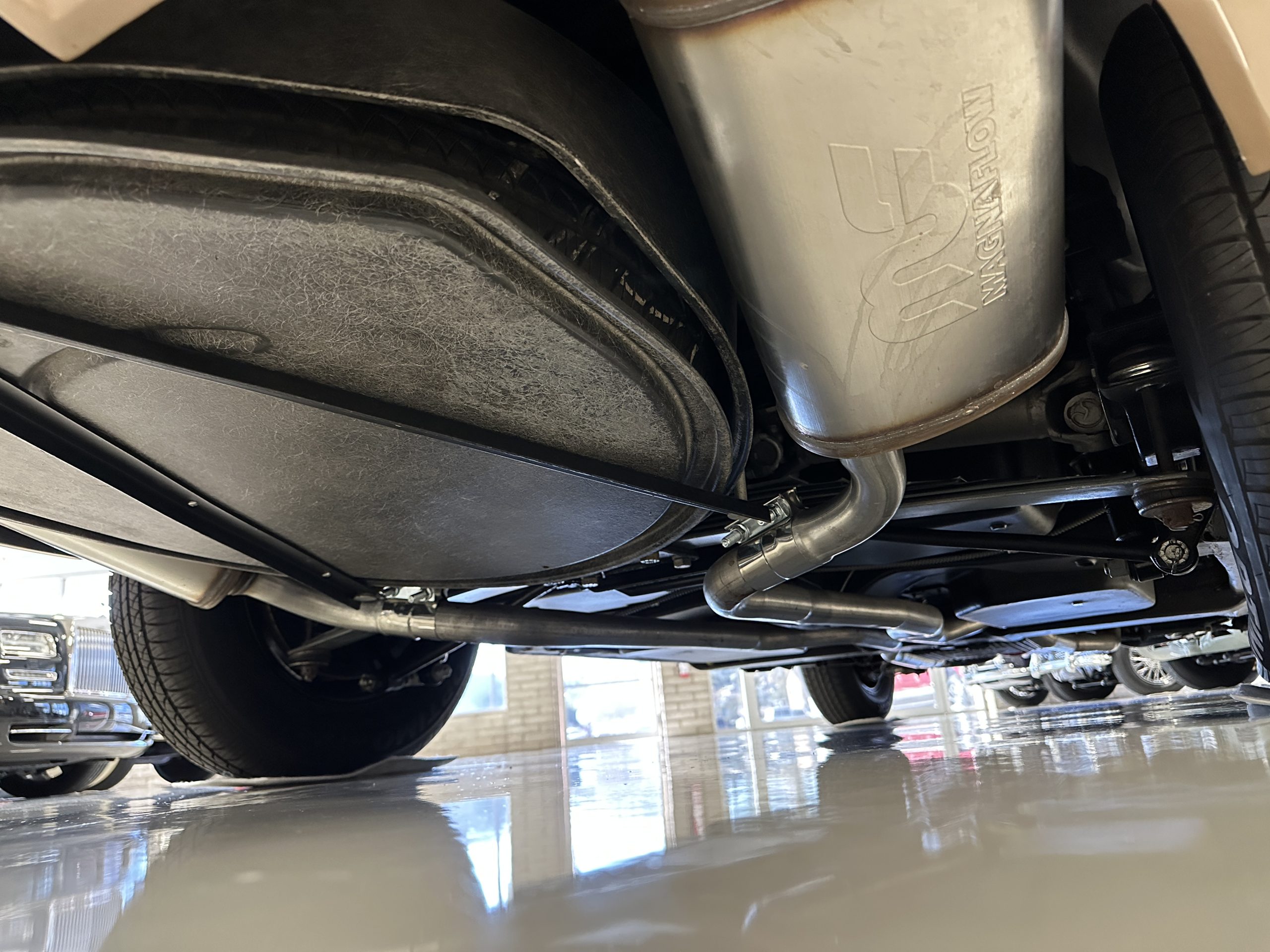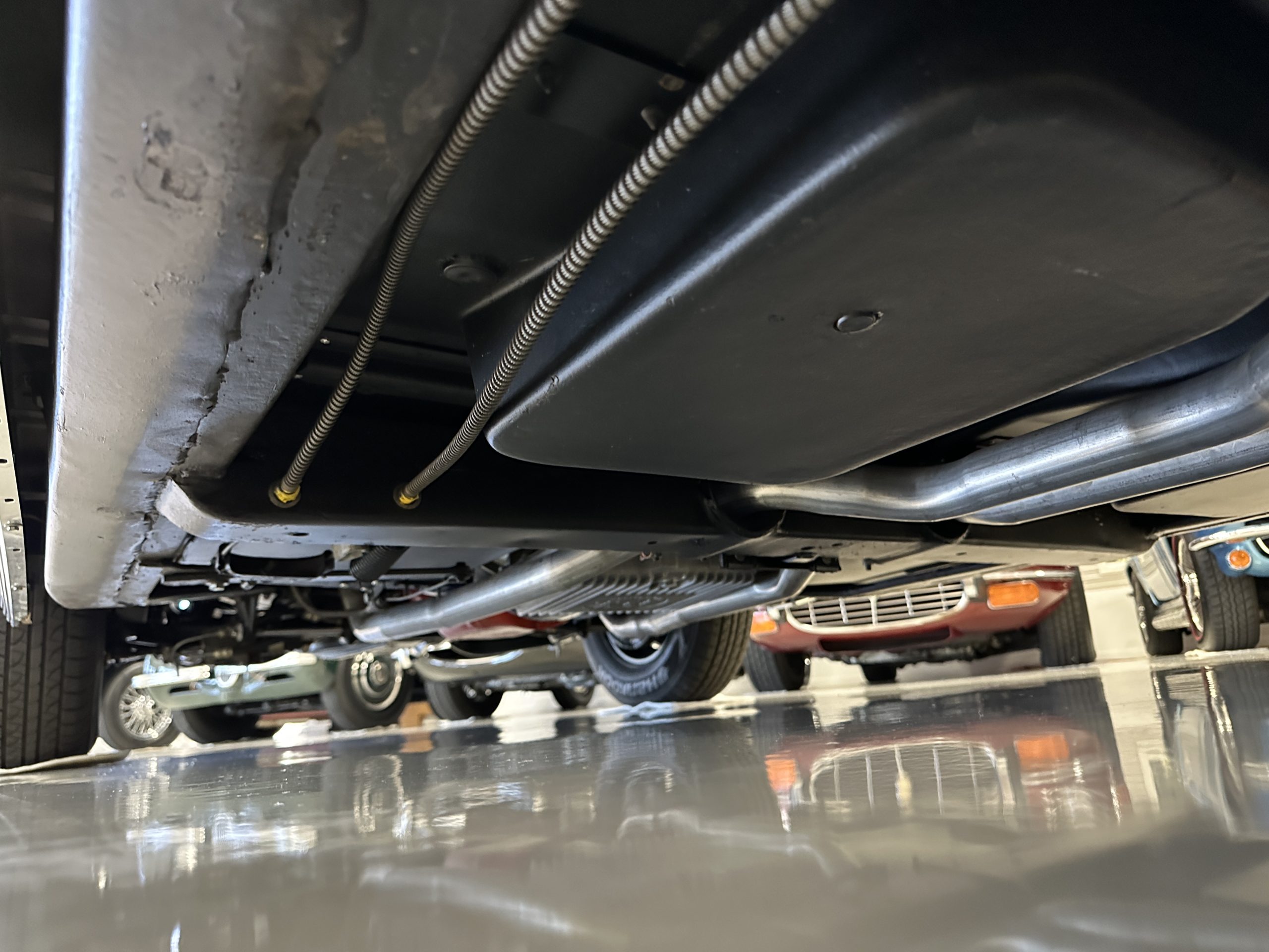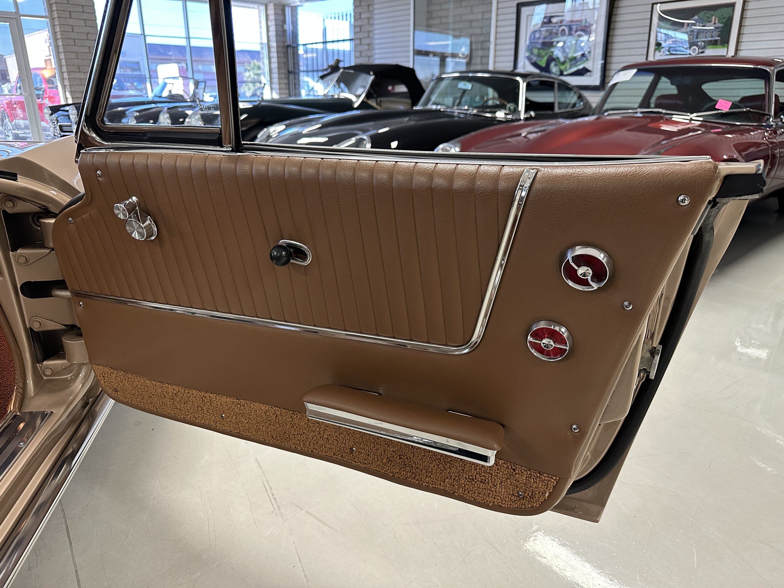 The Saddle Vinyl (Trim Code 490P) interior was also restored and appears in very nice condition. The Beige carpet appears in near new condition. The dash and steering wheel are all restored. Only the center console shows scratches from age and use while the rest of the interior is freshly restored.
