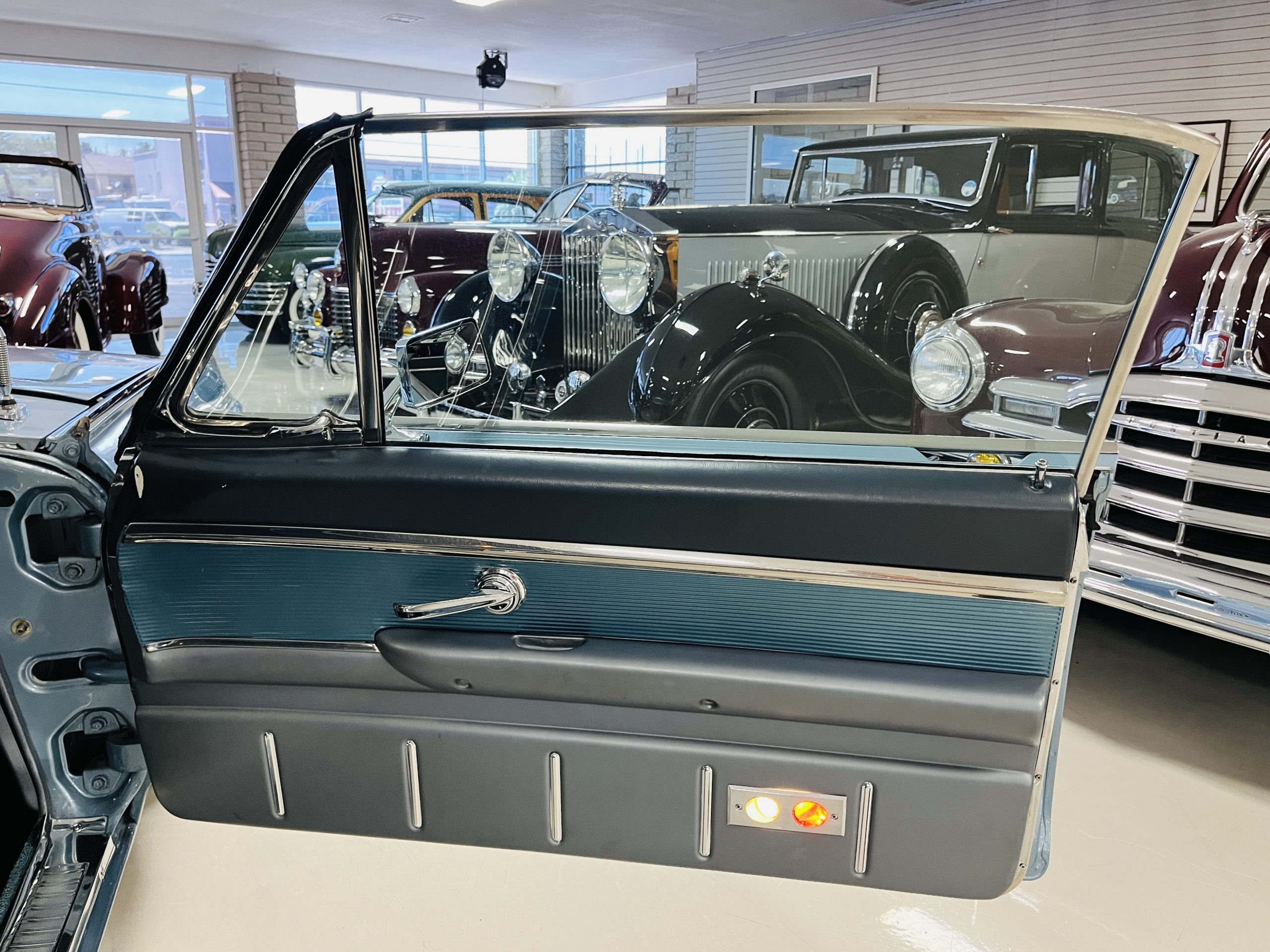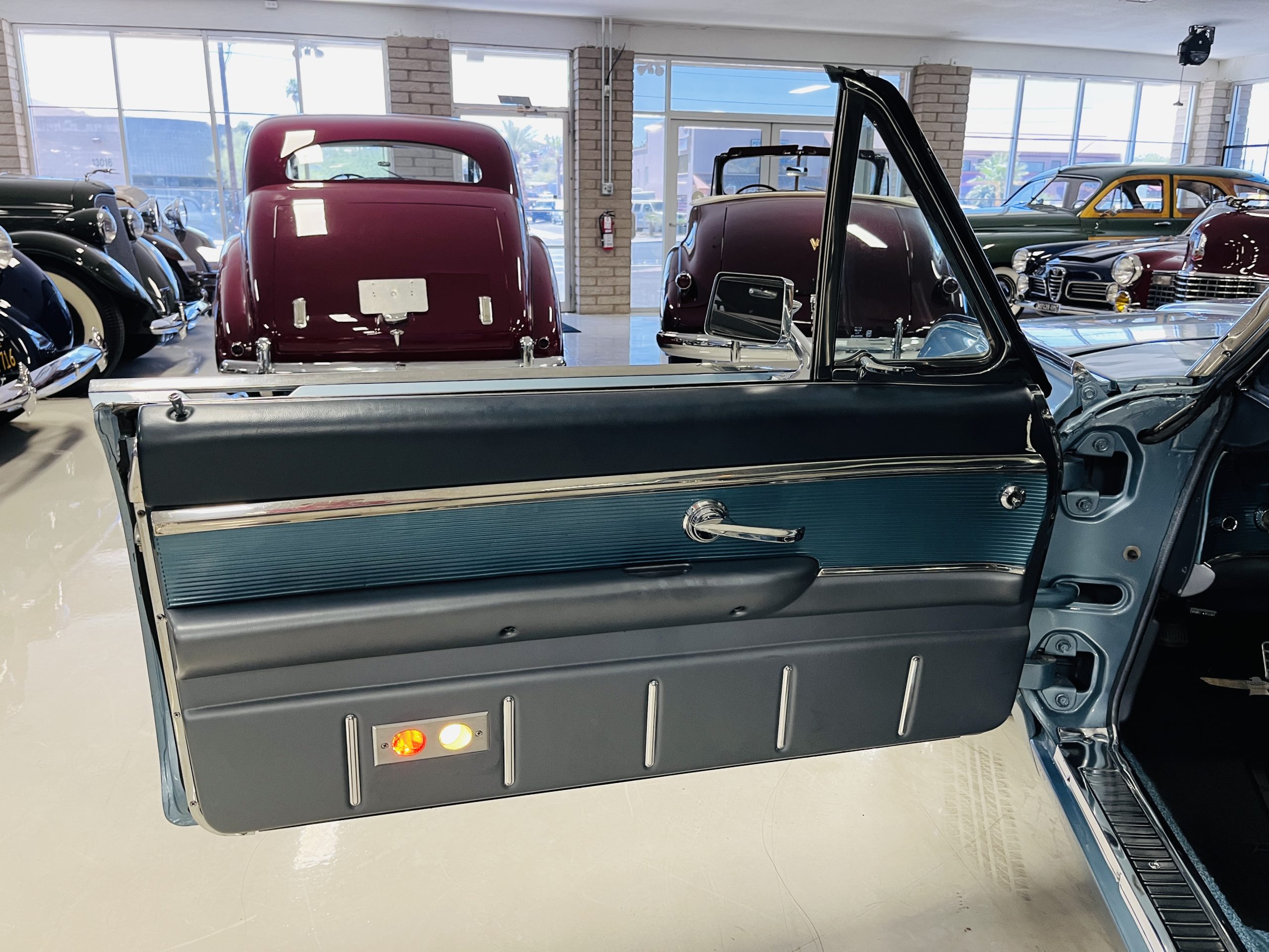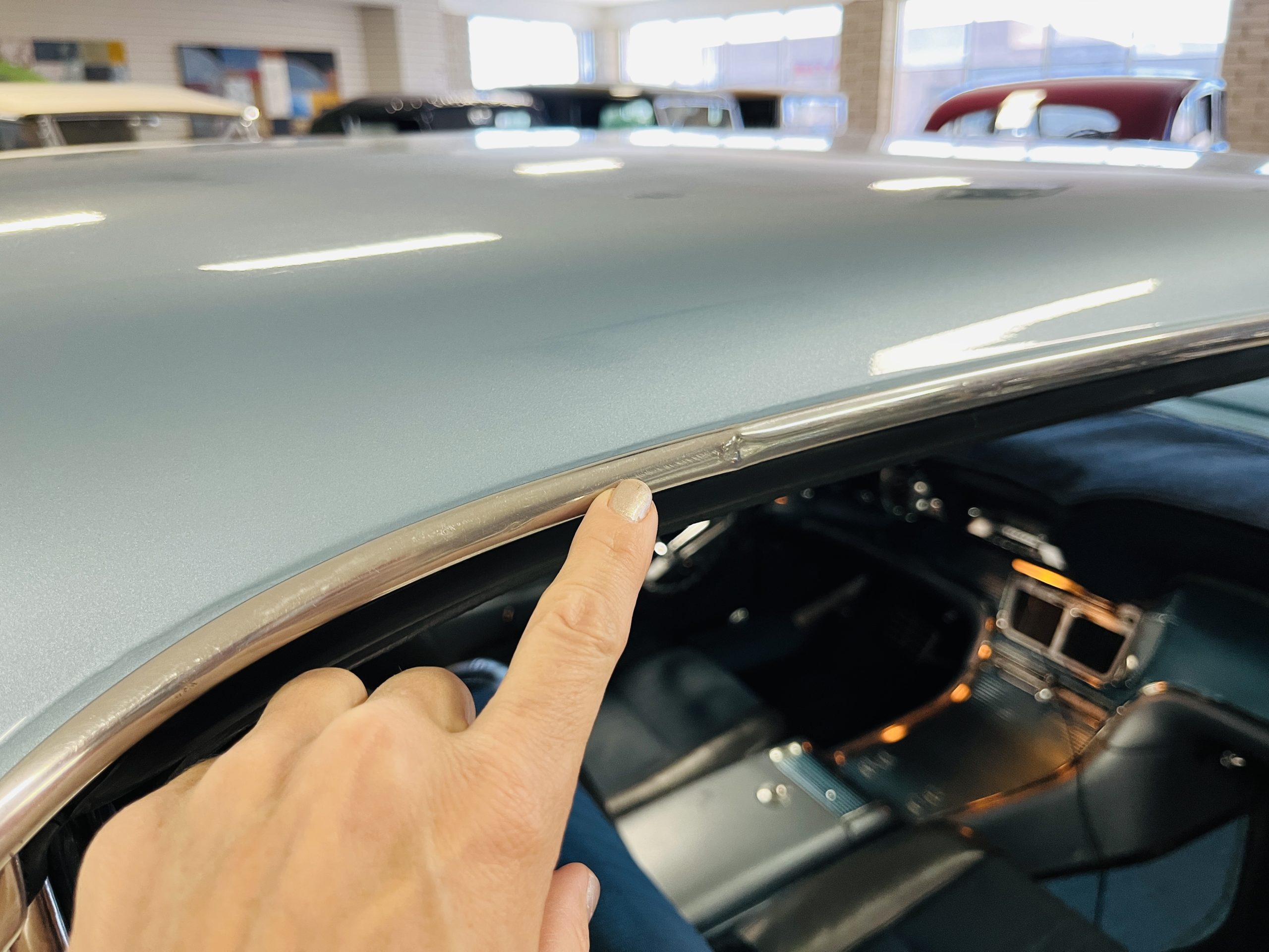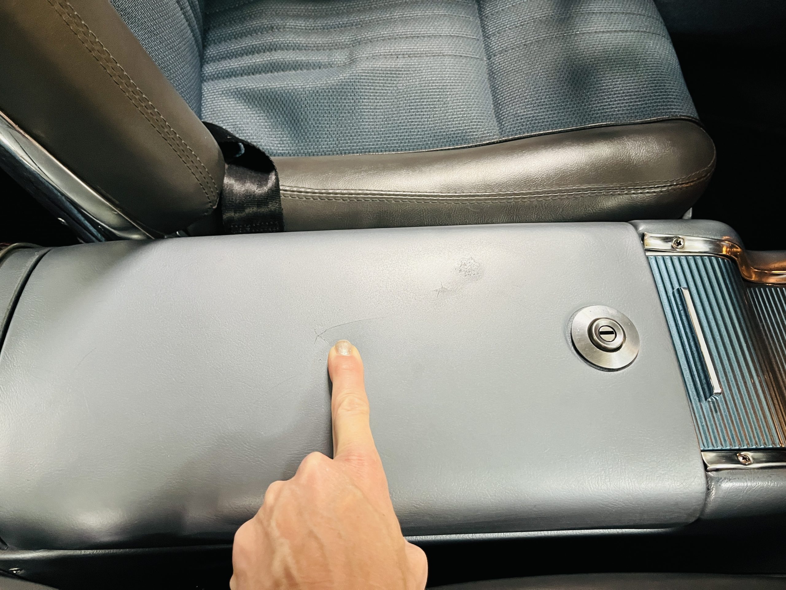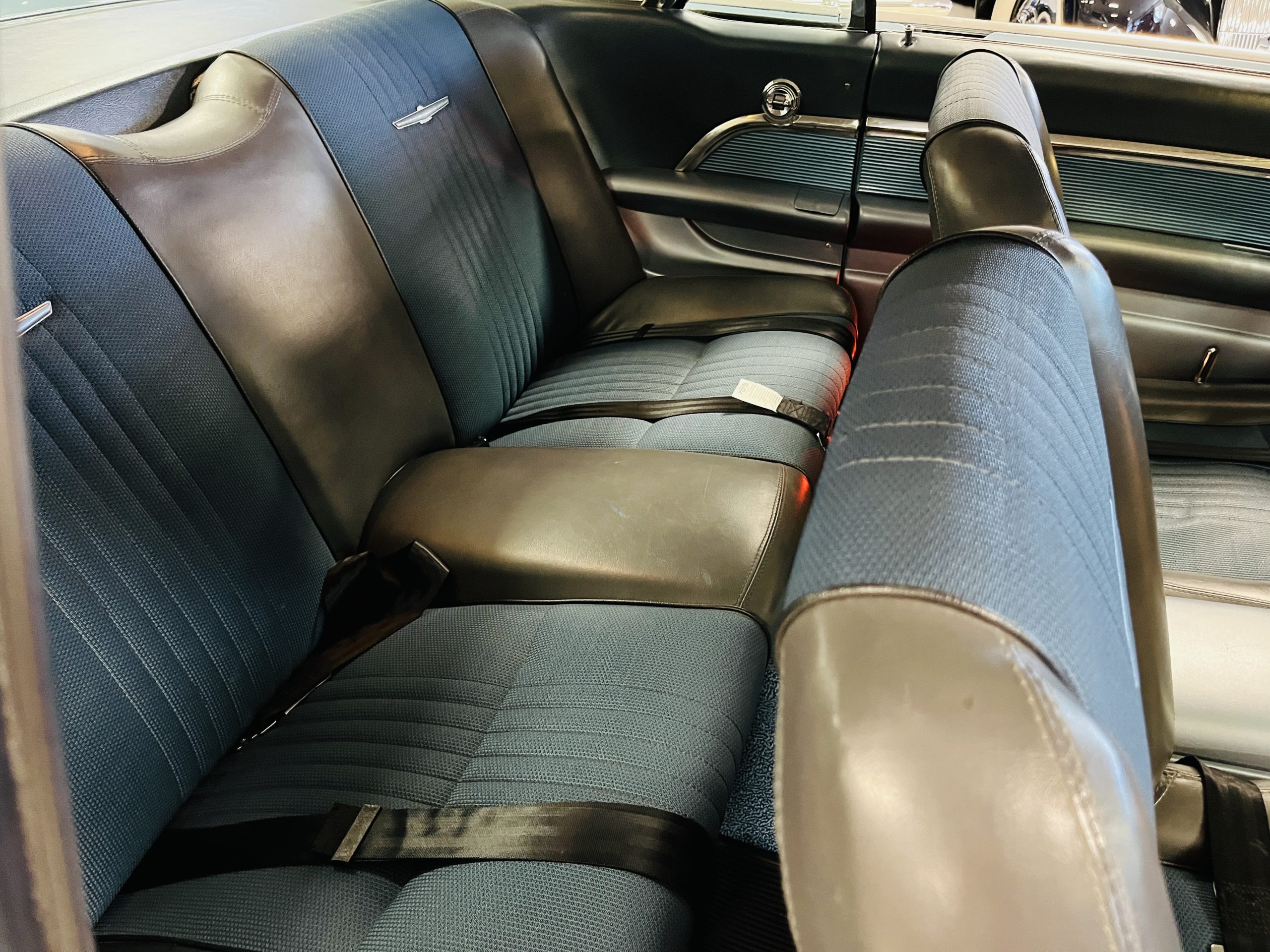 The livery originally was Acapulco Blue (Paint Code E) and now repainted with three coats of a beautiful vibrant blue that replicates Silver Mink Blue. The T-Bird’s paint is complimented with its restored painted wheel covers. Her chrome and stainless-steel trim are in overall excellent condition with only some wear showing on the rear tail lamp trim rings. All the rubber seals have been replaced and are in excellent condition. We love the Jetson’s mid-century styling of the 1963 T-Birds and this is our favorite color. It looks like a contemporary color today.