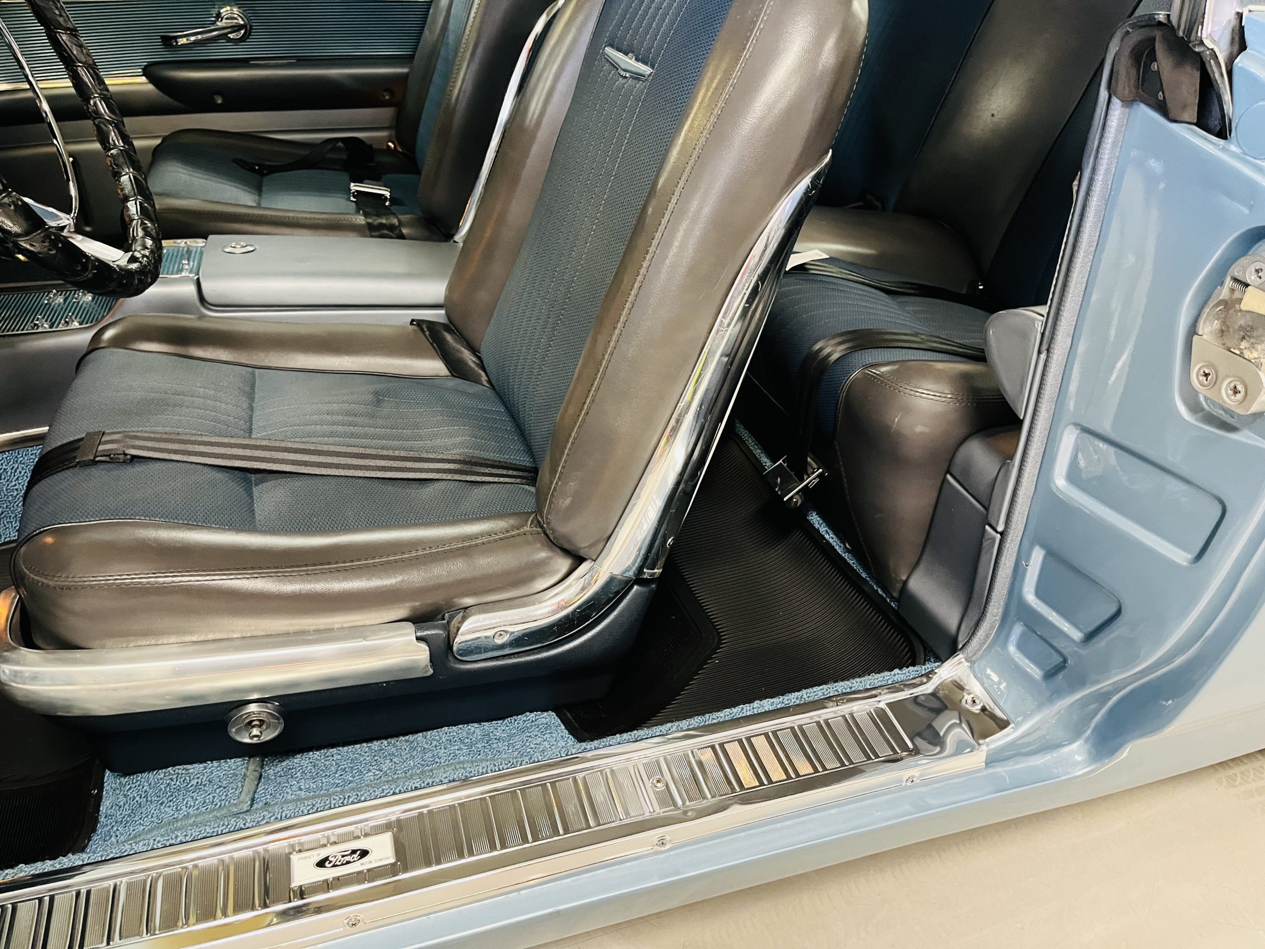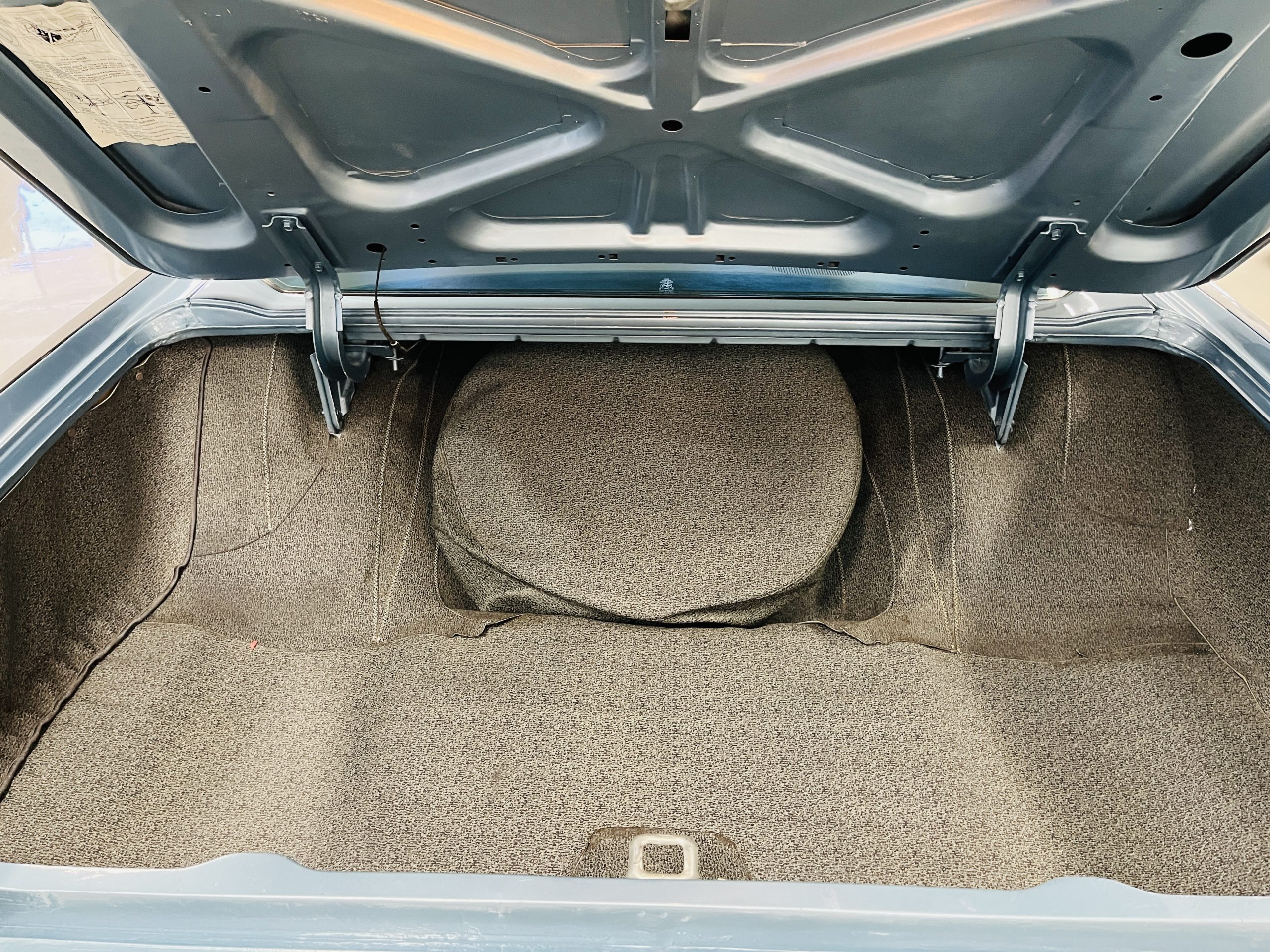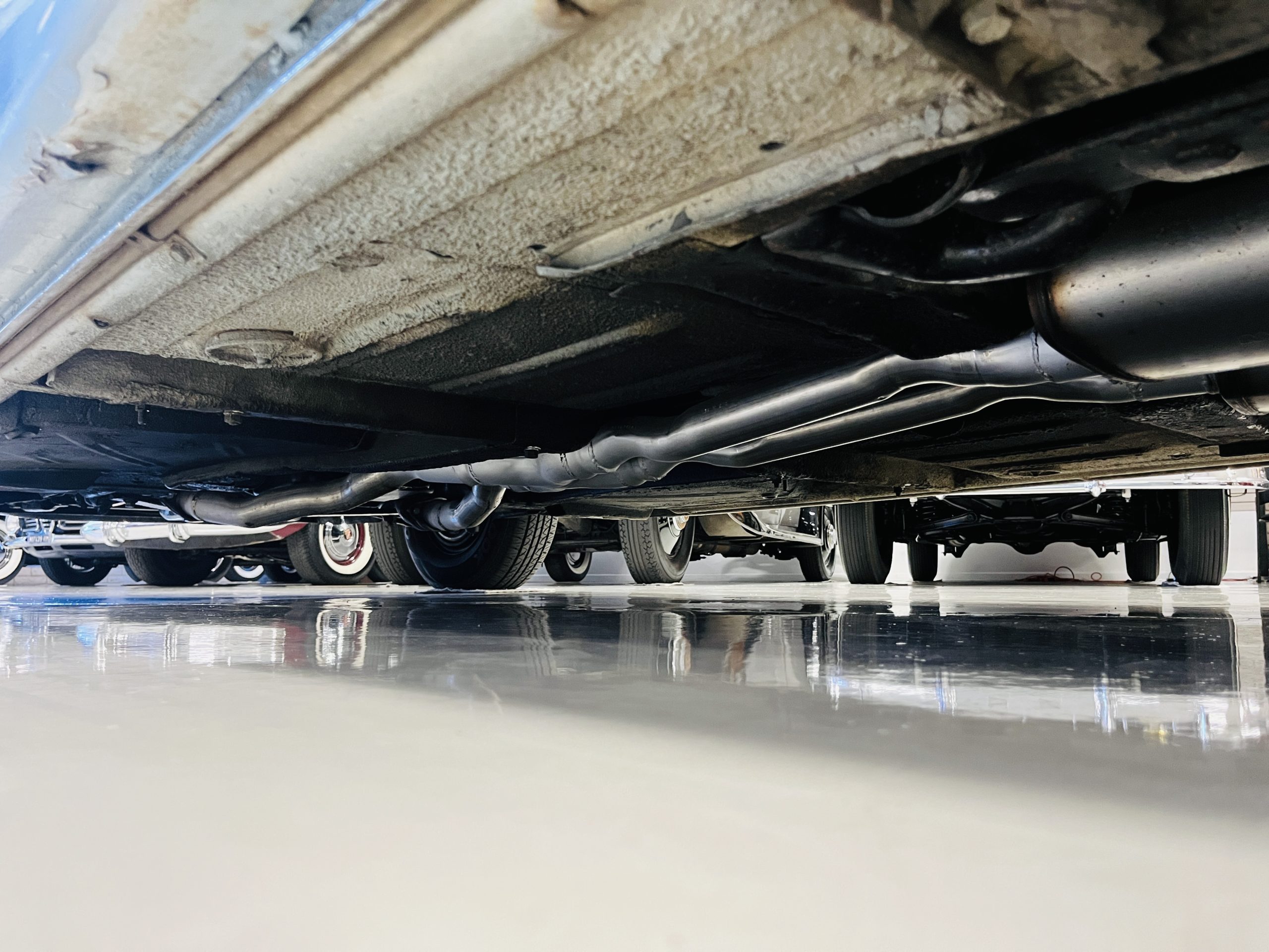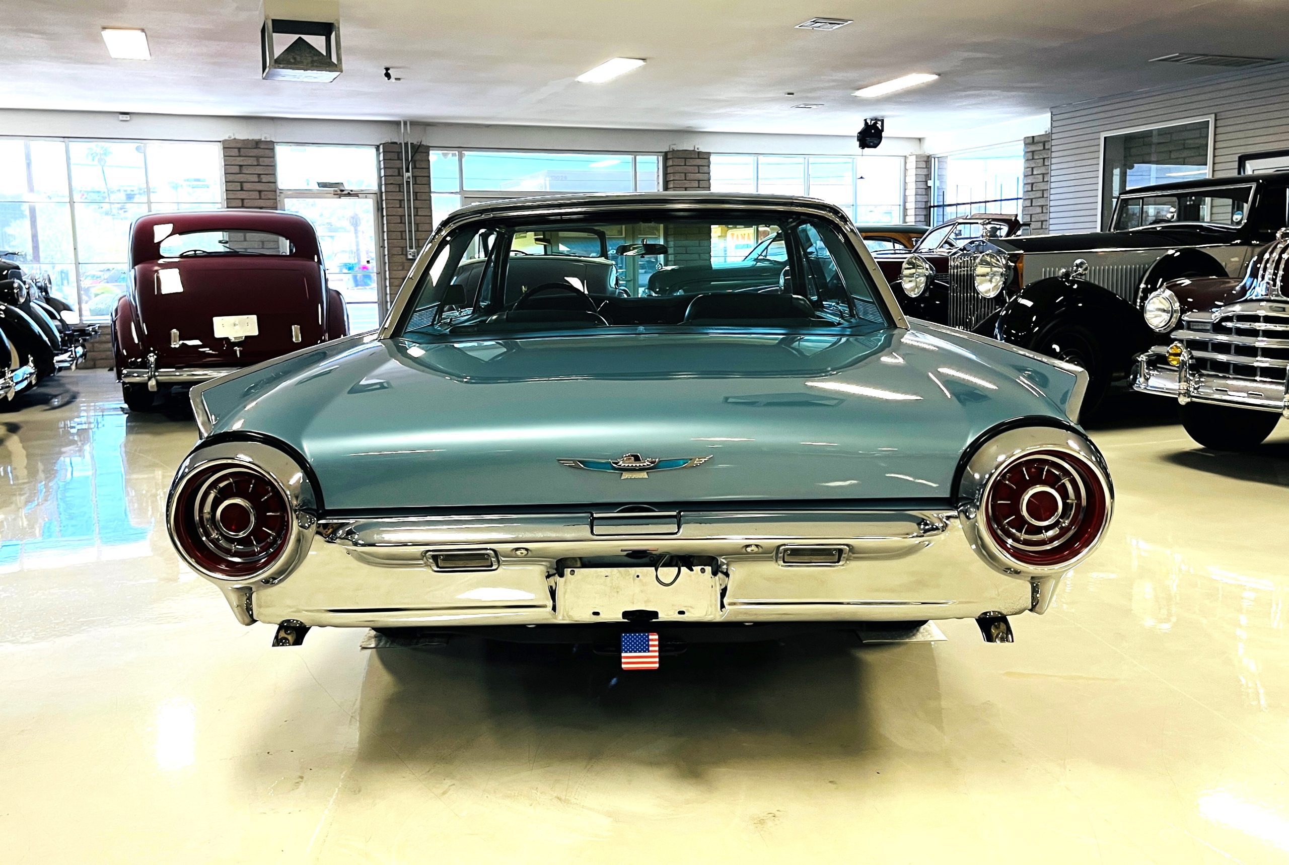 The interior has been beautifully restored from its original Medium blue crinkle vinyl and light blue Vachette vinyl (Trim Code 52) to a stunning two-tone blue and gray. There is only one small mark on the center arm rest. Otherwise, the interior is ready for show. This T-Bird is well optioned, including power windows, power steering, power brakes, power front seats and air conditioning. During the restoration, Quiet Ride anti-noise suppression was added to minimize road noise and making her truly enjoyable to drive long distances. The original radio has been restored and includes a plug-in connection for your phone or iPod. The blue carpet is in excellent condition and the black Thunderbird rubber mats are new. The dash and center console look fantastic, and all the gauges and components are working.