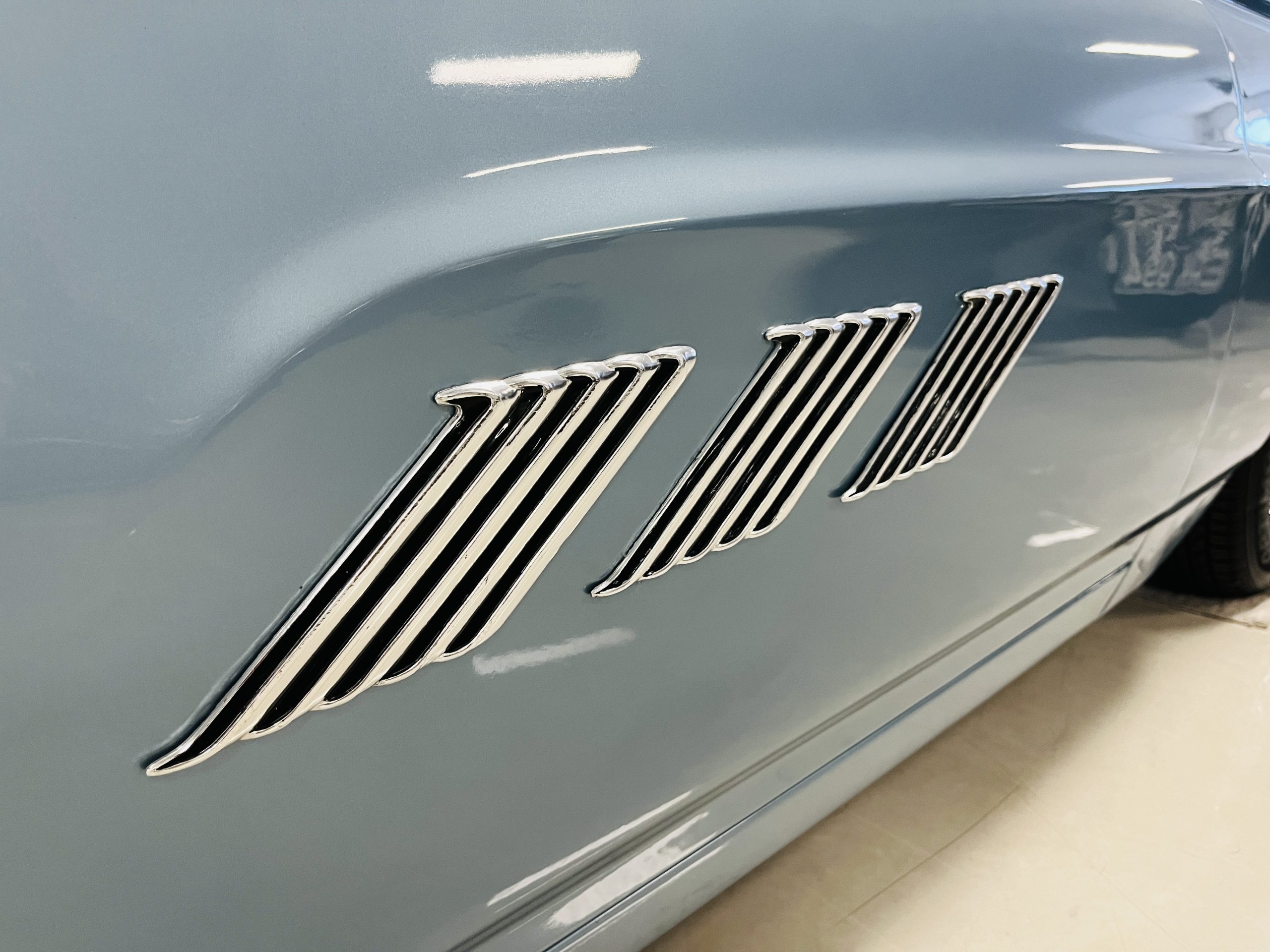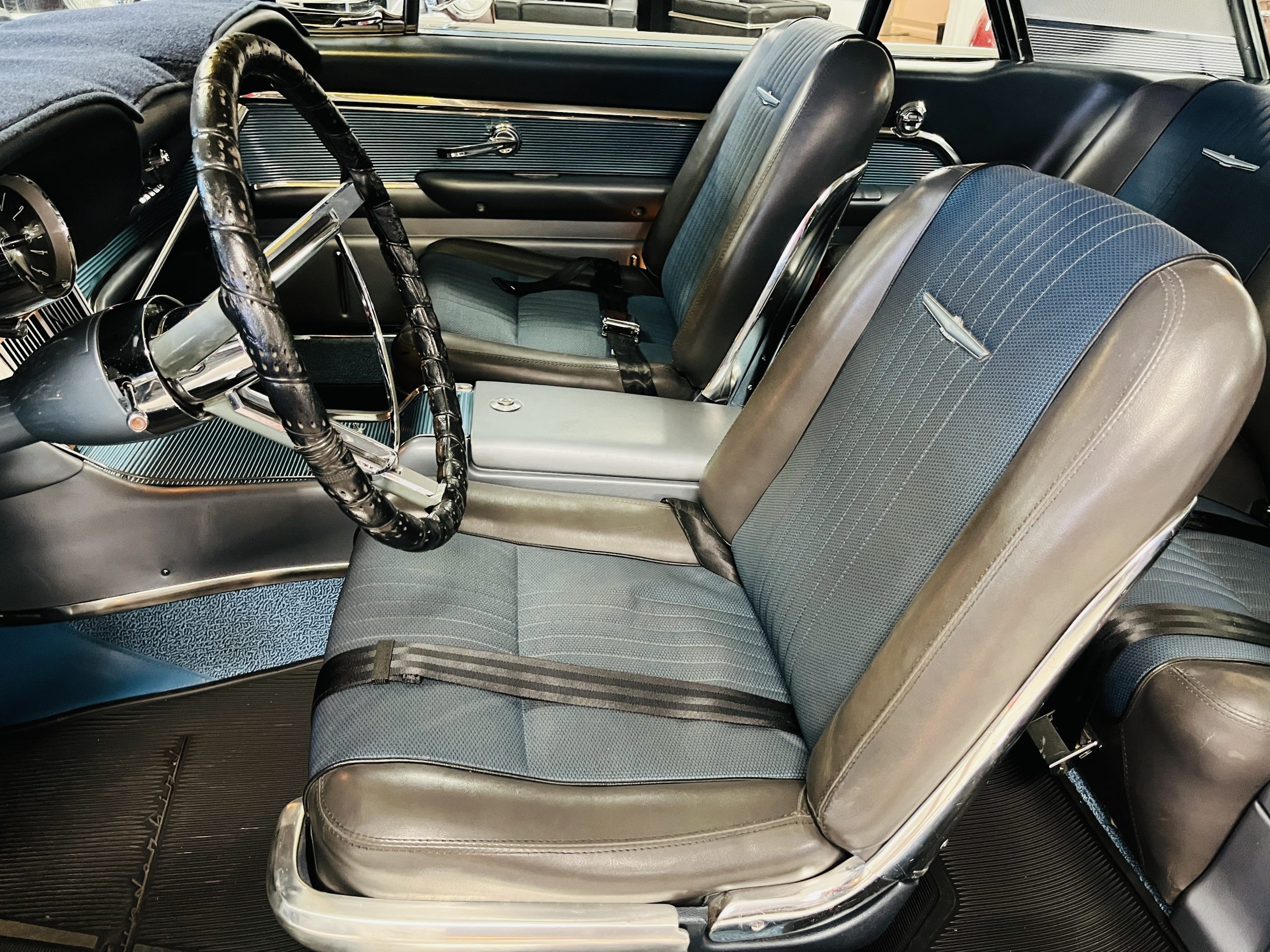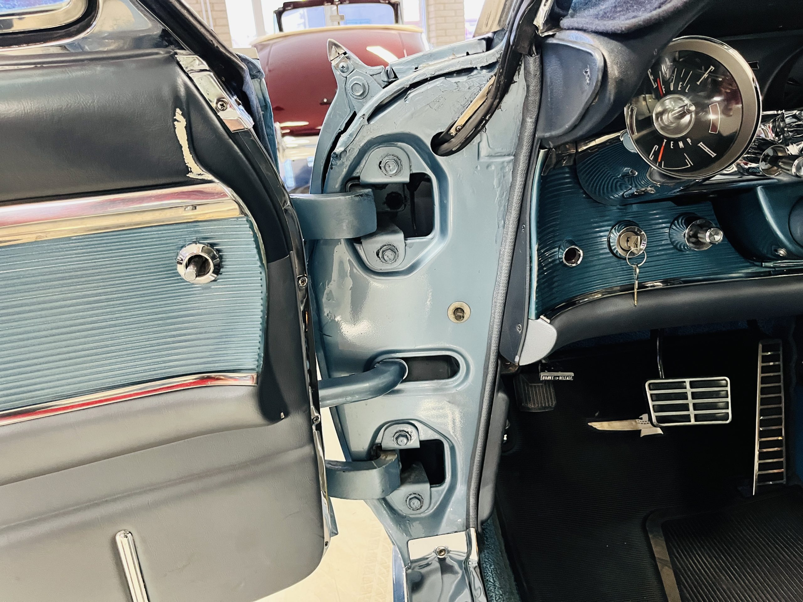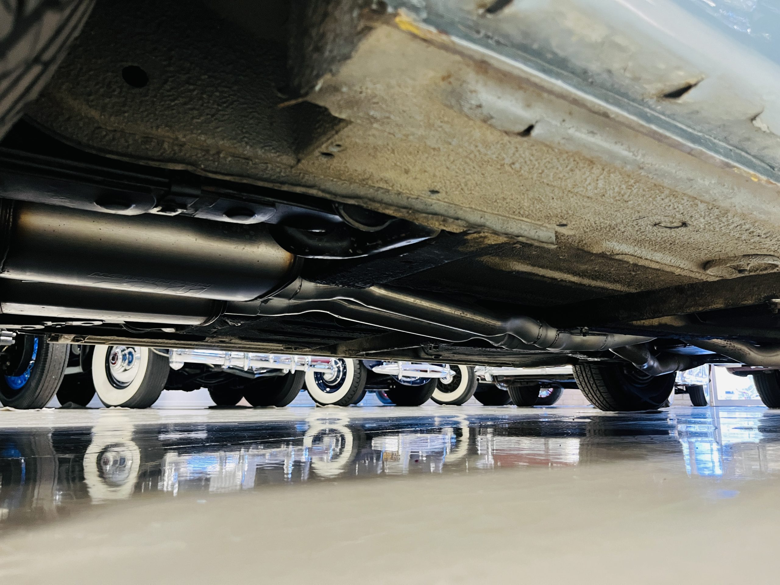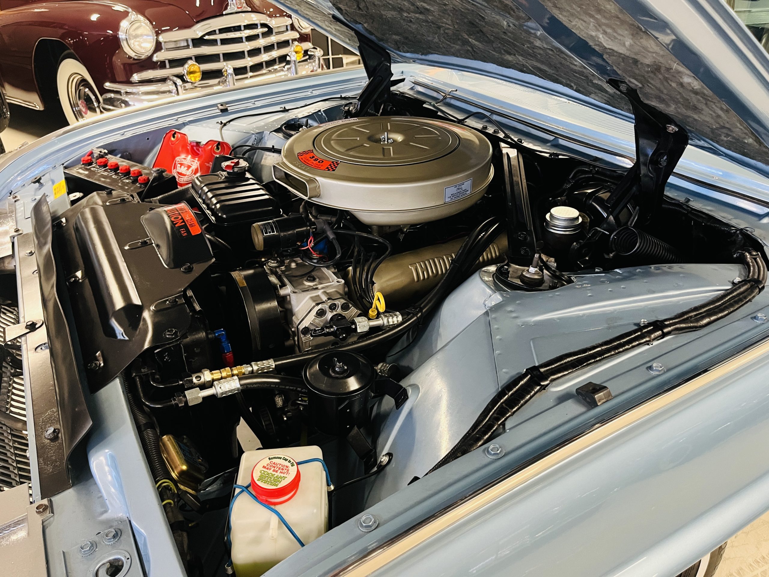 The interior has been beautifully restored from its original Medium blue crinkle vinyl and light blue Vachette vinyl (Trim Code 52) to a stunning two-tone blue and gray. There is only one small mark on the center arm rest. Otherwise, the interior is ready for show. This T-Bird is well optioned, including power windows, power steering, power brakes, power front seats and air conditioning. During the restoration, Quiet Ride anti-noise suppression was added to minimize road noise and making her truly enjoyable to drive long distances. The original radio has been restored and includes a plug-in connection for your phone or iPod. The blue carpet is in excellent condition and the black Thunderbird rubber mats are new. The dash and center console look fantastic, and all the gauges and components are working.