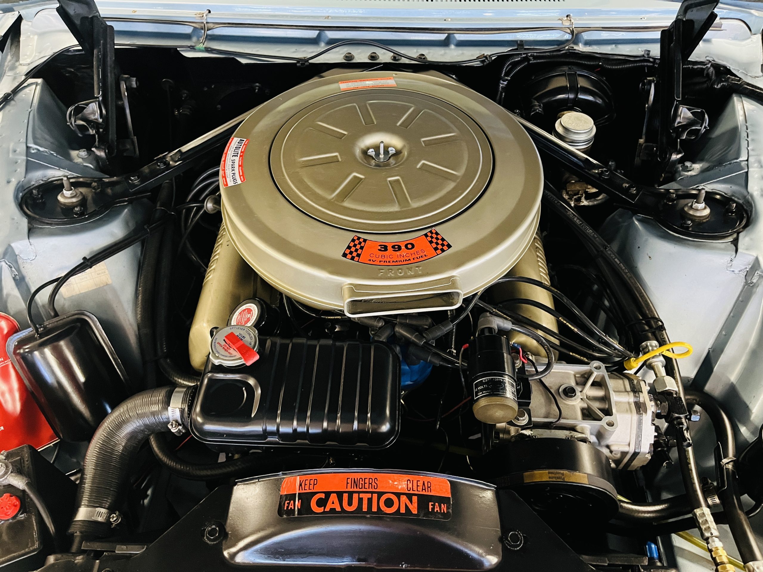 The engine compartment is beautifully restored to show condition. The venerable 390 CID V8 engine provides 300 hp and has been professionally rebuilt. The Cruise-O-Matic automatic transmission has also been fully rebuilt and resealed. All systems have been thoroughly checked, replaced, or rebuilt as needed. The A/C, heating, exhaust, starting, steering, suspension, charging, transmission, cooling, every mechanical system has been thoughtfully addressed and working.