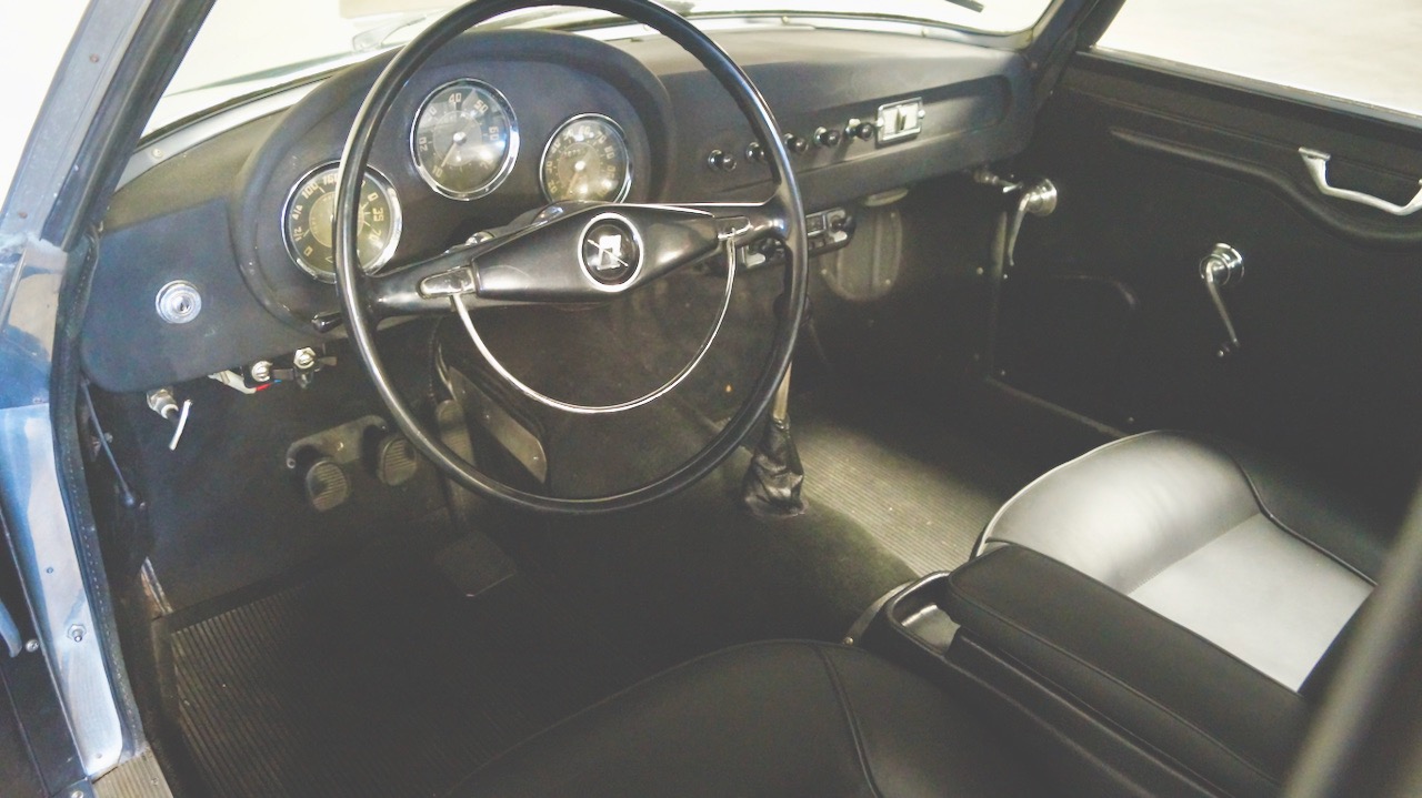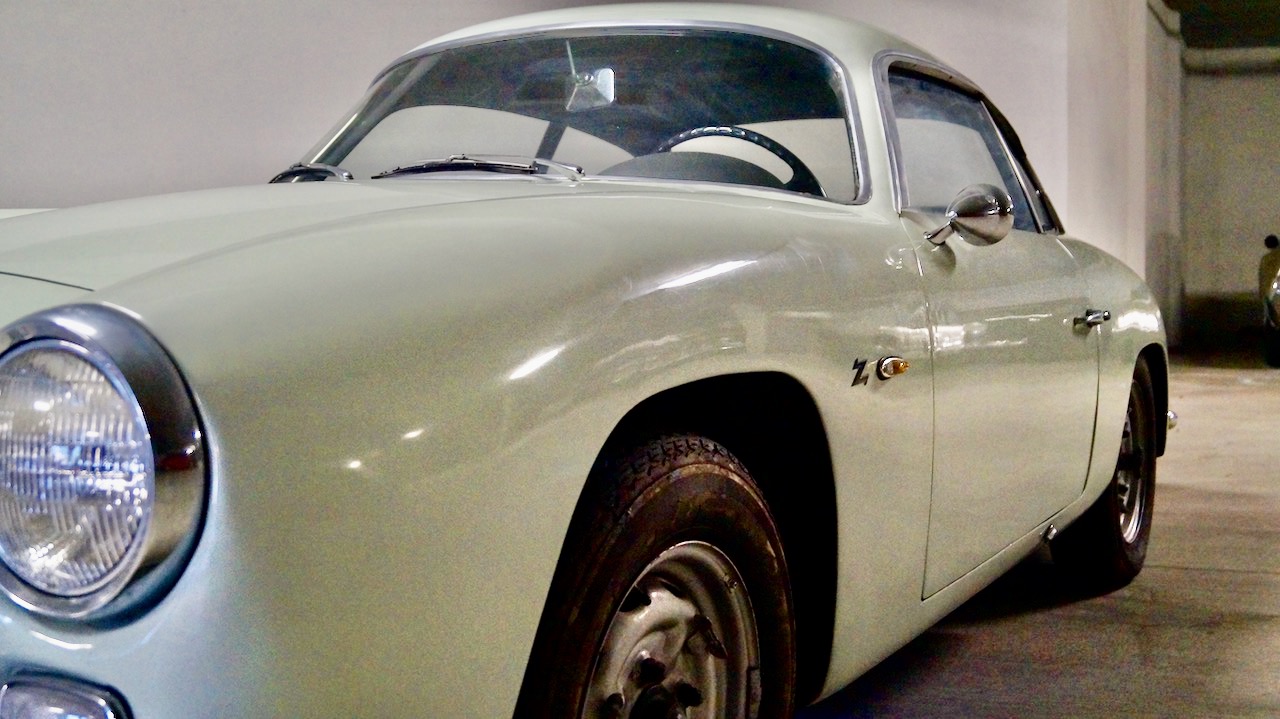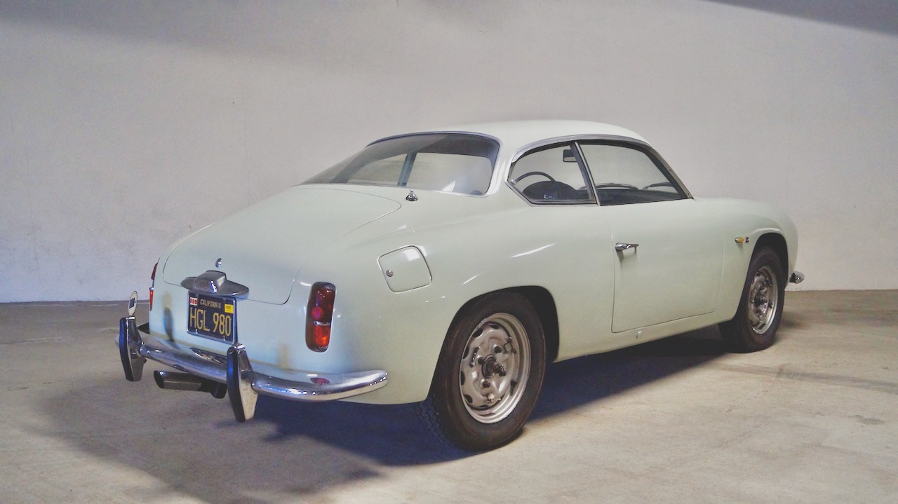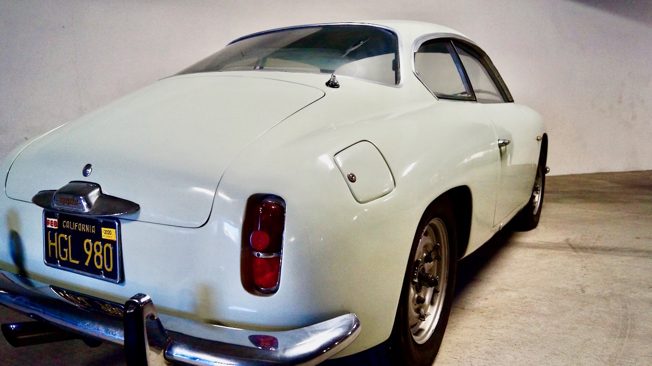 The Pale Green livery is a repaint from about seven years ago and is still in very nice and serviceable condition. The glass, chrome and stainless trim are all original and in good condition. We love the fastback rooflines and the Frenched taillights. The Appia Sport was the design inspiration of the young Ercole Spada who had just joined Zagato. It was his mission to adapt the Appia GTE bodywork to the shorter, 92.5 inch wheelbase (a full 6.3 inches in wheelbase and 8 inches shorter overall than the Zagato GTE). The result is stunning!