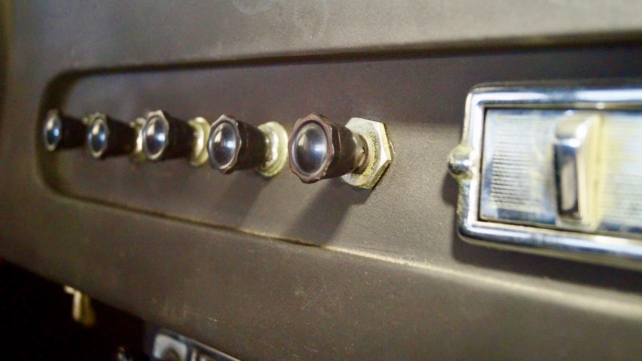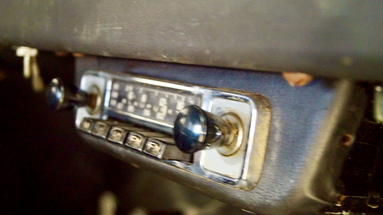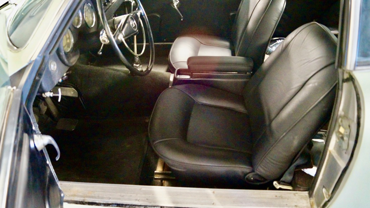 The interior is in very nice condition overall, with the original black leather and carpet being replaced a couple years ago. Black Wilton wool carpet was installed in the front of the passenger compartment with the original black carpeting in the rear somewhat faded. The original Blaupunkt AM/FM stereo is installed and not presently working.