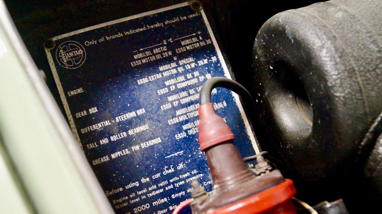 The Lancia Appia is powered by the more powerful Series 3 V4 1.1 liter engine that produces 60 hp. It features a four speed manual transmission with synchromesh in the top three gears. According to the owner, the Lancia is in good overall mechanical condition. The fuel tank has a non-original inside tank that was installed years ago.