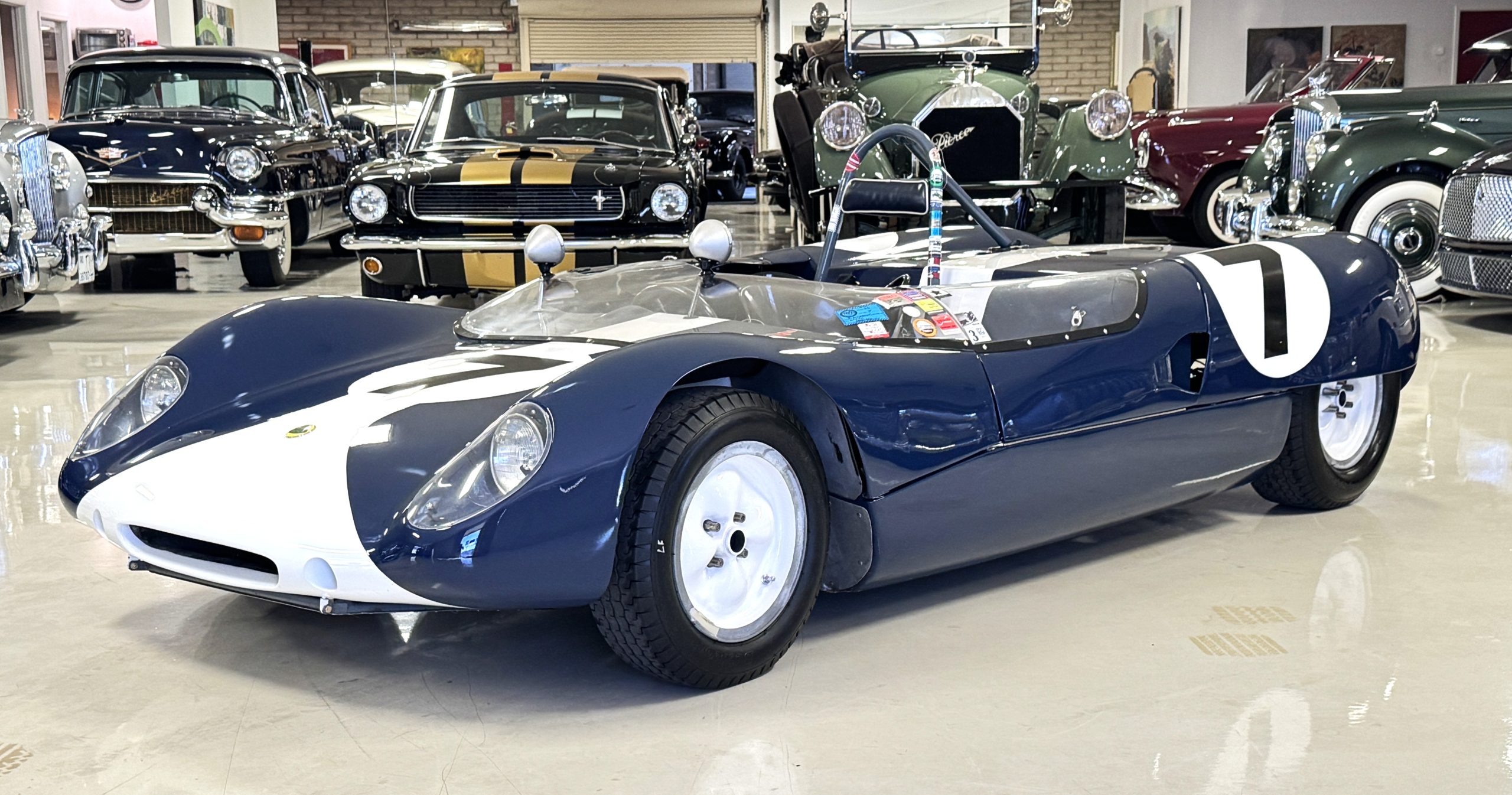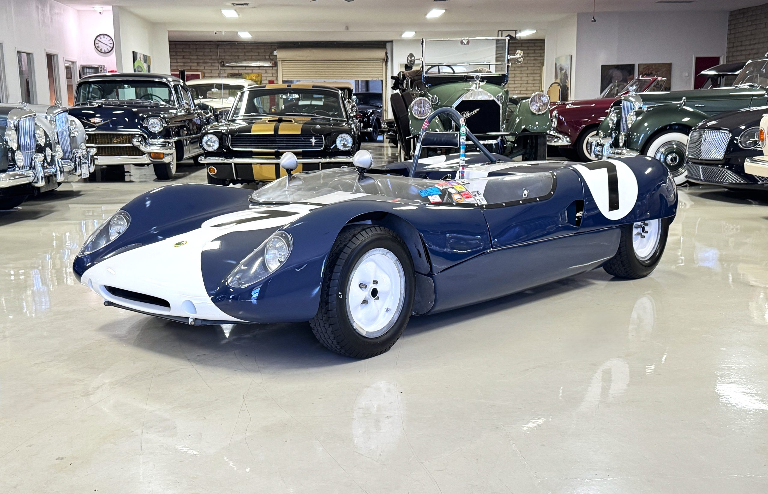 Lightweight, nimble, and utterly engaging, the 1963 Lotus 23B embodies designer Colin Chapman’s guiding principle to “simplify, then add lightness.” Built in Cheshunt, Hertfordshire, England, this mid-engine two-seater sports racer represents one of just 131 Type 23 and 23B examples produced. Weighing only 950 pounds and powered by a 1.6-liter Lotus-Ford Twin Cam engine producing approximately 135 horsepower, the Lotus 23B delivers an extraordinary balance of speed and agility. Presented here is chassis no. 23-S-97, a well-documented and race-proven California example that remains ready for competitive vintage events or curated motorsport collections.