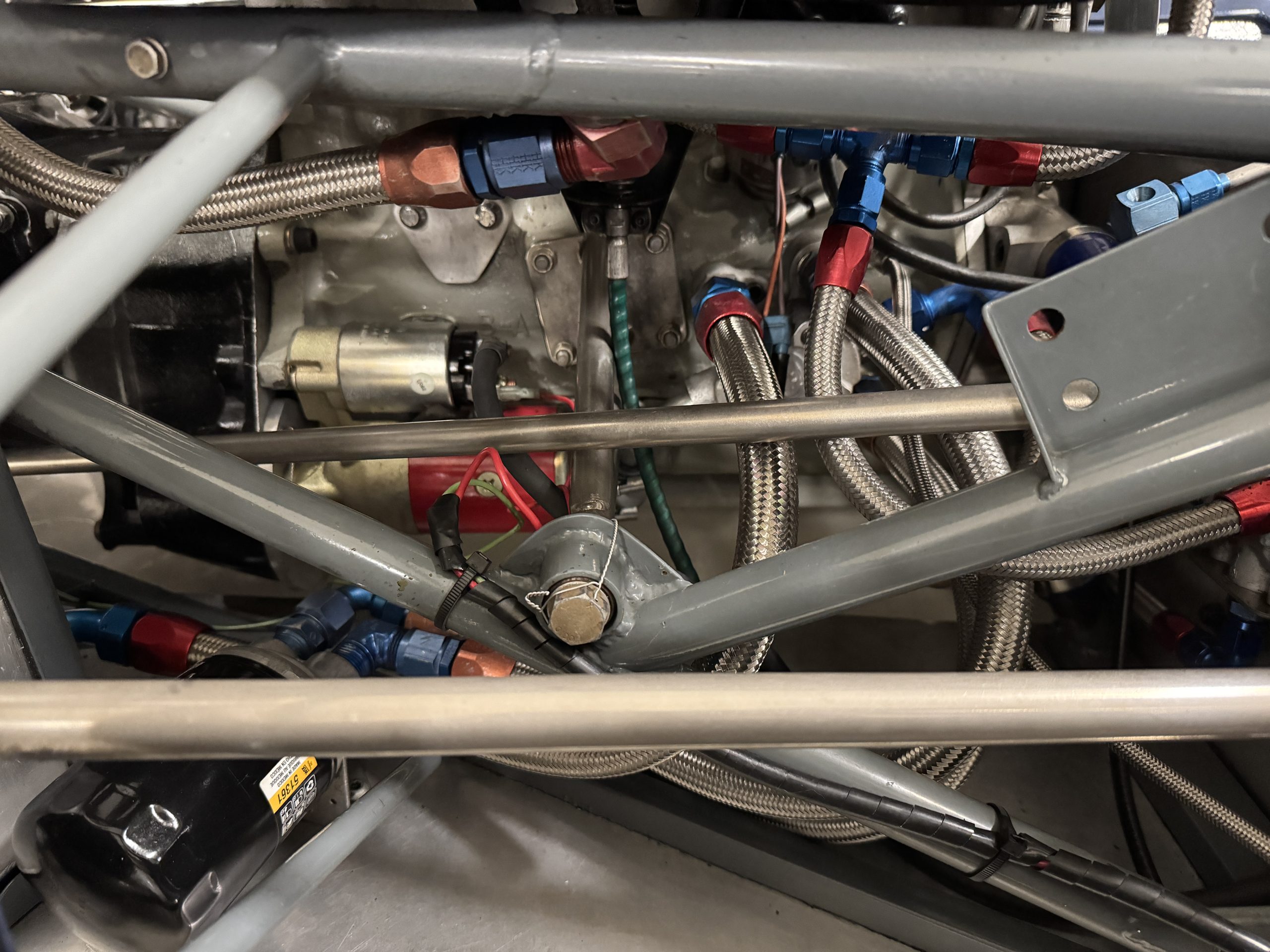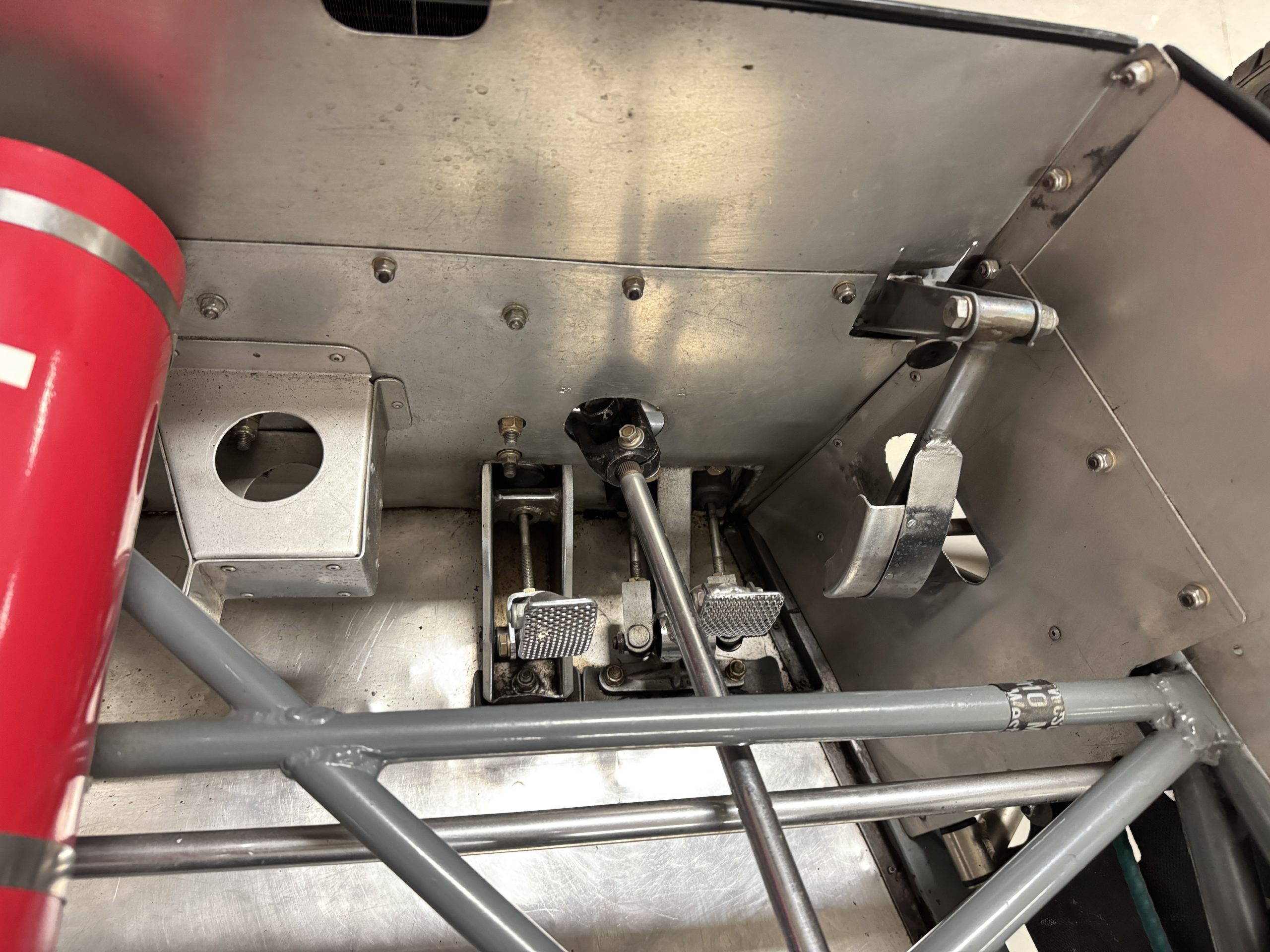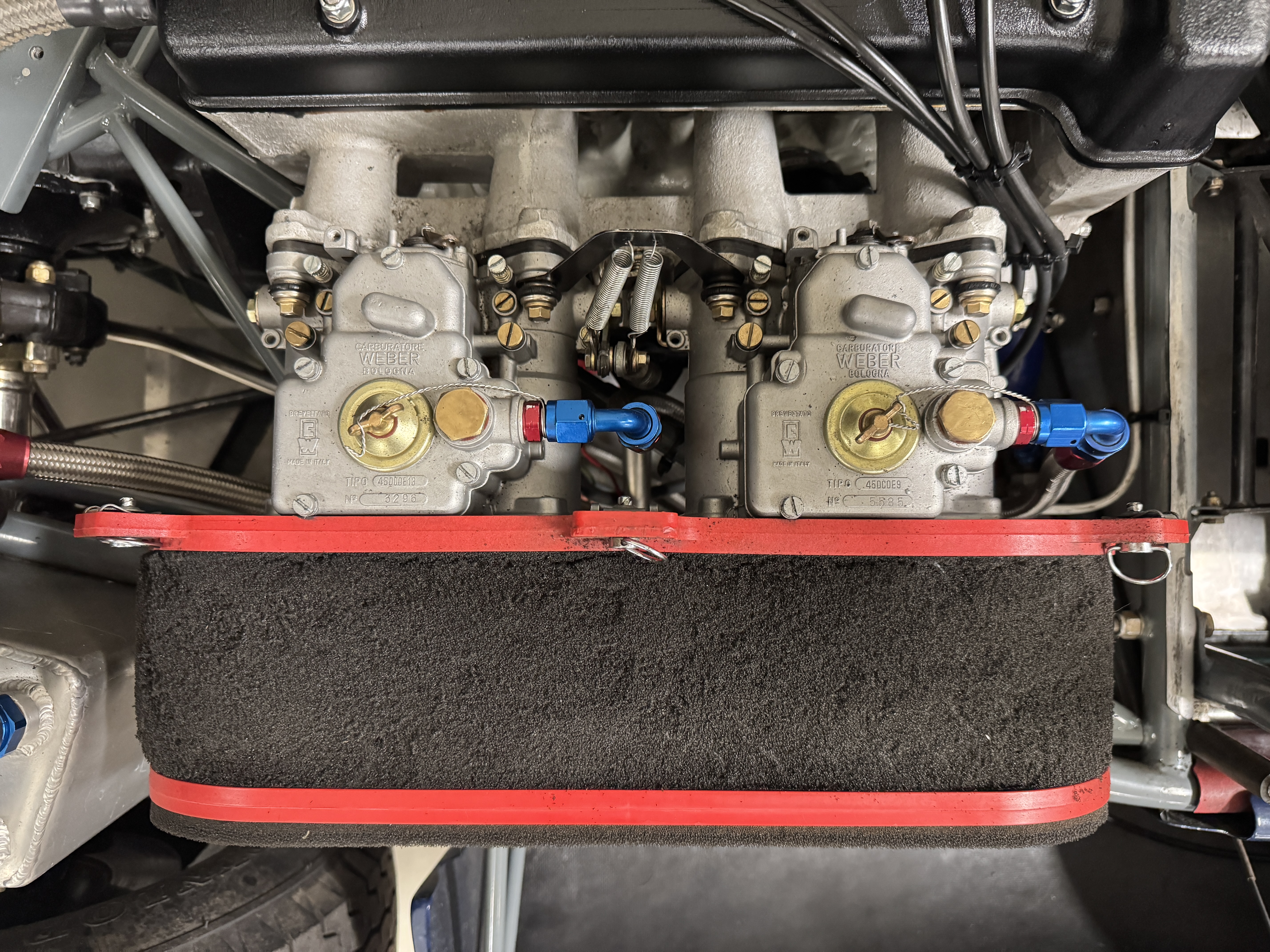 Mechanically, the 23B remains an exceptional example of Chapman’s engineering brilliance. The 1.6-liter Lotus-Ford Twin Cam engine, fitted with Weber carburetors and rebuilt by Slade Engines in Salinas, California, produces approximately 135 horsepower, transmitted through a five-speed Hewland transaxle. The spaceframe chassis, engineered for lightness and rigidity, uses widened tubes to accommodate the increased torque of the upgraded engine. Suspension geometry features double wishbones, rack-and-pinion steering, and fully independent coil-spring setups, with Girling disc brakes at all four corners. The battery is new, but this Lotus will need new tires, new seatbelts and a fluid change before being ready to hit the track again. The car’s frame tubes serve as coolant and oil conduits, reducing plumbing weight and complexity. The result is a 950-pound machine with sharp reflexes and remarkable composure, capable of outperforming larger-displacement competitors on technical circuits.