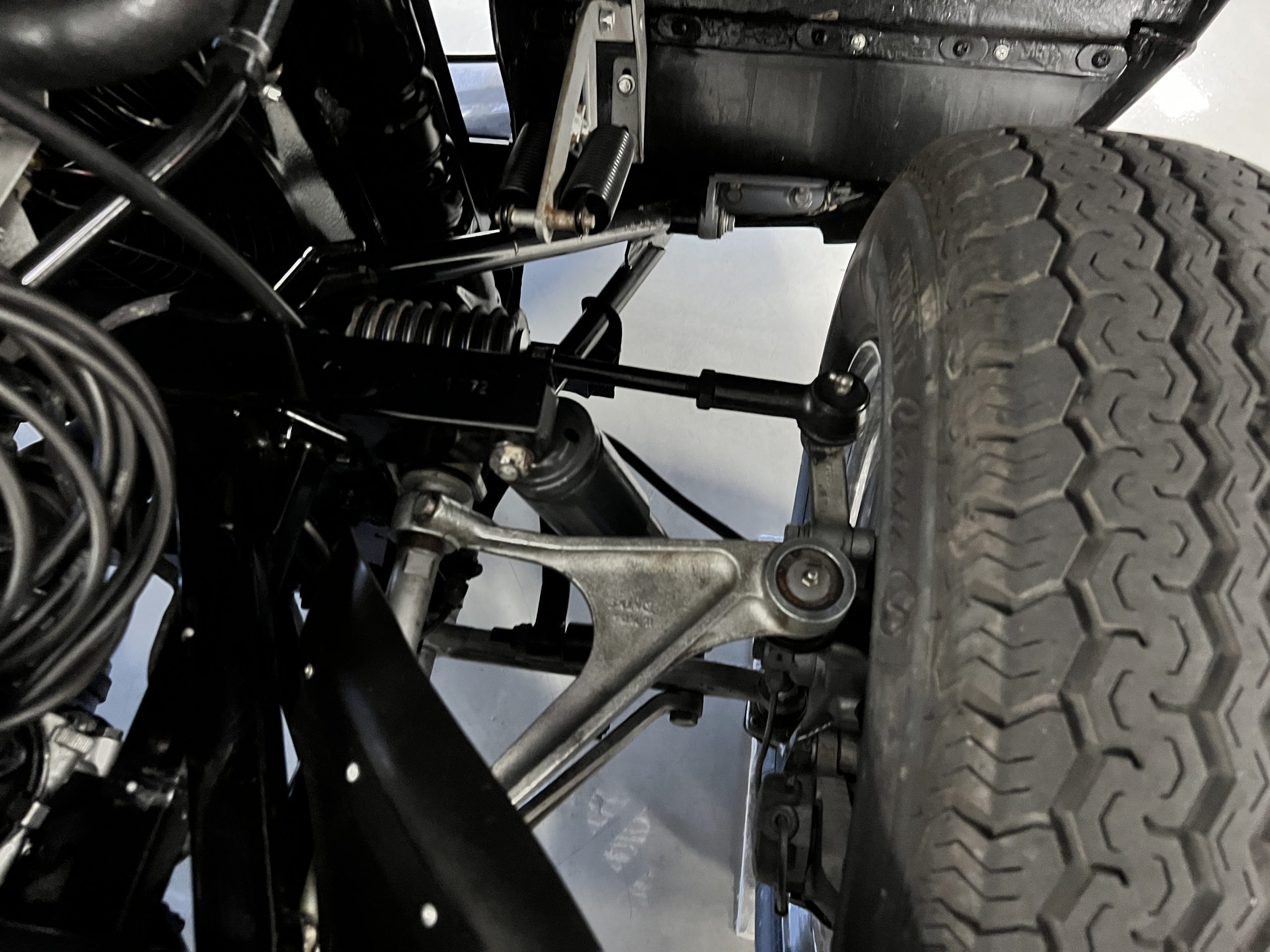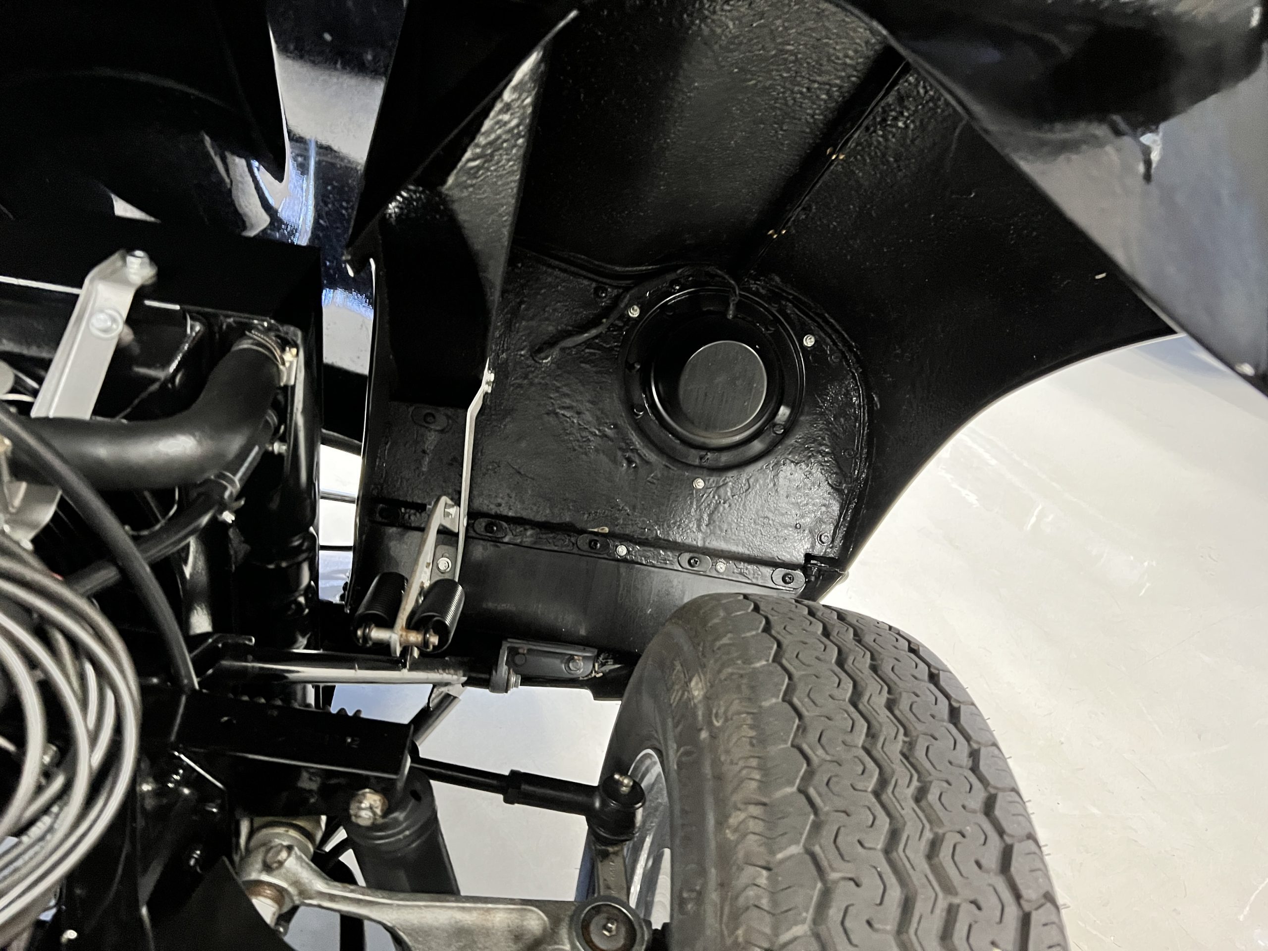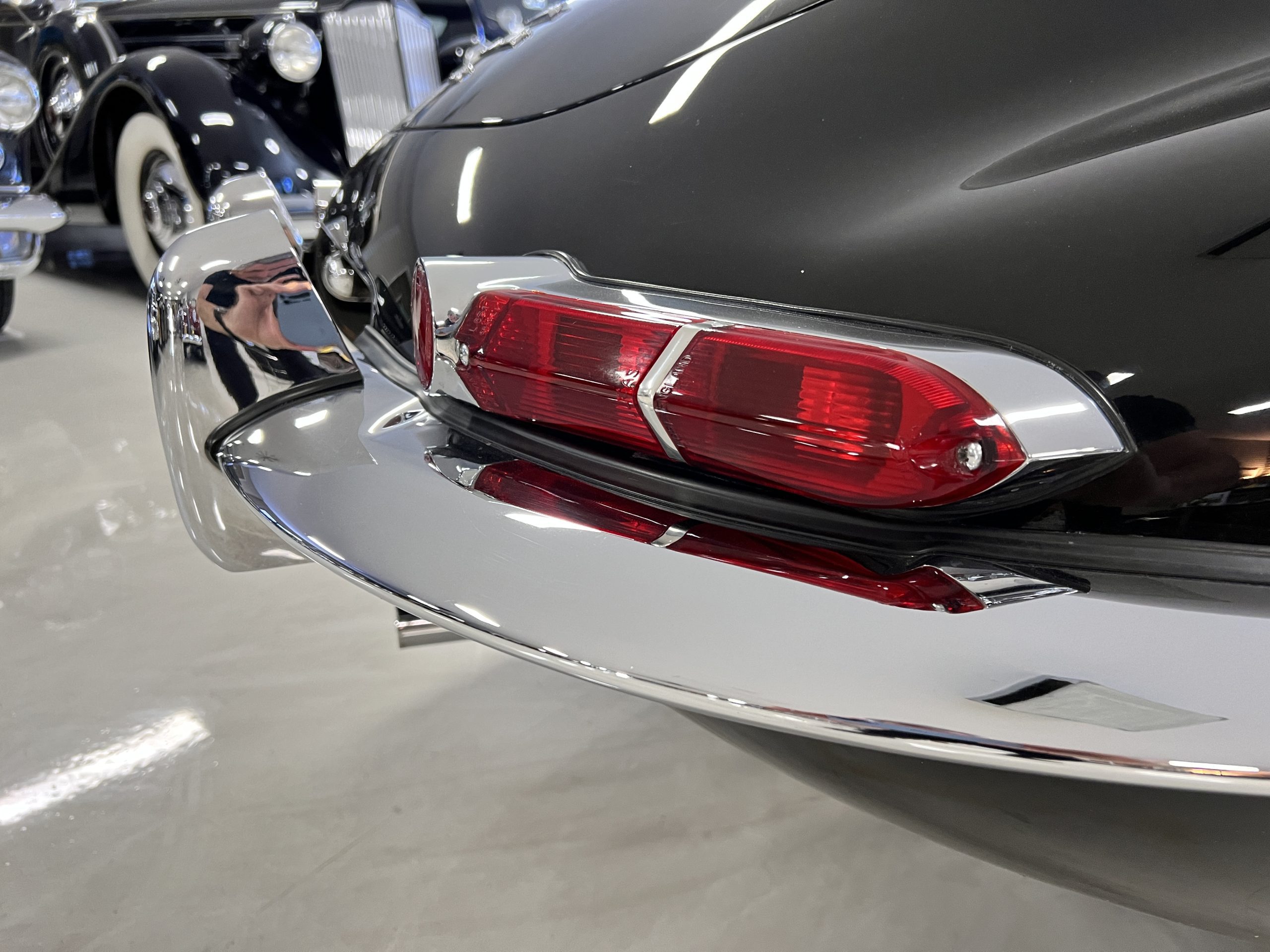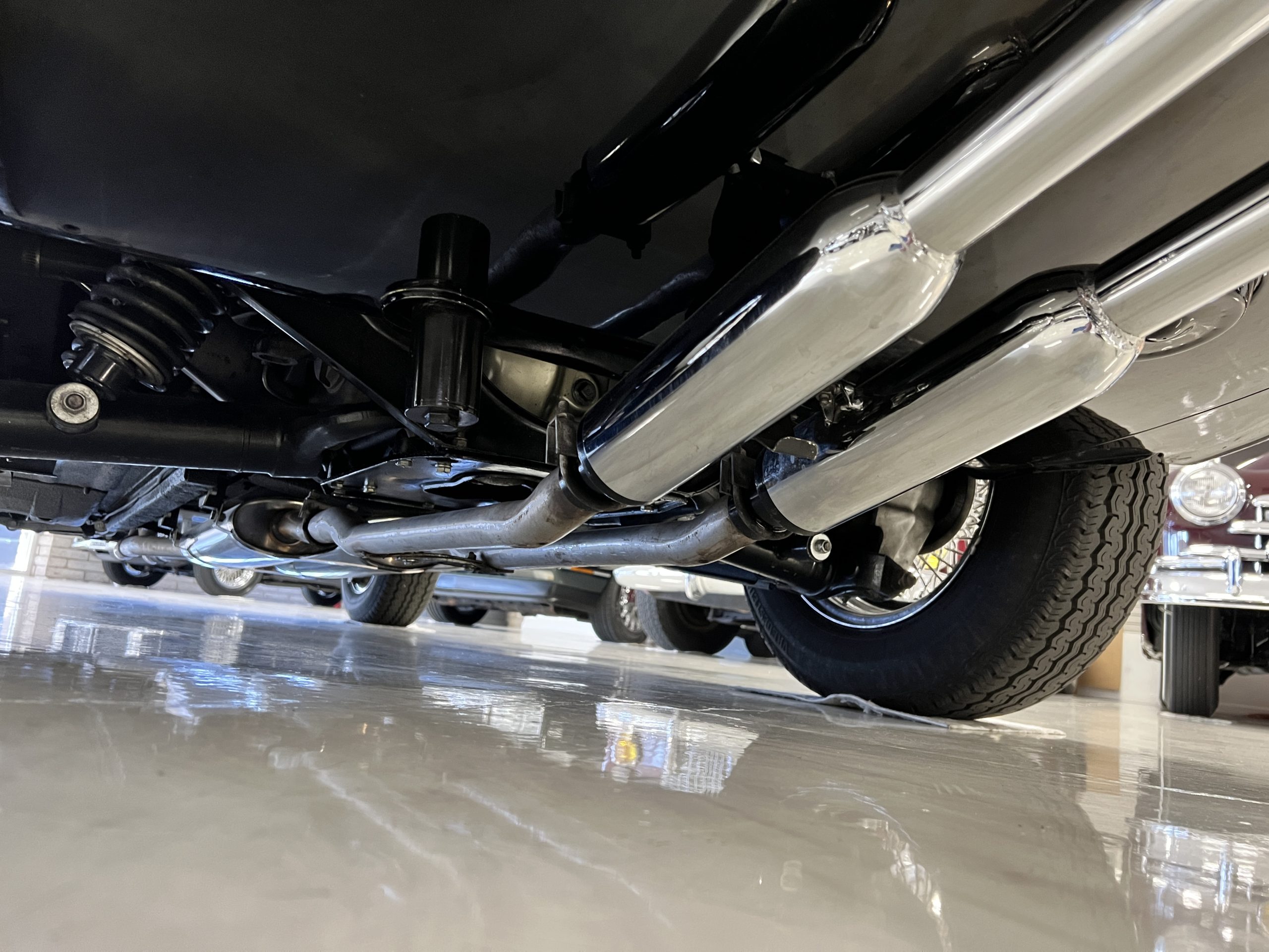 The black livery today is simply stunning. It is polished brilliantly and contrasted with perfect chrome and stainless-steel trim. The panel gaps are all perfect and the panels are straight and true. The chrome wire wheels with proper knock offs are as-new in all respects. We love the classic look of the covered headlight covers.