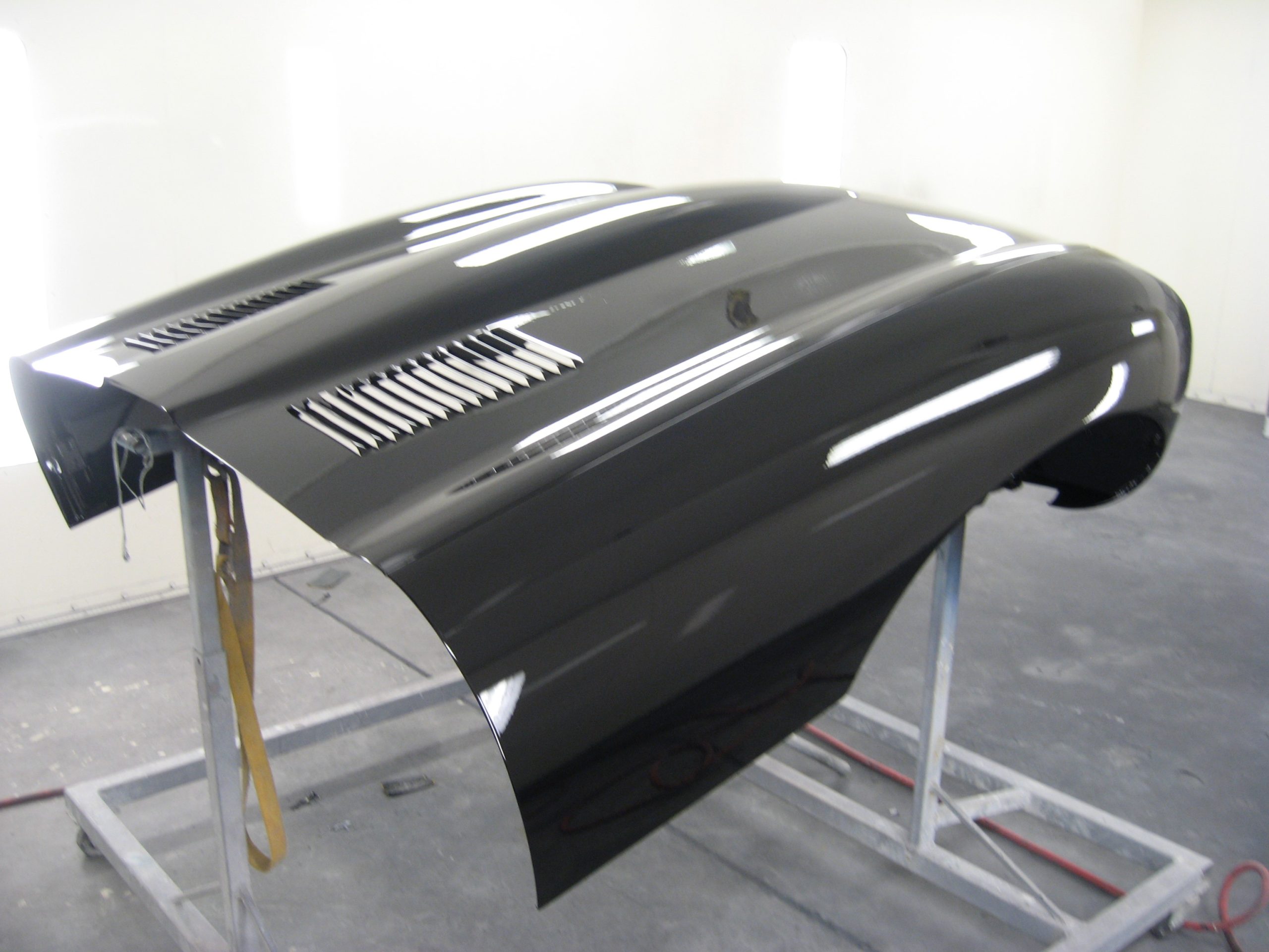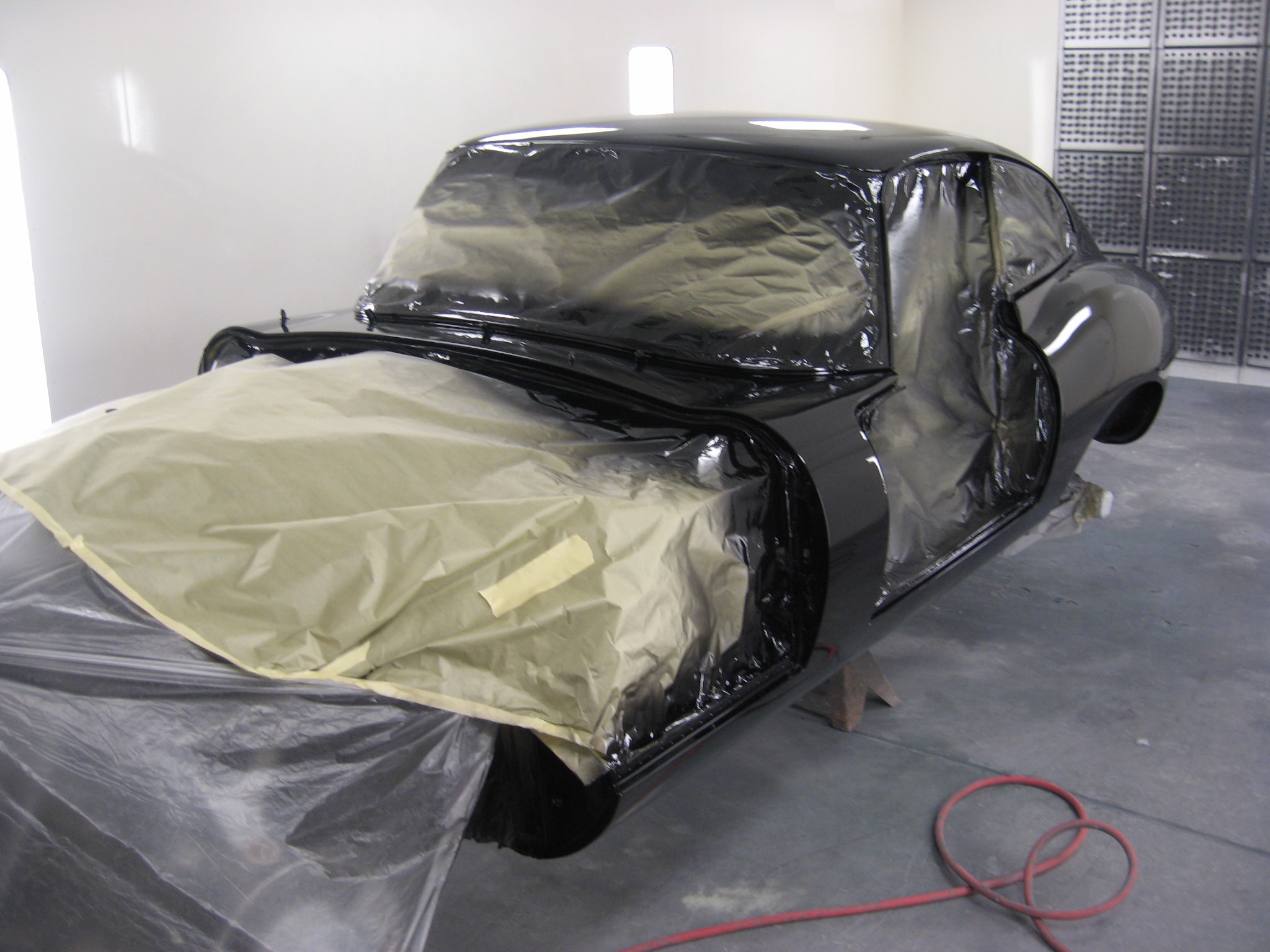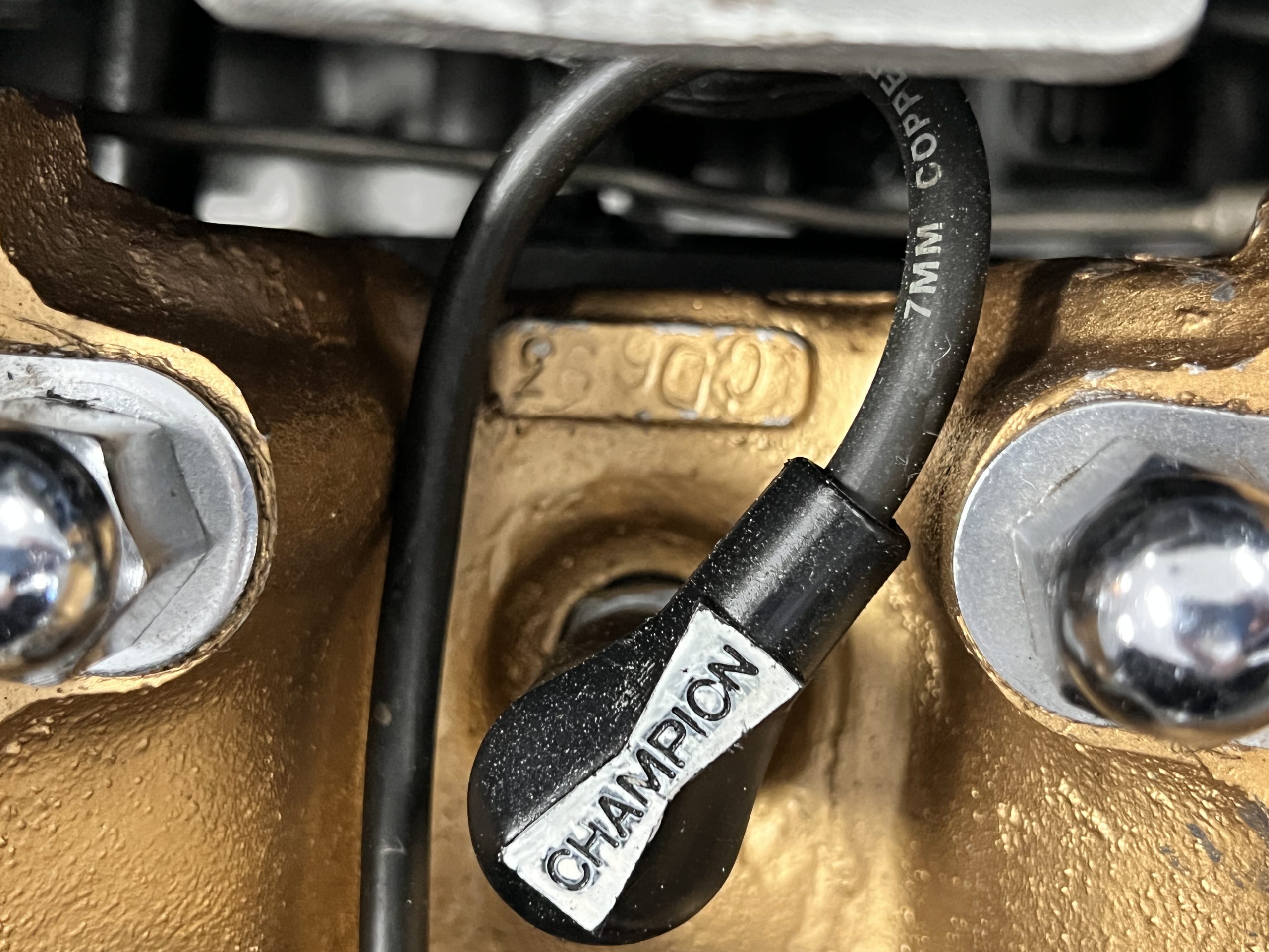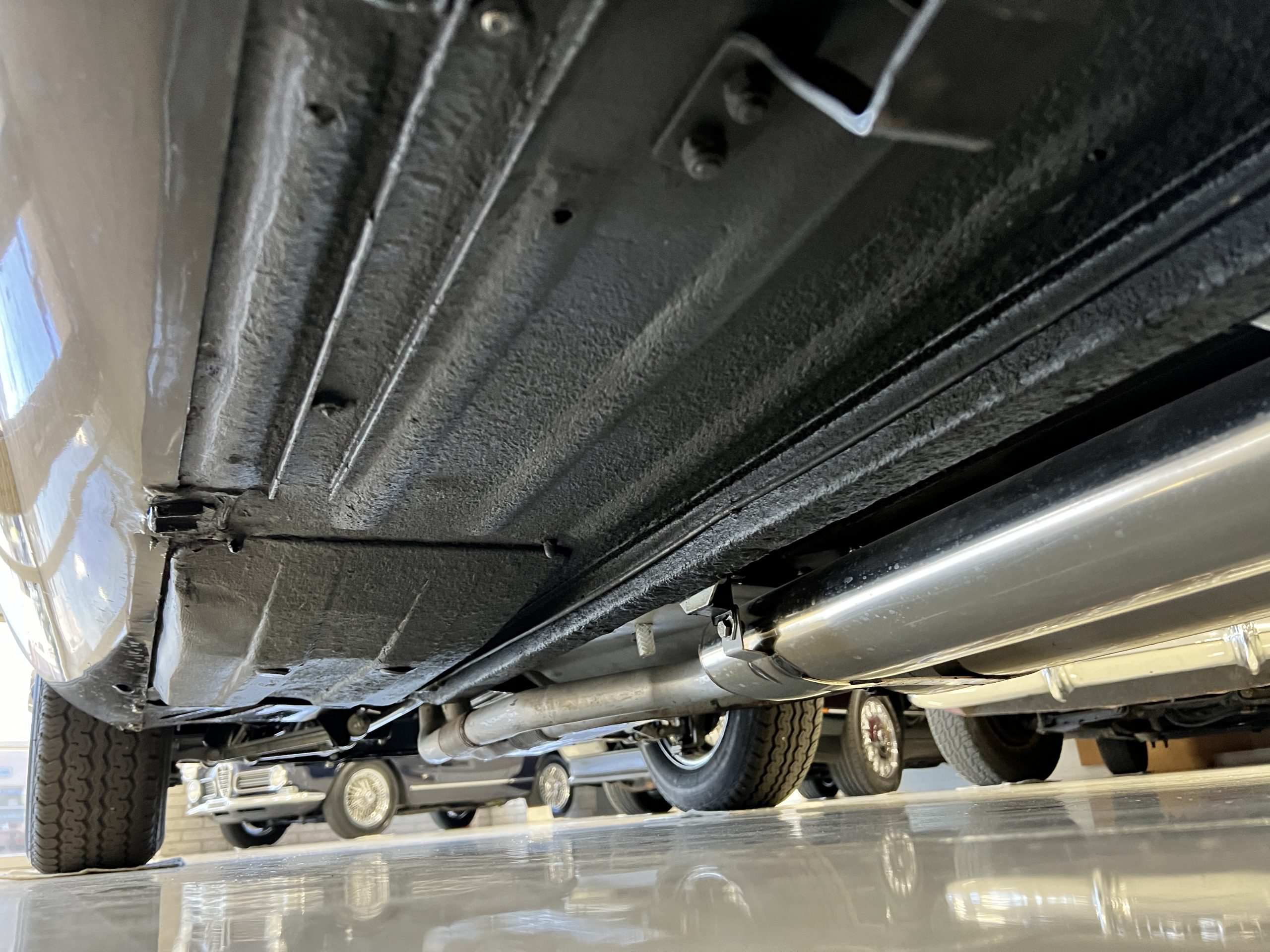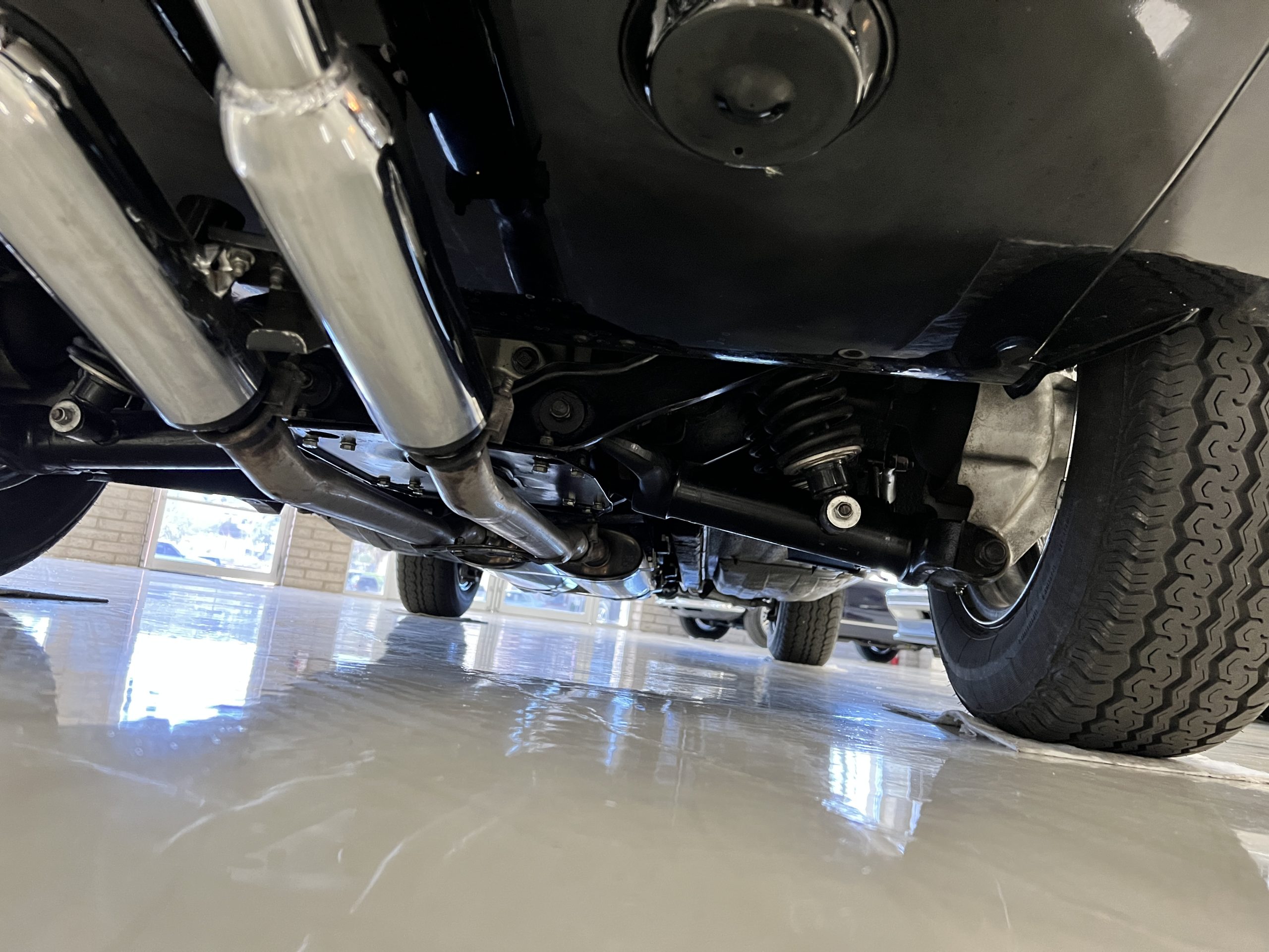 The black livery today is simply stunning. It is polished brilliantly and contrasted with perfect chrome and stainless-steel trim. The panel gaps are all perfect and the panels are straight and true. The chrome wire wheels with proper knock offs are as-new in all respects. We love the classic look of the covered headlight covers.