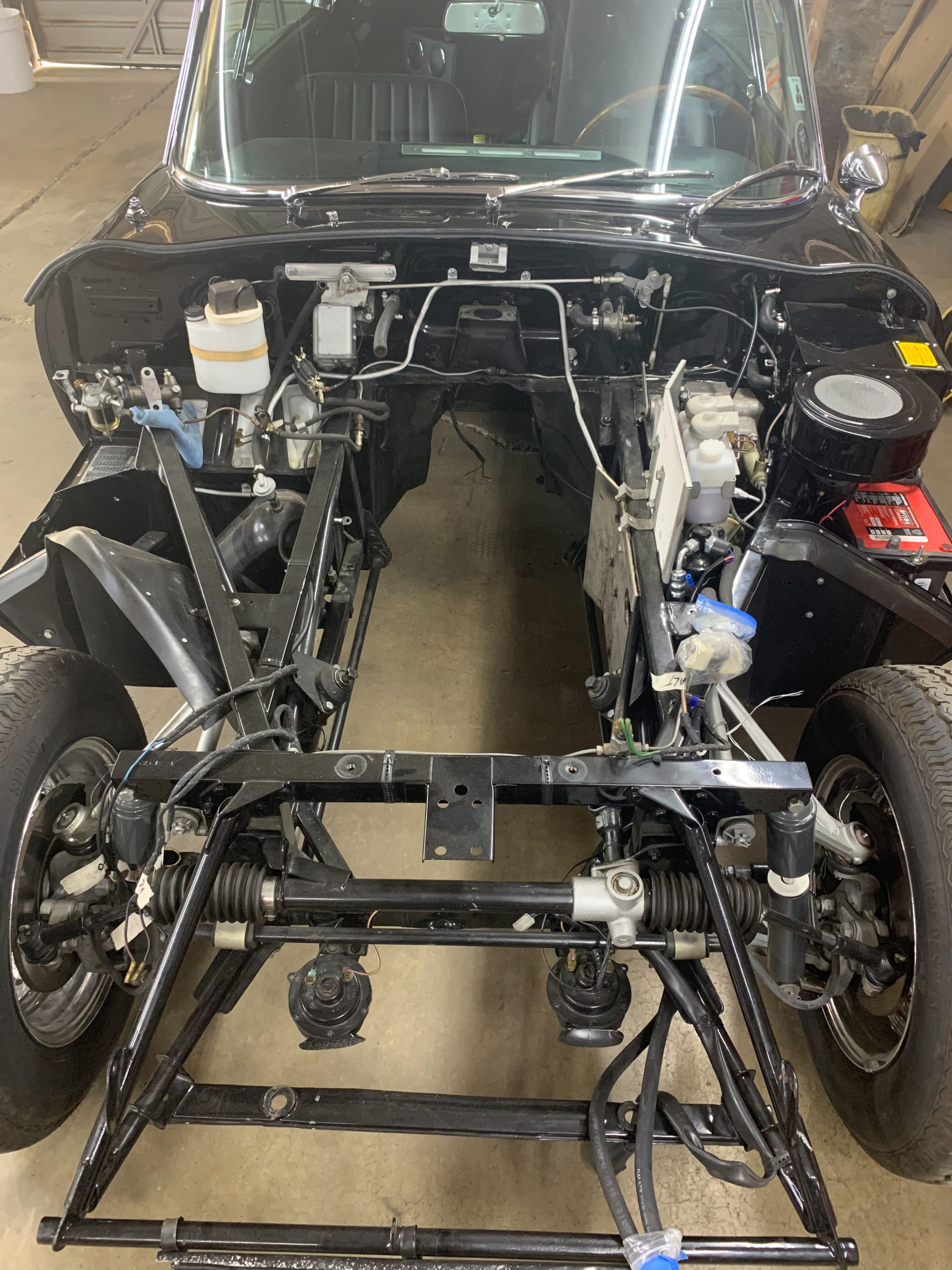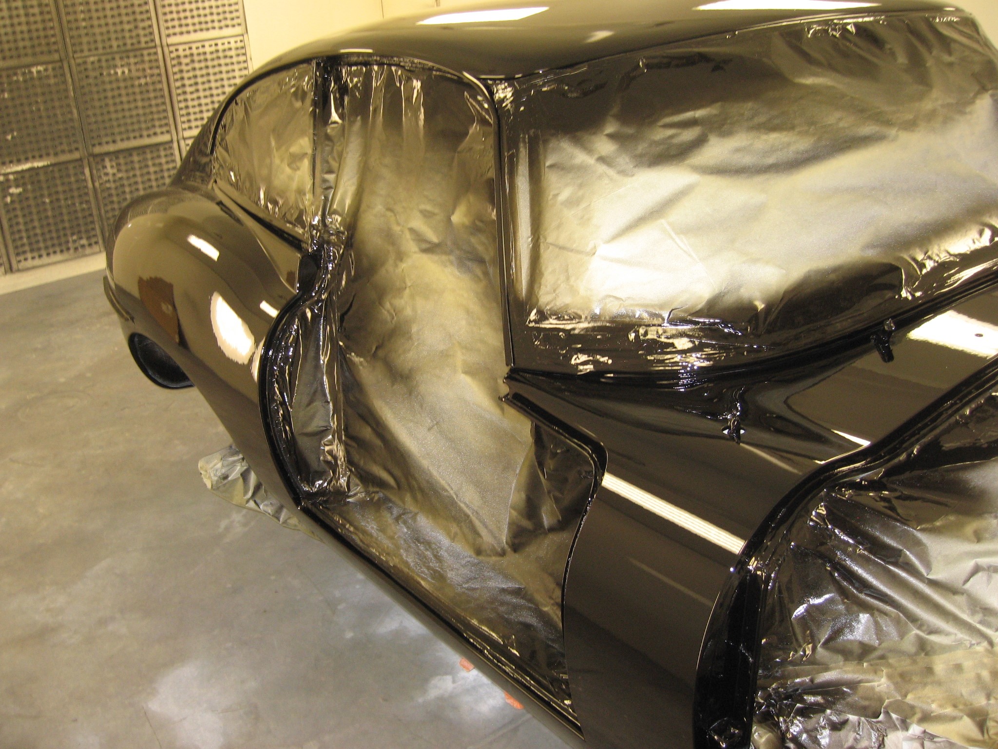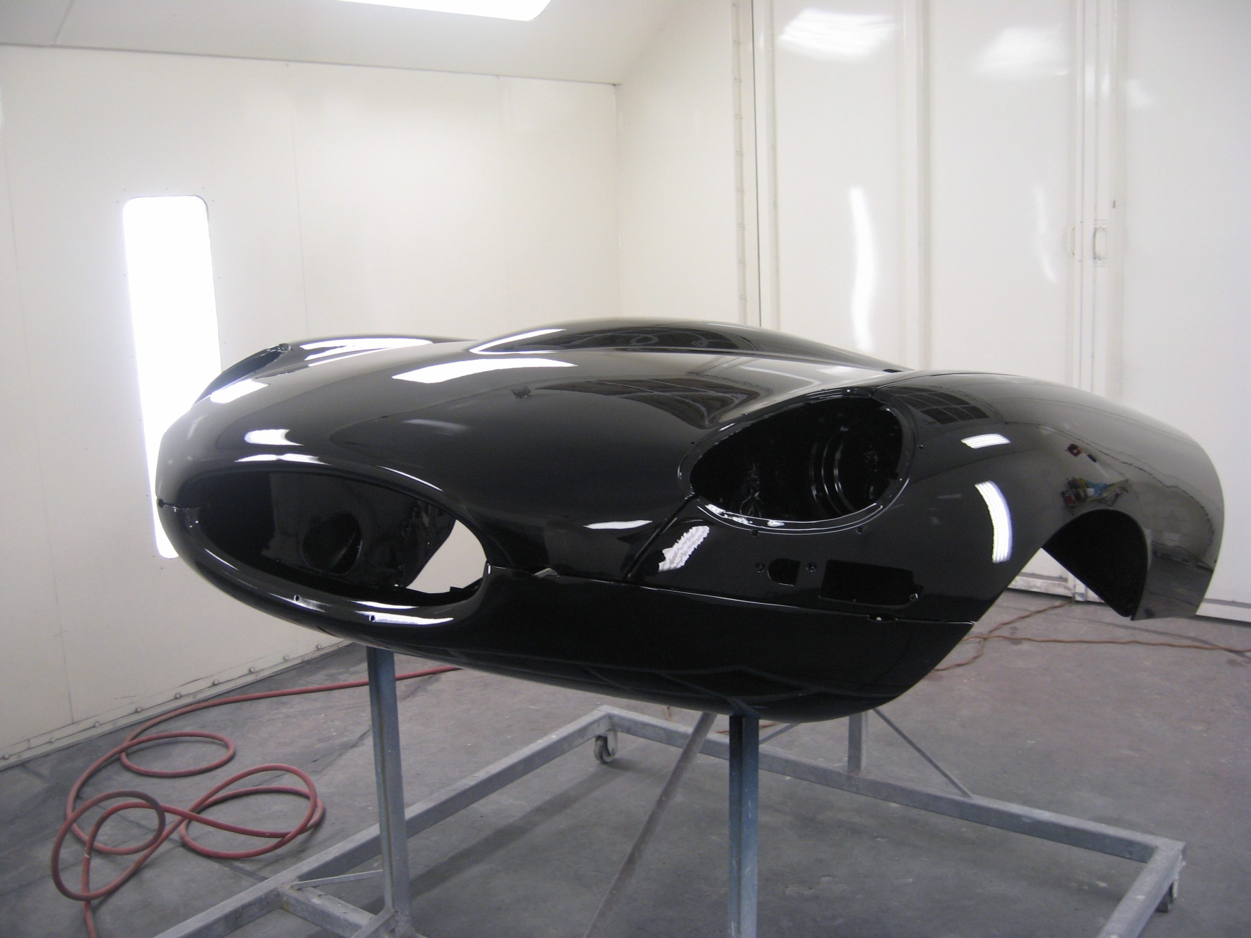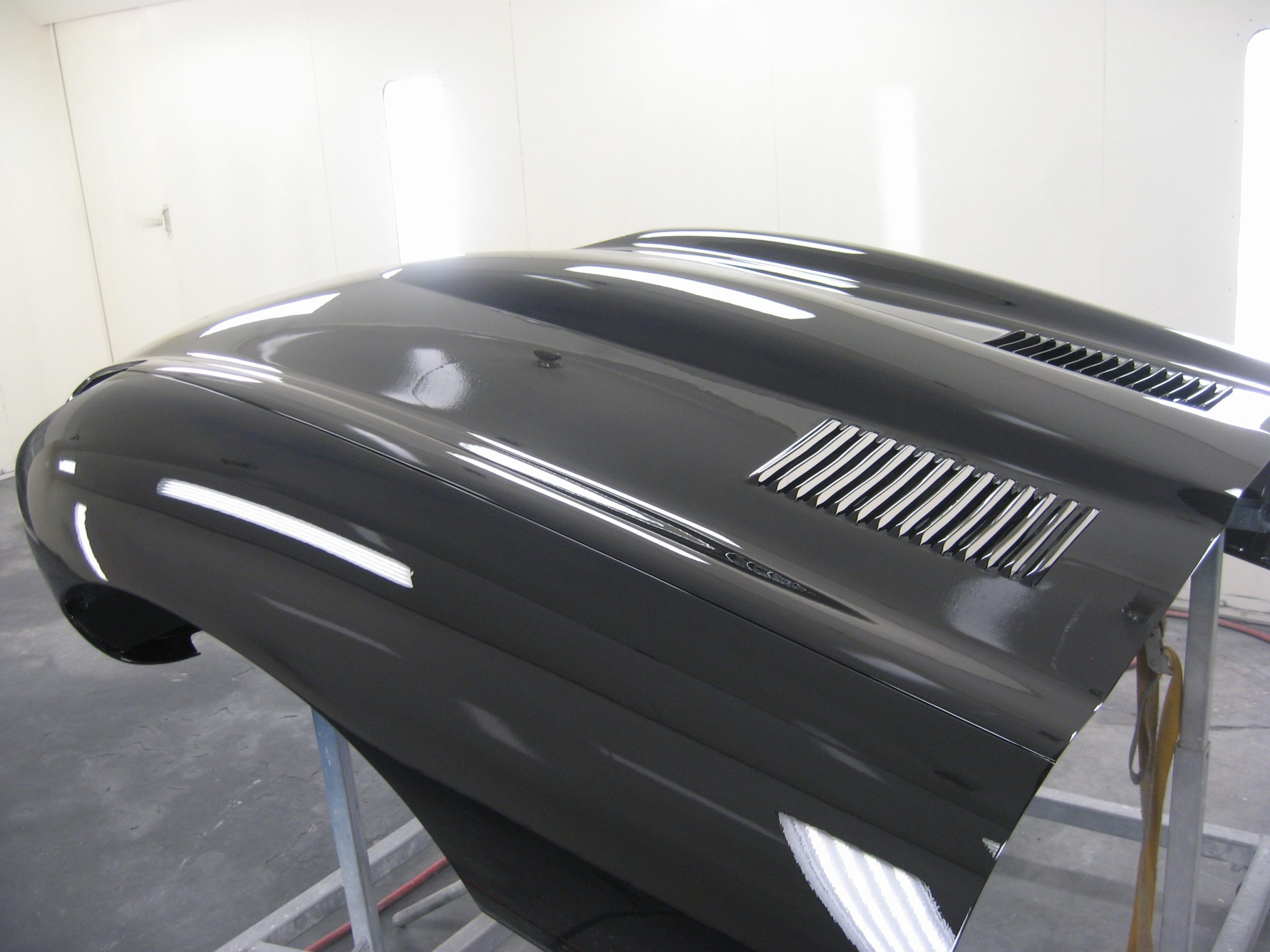 The black livery today is simply stunning. It is polished brilliantly and contrasted with perfect chrome and stainless-steel trim. The panel gaps are all perfect and the panels are straight and true. The chrome wire wheels with proper knock offs are as-new in all respects. We love the classic look of the covered headlight covers.