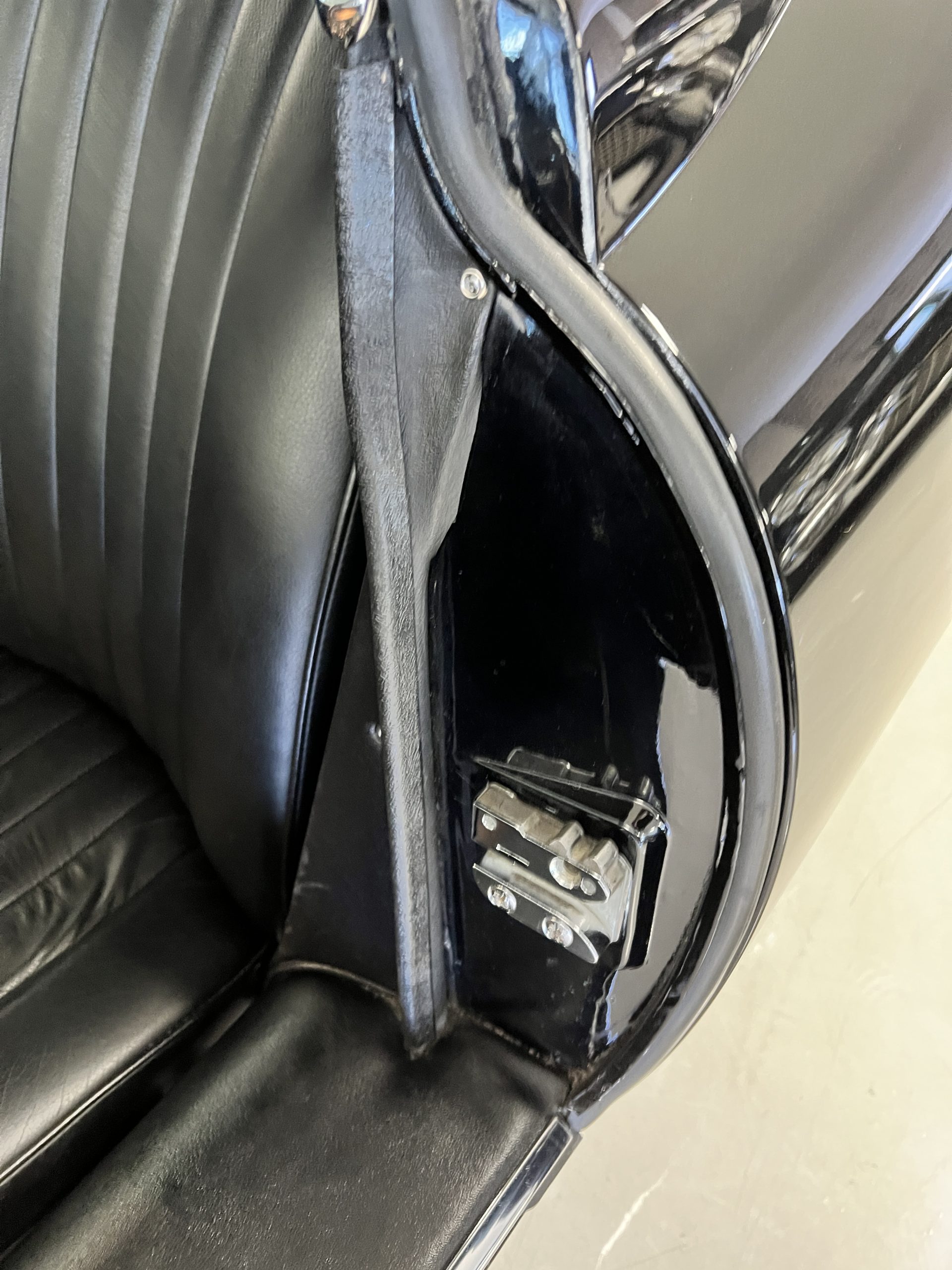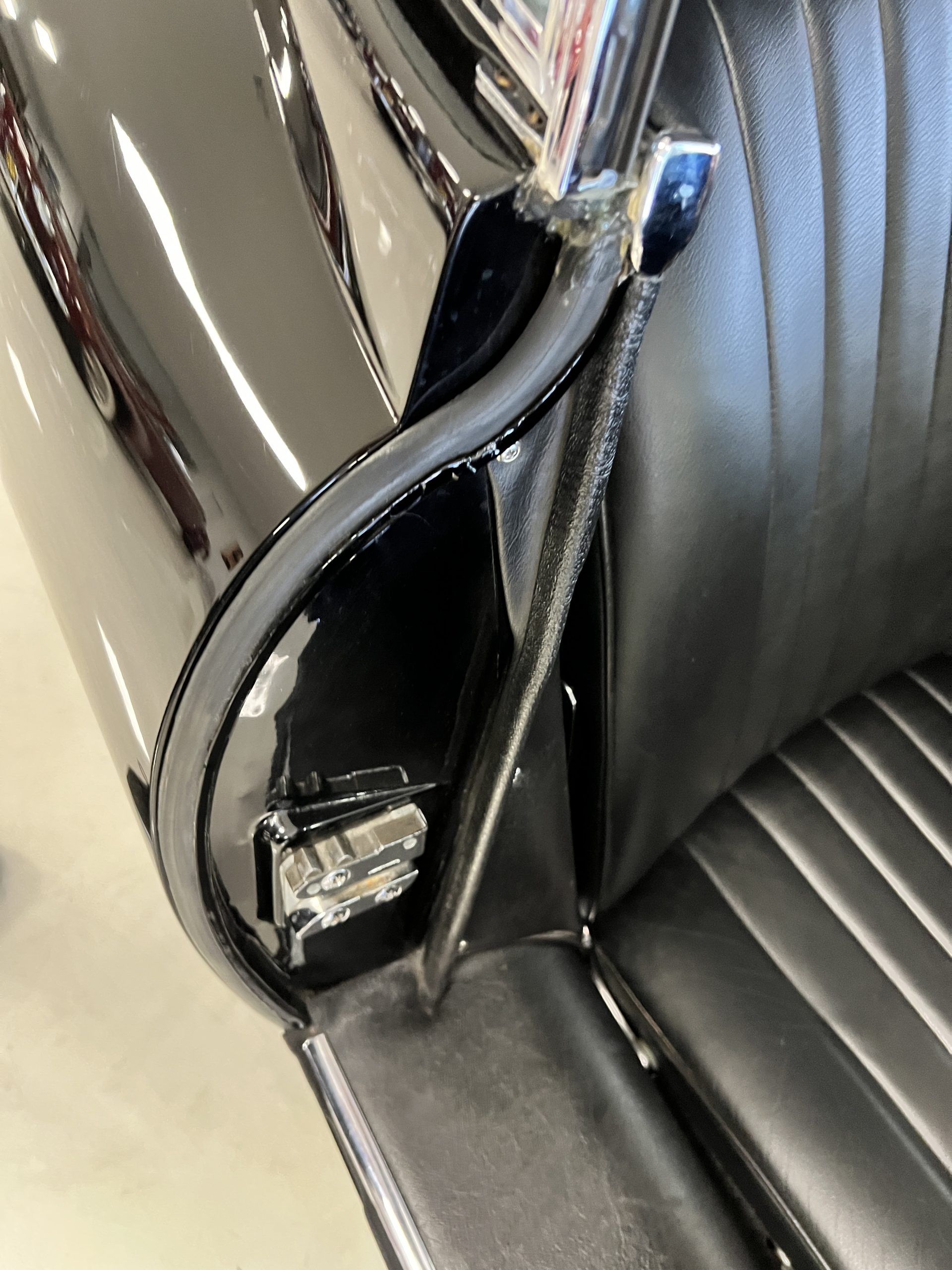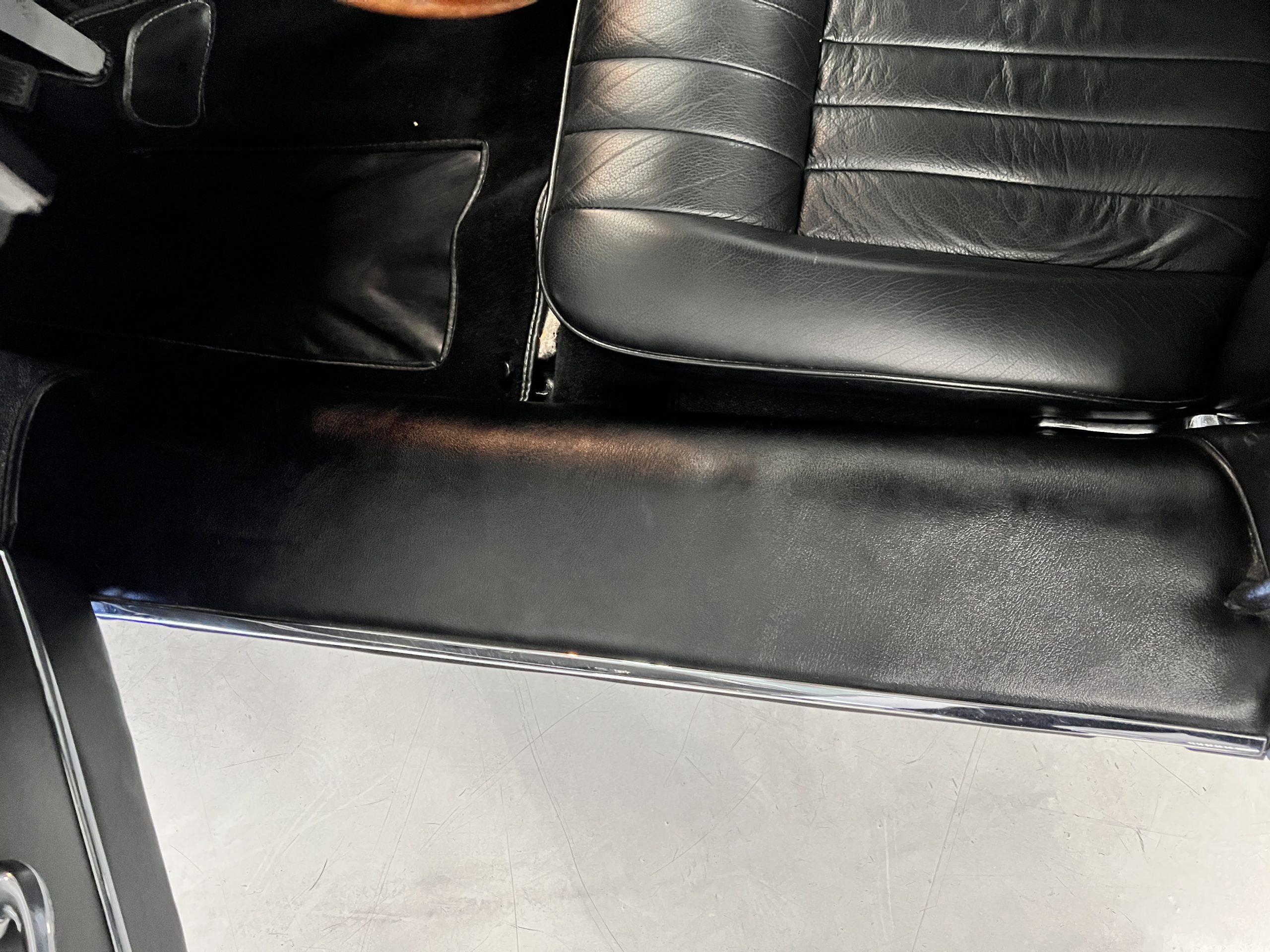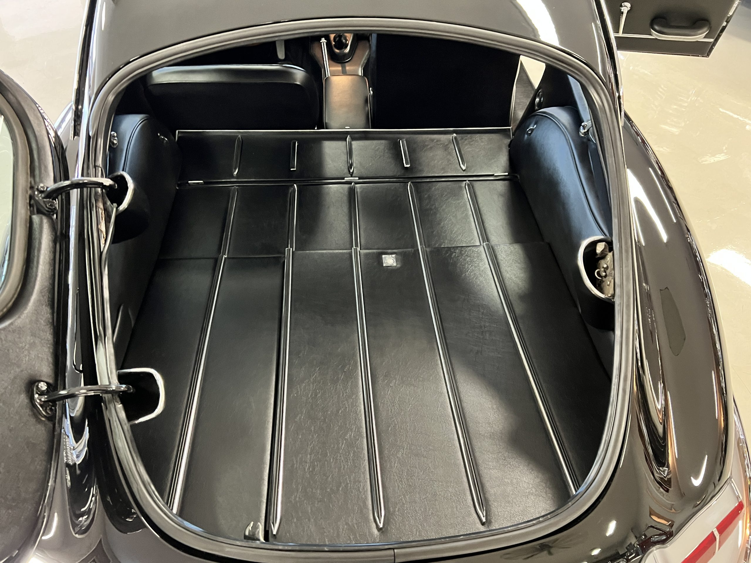 The black leather interior is also as-new and the leather is soft and supple as one would expect. Everything within the interior looks as-new and in fantastic condition. All of the instrumentation works as they should. We noticed light scratching on the driver’s door tinting from normal use. As mentioned, the air conditioning is beautifully installed where the stereo was normally housed. (The parts removed to fit the air conditioning are included with the car if it was desired to return it to original.) The air flow is excellent, working brilliantly here in Phoenix.
