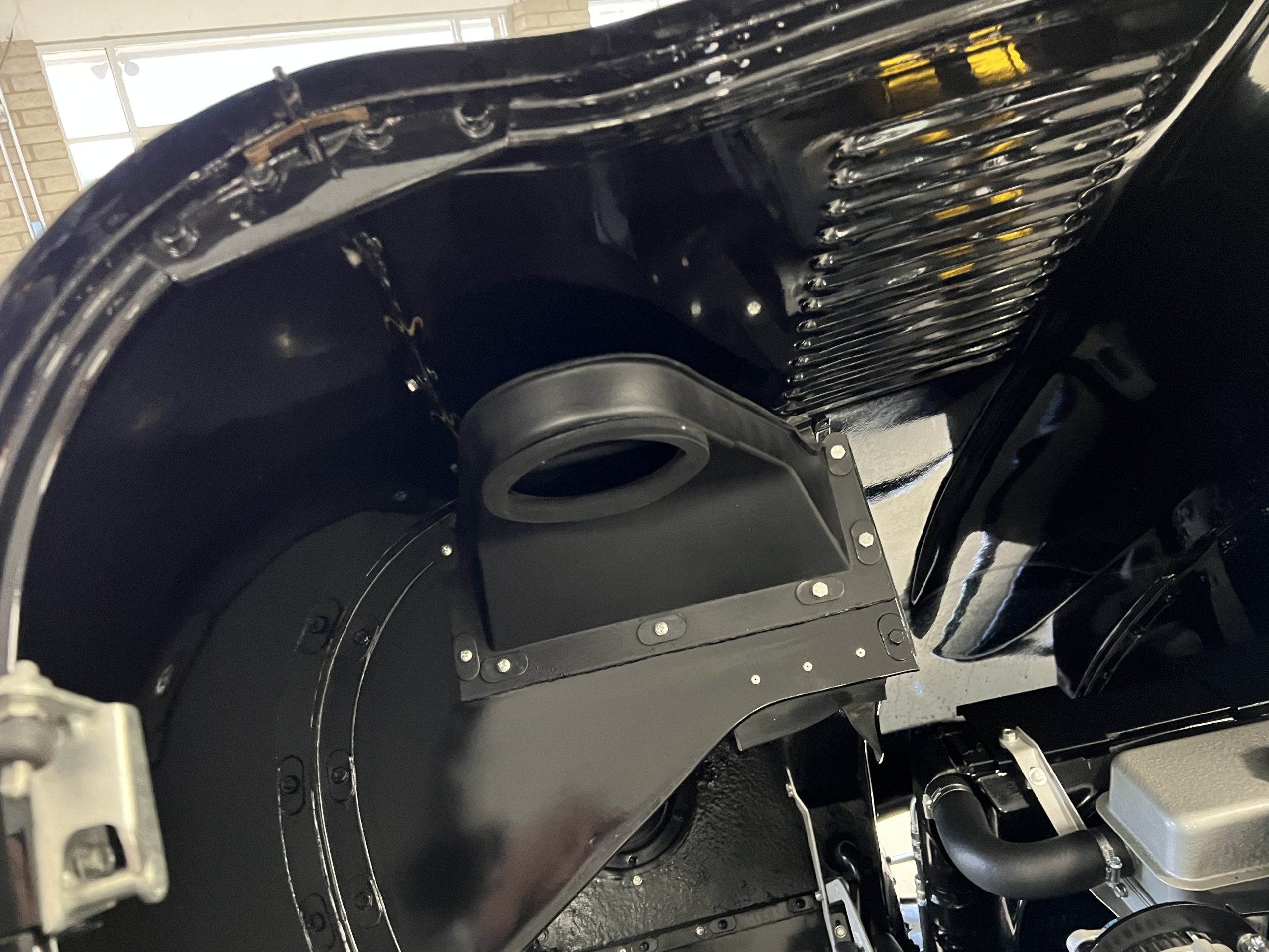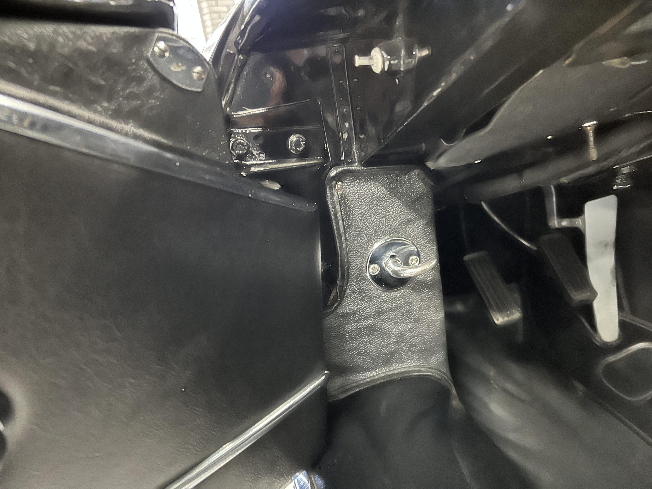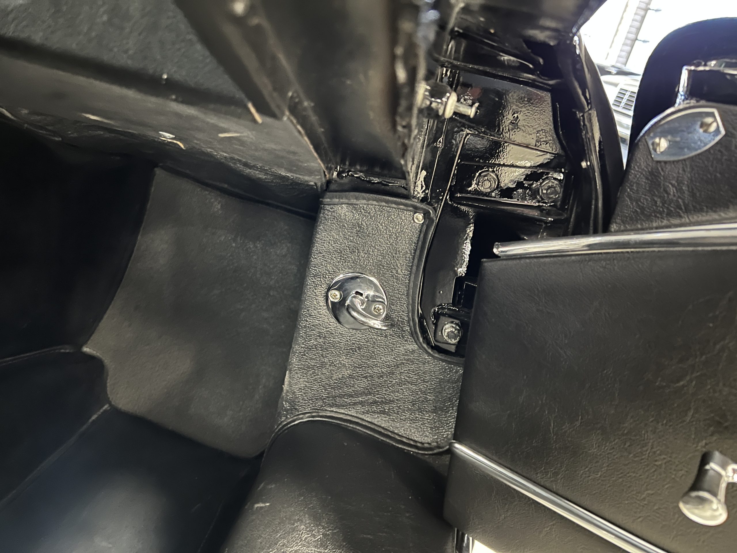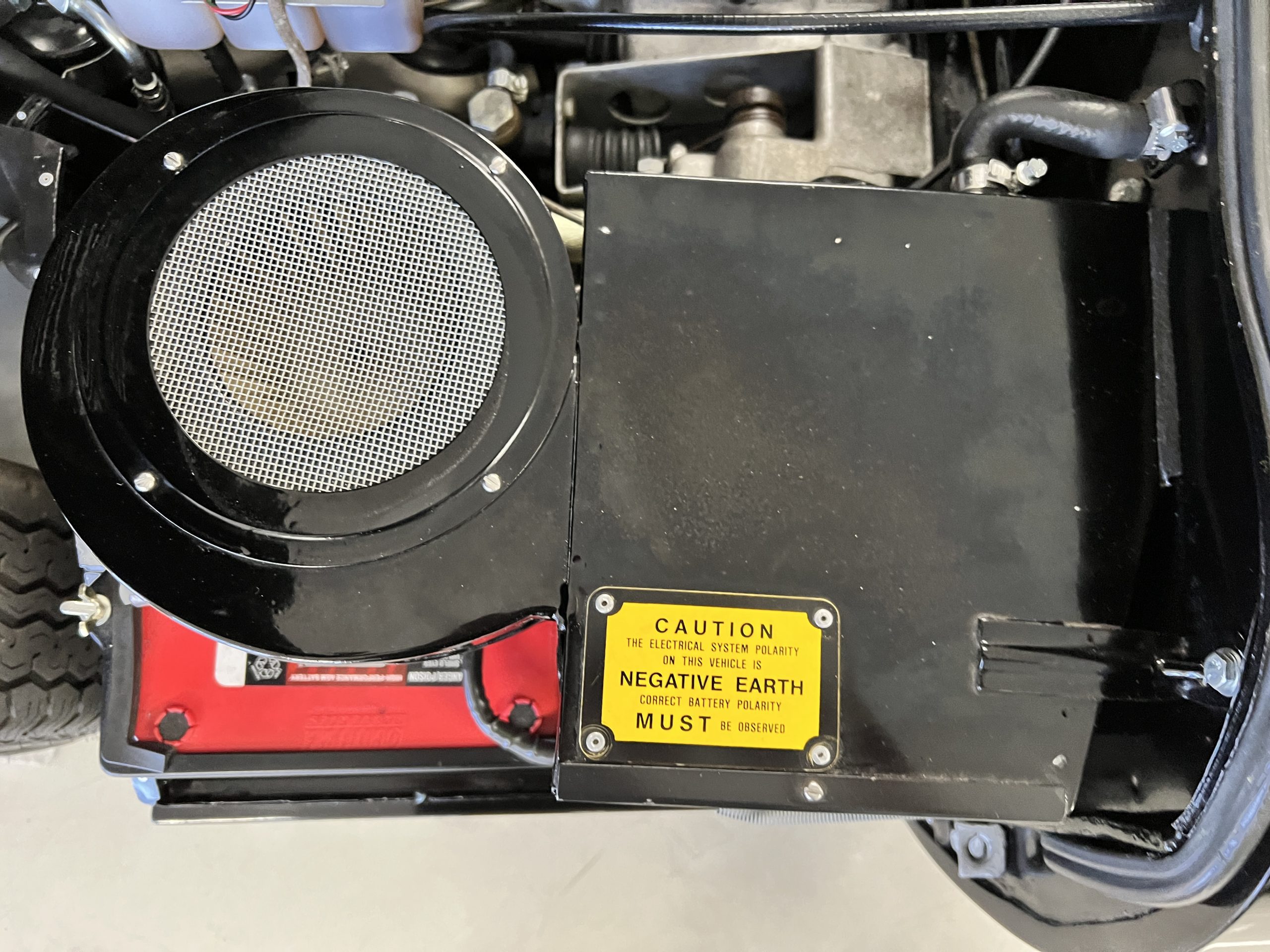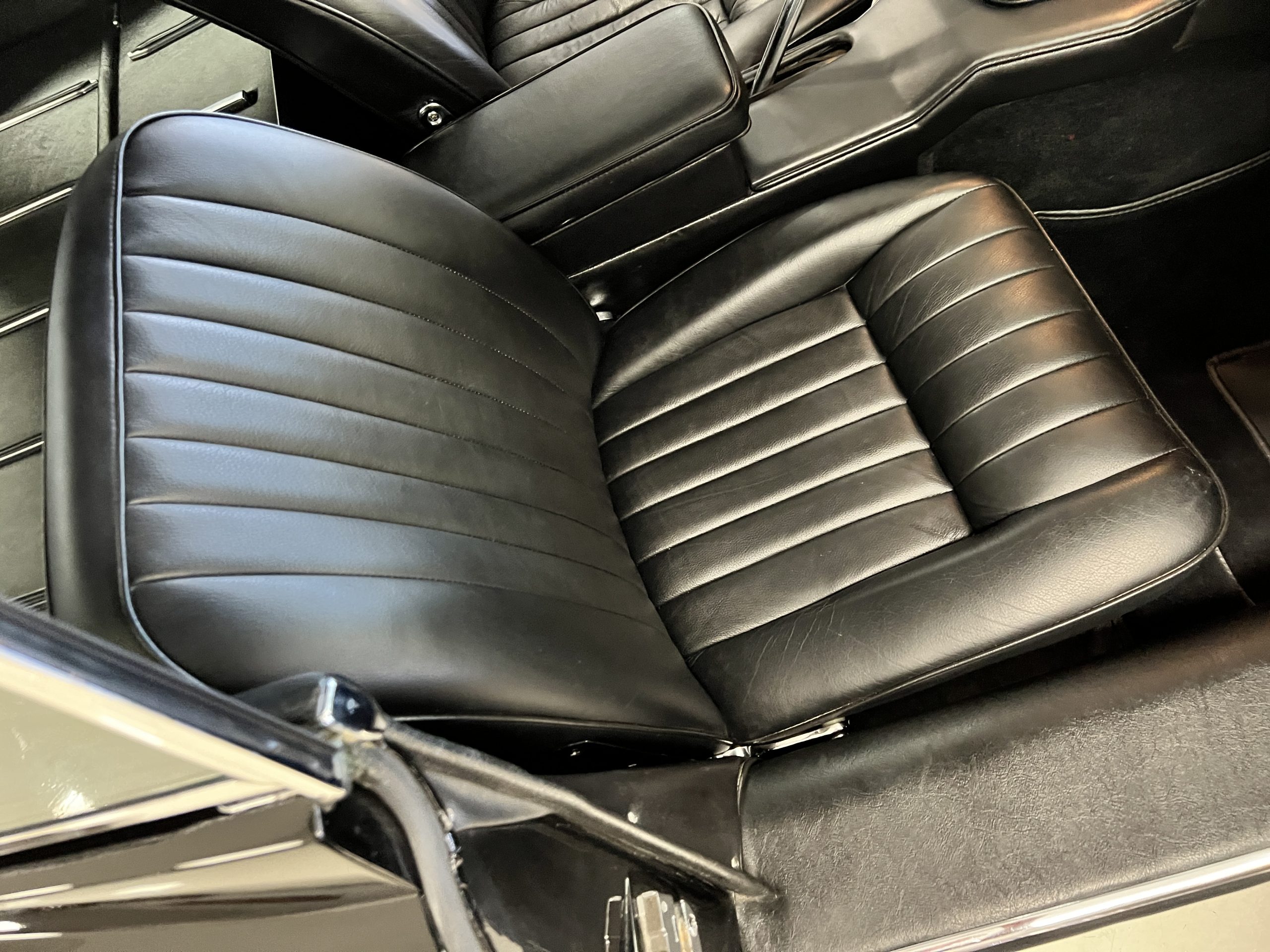 The black leather interior is also as-new and the leather is soft and supple as one would expect. Everything within the interior looks as-new and in fantastic condition. All of the instrumentation works as they should. We noticed light scratching on the driver’s door tinting from normal use. As mentioned, the air conditioning is beautifully installed where the stereo was normally housed. (The parts removed to fit the air conditioning are included with the car if it was desired to return it to original.) The air flow is excellent, working brilliantly here in Phoenix.