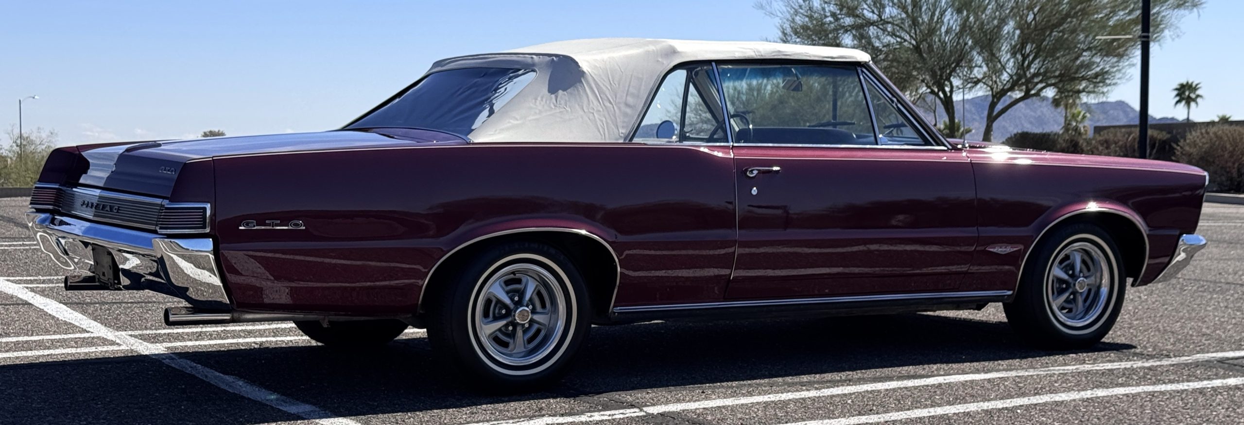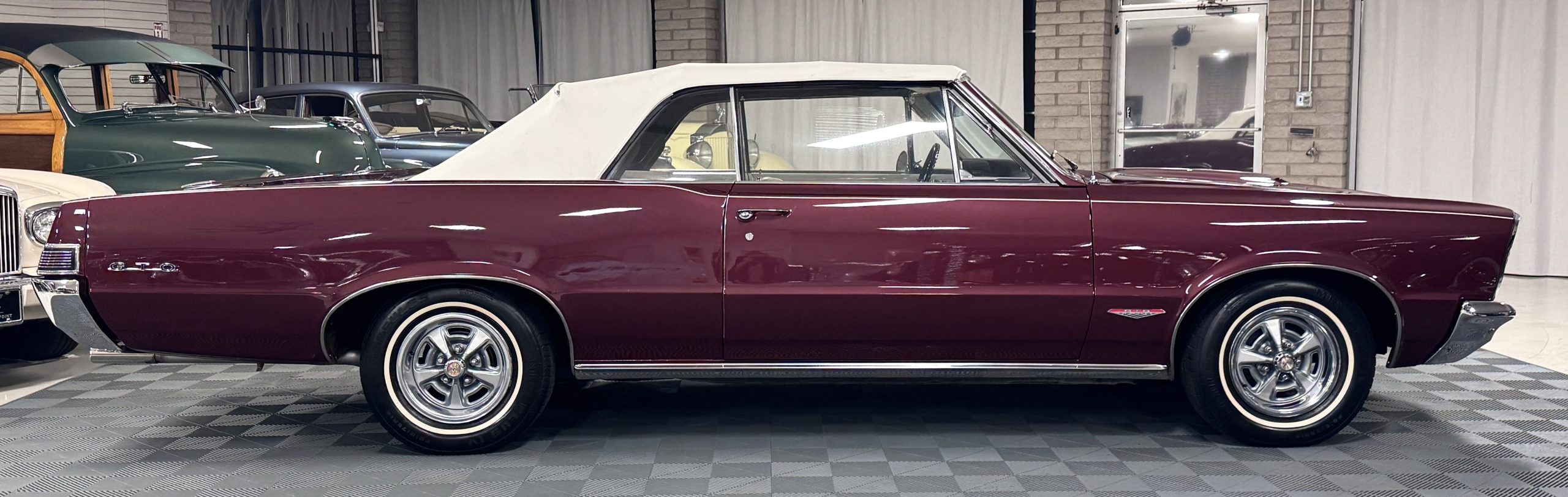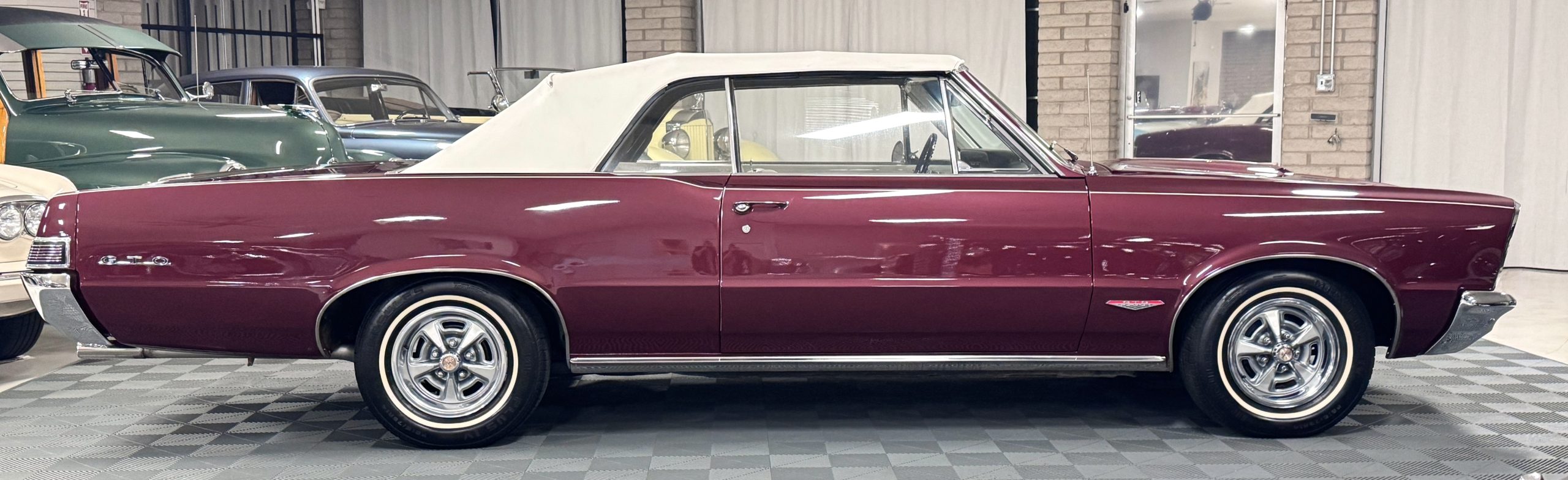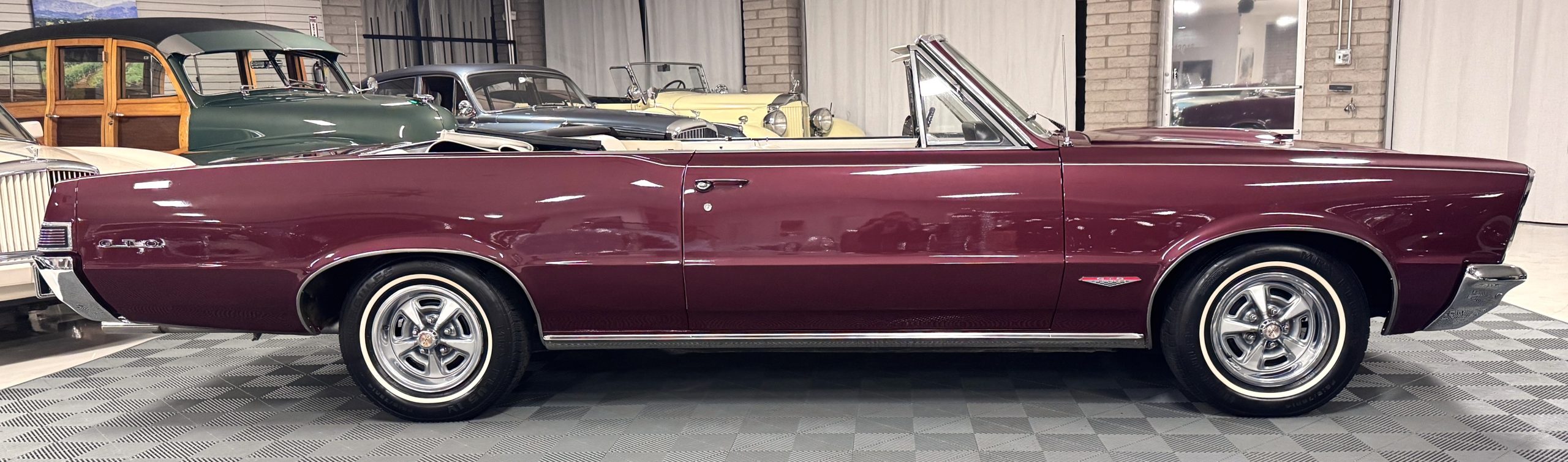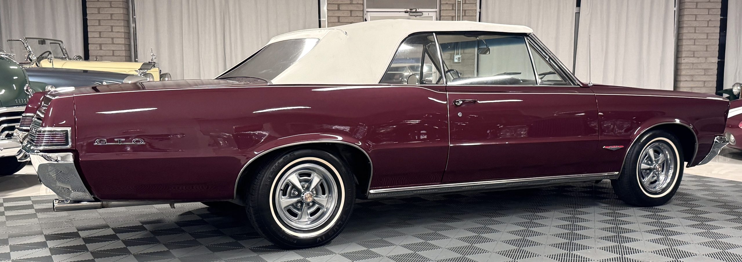 SOLD! This 1965 Pontiac GTO Convertible is a beautiful restored, WT engine, well-documented example that is in excellent mechanical condition with only 32,000 miles! The GTO is in excellent condition finished in Burgundy Red Poly over a Parchment interior with a white power-retractable top. The engine is the desirable original 389ci V-8 with Tri-Power paired to the four-speed manual synchromesh transmission. The GTO underwent a frame-off restoration to factory specifications and is in excellent overall condition. This GTO is ready to wow at any local car show and is a collector’s gem based on its low mileage, excellent overall condition and documentation!