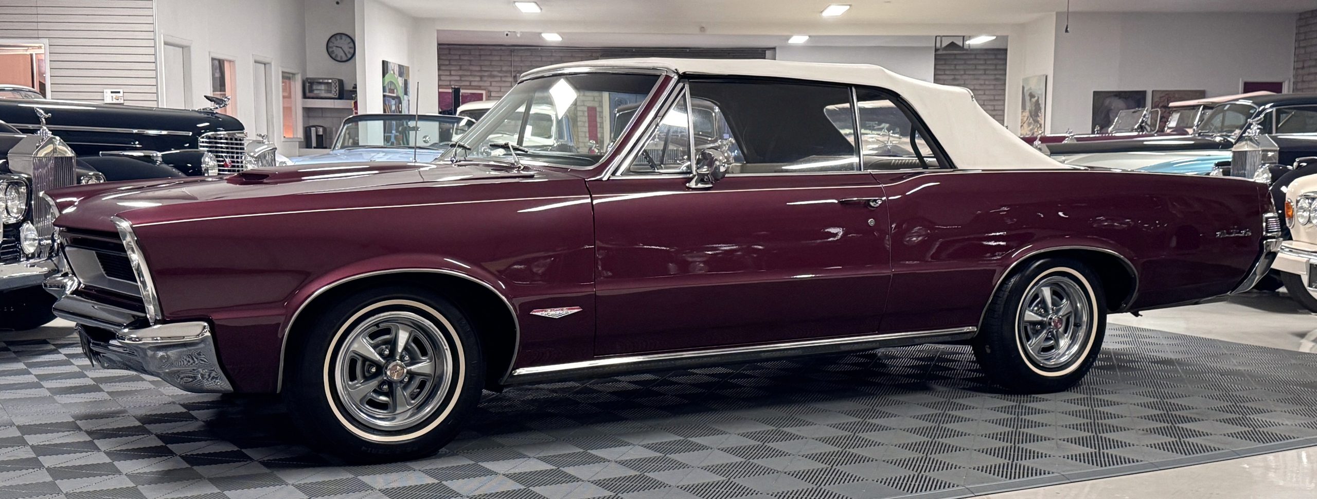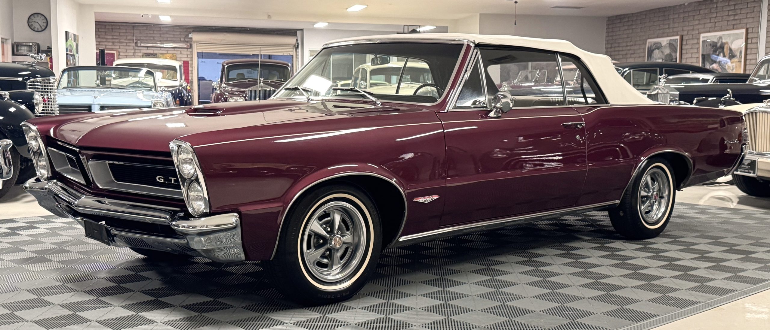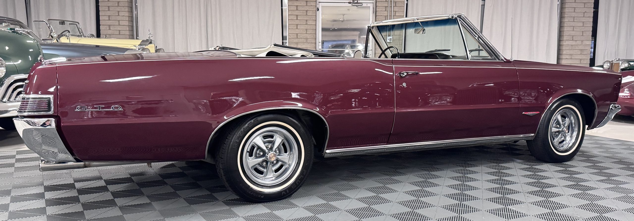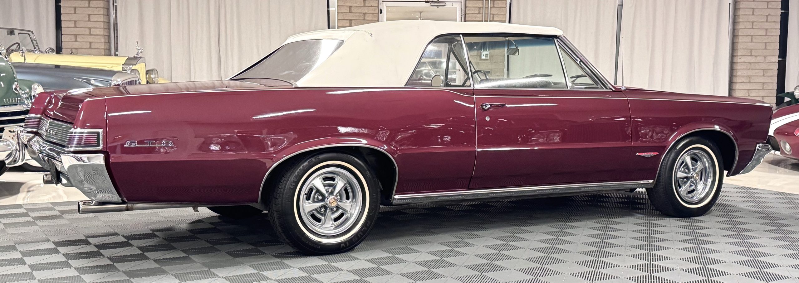 SOLD! This 1965 Pontiac GTO Convertible is a beautiful restored, WT engine, well-documented example that is in excellent mechanical condition with only 32,000 miles! The GTO is in excellent condition finished in Burgundy Red Poly over a Parchment interior with a white power-retractable top. The engine is the desirable original 389ci V-8 with Tri-Power paired to the four-speed manual synchromesh transmission. The GTO underwent a frame-off restoration to factory specifications and is in excellent overall condition. This GTO is ready to wow at any local car show and is a collector’s gem based on its low mileage, excellent overall condition and documentation!