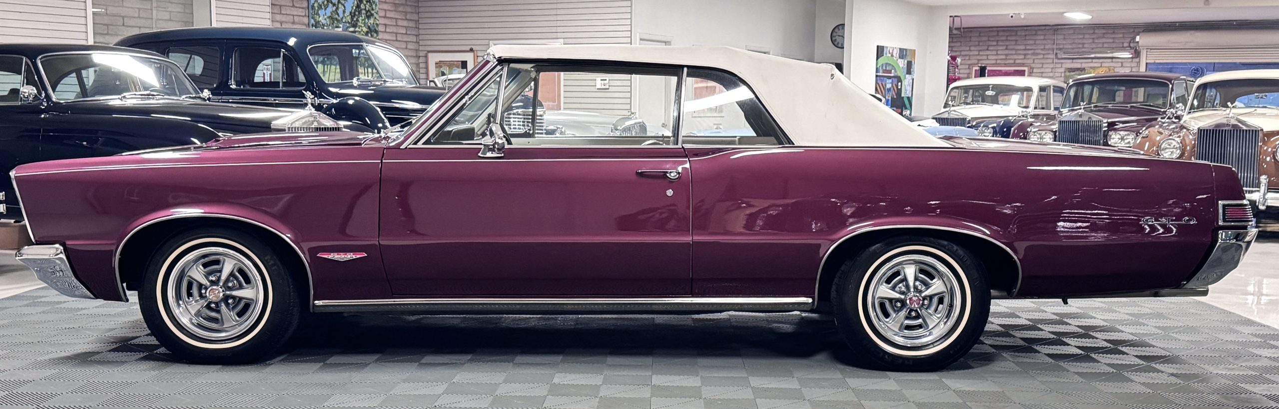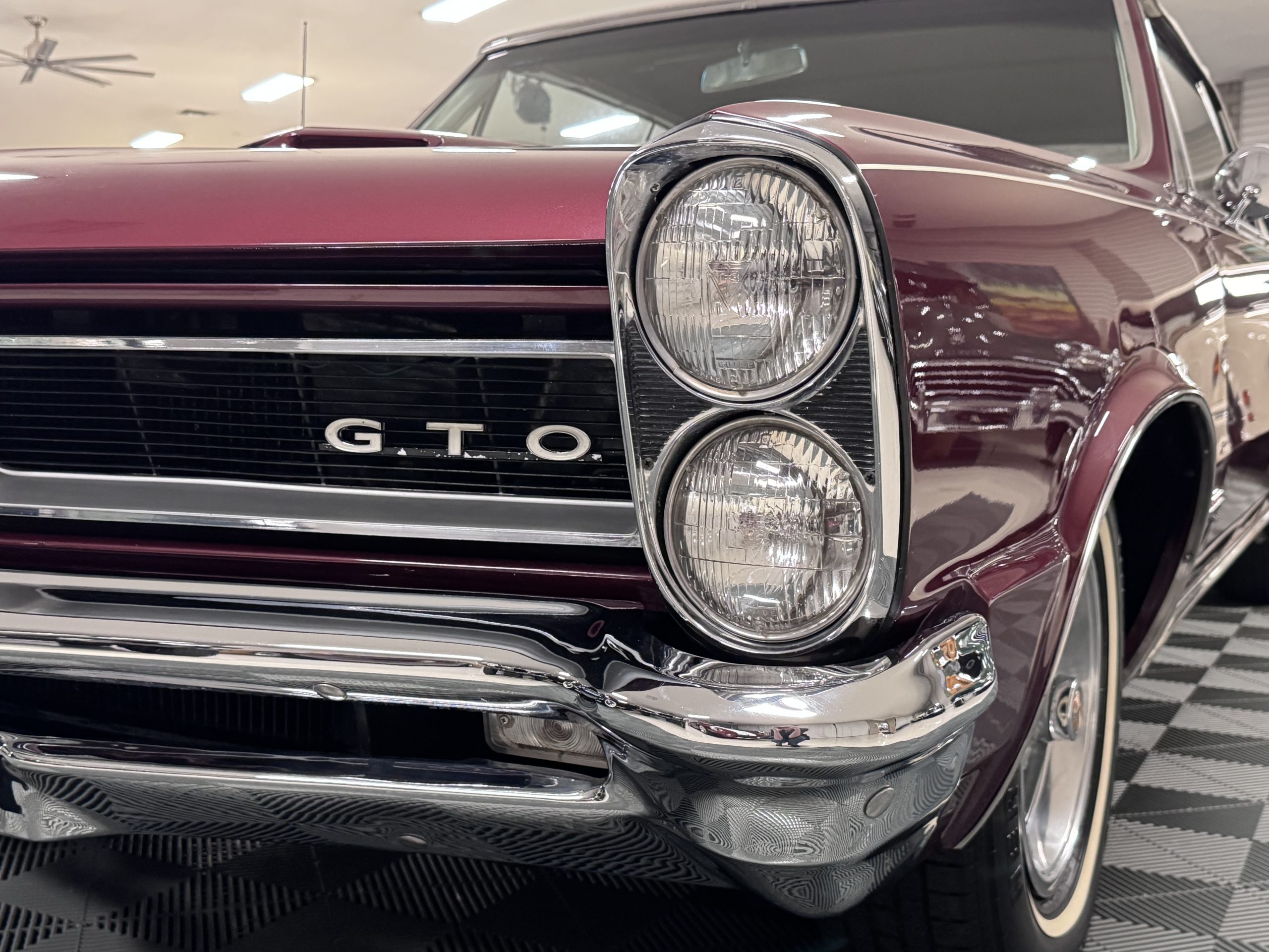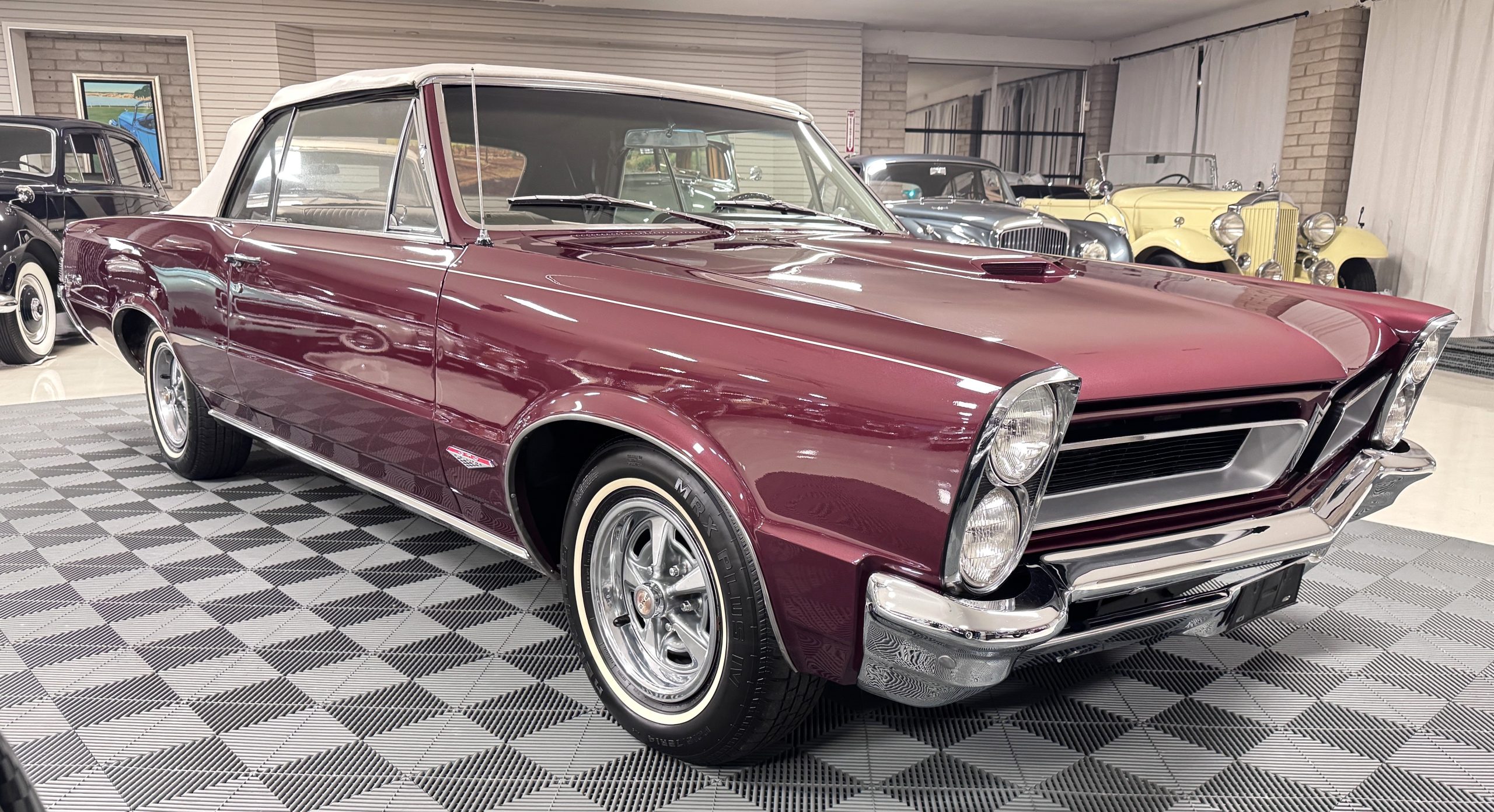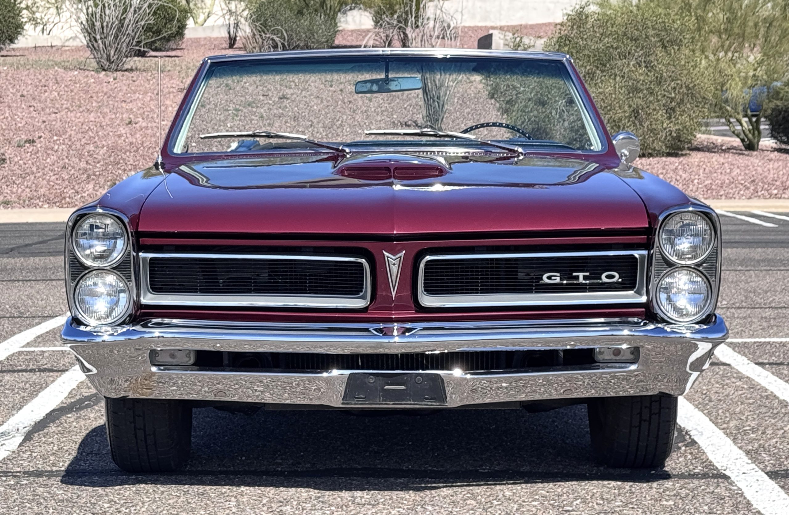 SOLD! This 1965 Pontiac GTO Convertible is a beautiful restored, WT engine, well-documented example that is in excellent mechanical condition with only 32,000 miles! The GTO is in excellent condition finished in Burgundy Red Poly over a Parchment interior with a white power-retractable top. The engine is the desirable original 389ci V-8 with Tri-Power paired to the four-speed manual synchromesh transmission. The GTO underwent a frame-off restoration to factory specifications and is in excellent overall condition. This GTO is ready to wow at any local car show and is a collector’s gem based on its low mileage, excellent overall condition and documentation!