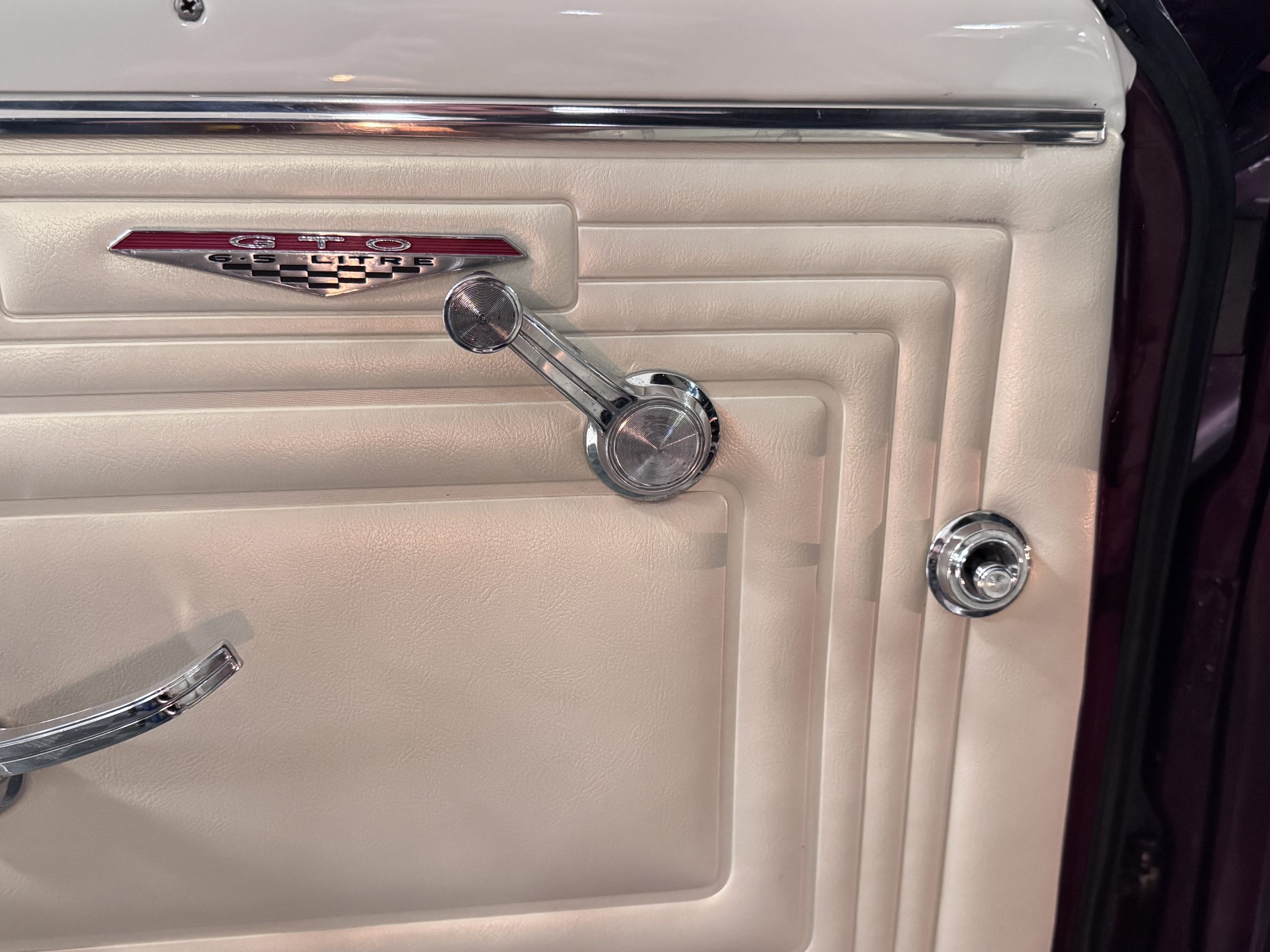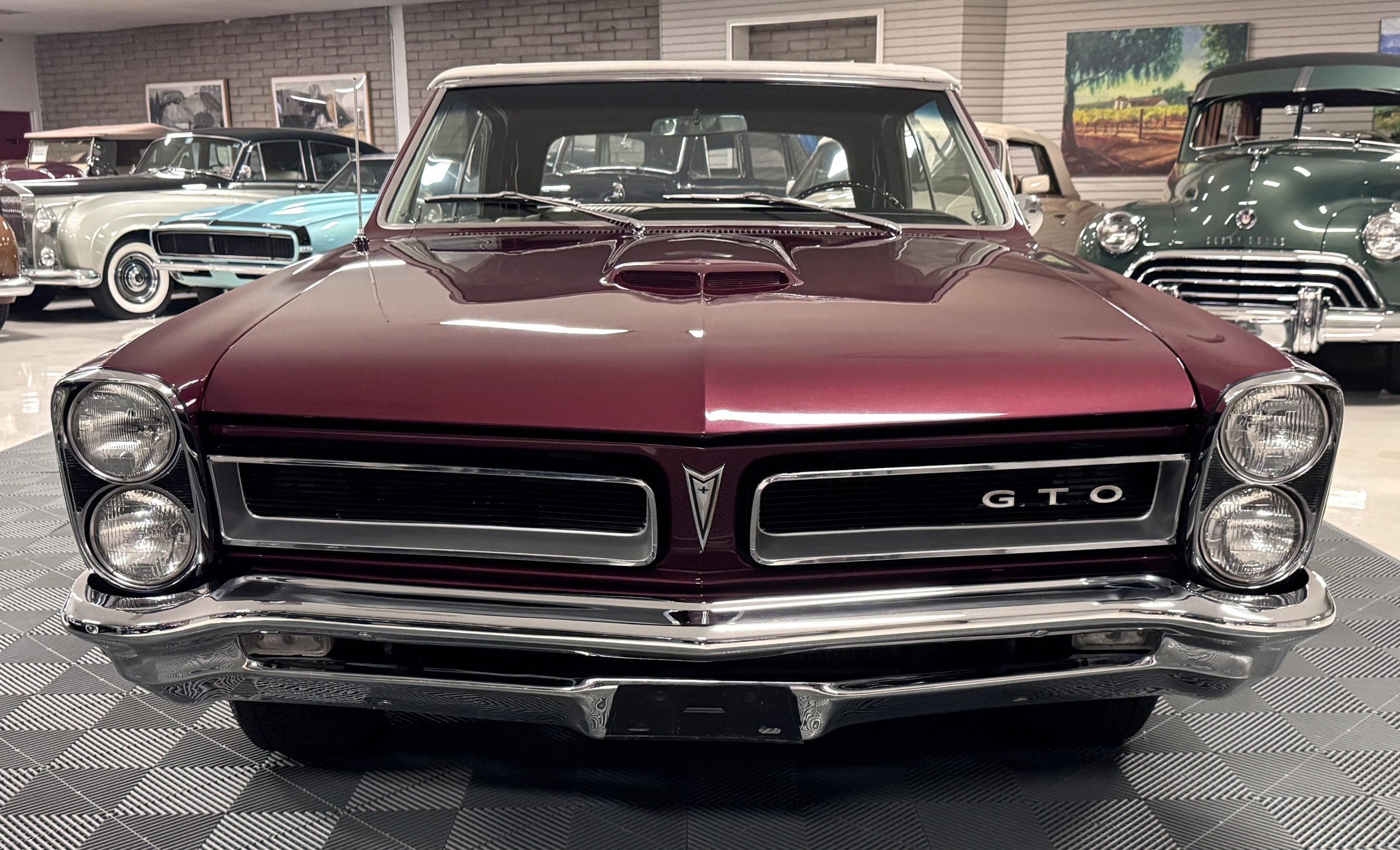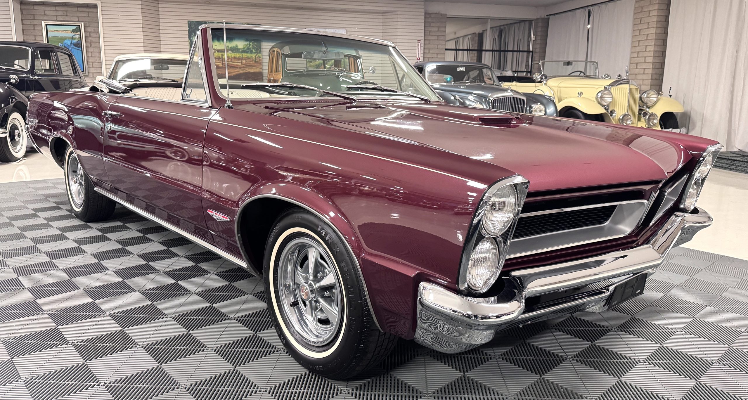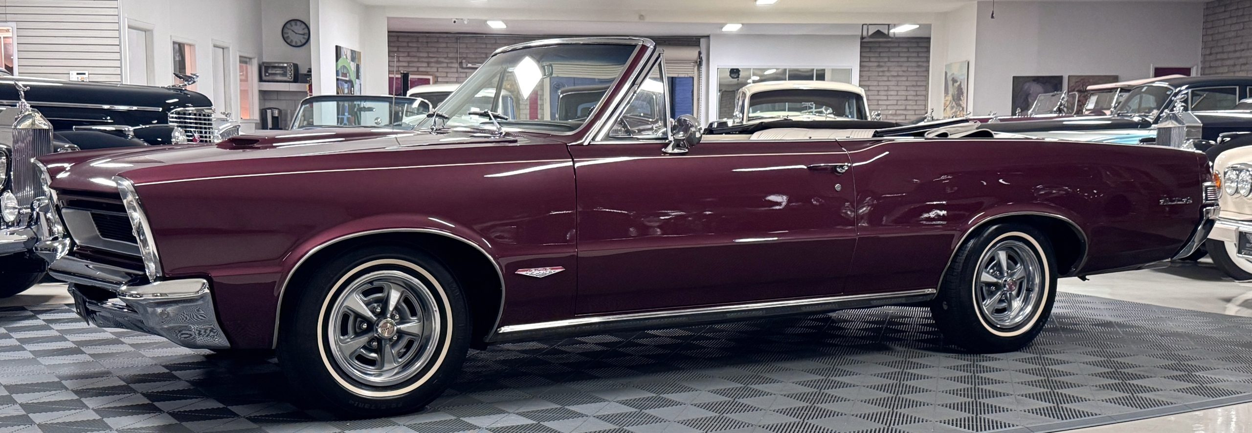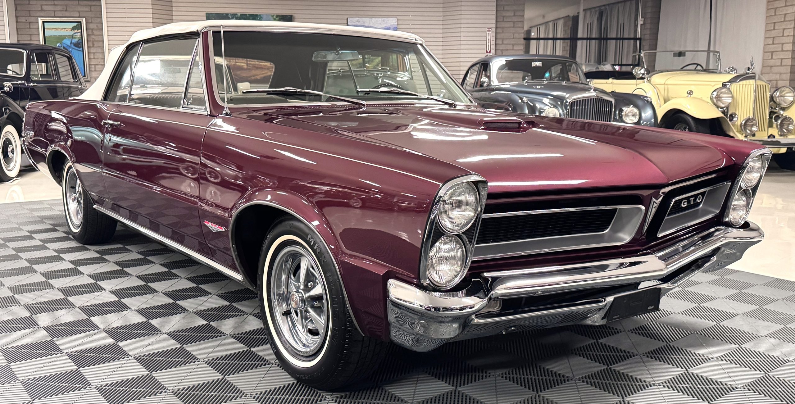 SOLD! This 1965 Pontiac GTO Convertible is a beautiful restored, WT engine, well-documented example that is in excellent mechanical condition with only 32,000 miles! The GTO is in excellent condition finished in Burgundy Red Poly over a Parchment interior with a white power-retractable top. The engine is the desirable original 389ci V-8 with Tri-Power paired to the four-speed manual synchromesh transmission. The GTO underwent a frame-off restoration to factory specifications and is in excellent overall condition. This GTO is ready to wow at any local car show and is a collector’s gem based on its low mileage, excellent overall condition and documentation!