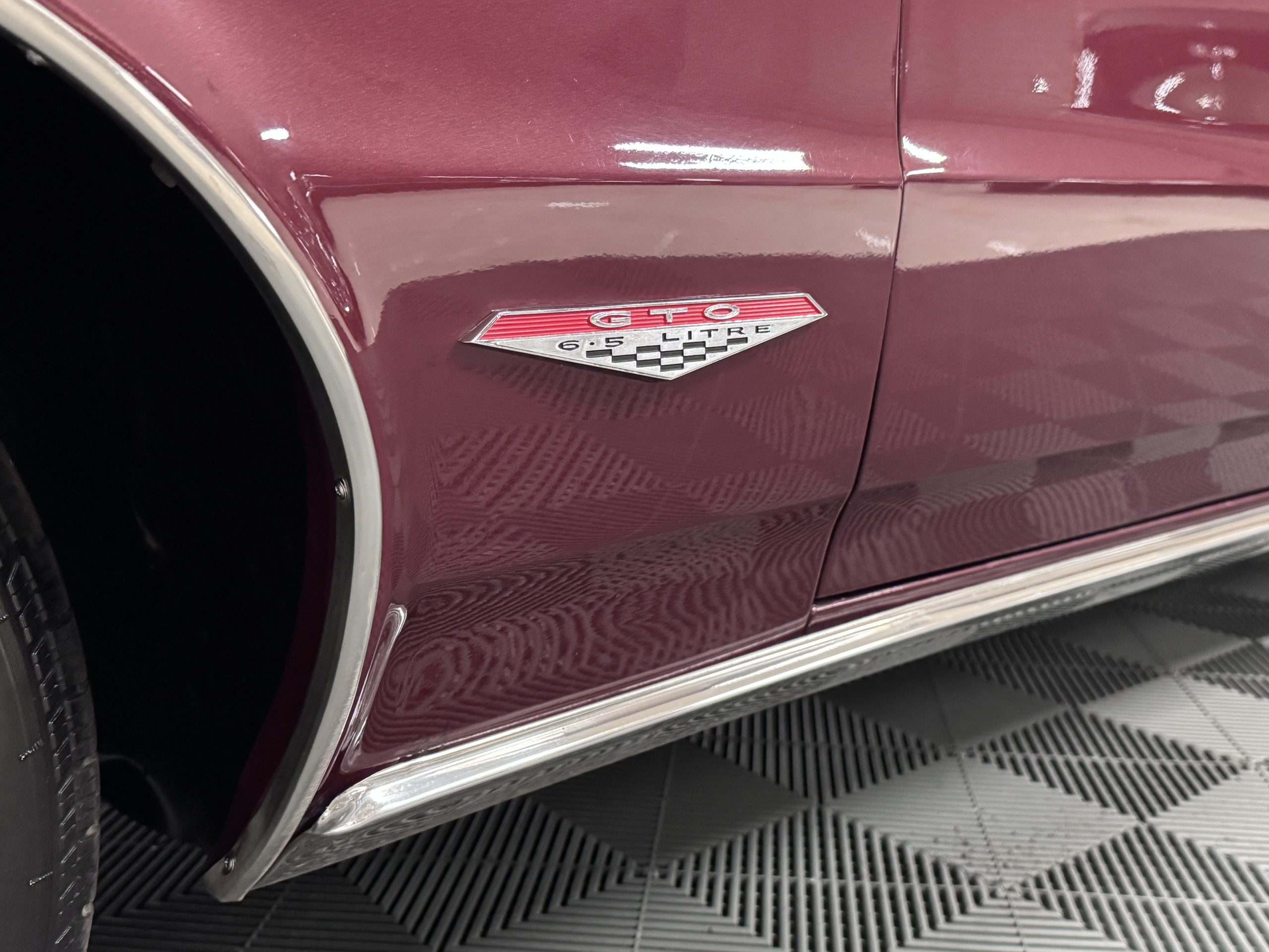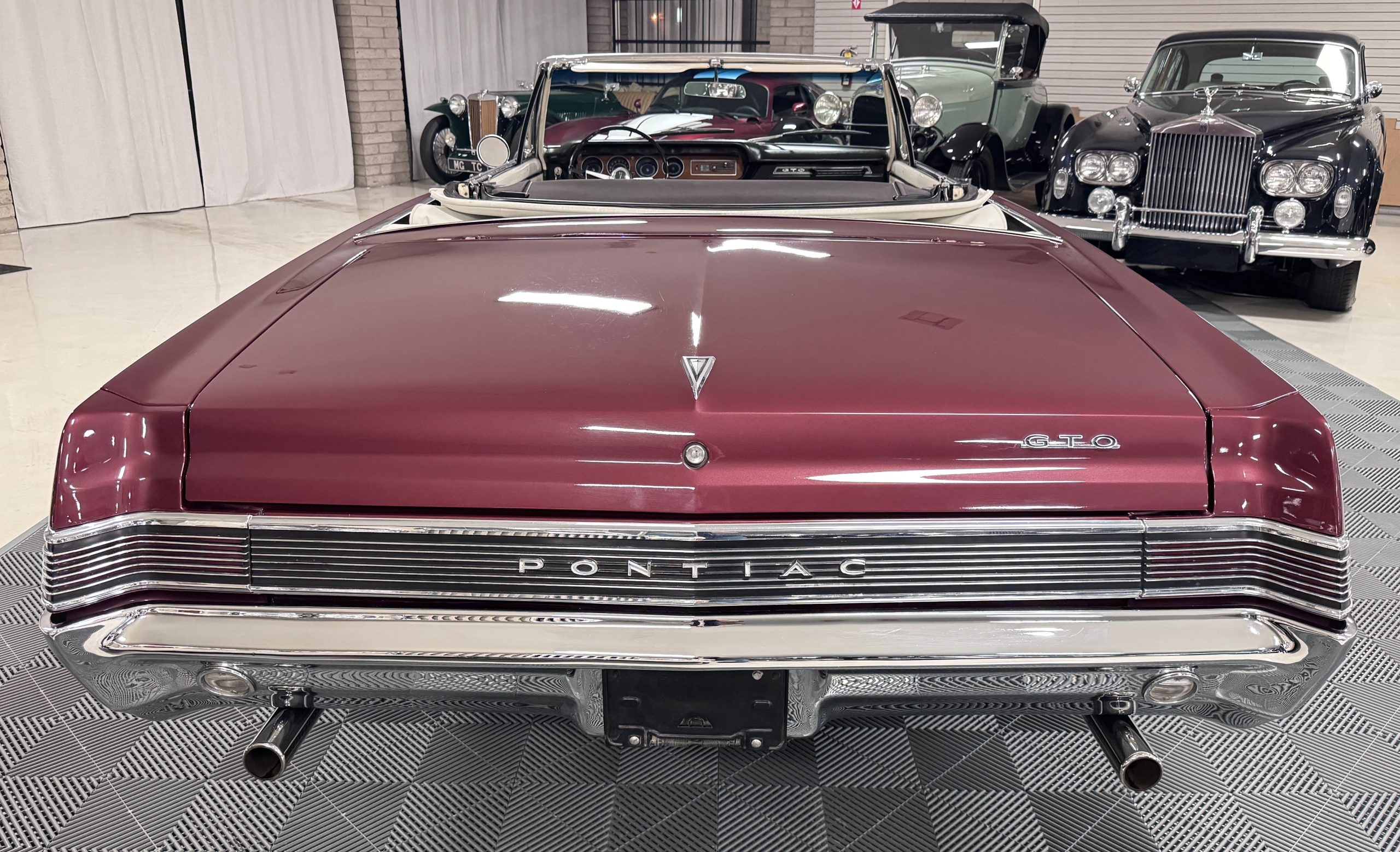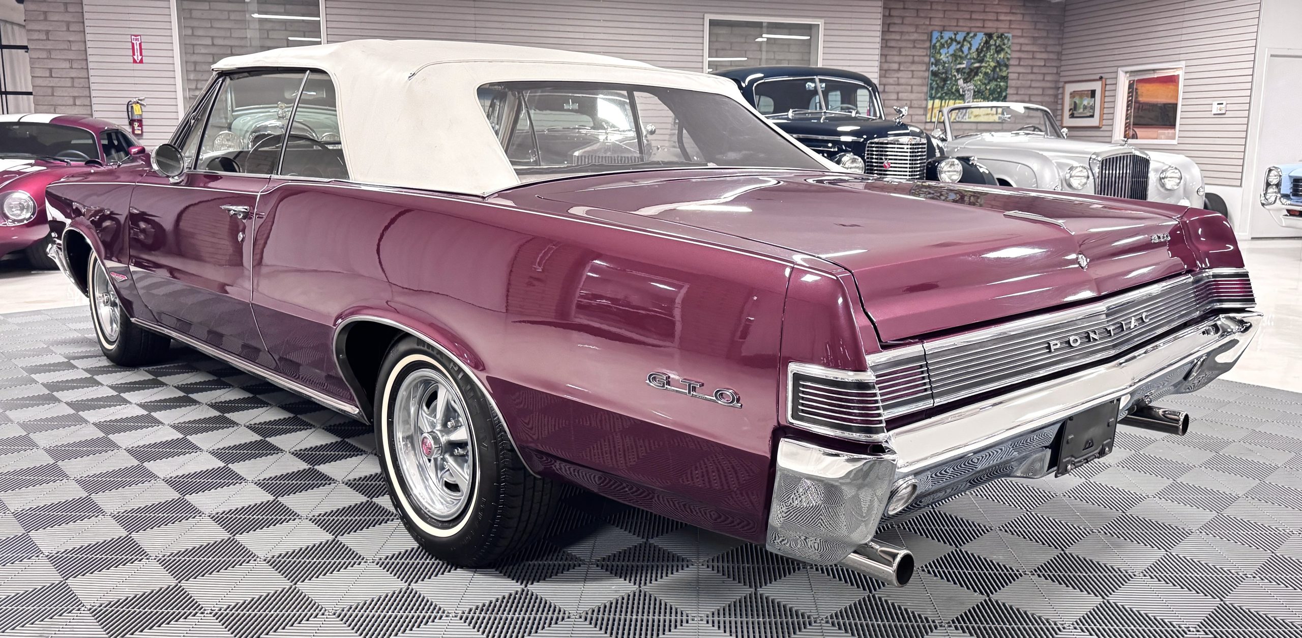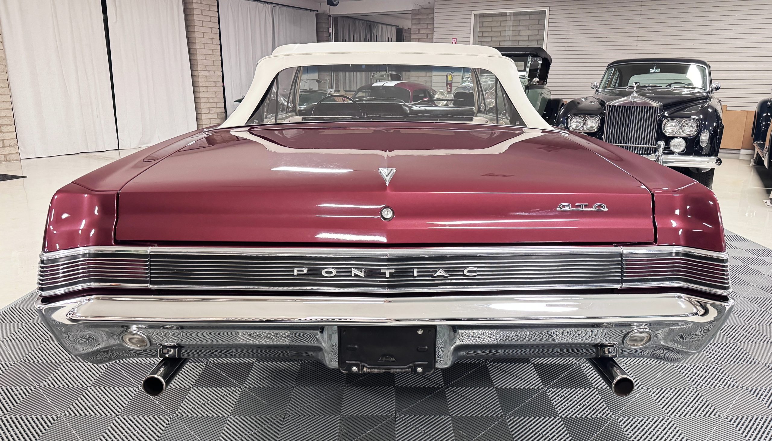 The GTO was assembled at the Fremont, California plant in December 1965 and was originally sold in Placerville, California. This GTO was one of 11,311 GTO convertibles produced for the model year. This GTO was built with the 389ci “WT Code” V8, optioned with the four speed fully synchronized transmission, dual exhausts, deluxe wheel discs, special 7 blade fan and fan clutch, chrome air cleaner covers, chrome rocker arm covers, and the Safe-T-Track rear axle. Additional options include windshield washer & dual speed wipers, visor vanity, inside tilt mirror, outside remote control mirror, door edge guards, soft ray windshield, and back up lamps. A comprehensive frame-off restoration was completed in 2001 to original specifications, including a rebuilt engine and gearbox that had additional transmission and clutch refurbishment in 2006. The current owner purchased the GTO in 2007 adding about 7,000 miles and meticulously maintained the GTO. The Pontiac is accompanied by the original ownership manual, window sticker, history card, maintenance records, and a spare tire.