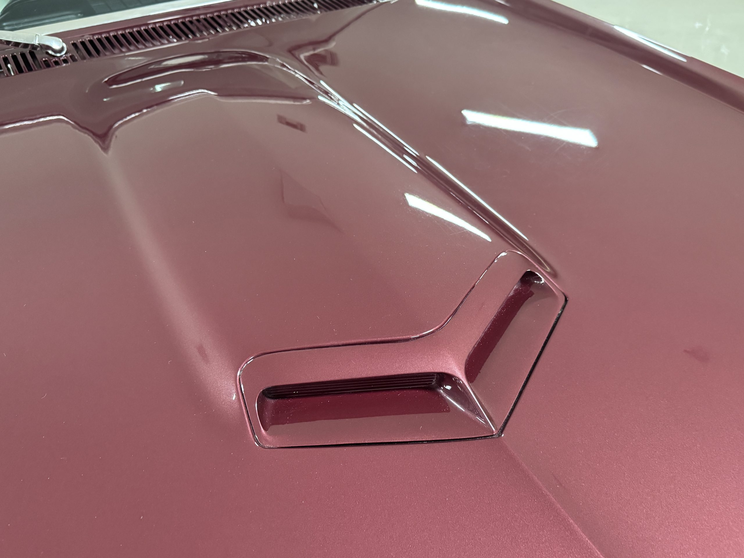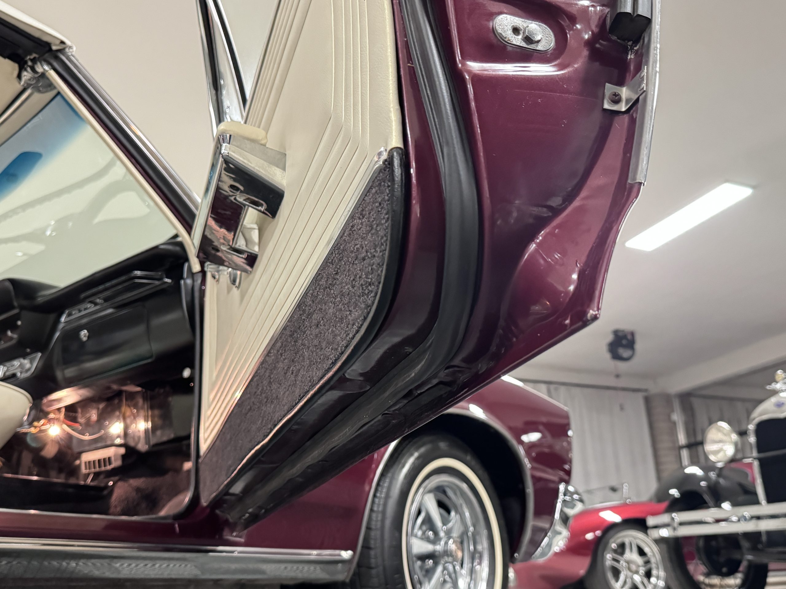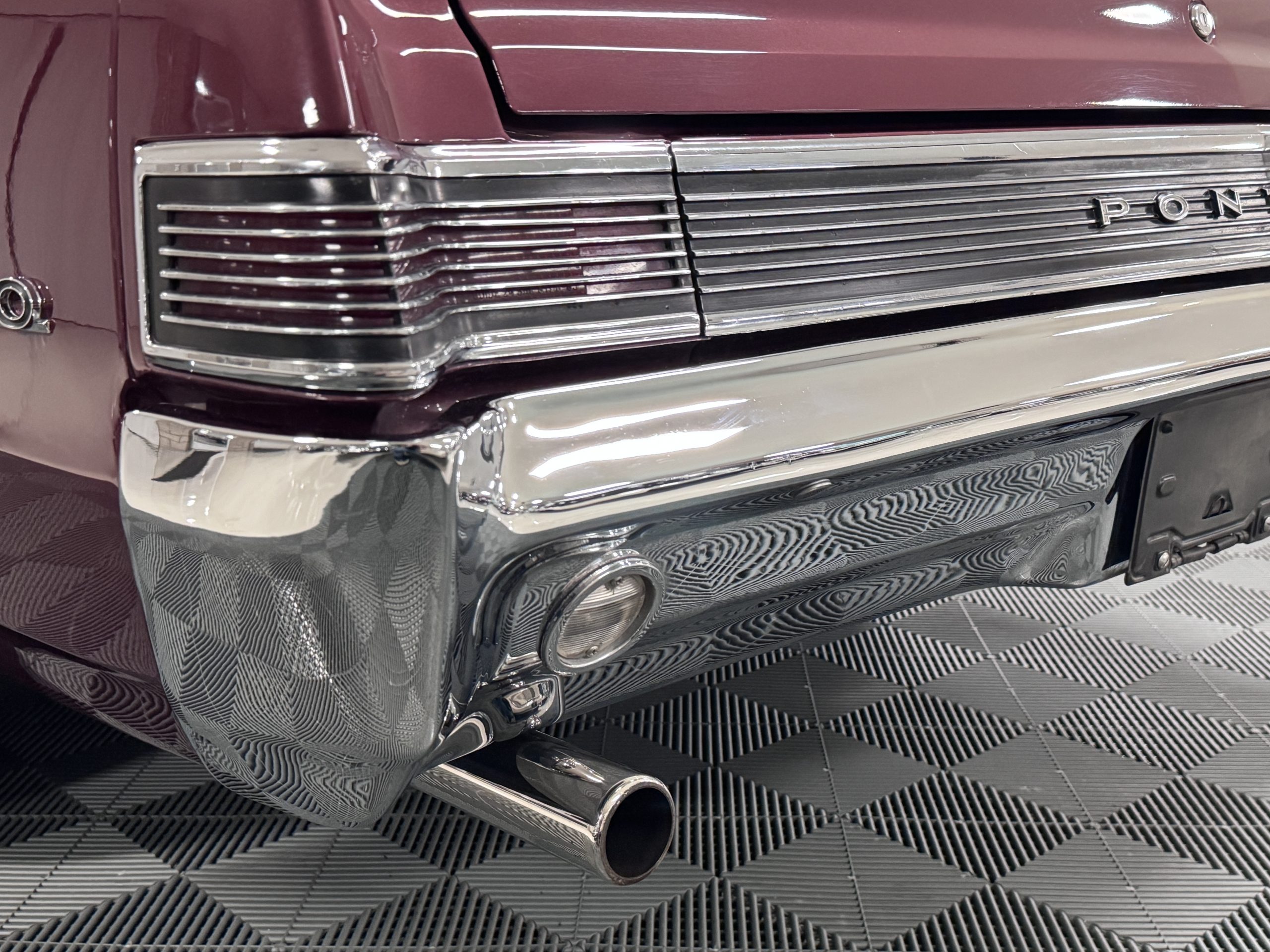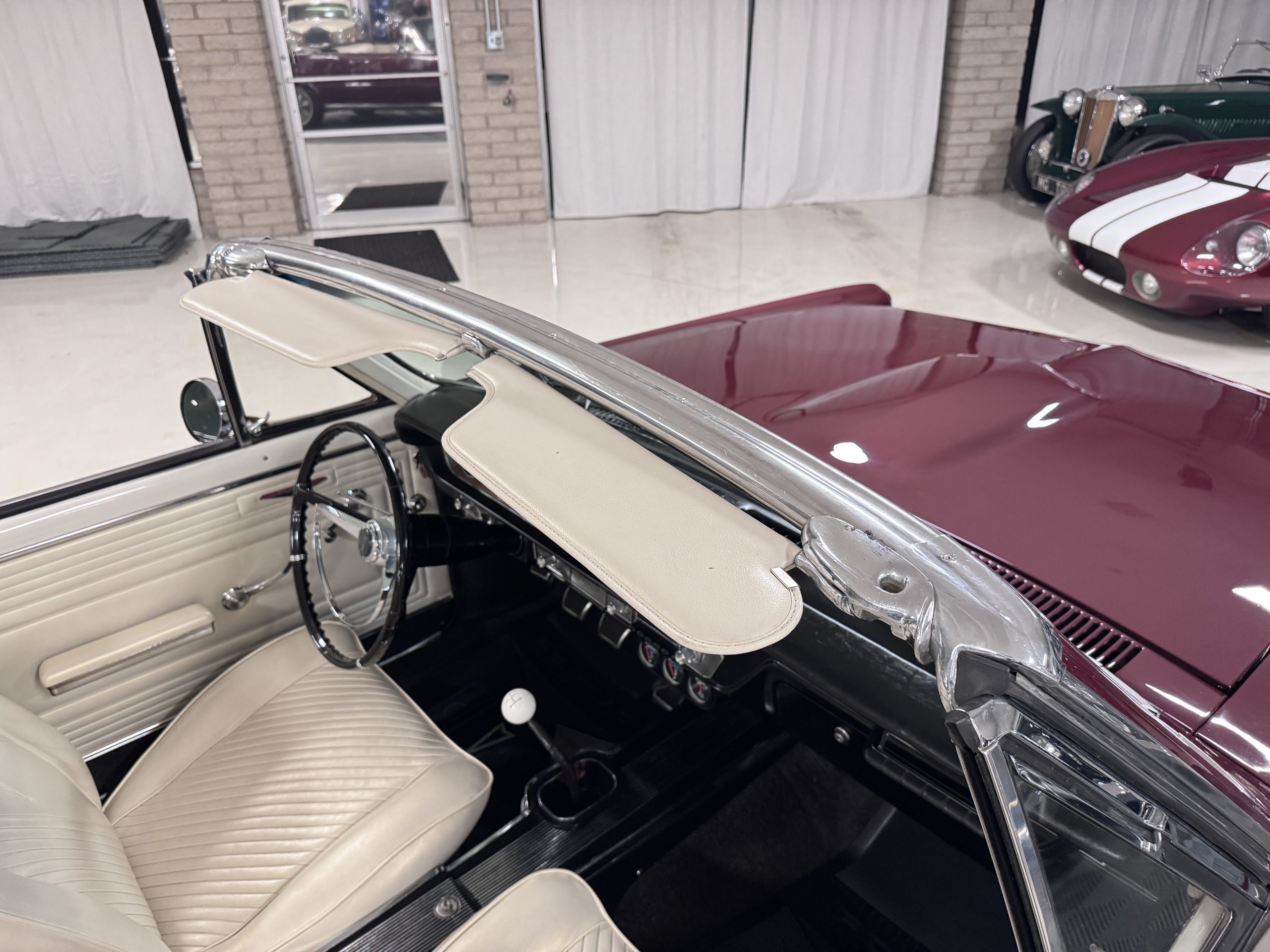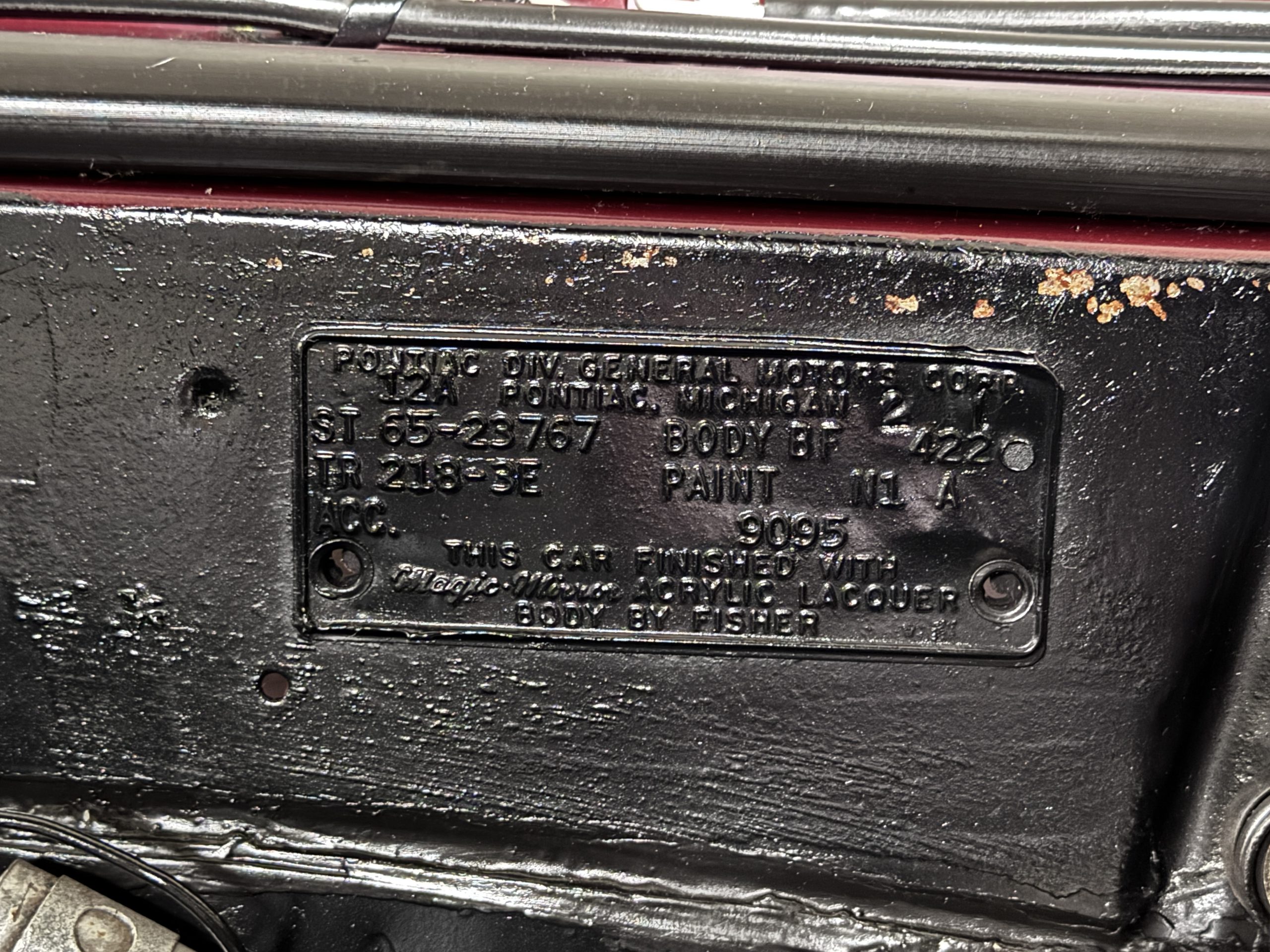The Pontiac wears Burgundy Red Poly paint (code N) with good gloss and depth, presenting in great overall condition with only minimal areas of wear from normal use. Signature stacked headlights and the split recessed grille are in very good condition, reinforcing the model’s instantly recognizable front-end design. The white convertible top operates via power retraction and presents in great condition, complementing the single hood intake and wraparound taillights, which function as intended. The overall exterior presentation reflects careful stewardship and restoration quality that enhances long-term value.