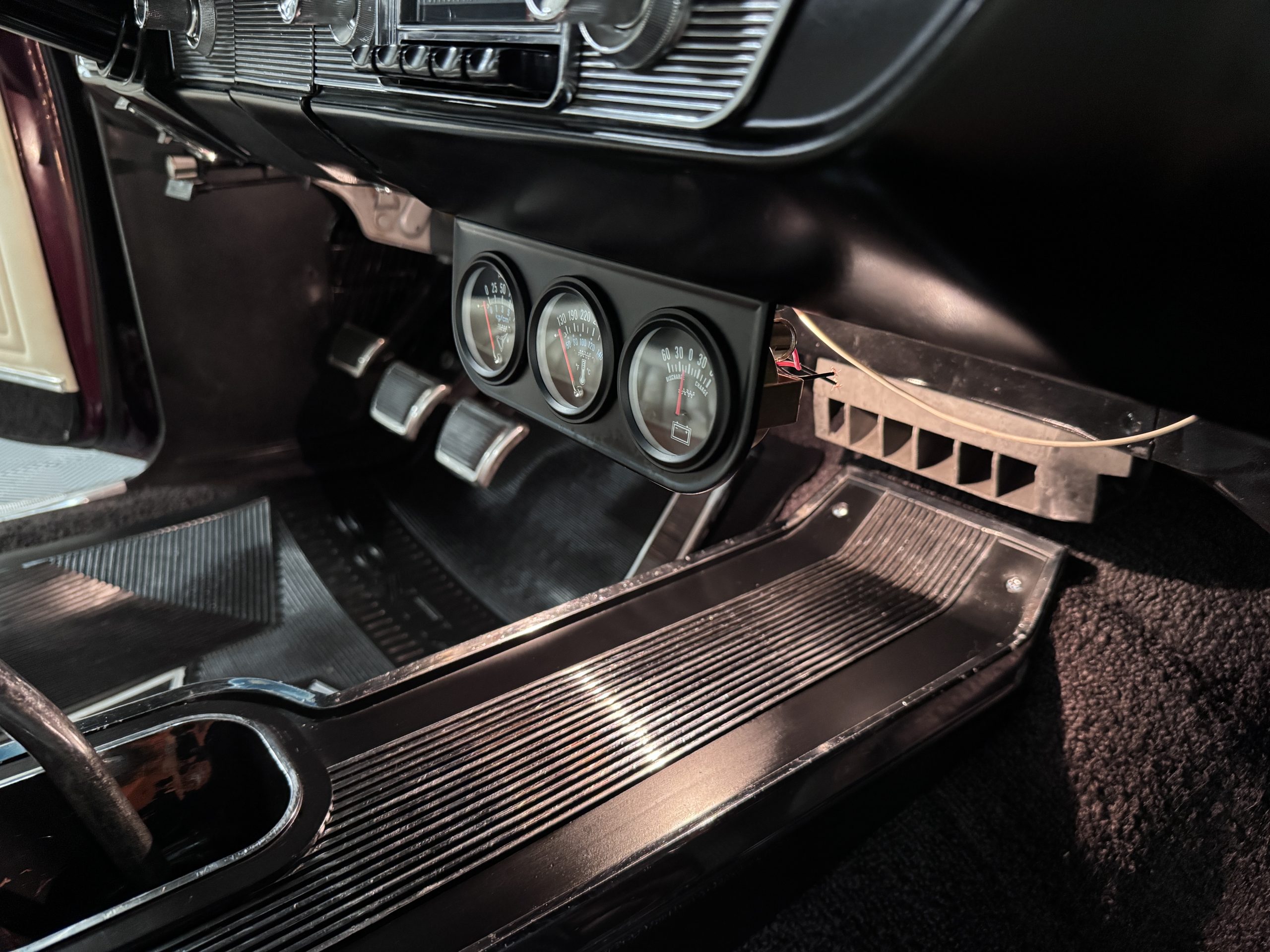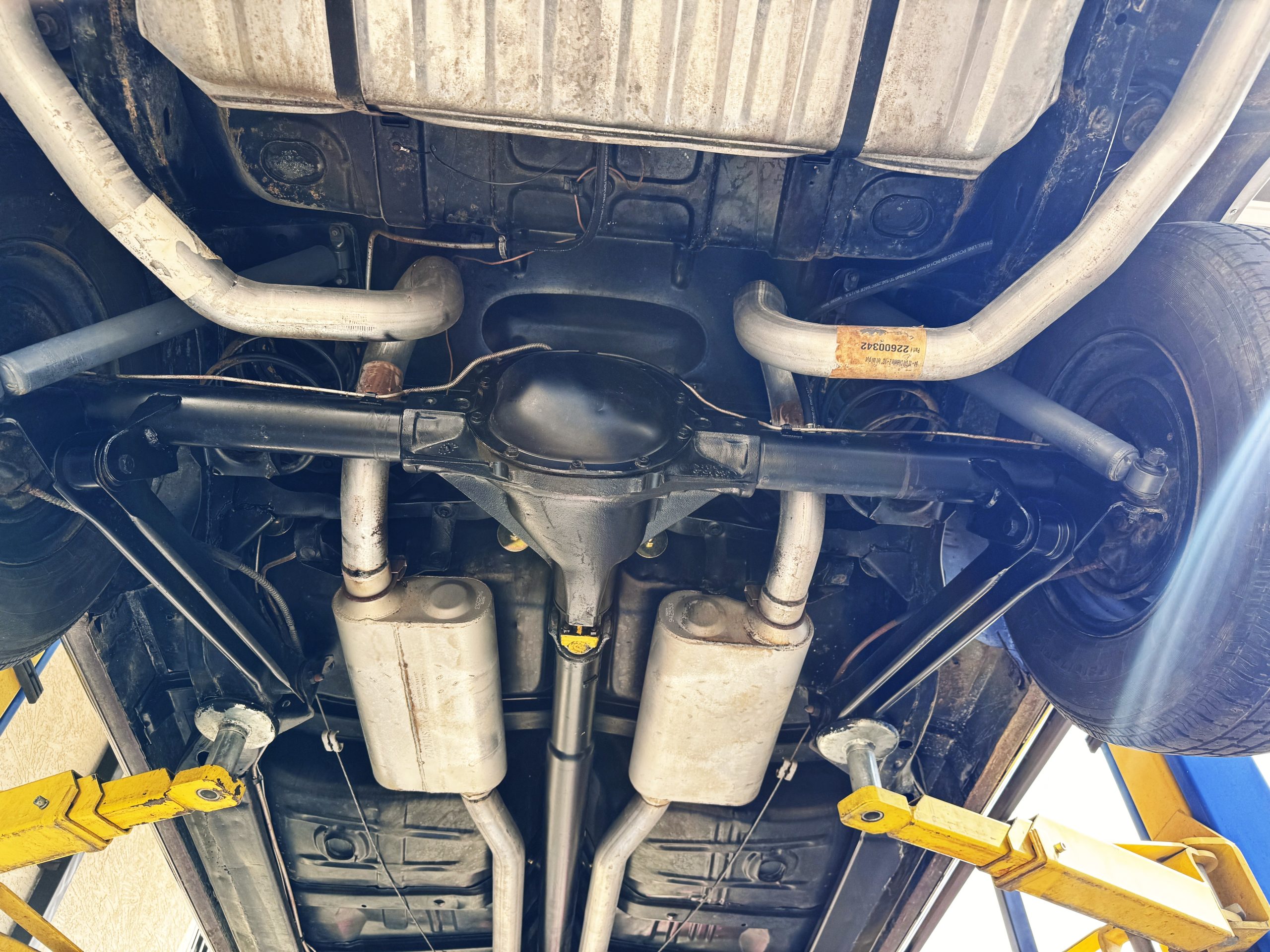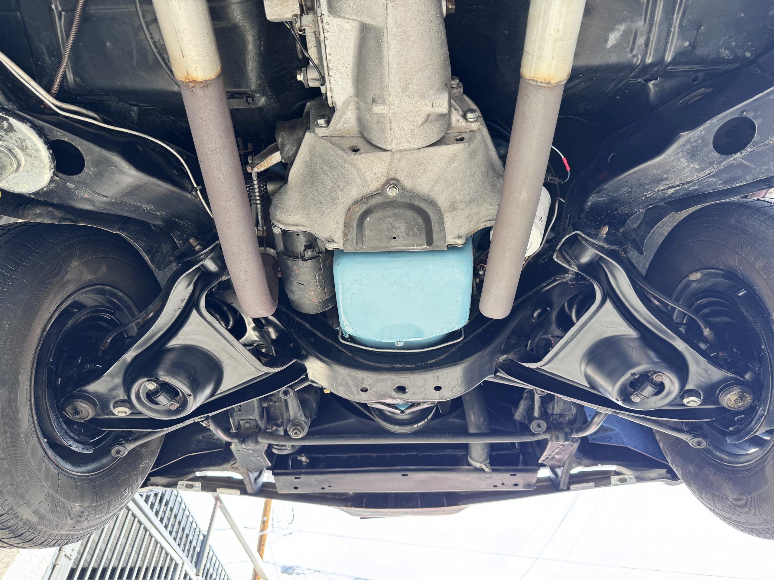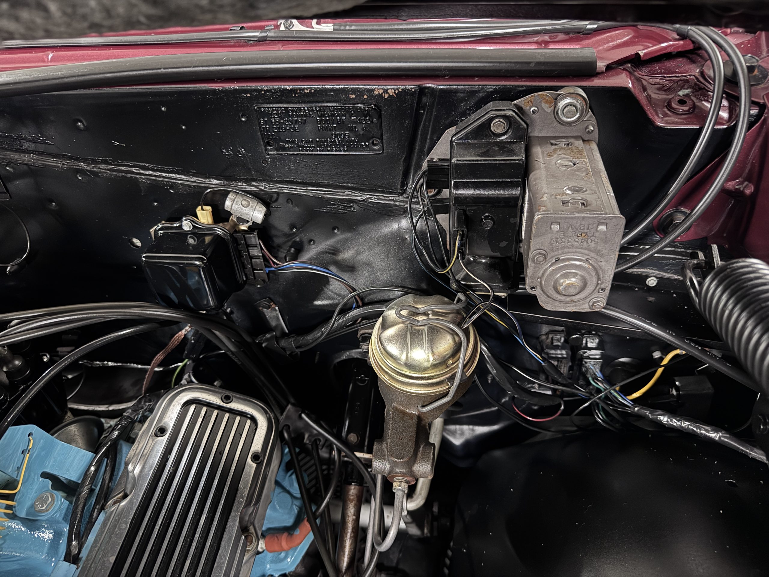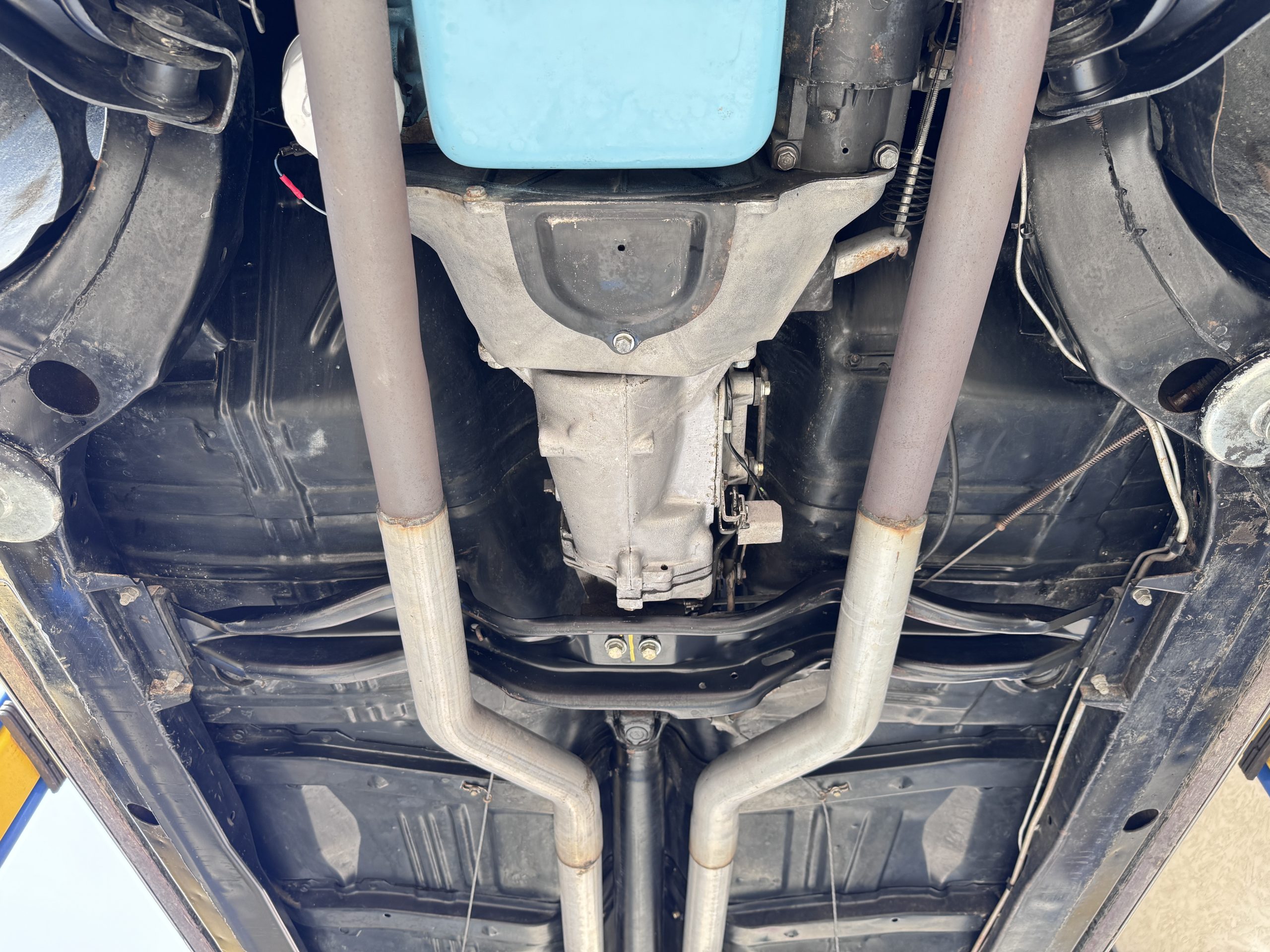 The Pontiac is powered by a WT-code 389 c.i. in V-8 engine with the coveted Tri-Power induction, rated at approximately 335 horsepower. The engine serial number is 633211 with WT stamped on the front of the block and the casting number shows correctly as 9778789. Power is delivered through a four-speed manual synchromesh transmission with Hurst shifter. This GTO has a Flowmaster dual exhaust and an Edelbrock manifold with chrome valve covers and air cleaners. The GTO has its original 3:23 Safe-T-Track limited-slip differential, and the GTO has Delco Moraine self-adjusting drum brakes for all four wheels. The tires are Hercules MRX IV 215/75R14. February 2026 inspection confirms the Pontiac remains in great mechanical order. The restoration work and subsequent servicing position the Pontiac as a strong-driving example that balances authenticity with usability.