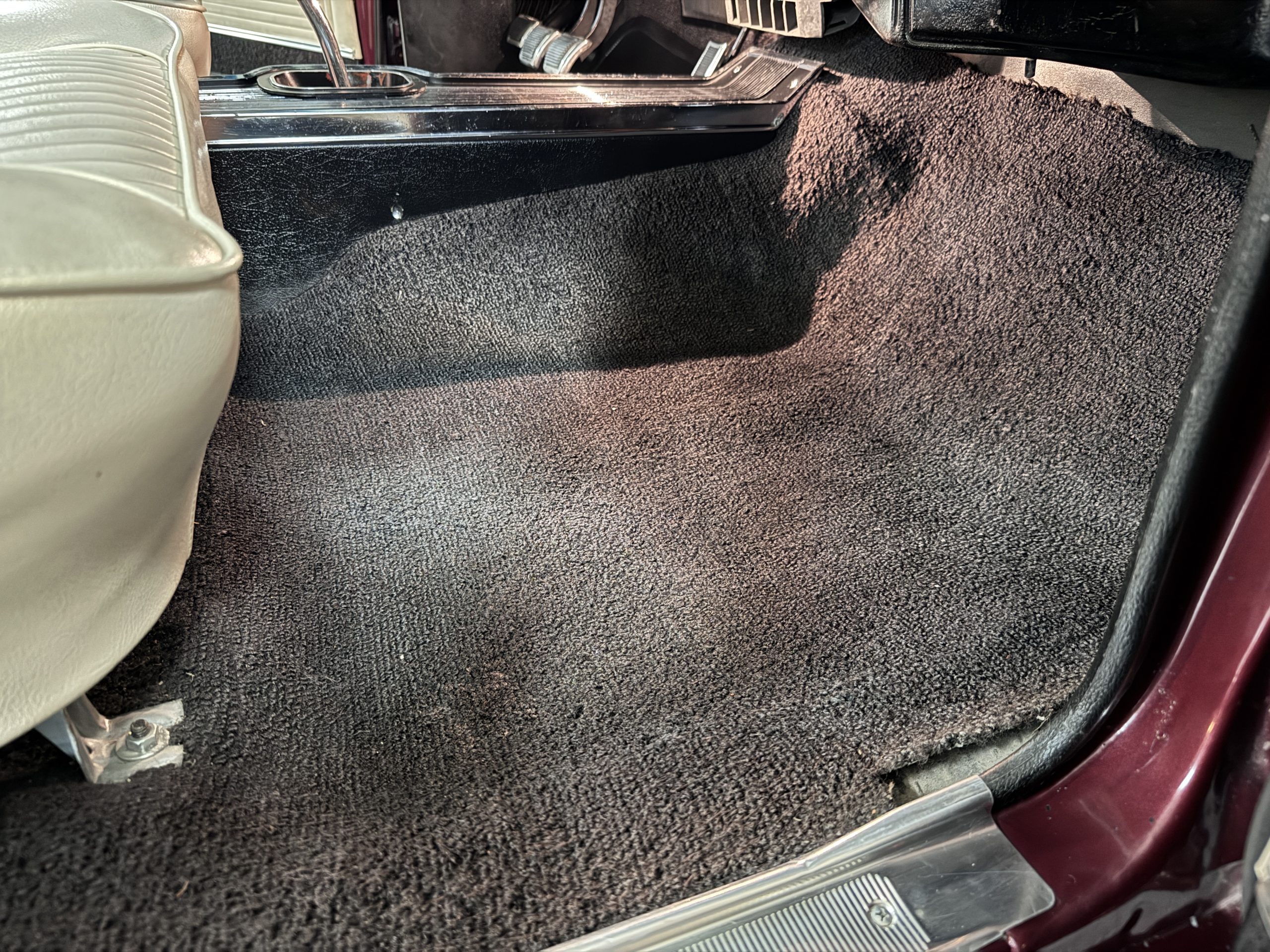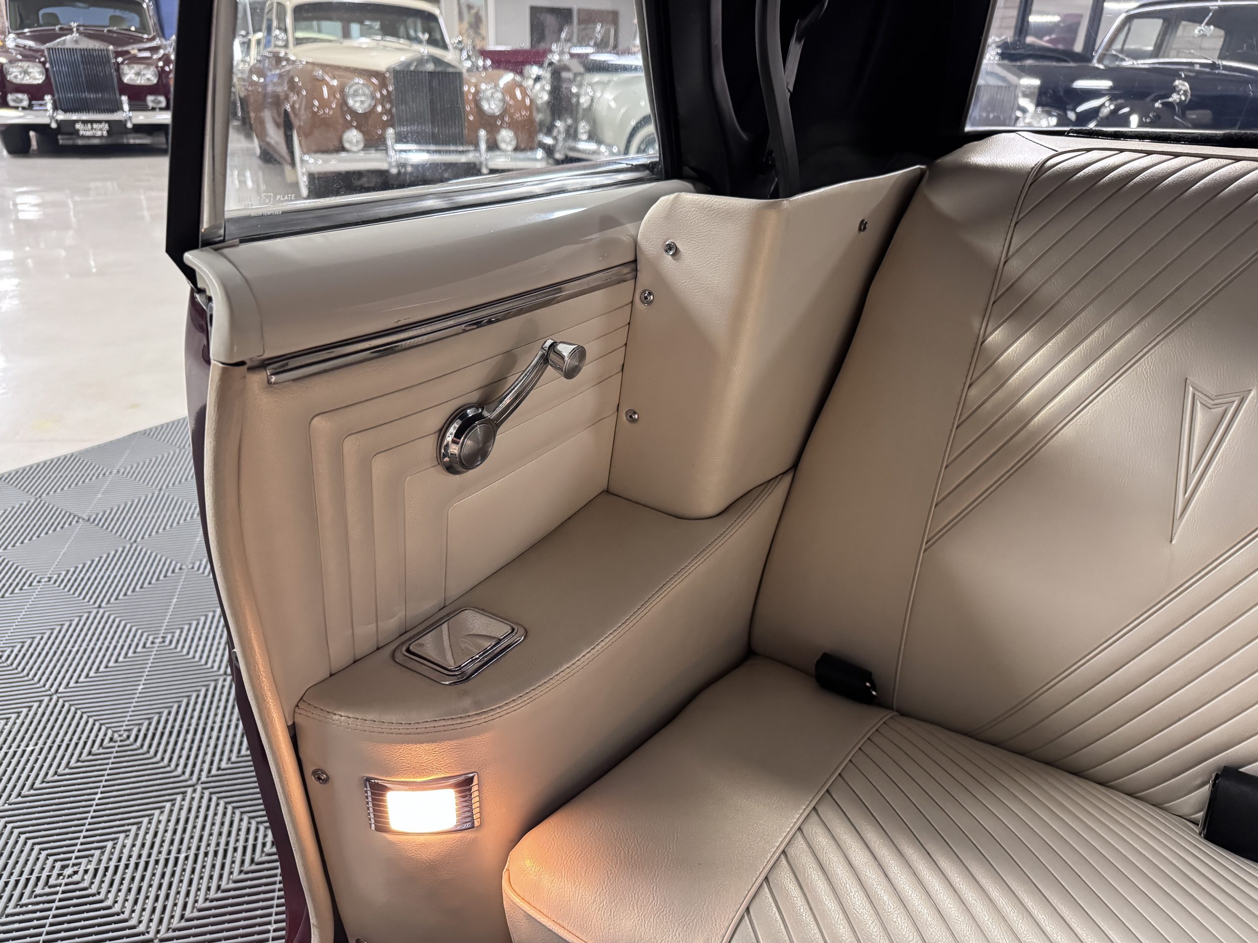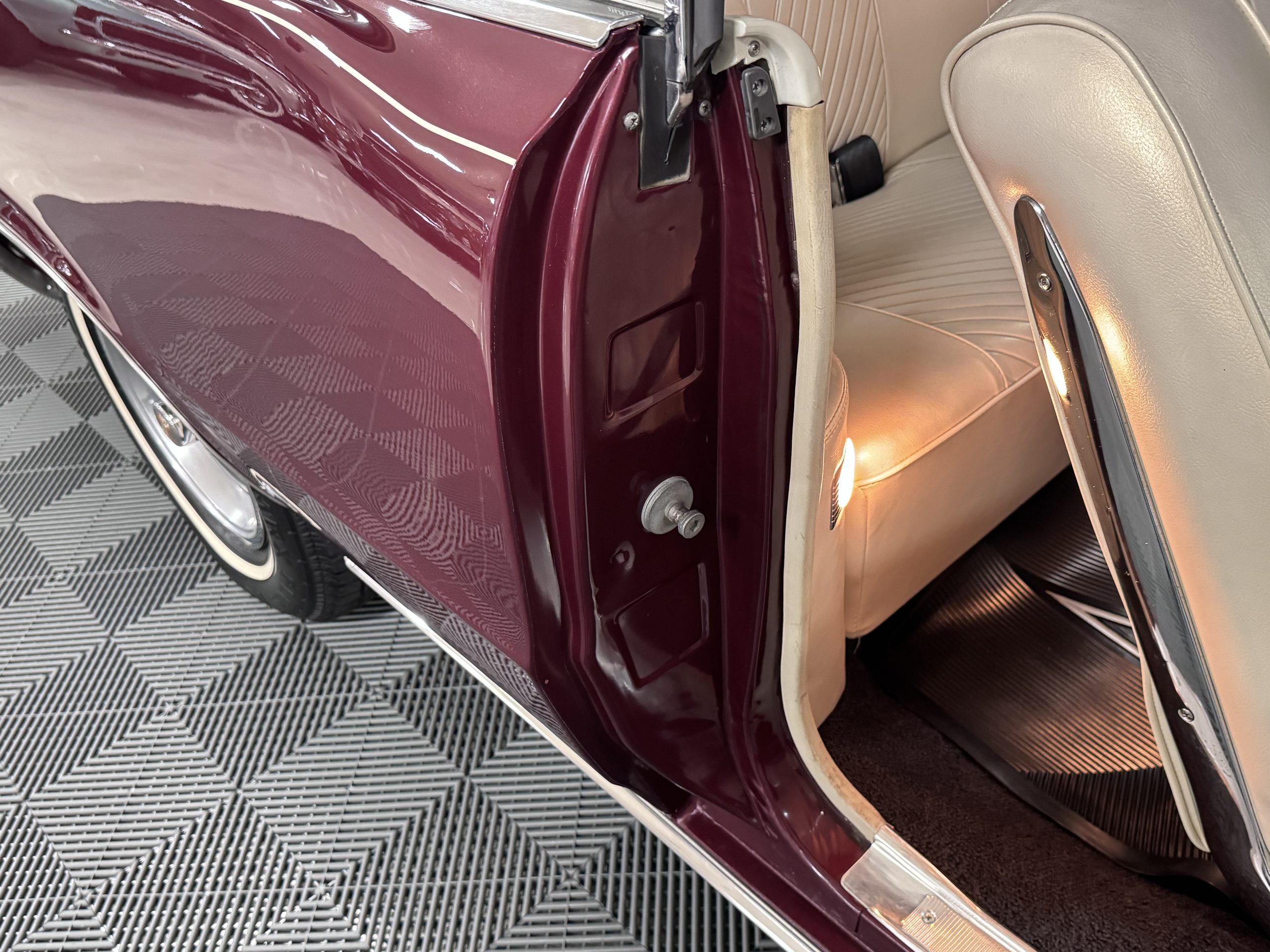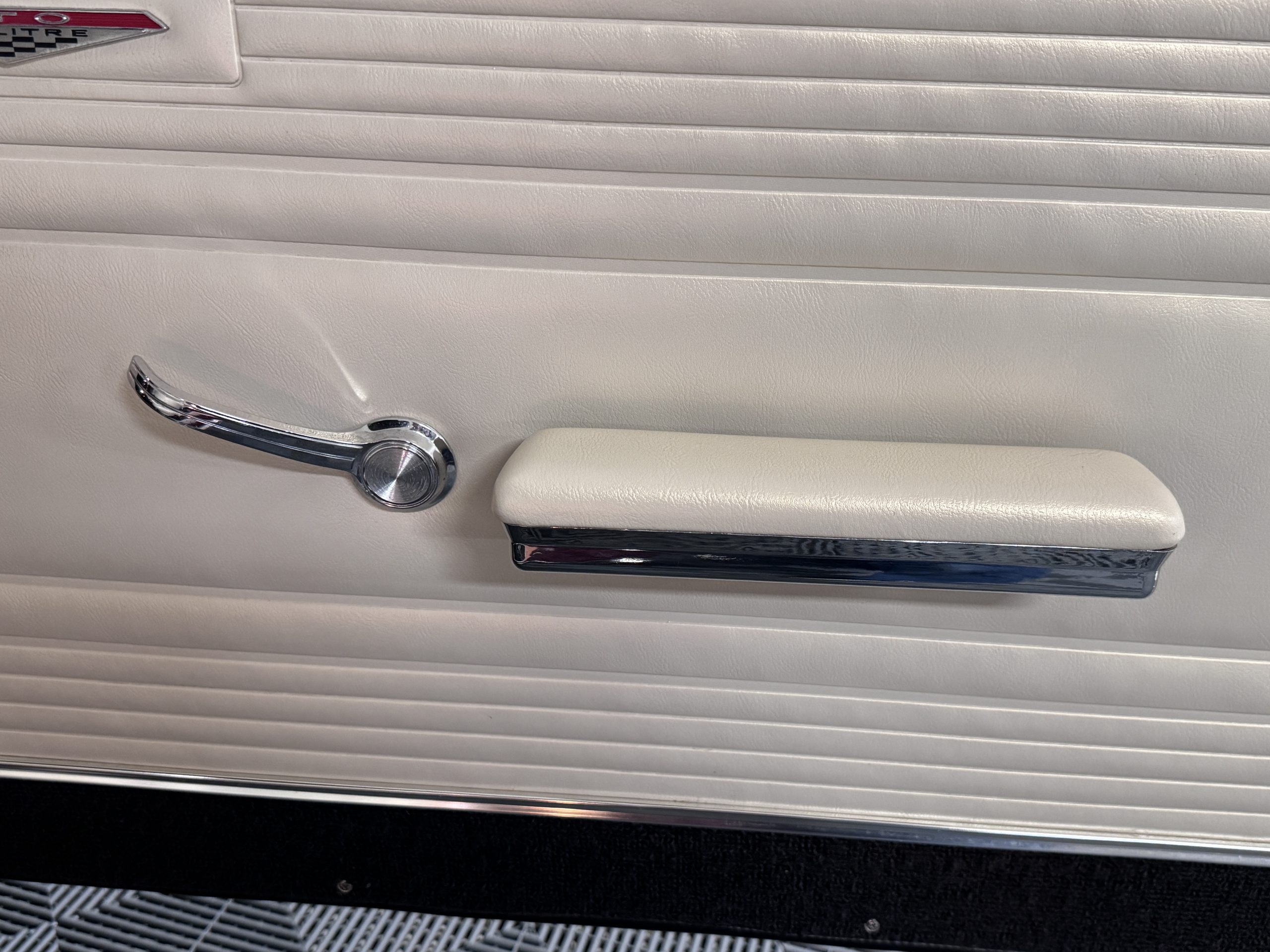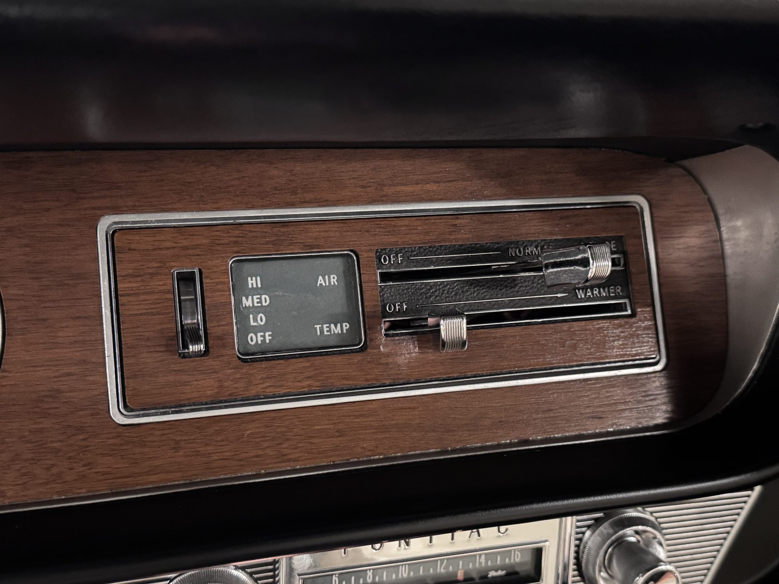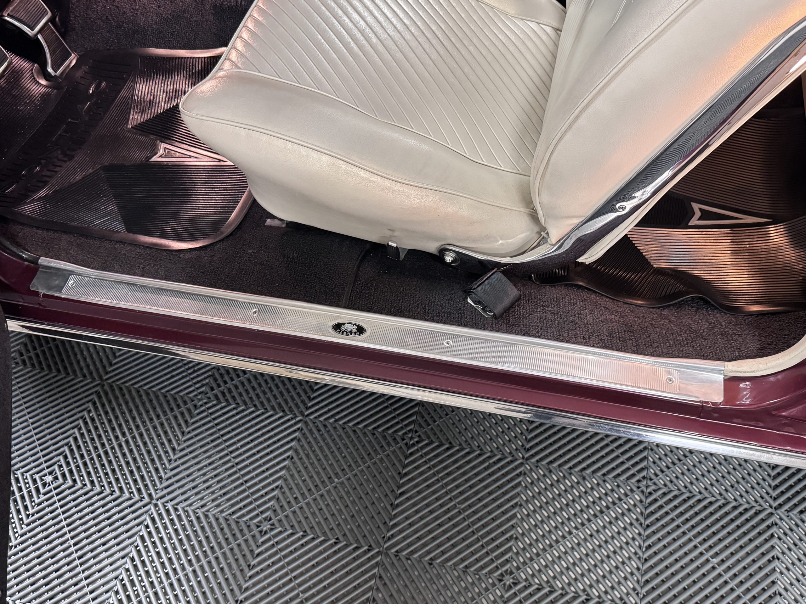 The Pontiac features Parchment front bucket seats and a rear bench in excellent condition, paired with black carpet and black rubber floor mats that are in excellent condition. The wood veneer dash and a period-correct Pontiac AM radio. The Pontiac is equipped with a power-adjustable driver’s seat, deluxe steering wheel, center console, dual horns, and fully functioning fan, heater, and courtesy lighting. The cohesive interior presentation supports the Pontiac’s dual appeal for show presentation and enjoyable open-air touring.