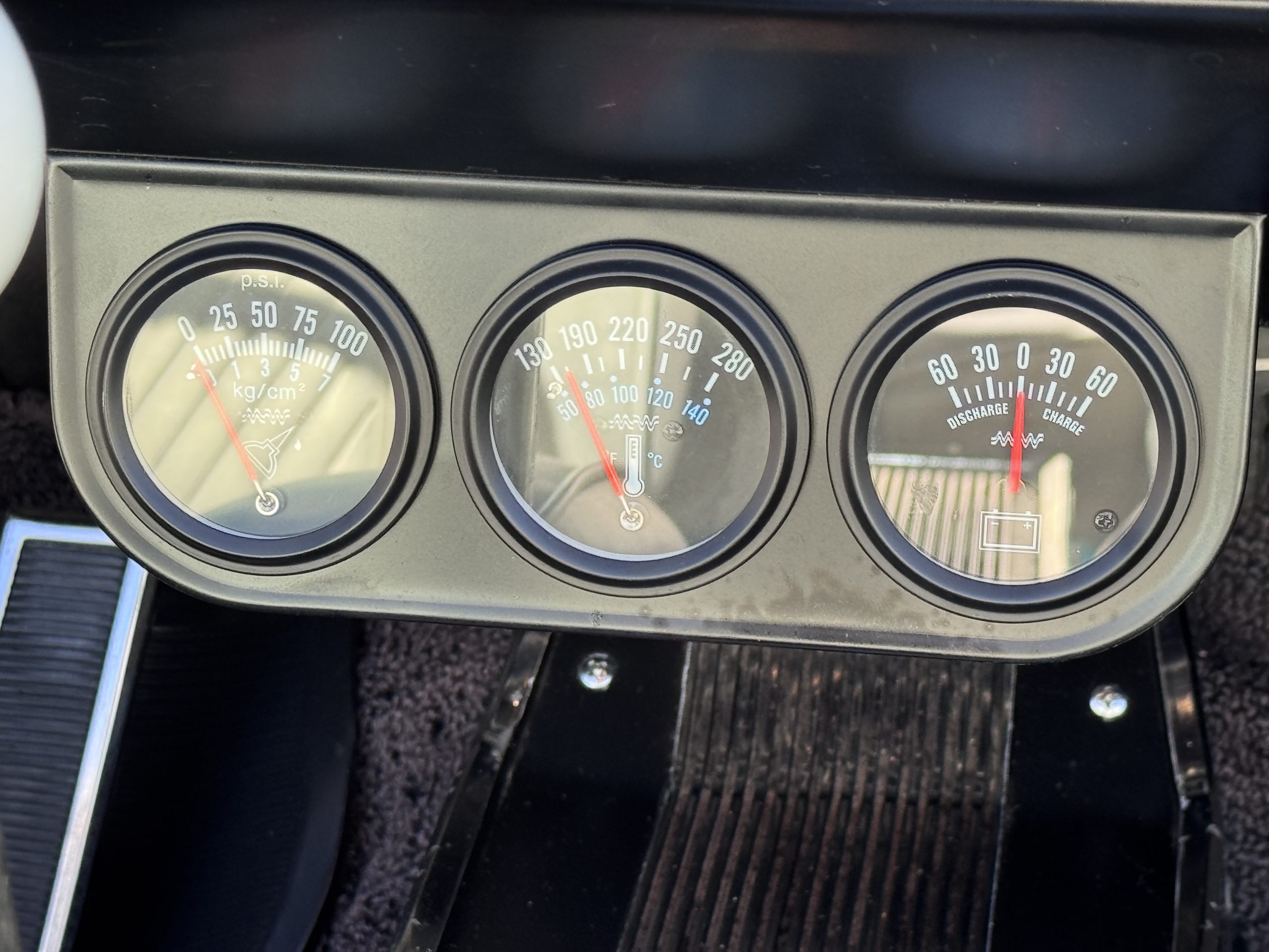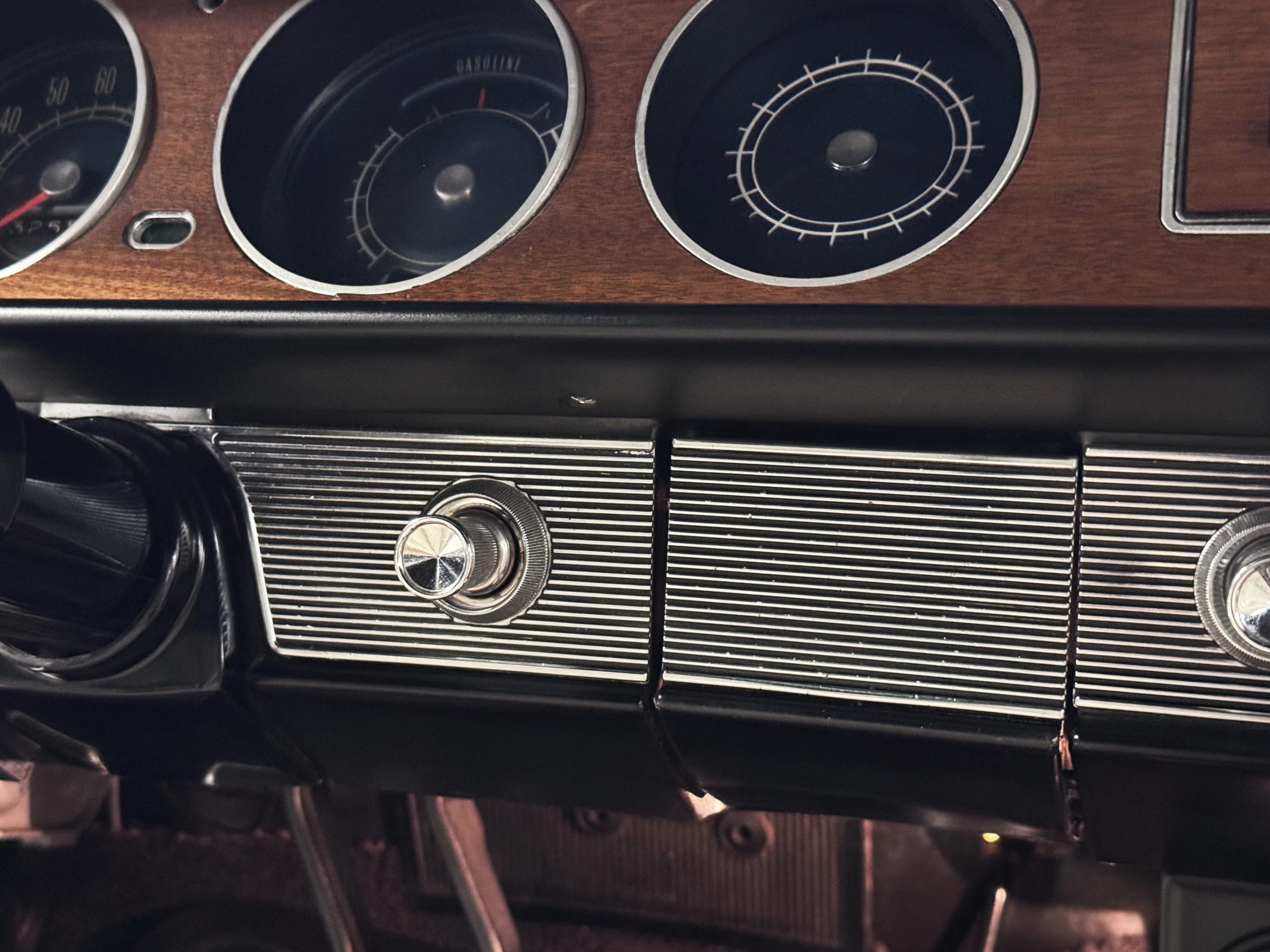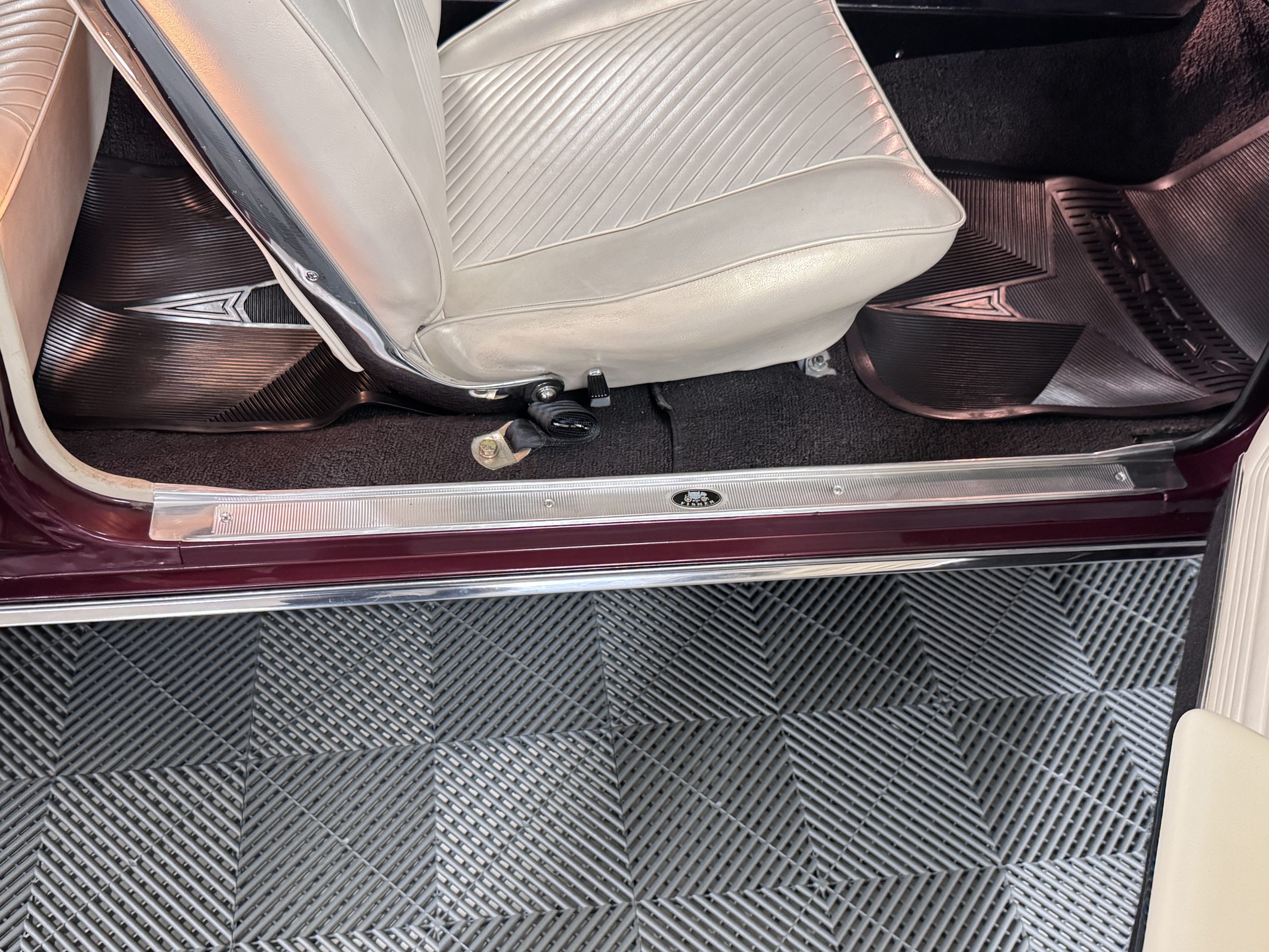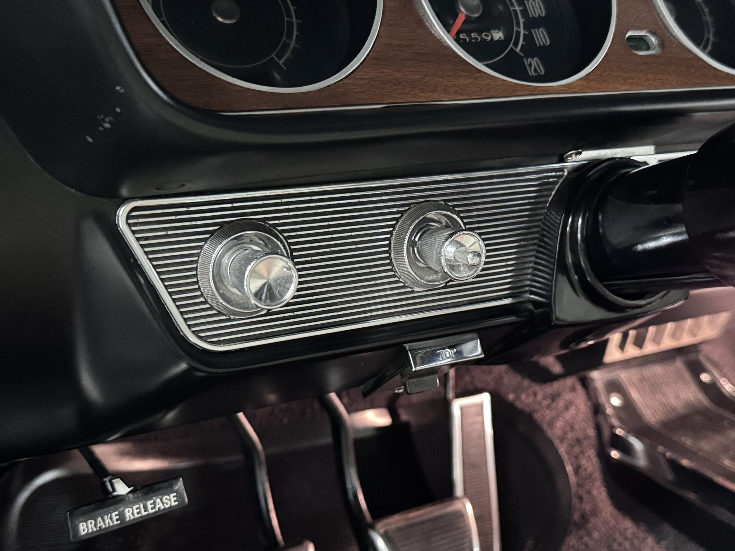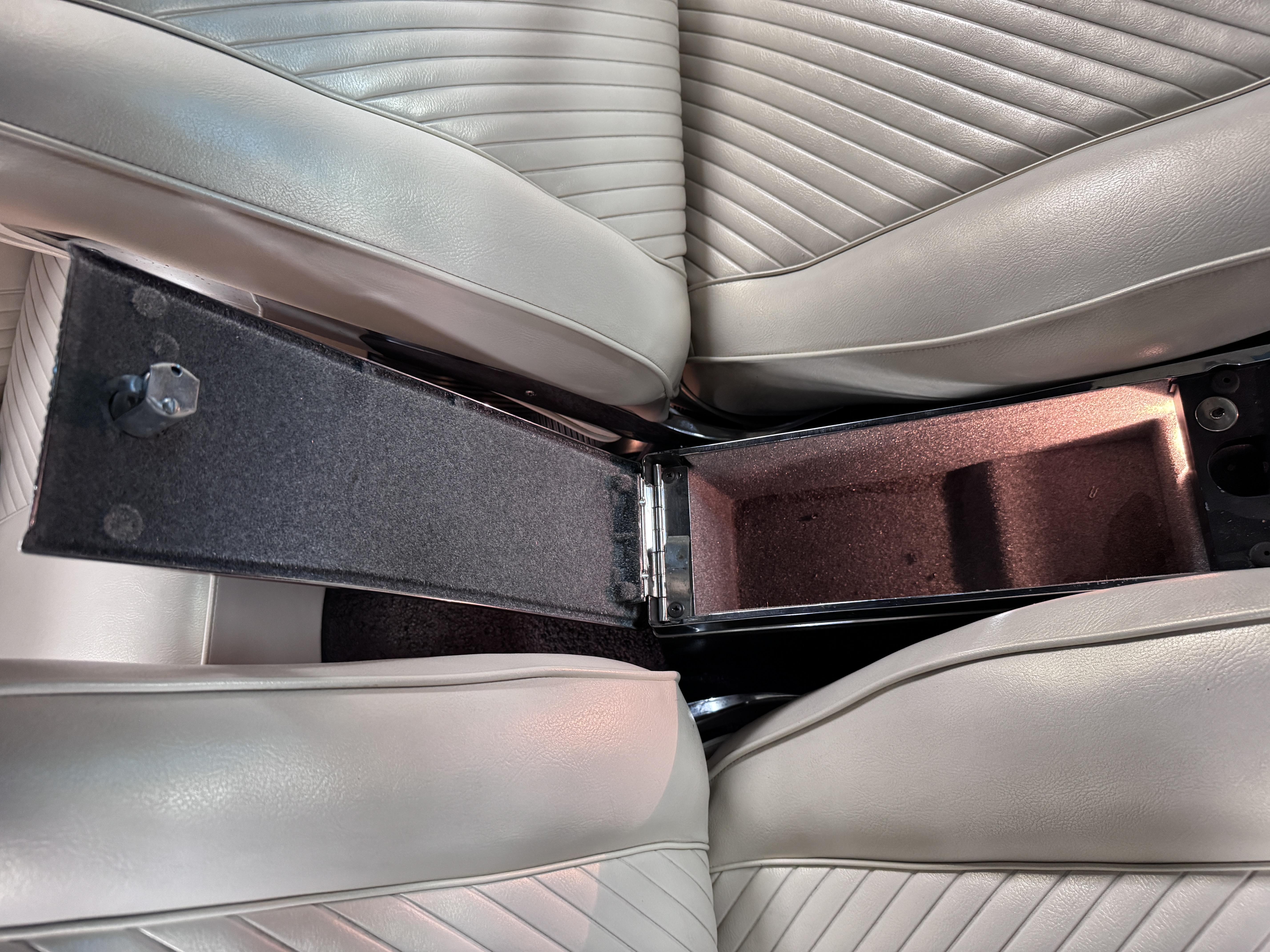The Pontiac features Parchment front bucket seats and a rear bench in excellent condition, paired with black carpet and black rubber floor mats that are in excellent condition. The wood veneer dash and a period-correct Pontiac AM radio. The Pontiac is equipped with a power-adjustable driver’s seat, deluxe steering wheel, center console, dual horns, and fully functioning fan, heater, and courtesy lighting. The cohesive interior presentation supports the Pontiac’s dual appeal for show presentation and enjoyable open-air touring.