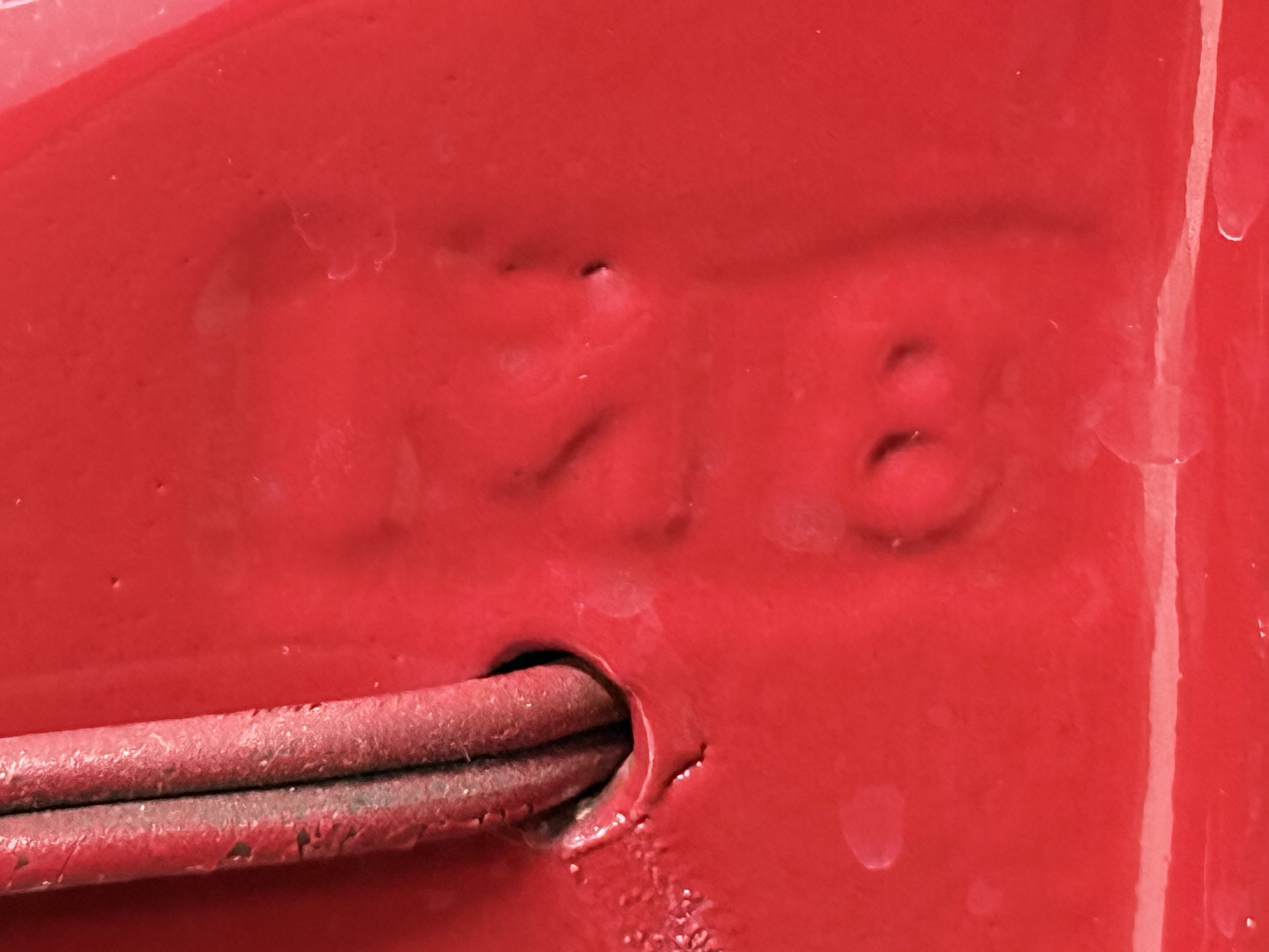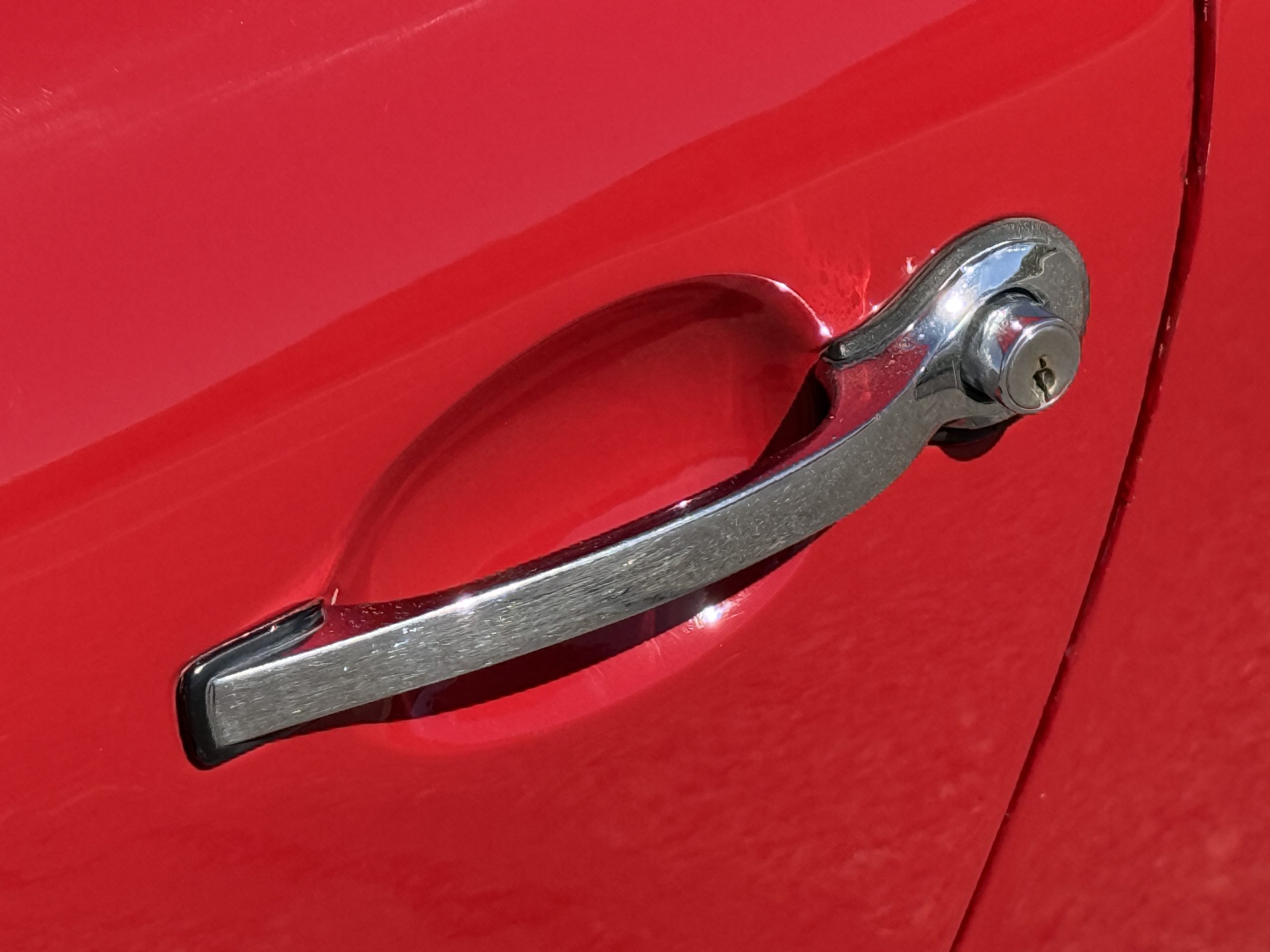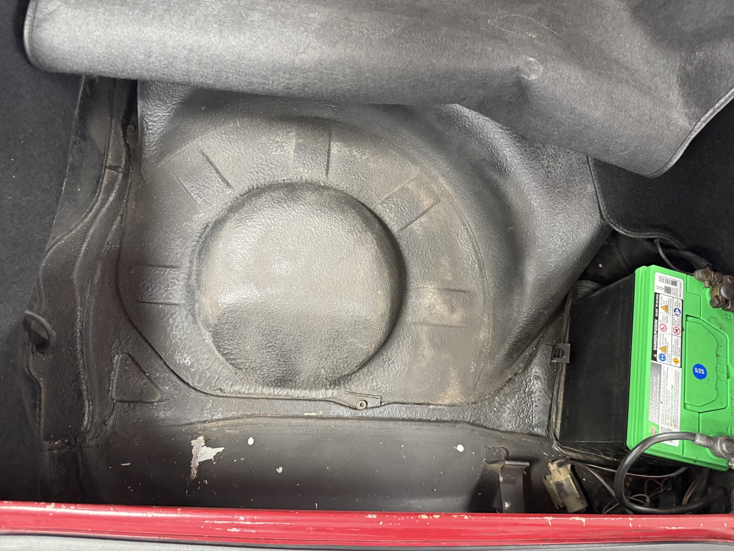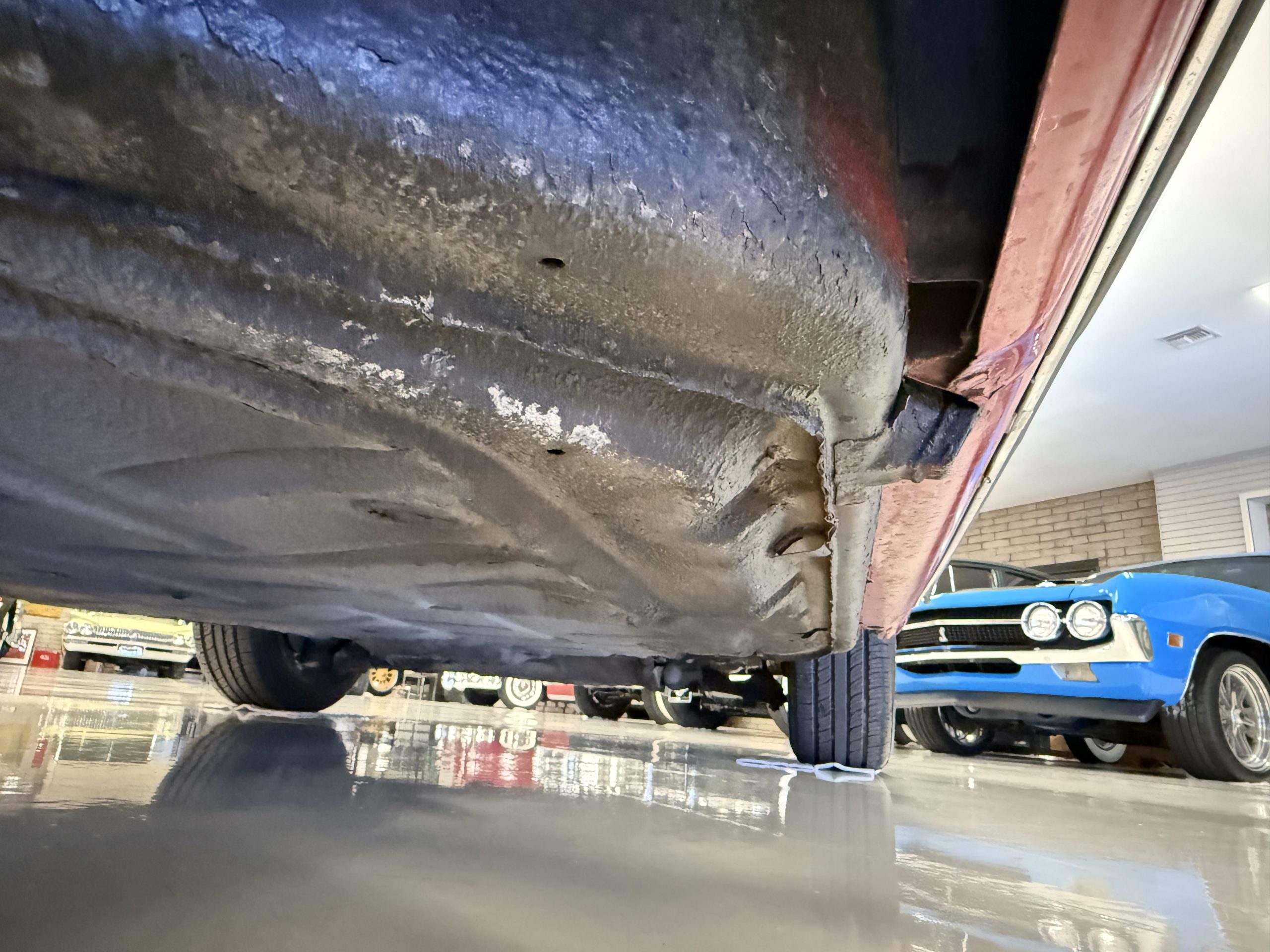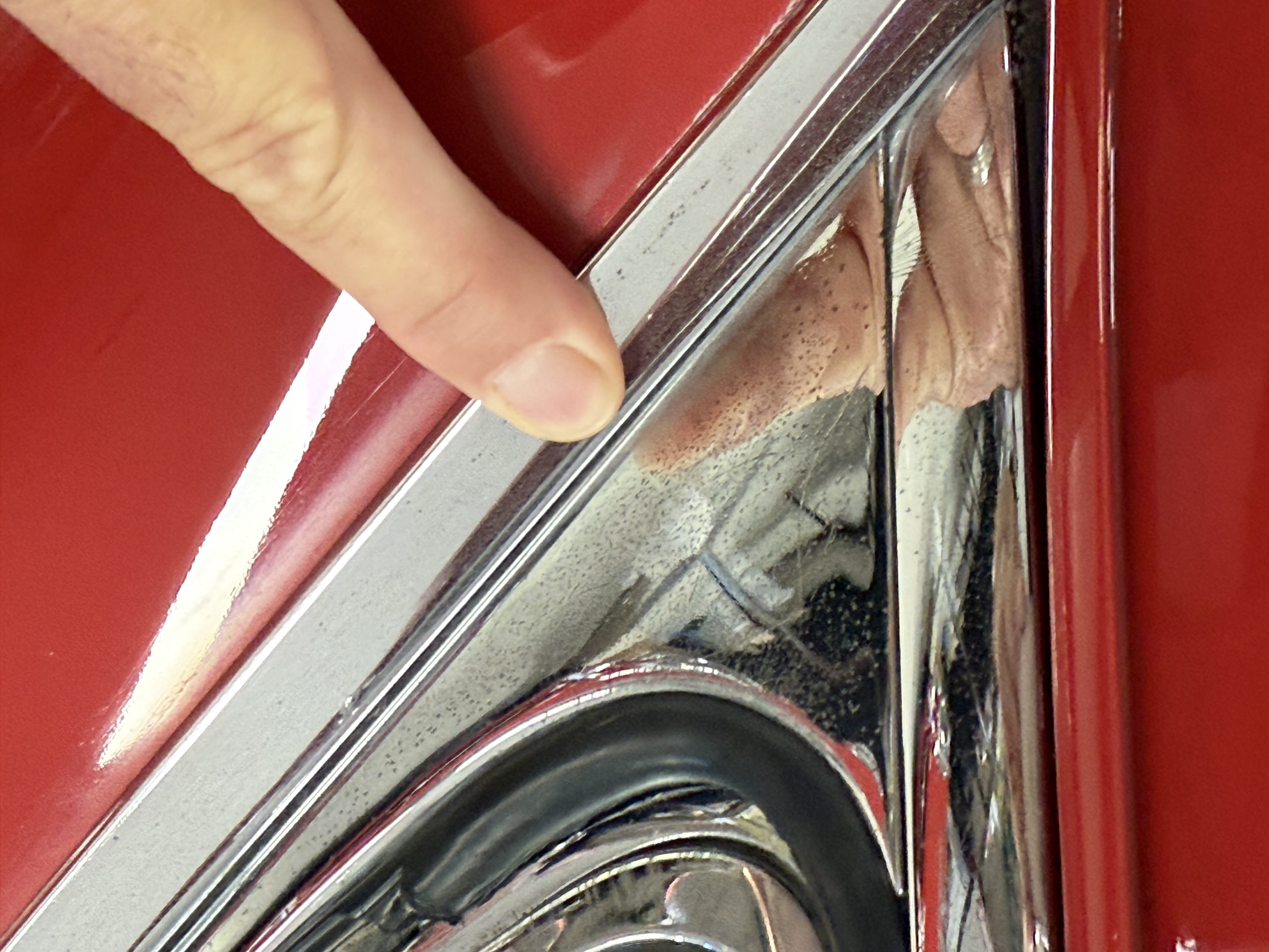 Originally this was Sand Beige and was repainted in red under prior ownership. Exterior features include bright bumpers with guards, bright windshield wipers, a retractable antenna, and a single exhaust outlet. There are spots of rust and various paint blemishes around the body, close-up photos of which are provided in the gallery.