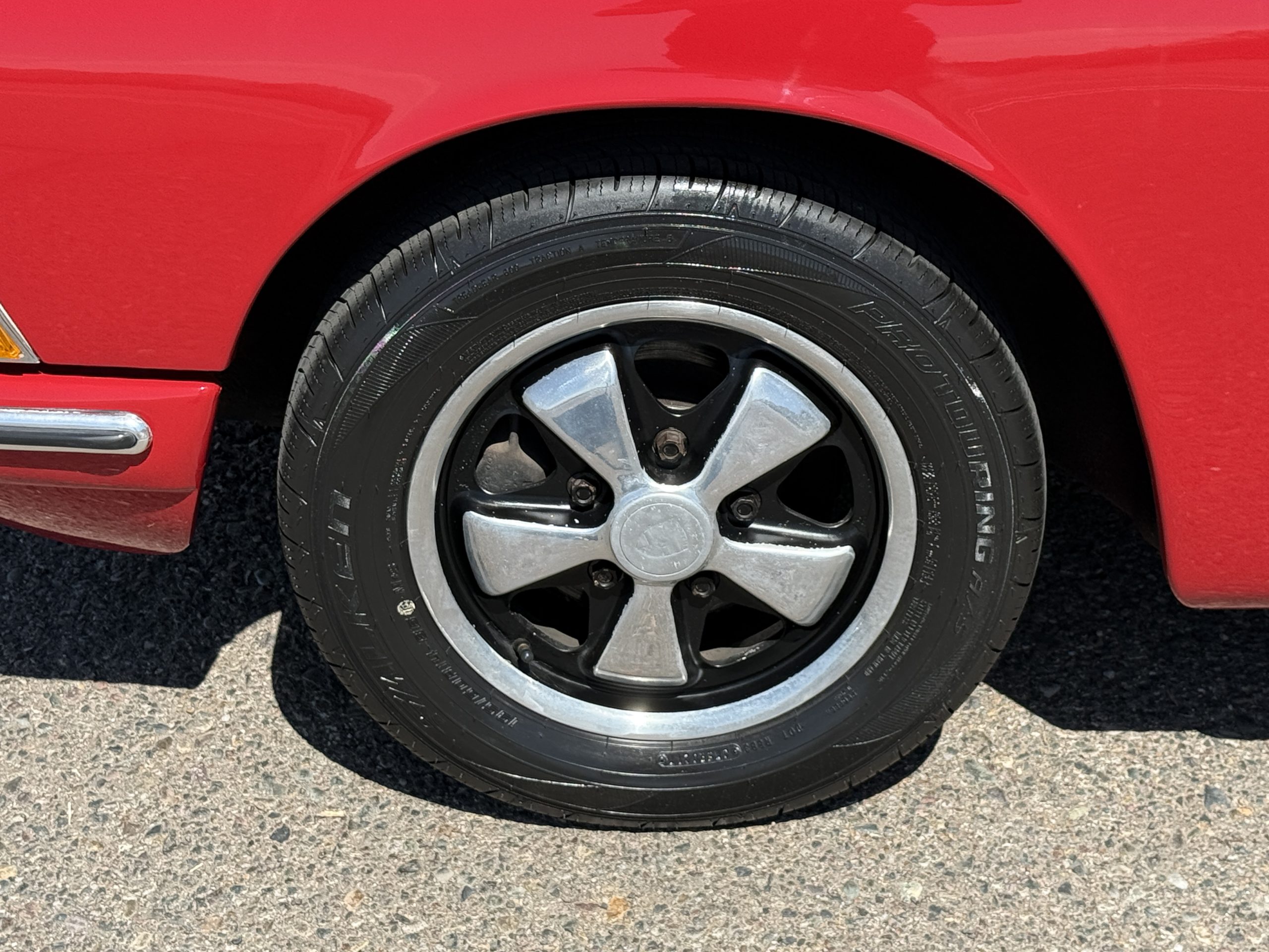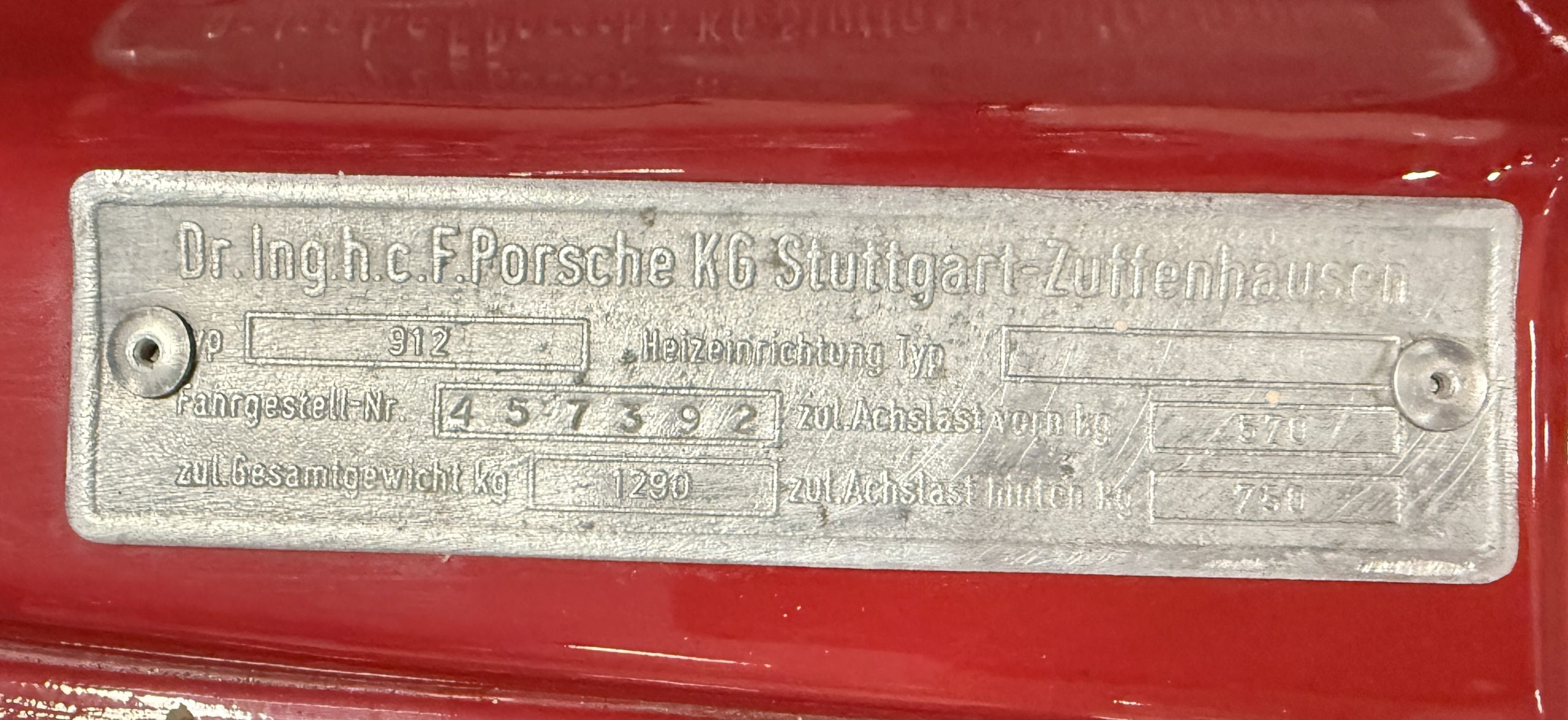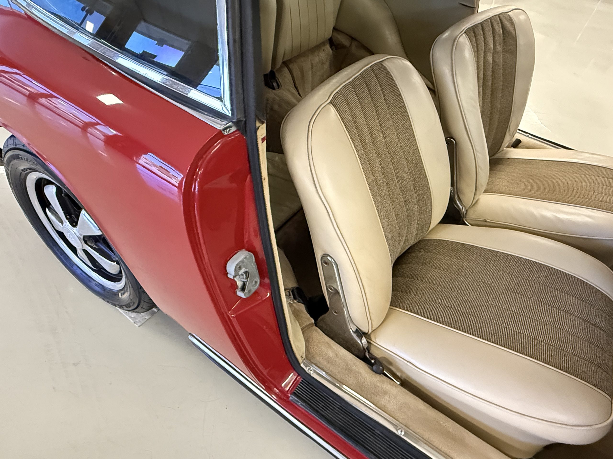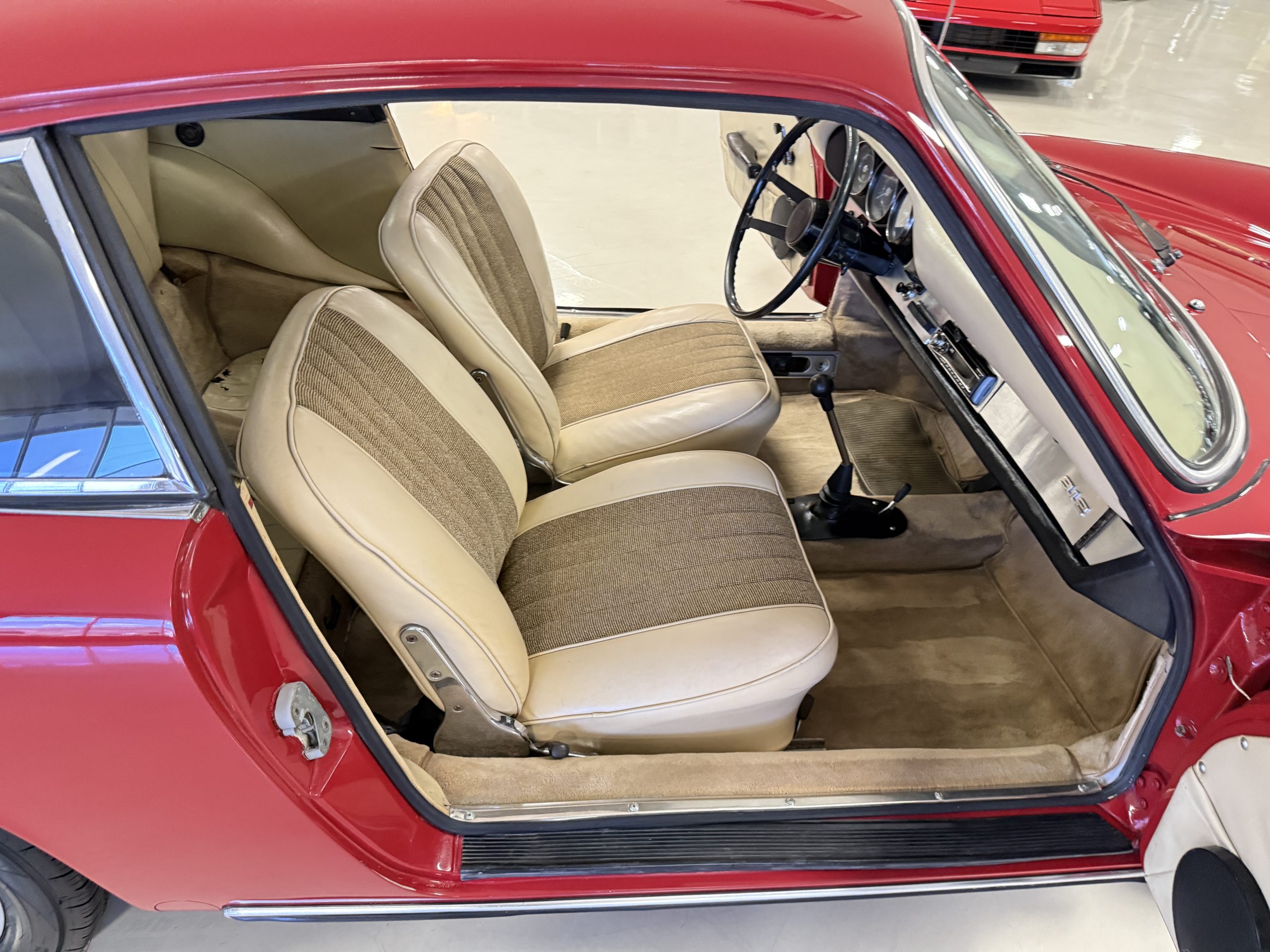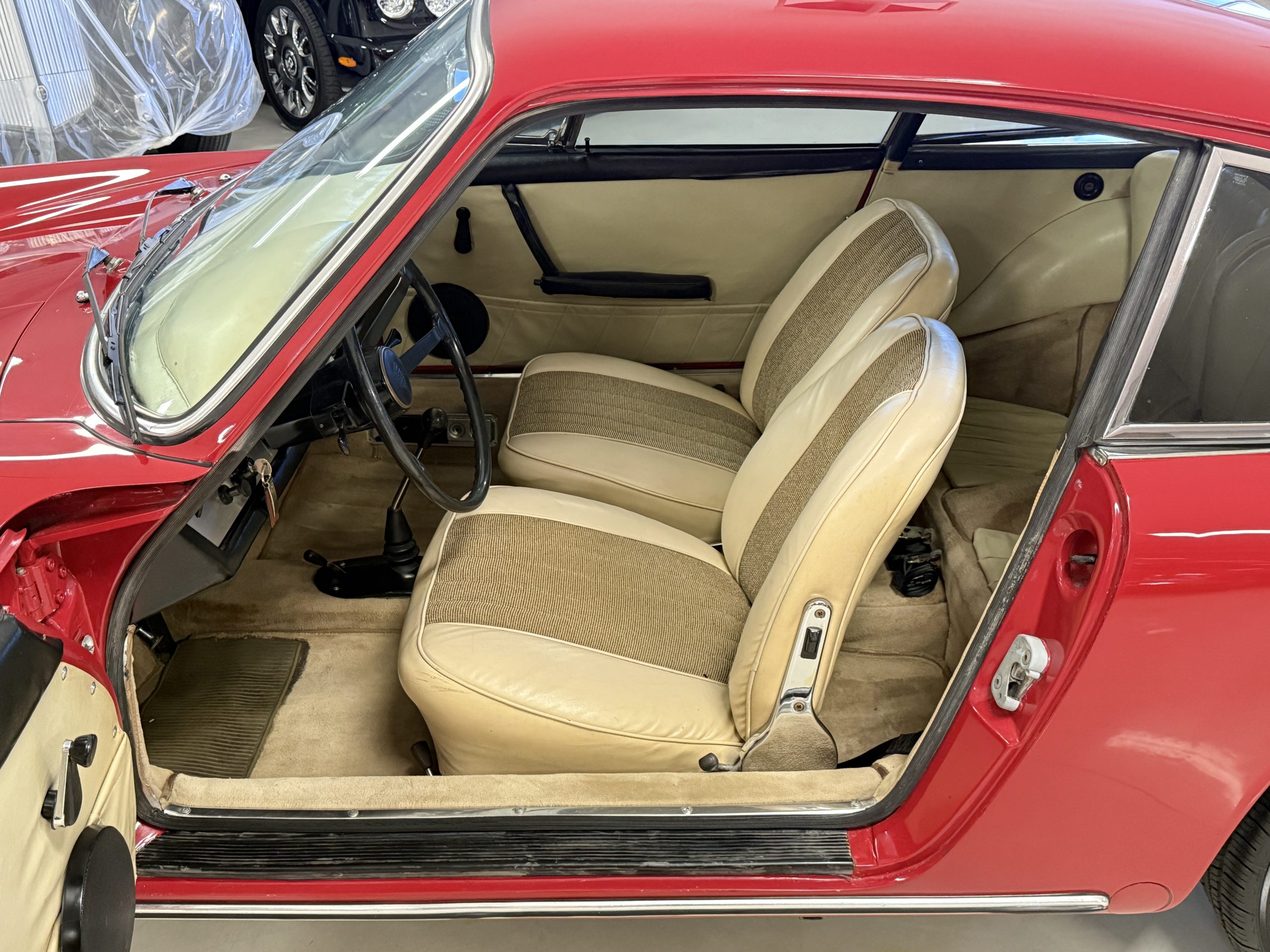 This 1966 Porsche 912 coupe was acquired by the current owner in 2013 and is powered by a 1.6-liter flat-four paired with a four-speed manual transaxle. The car is finished in red over beige leatherette and equipped with 15″ Fuchs forged alloy wheels, four-wheel disc brakes, bright bumper guards, bucket seats, lap and shoulder belts, and a heater. Work in 2023 included rebuilding the Solex carburetors and replacing the shift linkage components, while a new battery was installed and the carburetors were serviced in May 2025.