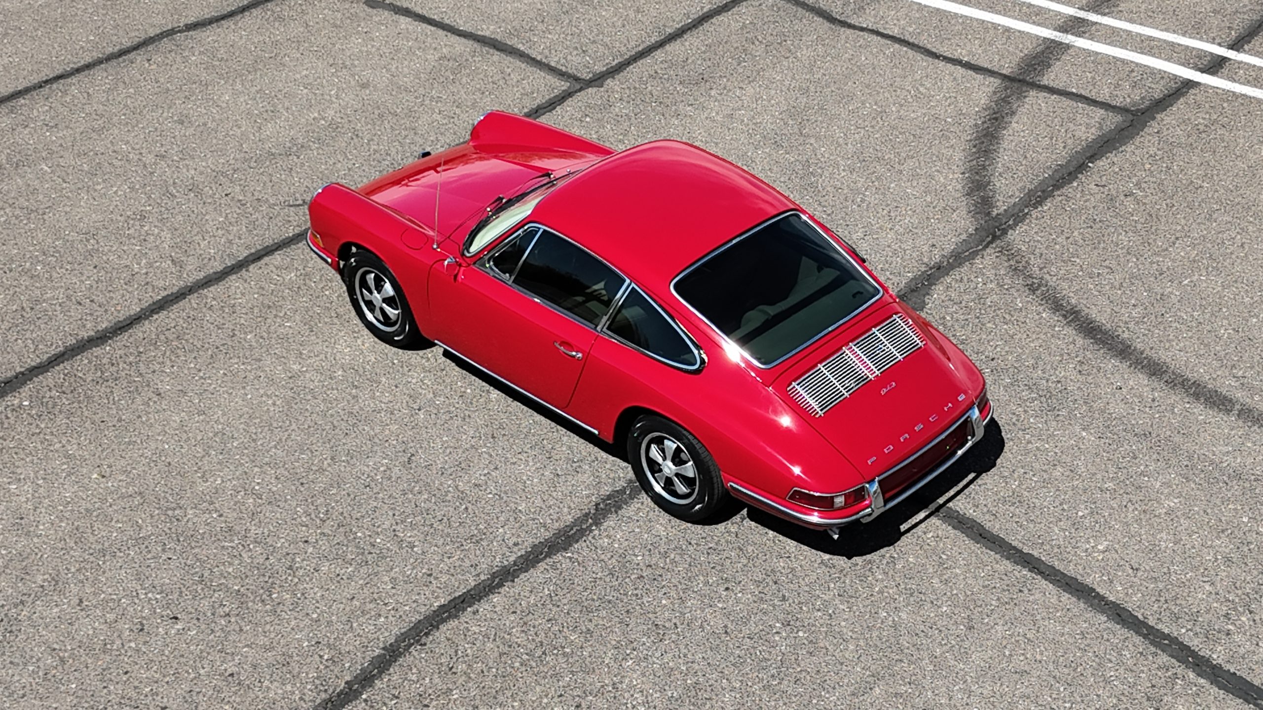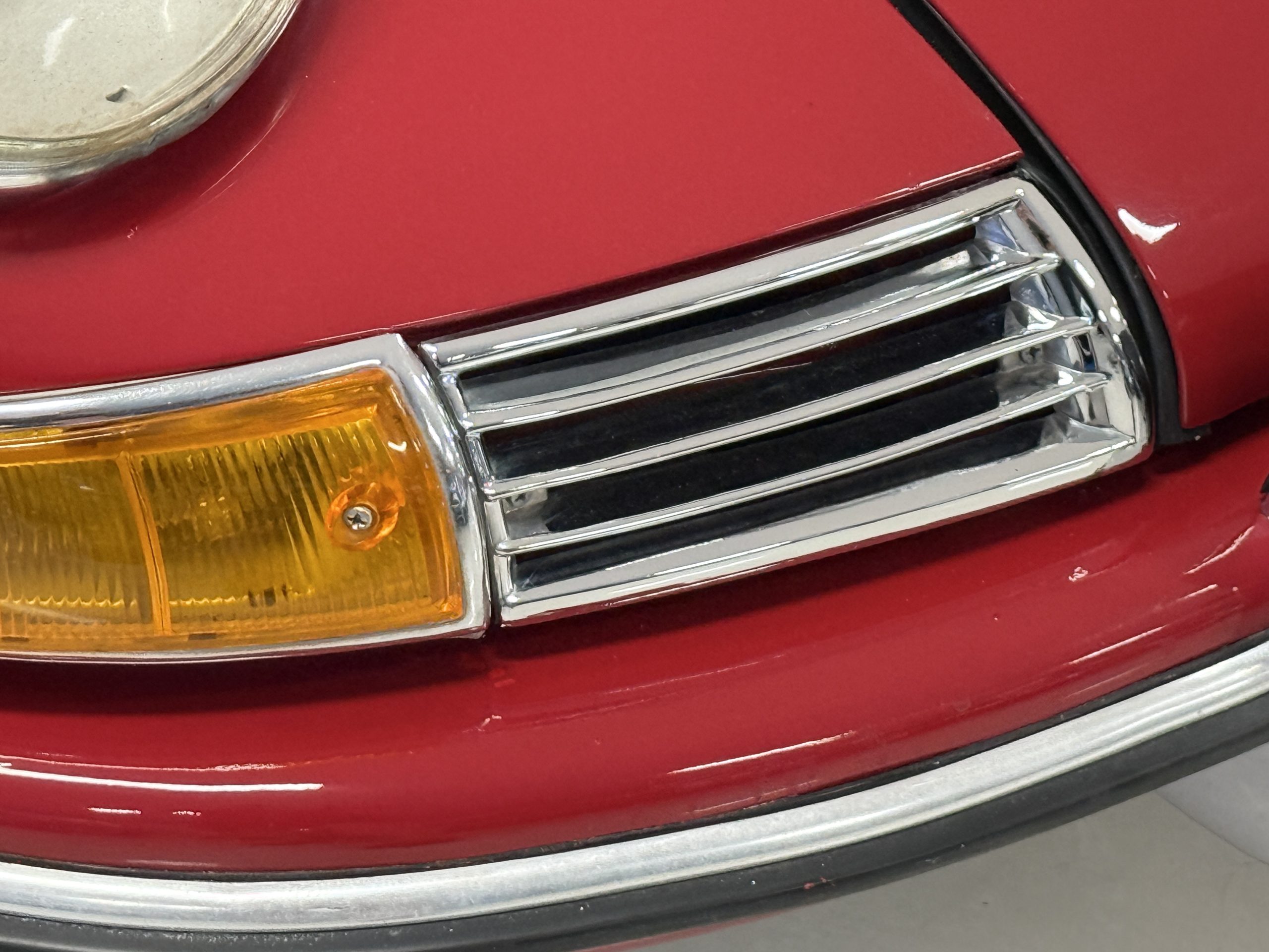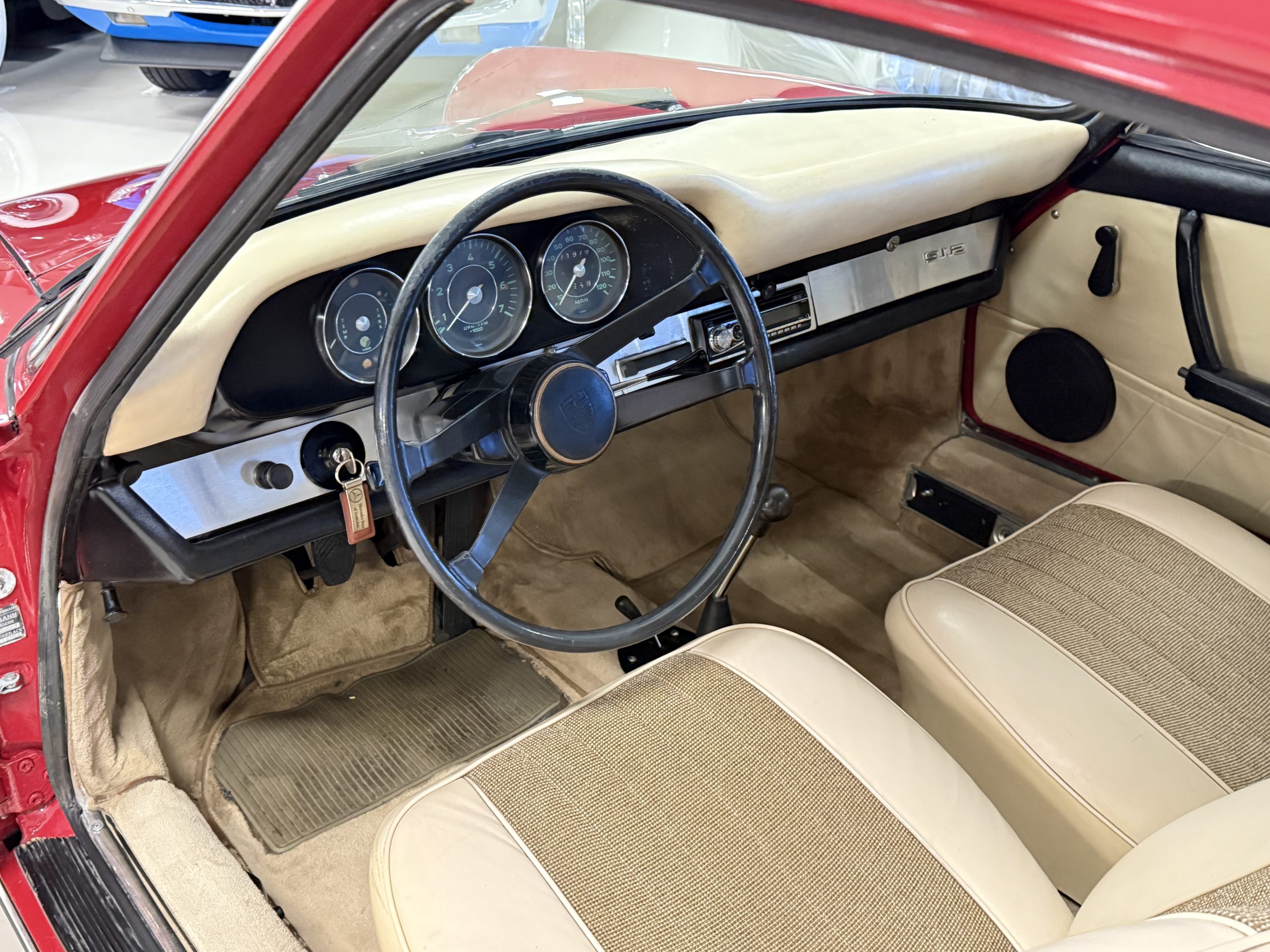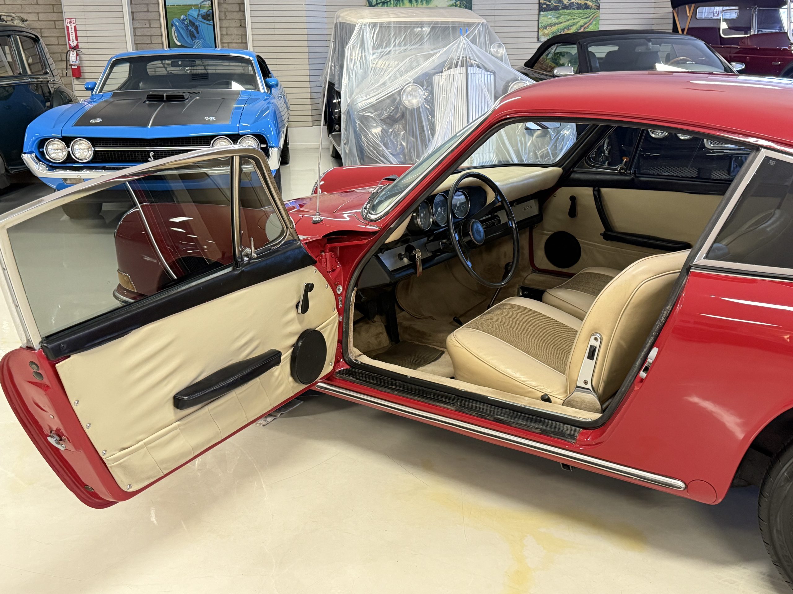 This 1966 Porsche 912 coupe was acquired by the current owner in 2013 and is powered by a 1.6-liter flat-four paired with a four-speed manual transaxle. The car is finished in red over beige leatherette and equipped with 15″ Fuchs forged alloy wheels, four-wheel disc brakes, bright bumper guards, bucket seats, lap and shoulder belts, and a heater. Work in 2023 included rebuilding the Solex carburetors and replacing the shift linkage components, while a new battery was installed and the carburetors were serviced in May 2025.