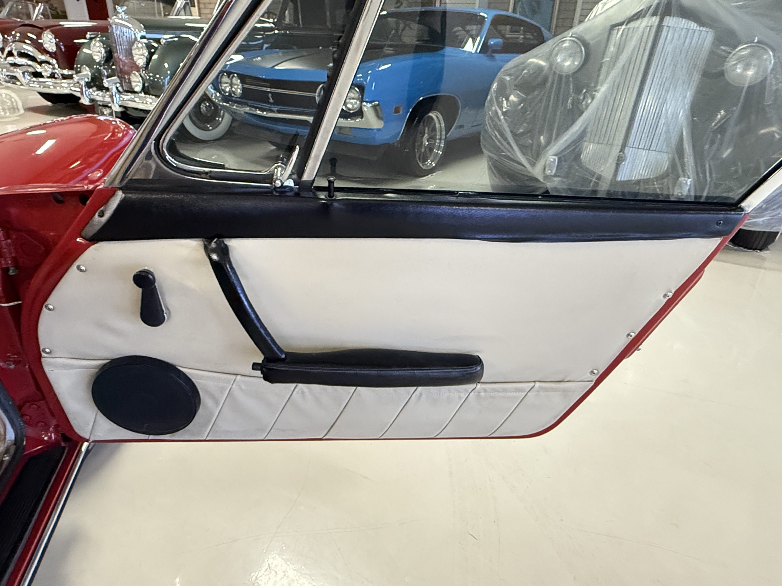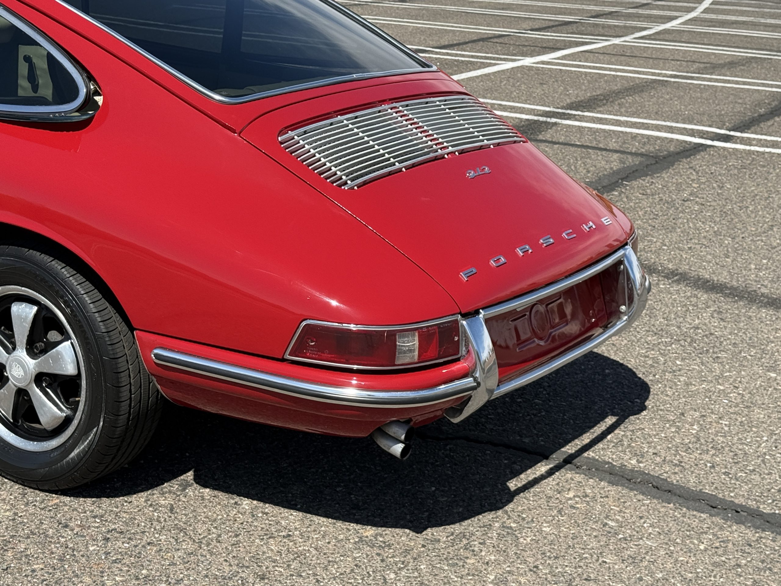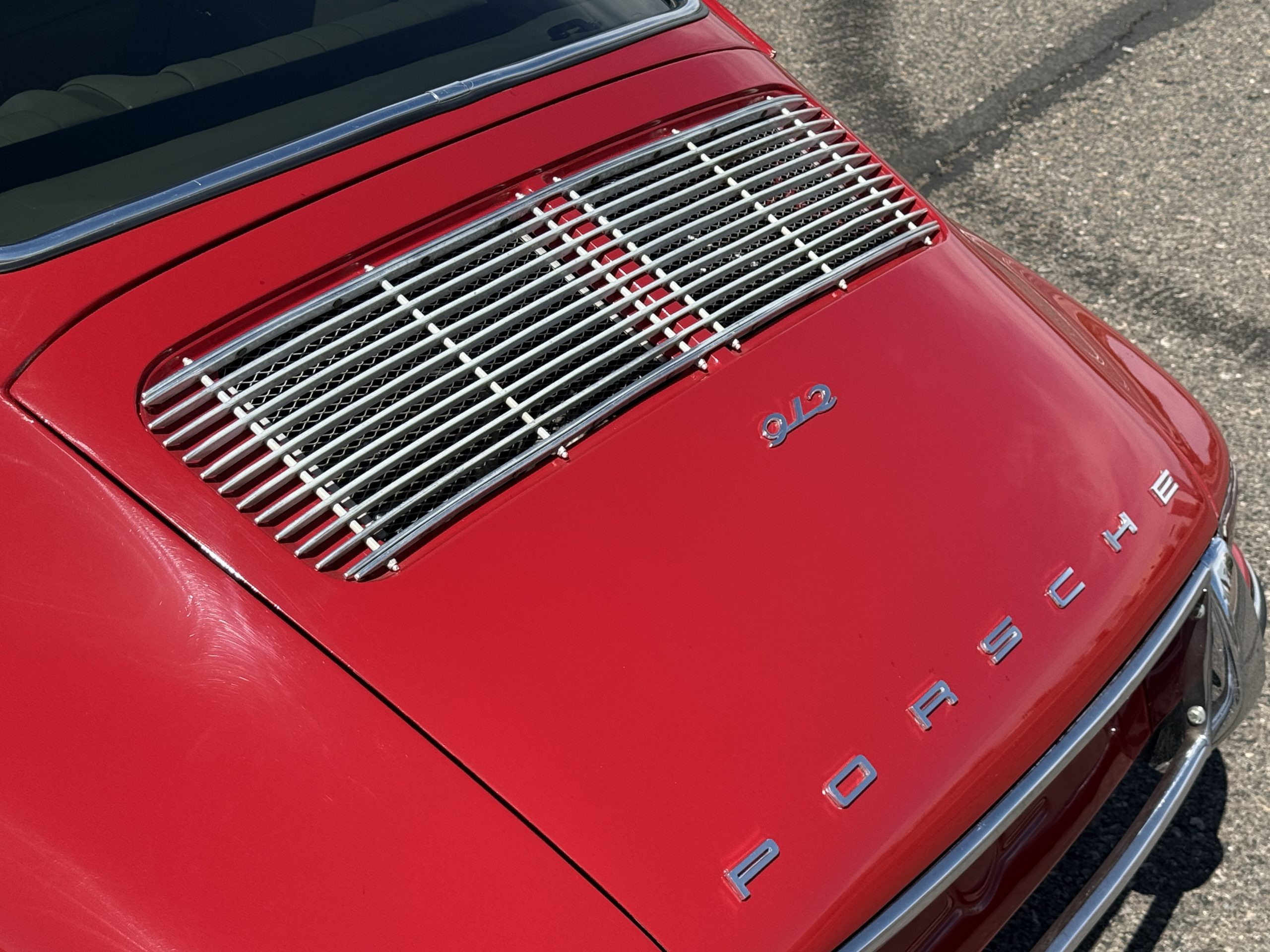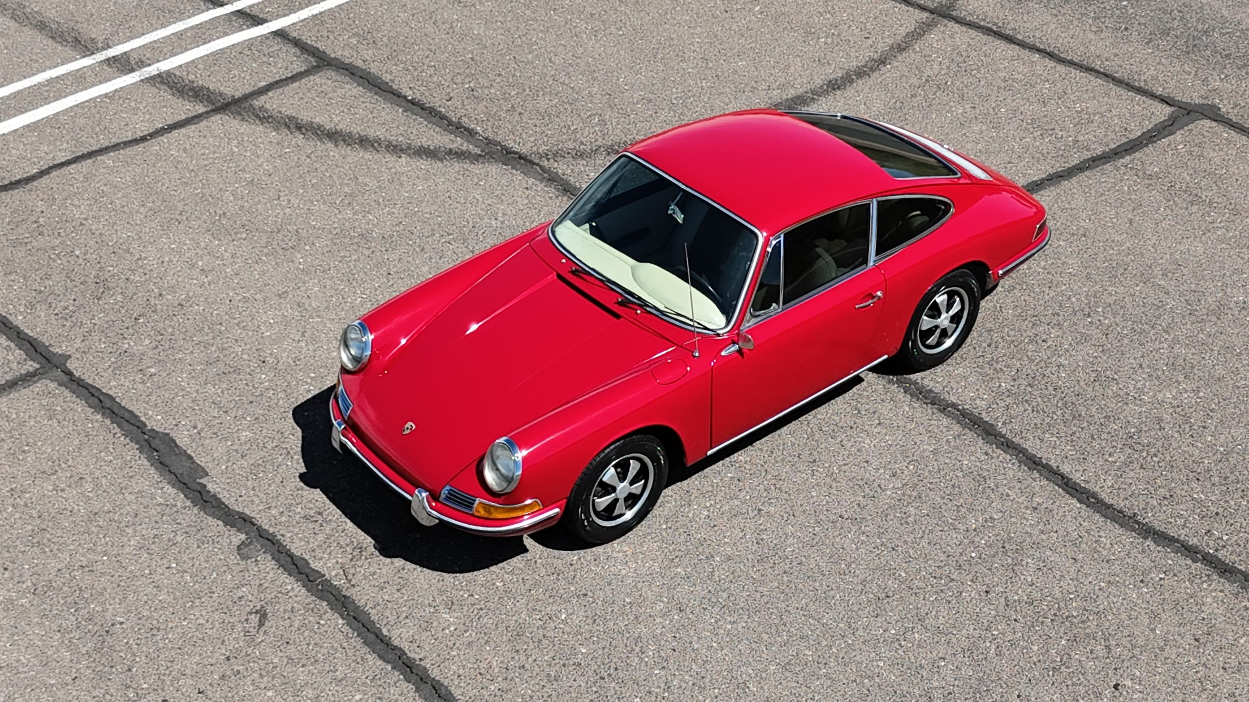 This 1966 Porsche 912 coupe was acquired by the current owner in 2013 and is powered by a 1.6-liter flat-four paired with a four-speed manual transaxle. The car is finished in red over beige leatherette and equipped with 15″ Fuchs forged alloy wheels, four-wheel disc brakes, bright bumper guards, bucket seats, lap and shoulder belts, and a heater. Work in 2023 included rebuilding the Solex carburetors and replacing the shift linkage components, while a new battery was installed and the carburetors were serviced in May 2025.