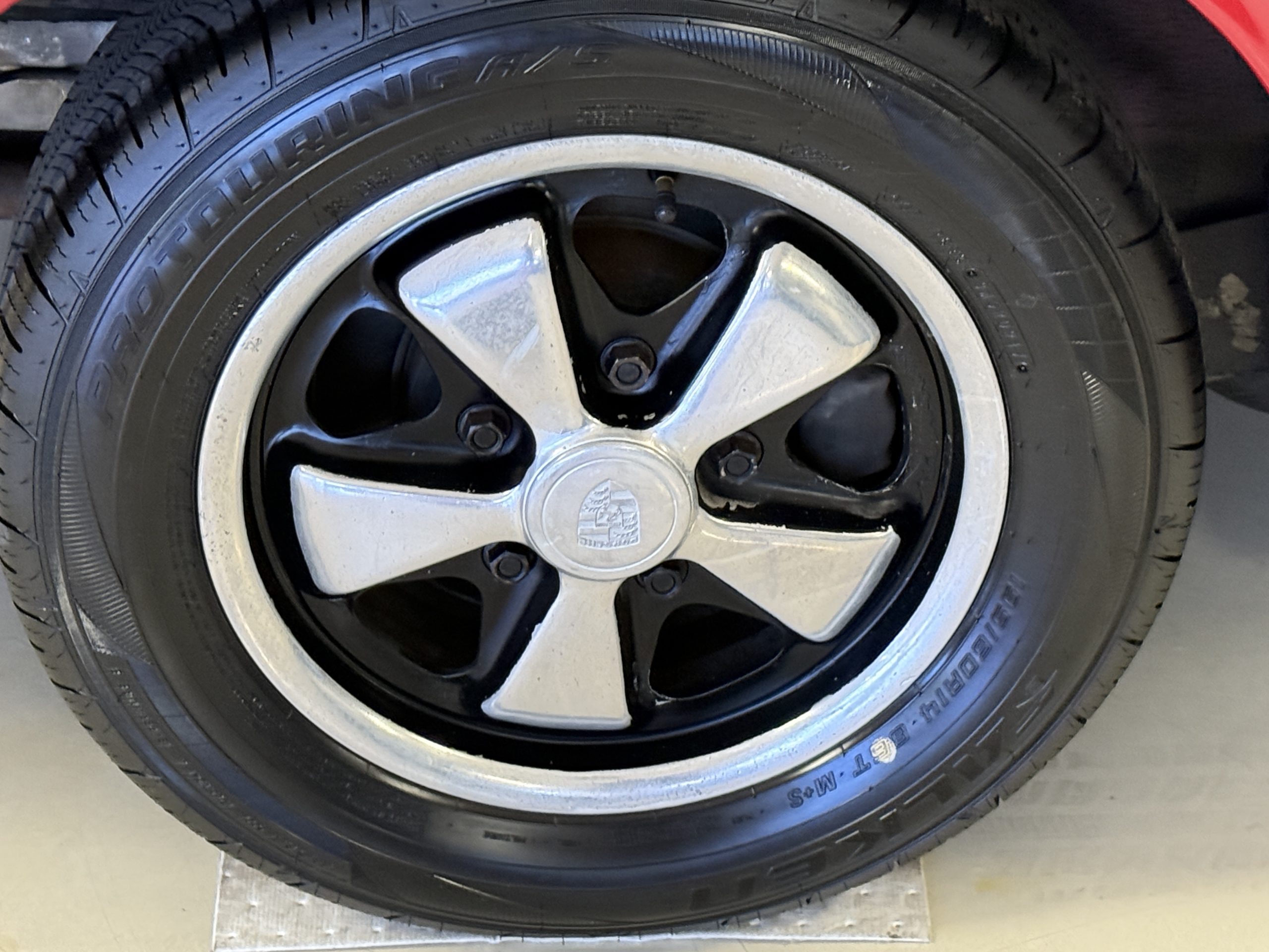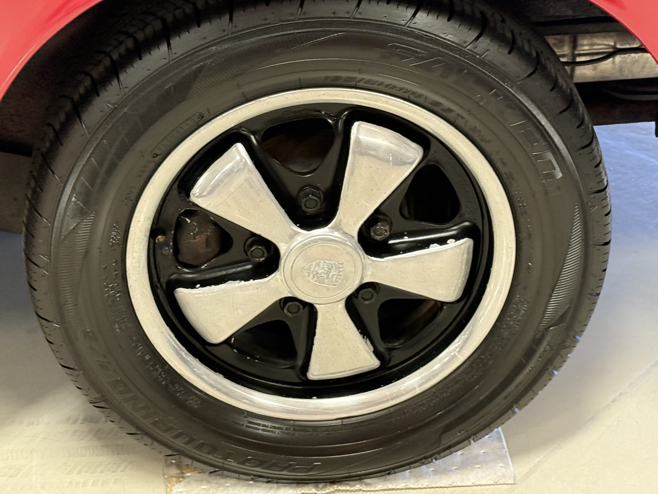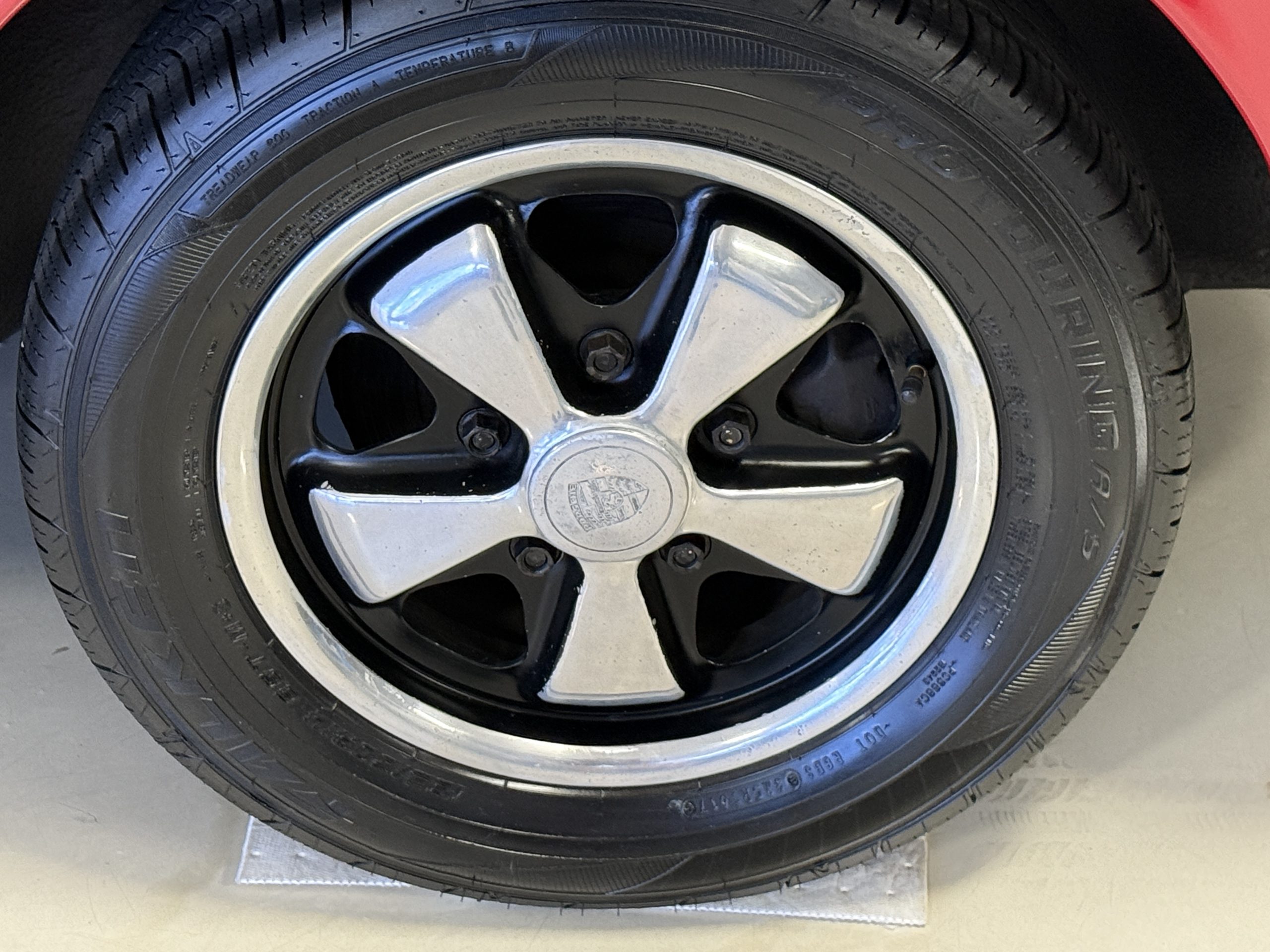 The 15″ Fuchs forged alloy wheels are mounted with 195/60R15 Falken Touring tires. The car is equipped with an independent front and rear suspension, and stopping power is provided by disc brakes at all four corners.