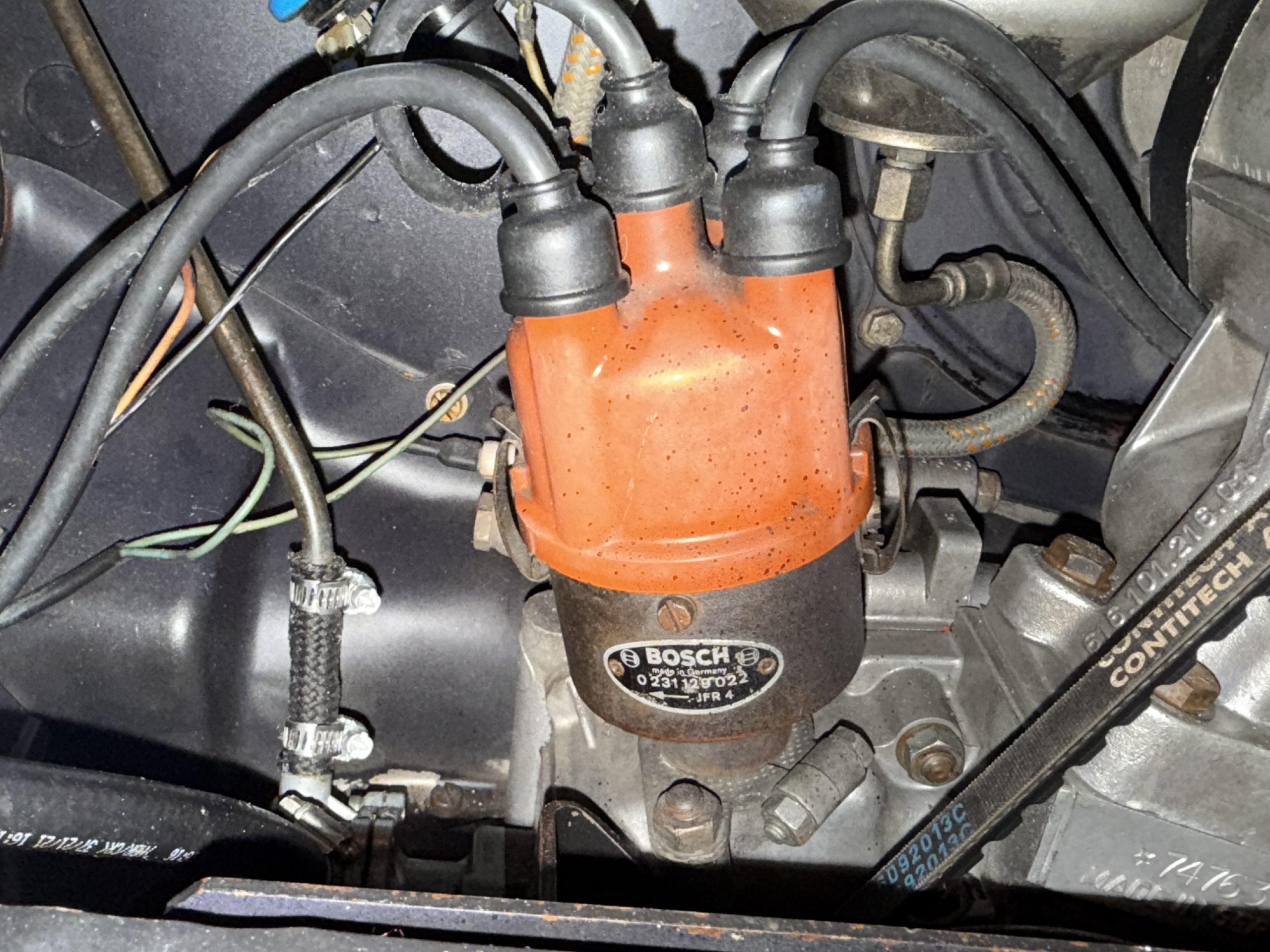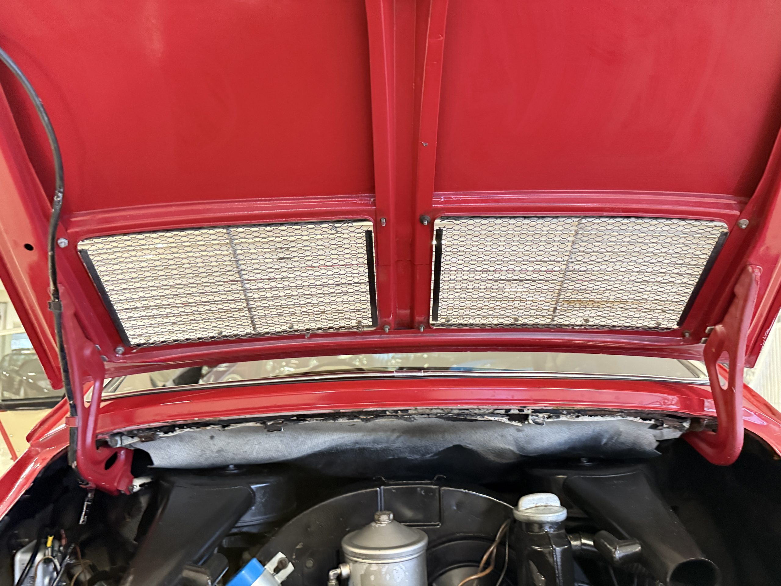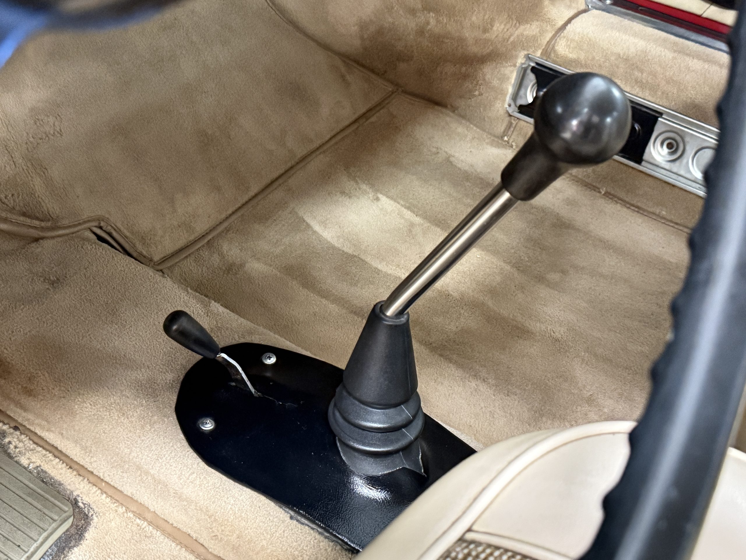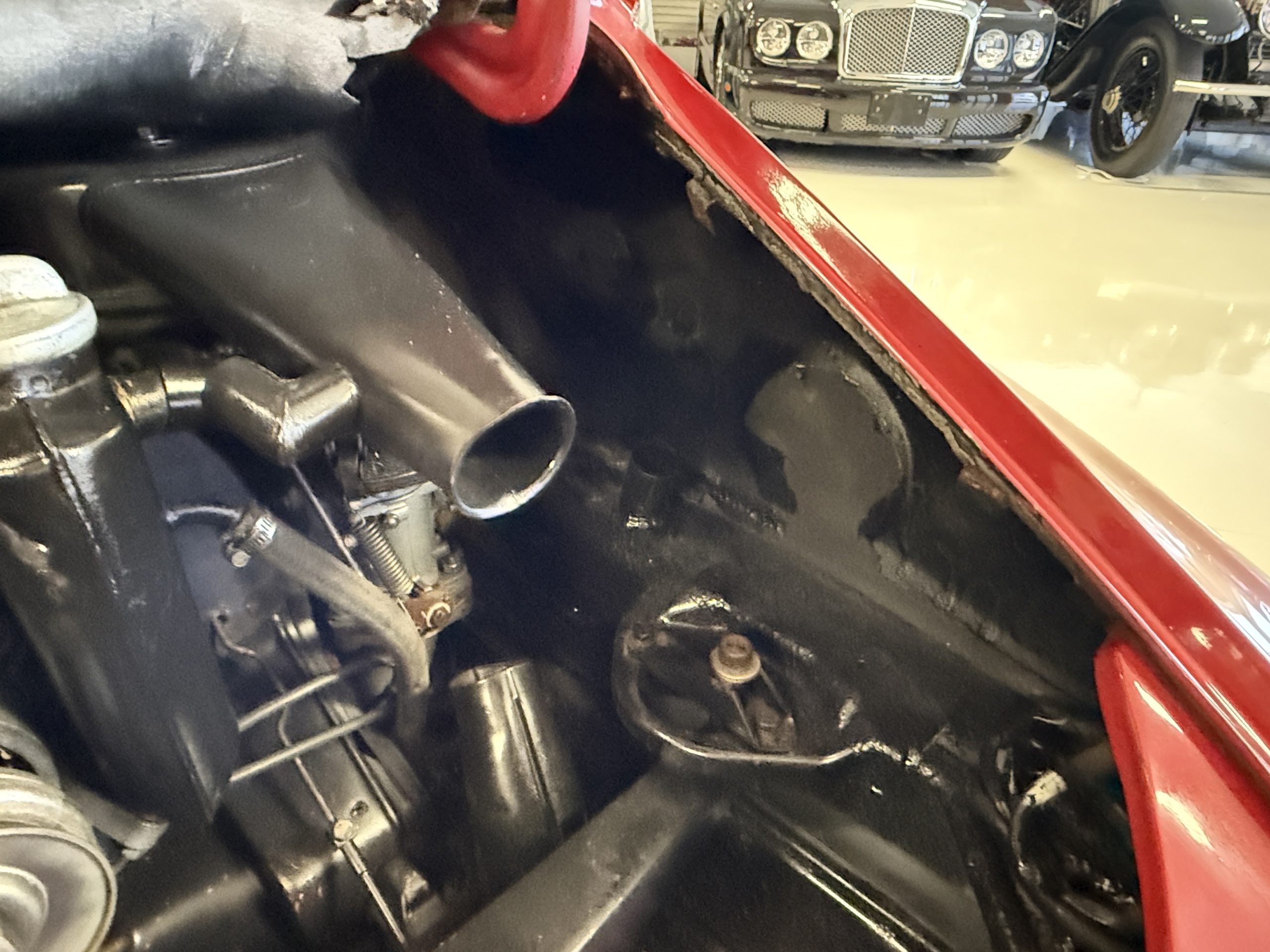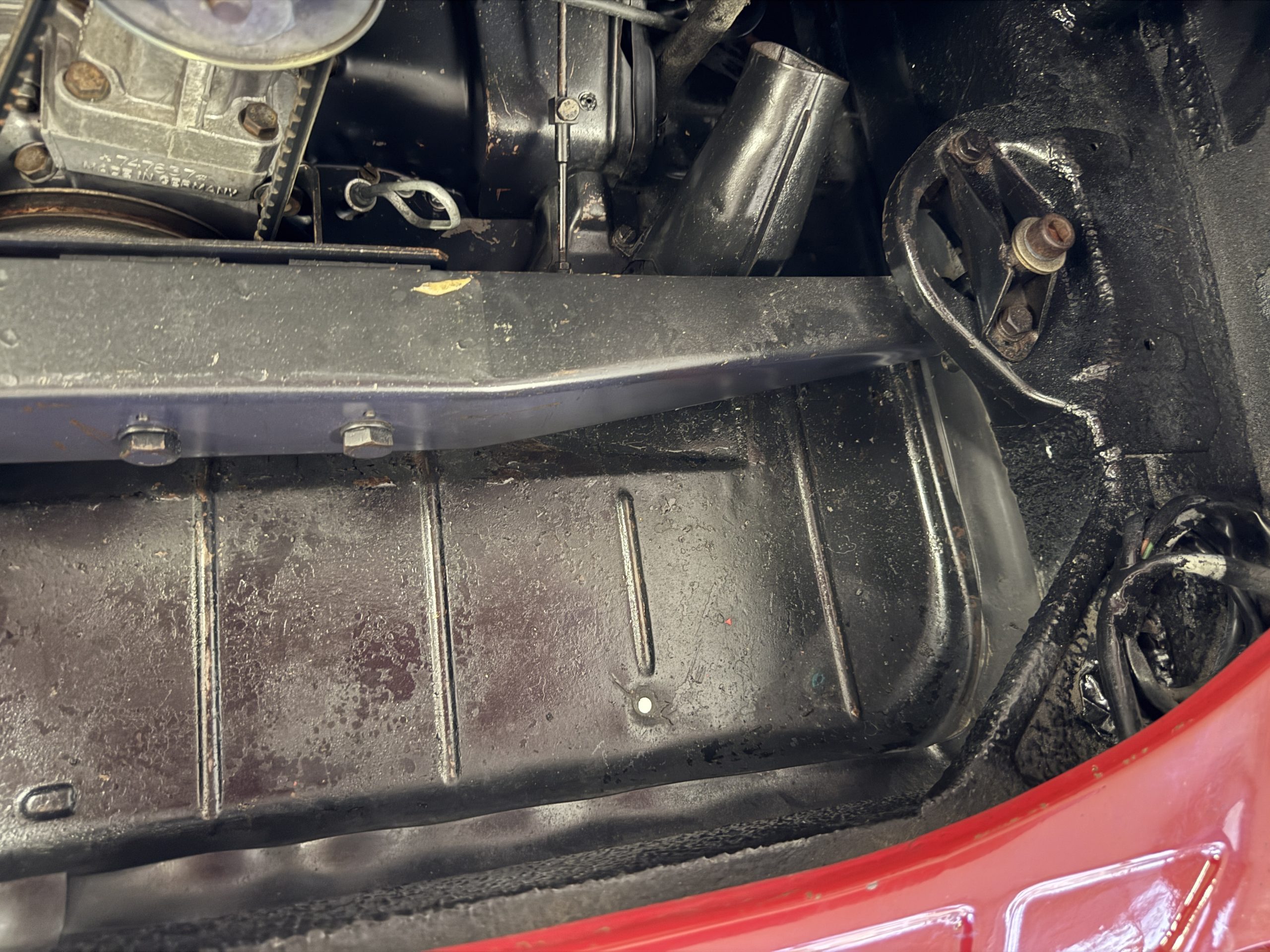 The 1.6-liter flat-four was factory rated at 90 horsepower and is equipped with dual Solex carburetors. In May 2023, the carburetors were rebuilt, the fuel lines were replaced, the valves were adjusted, and an oil change was performed. Service in May 2025 included replacing the battery, cleaning the idle jets, and setting the carburetors. Power is sent to the rear wheels through a four-speed manual transaxle. The shift coupler and bushings were replaced in May 2023.