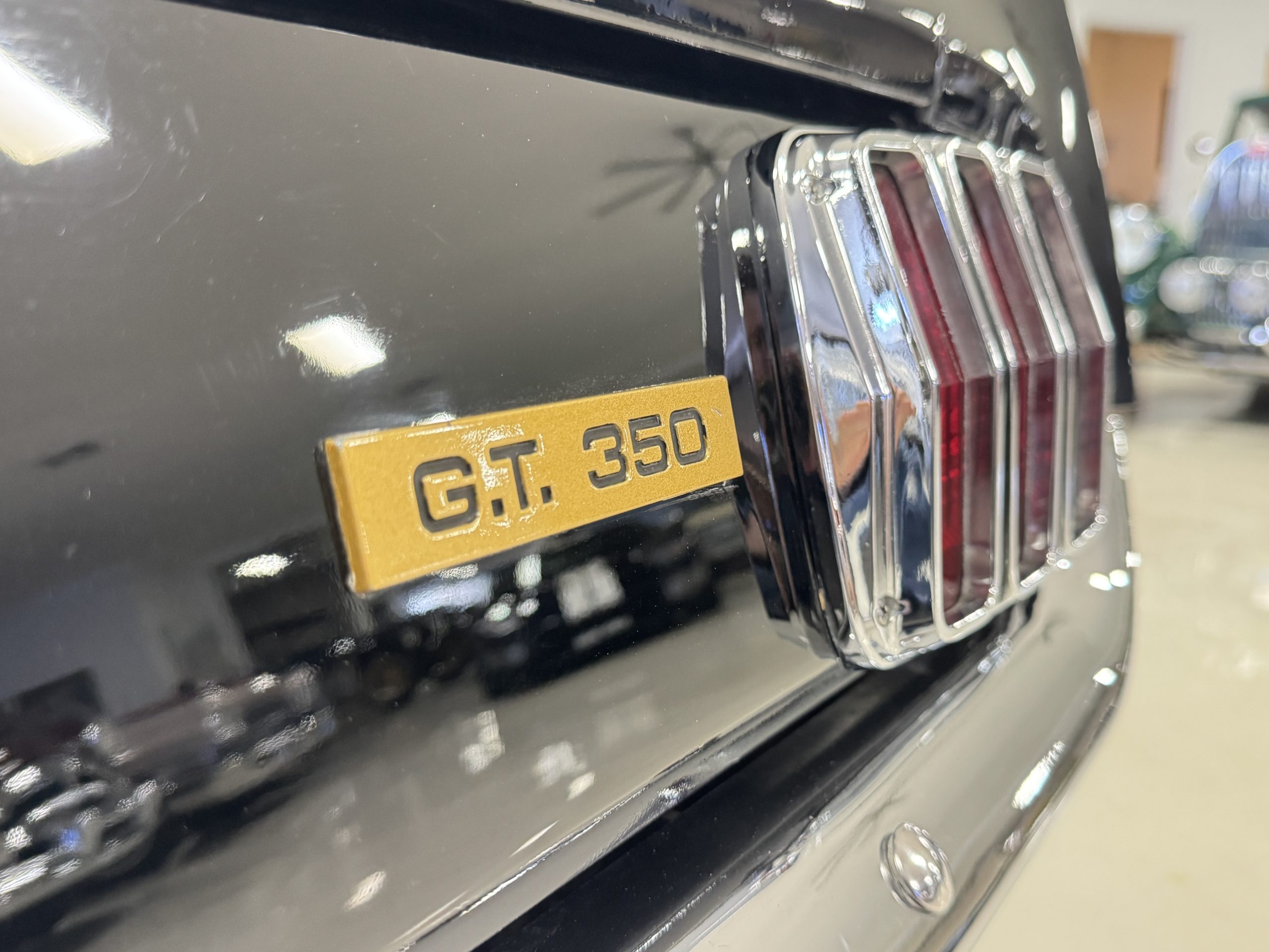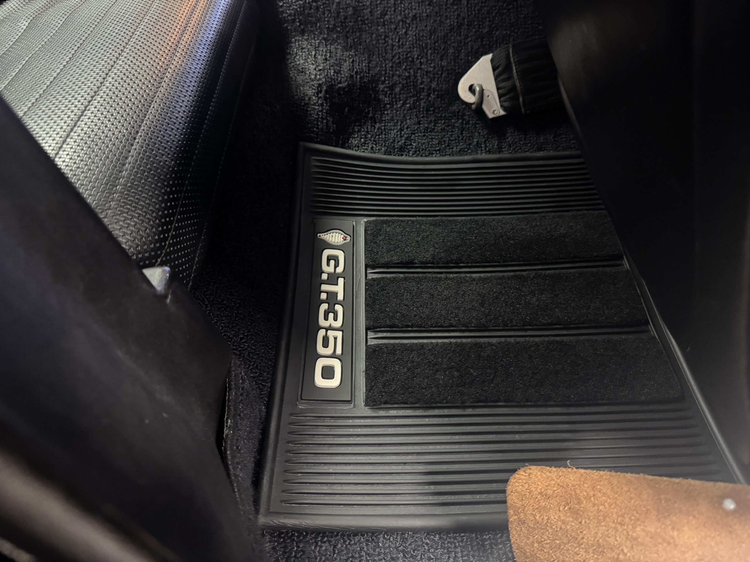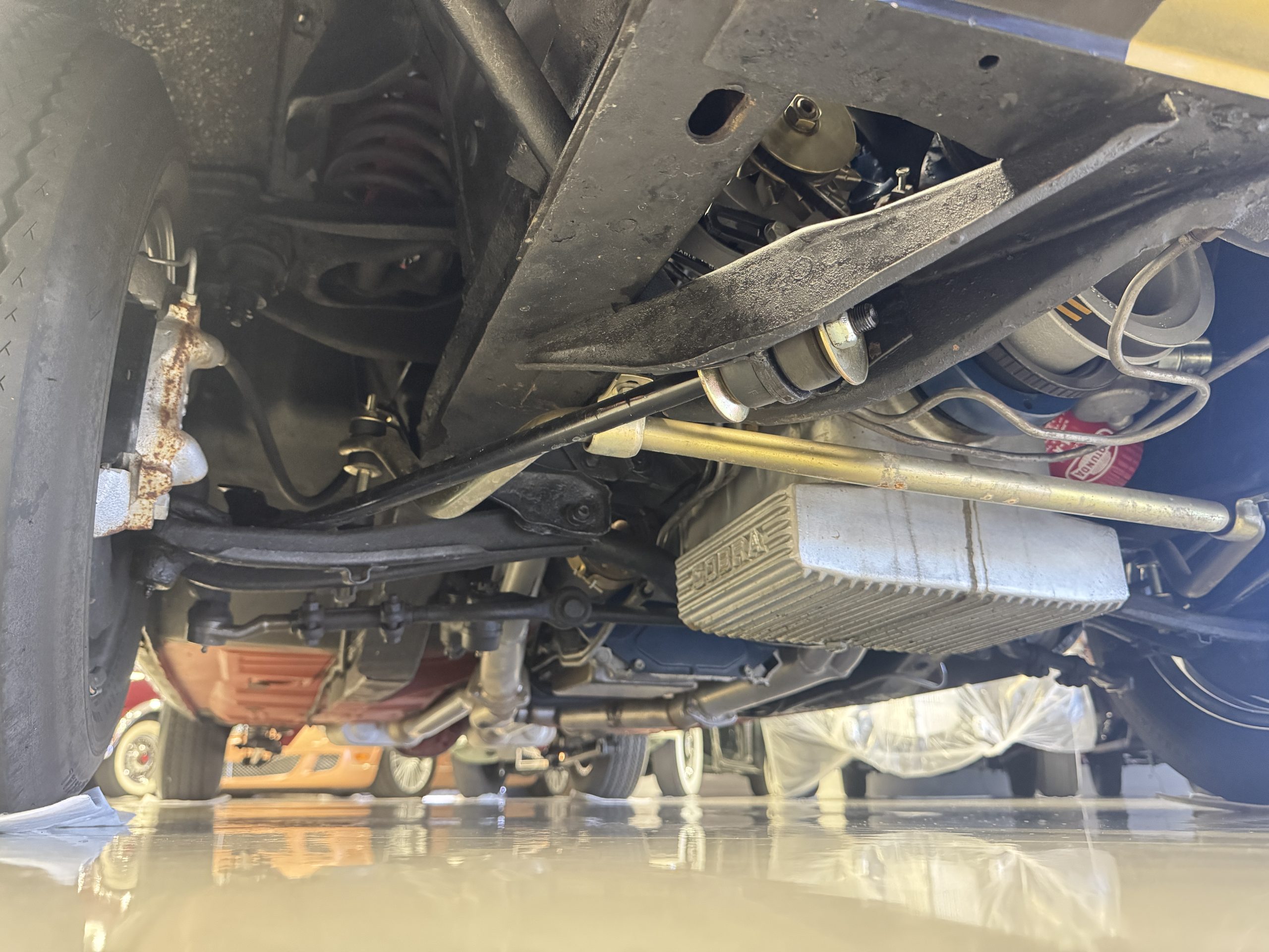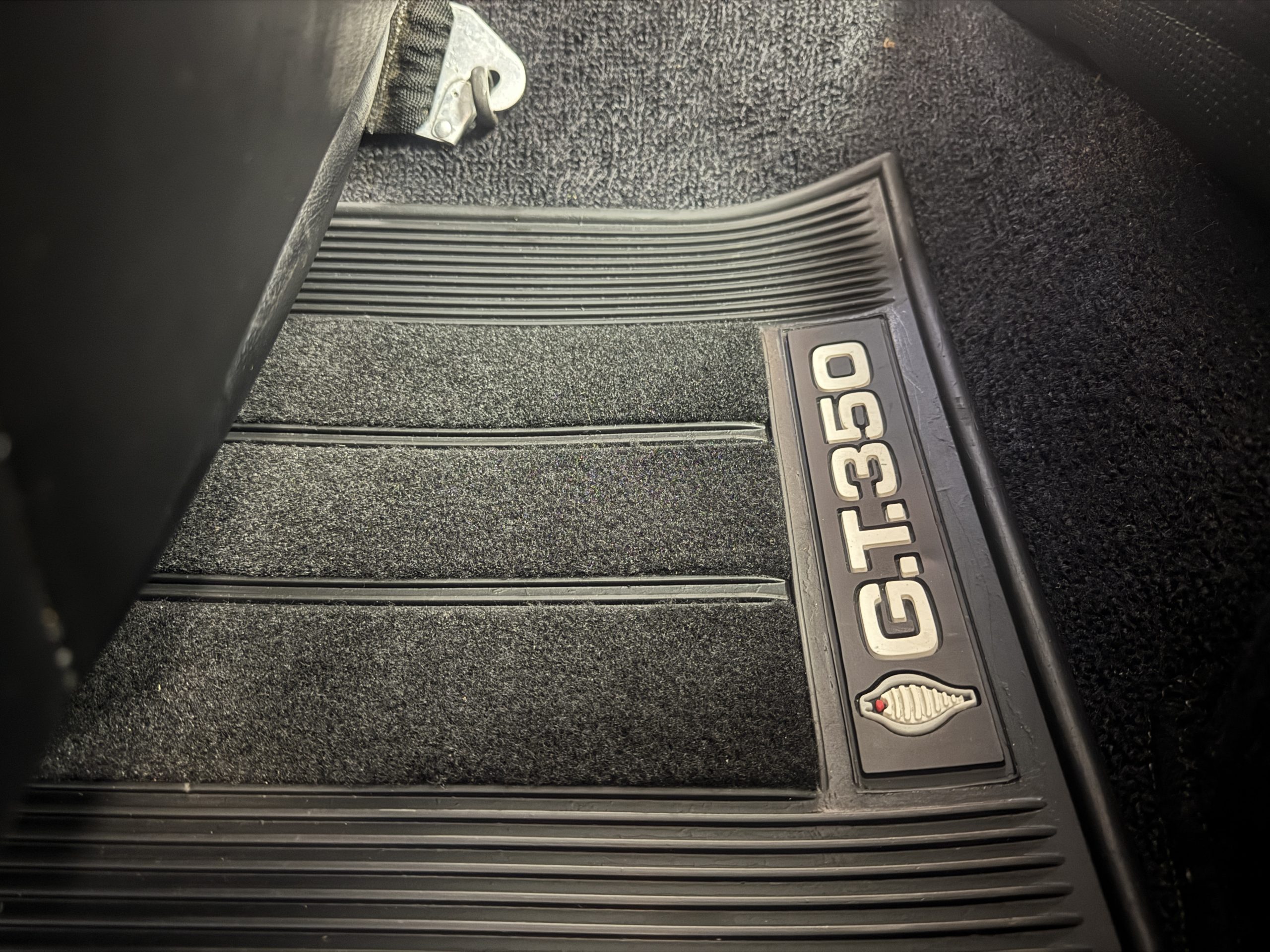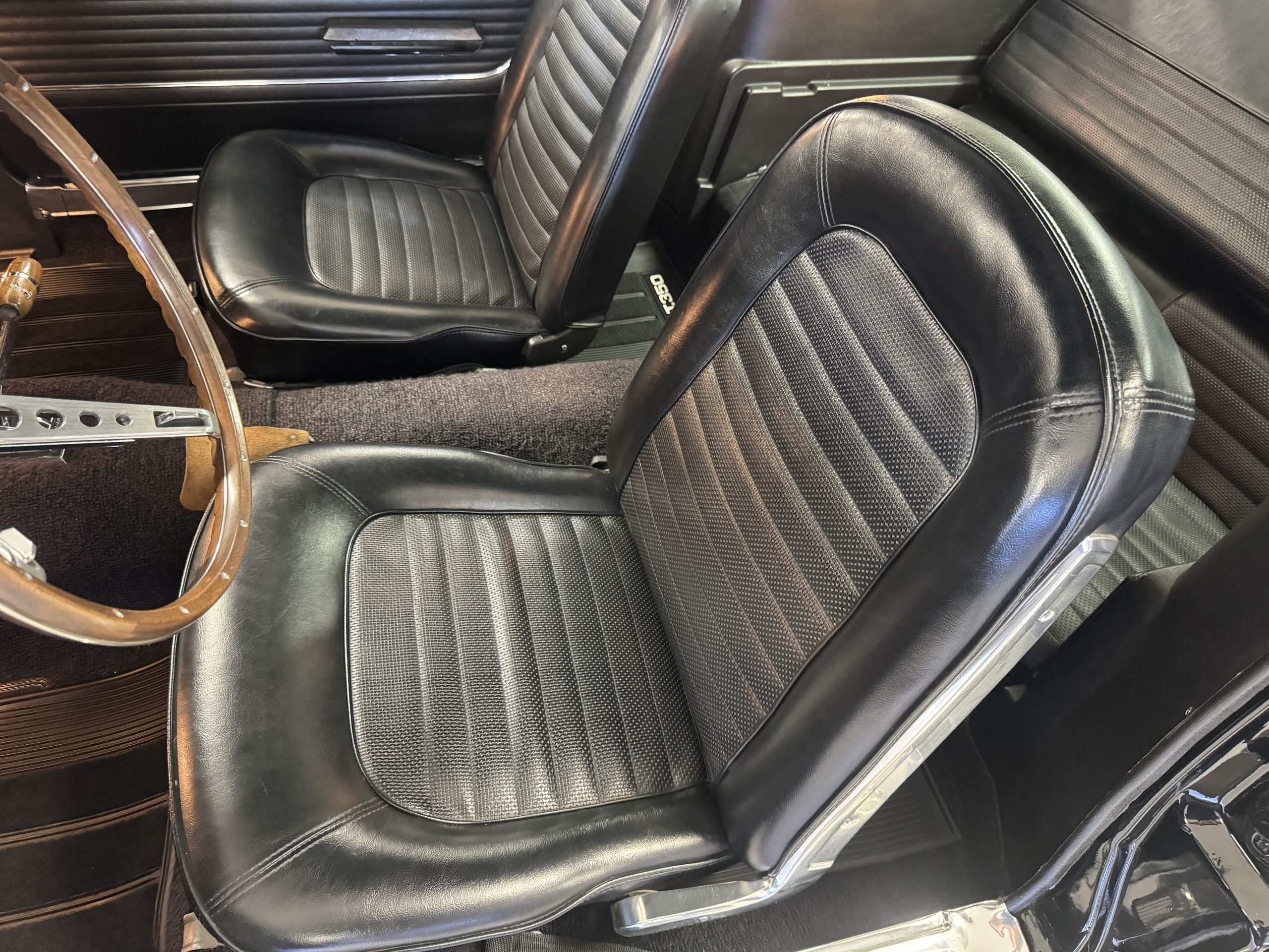 Chrome-plated 14″ Magnum 500 wheels are mounted with Goodyear Blue Streak tires. GT350s were factory-equipped with Kelsey-Hayes front disc brakes as well as larger rear drums than standard Mustangs.