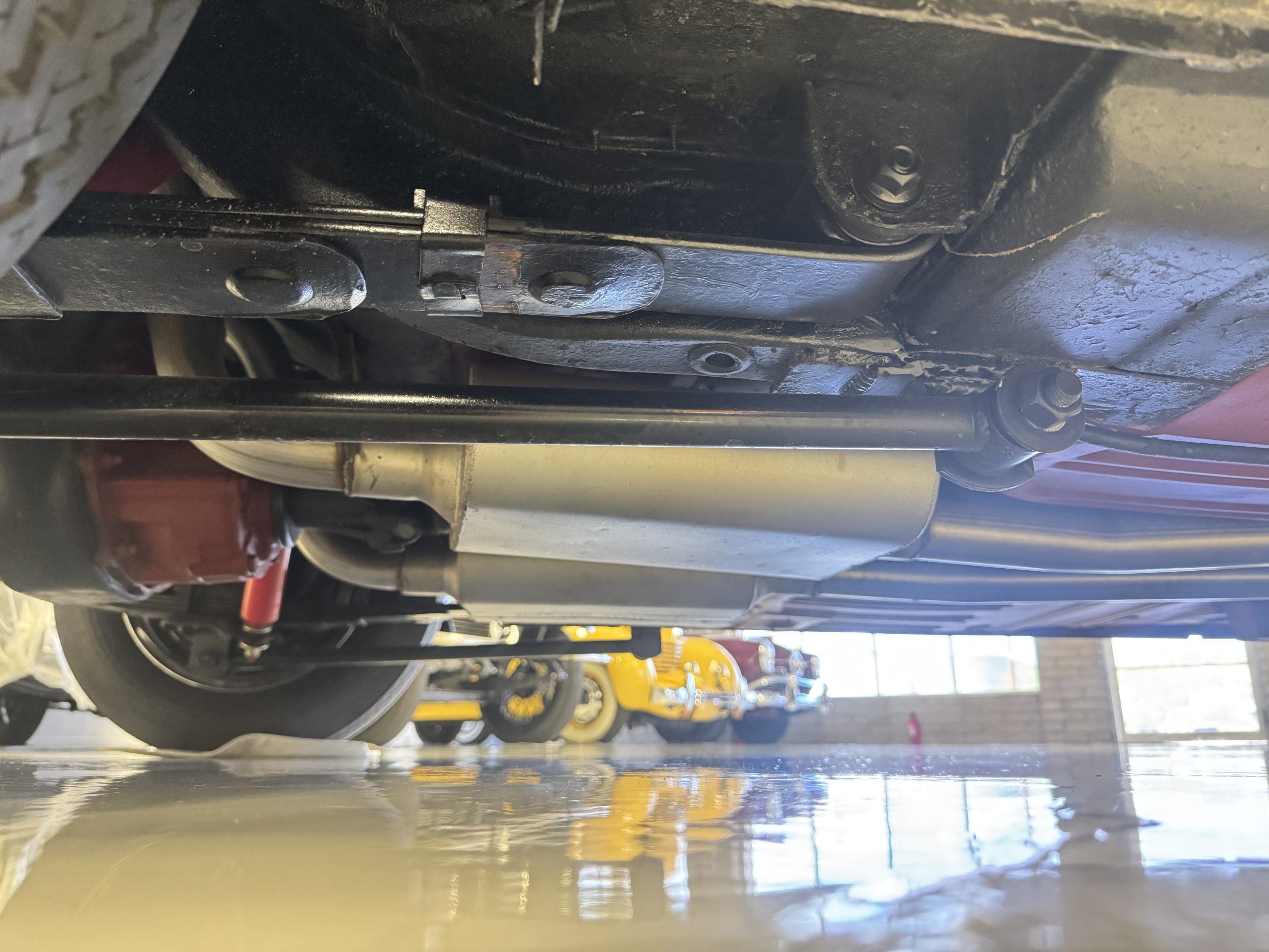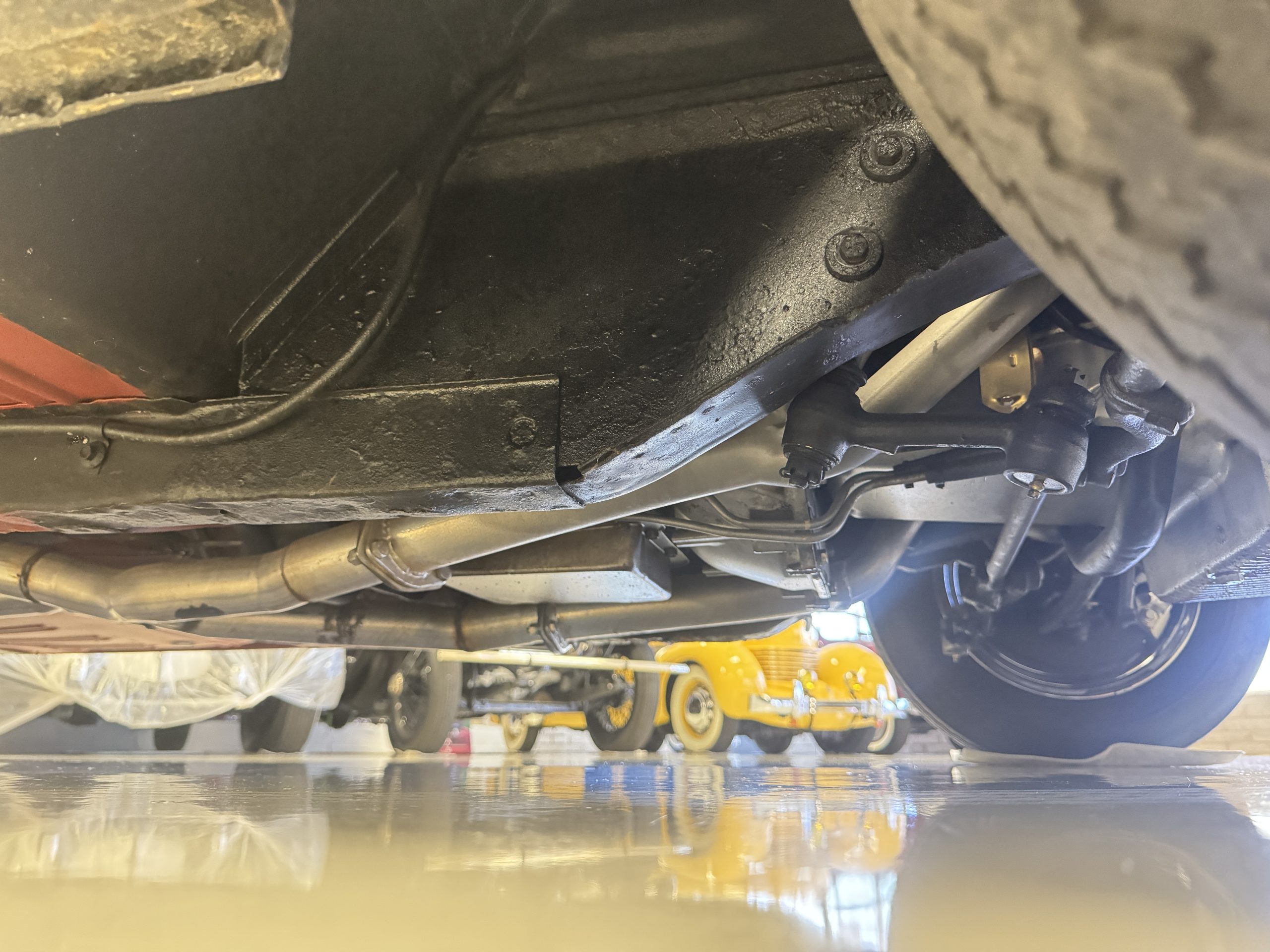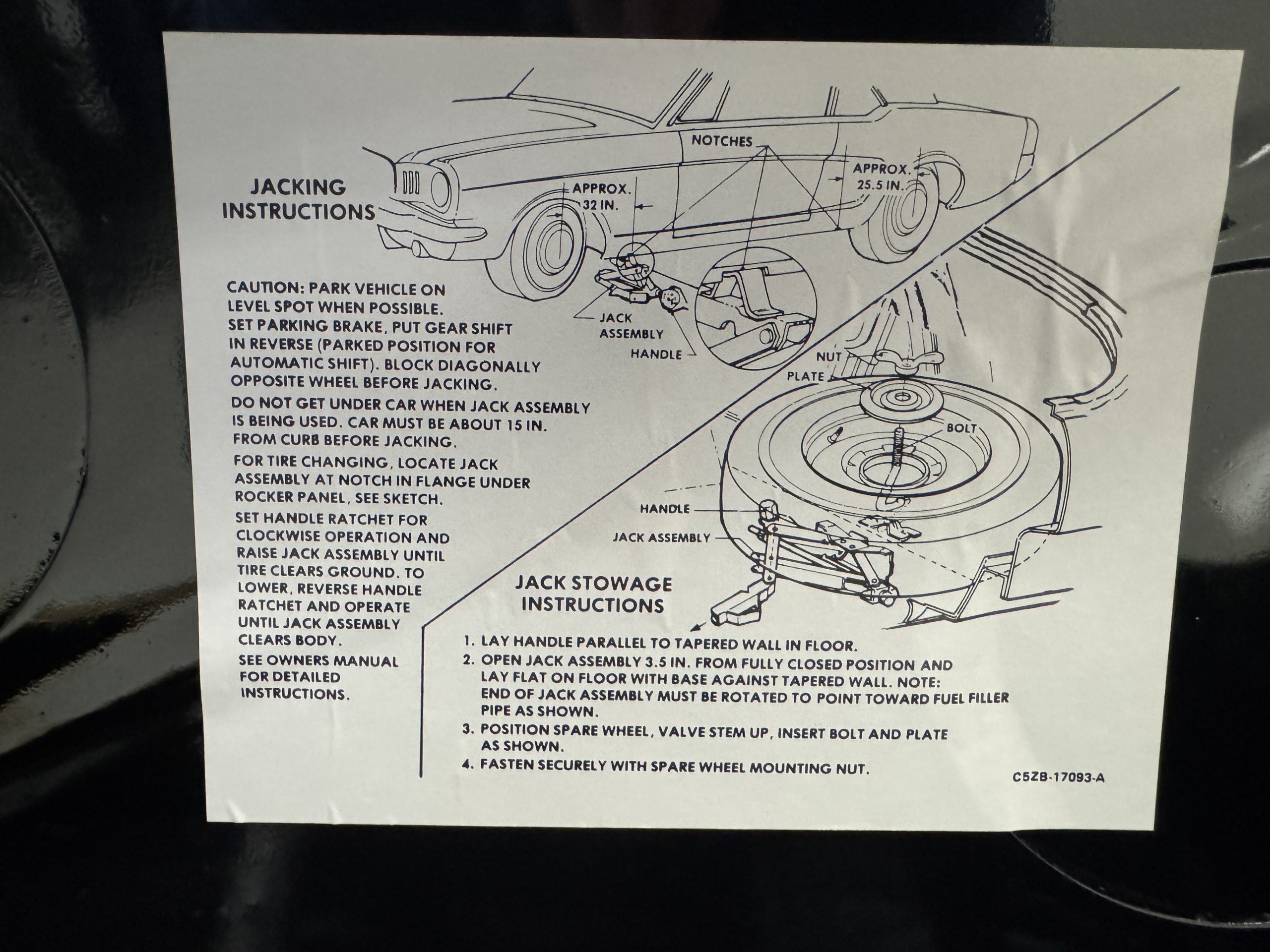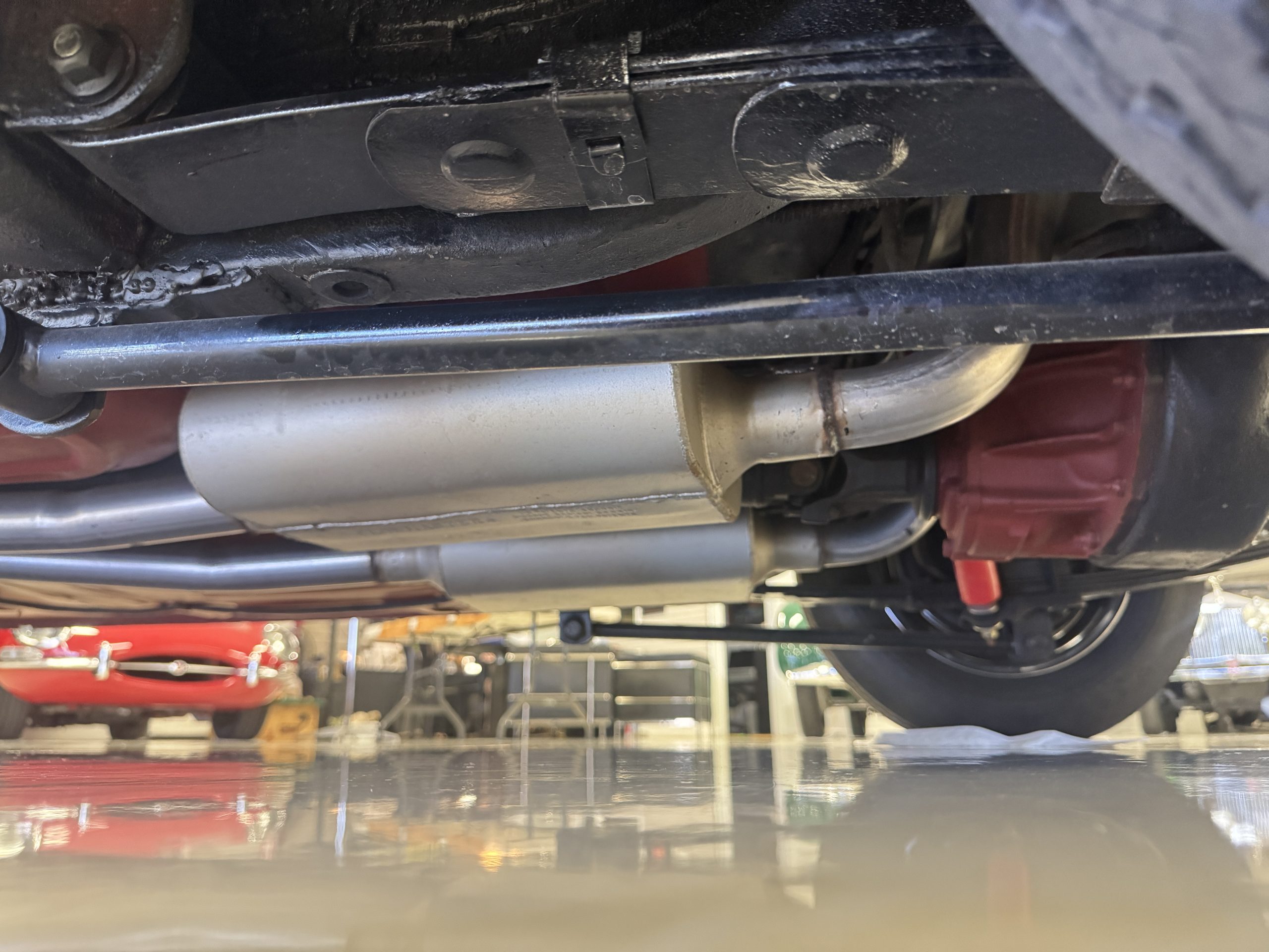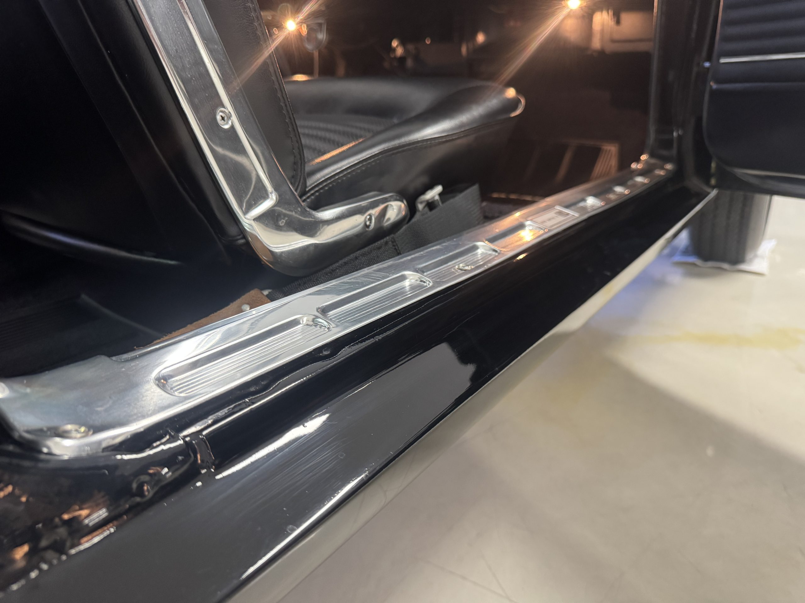 Chrome-plated 14″ Magnum 500 wheels are mounted with Goodyear Blue Streak tires. GT350s were factory-equipped with Kelsey-Hayes front disc brakes as well as larger rear drums than standard Mustangs.