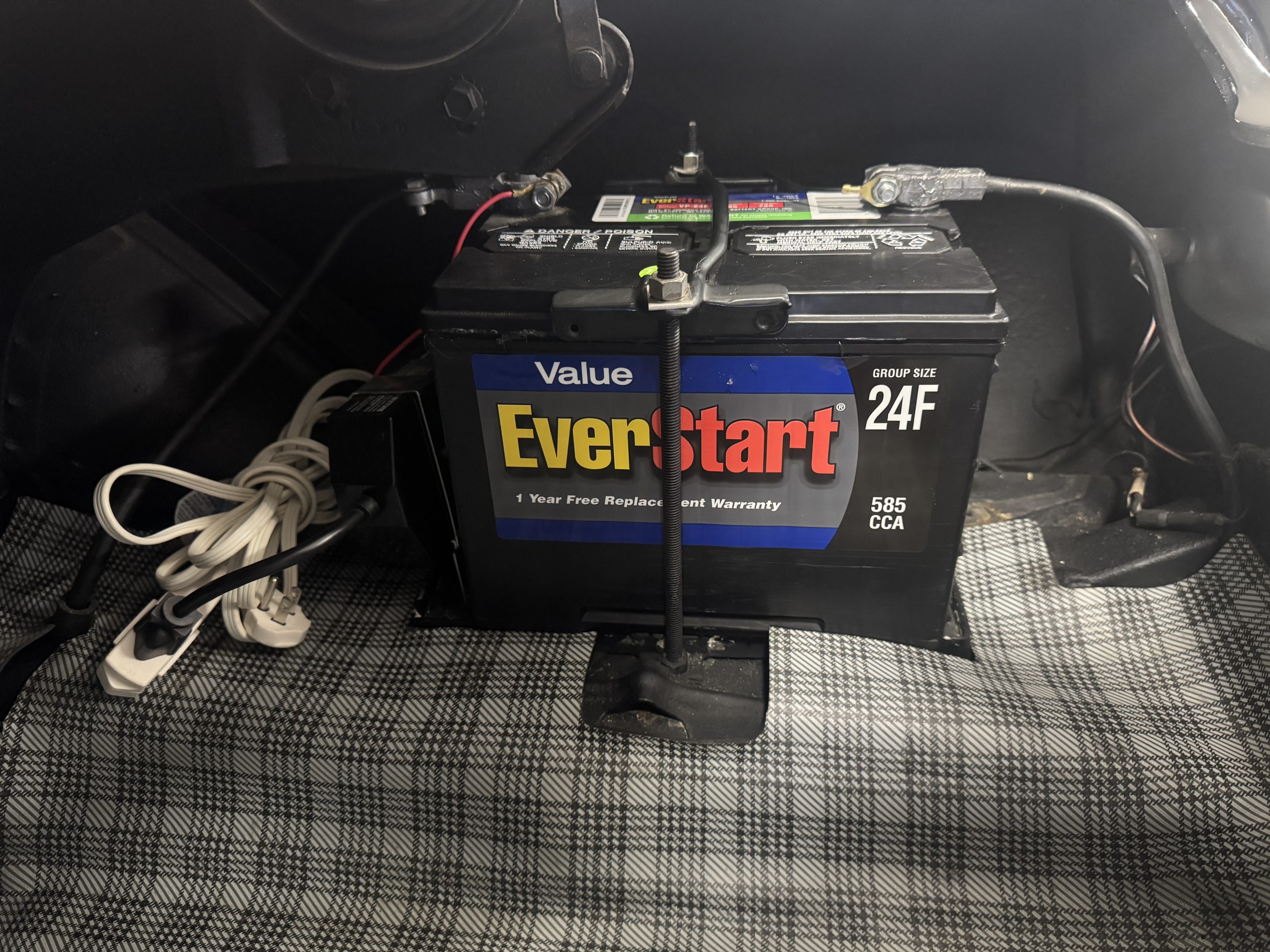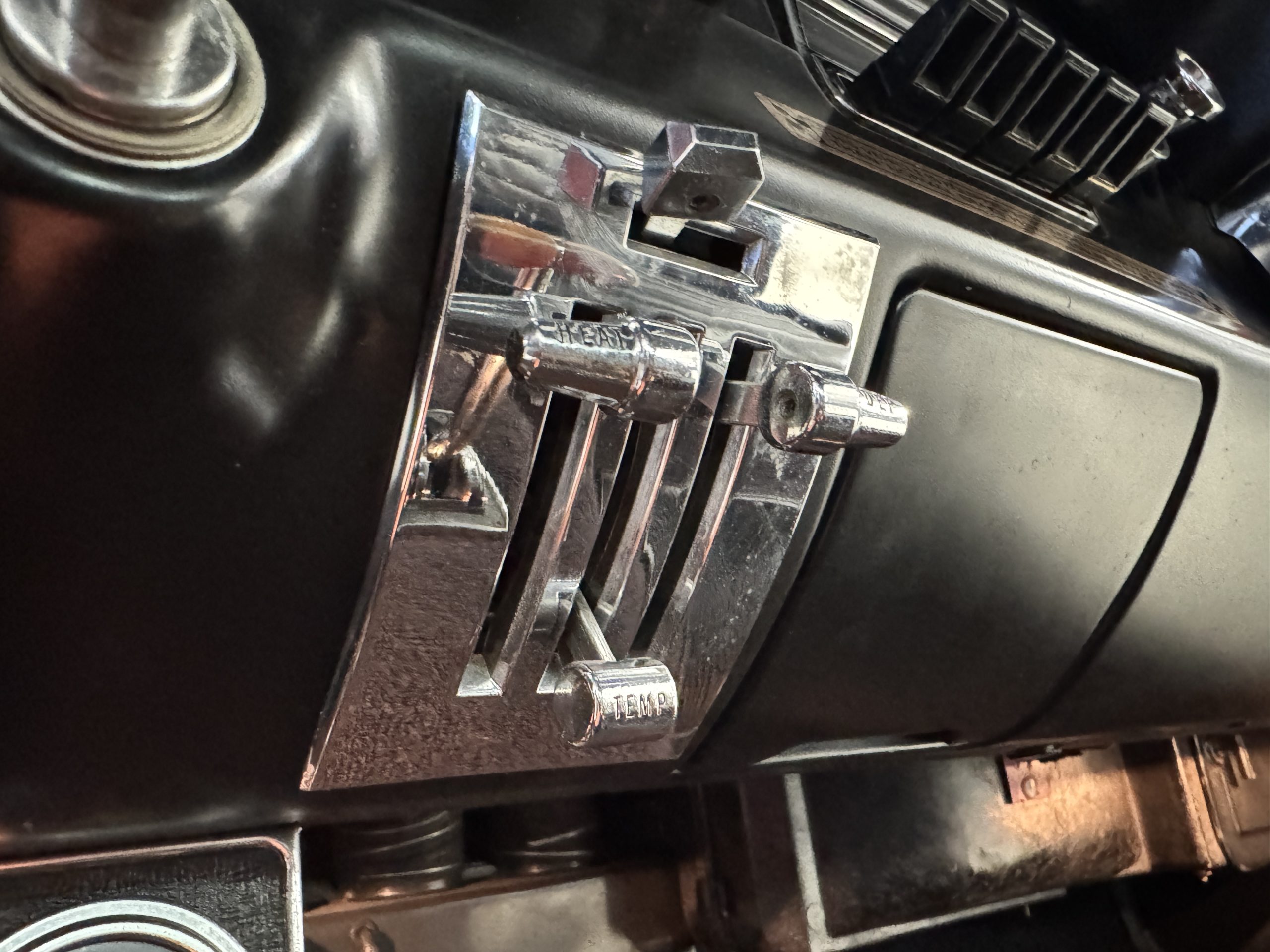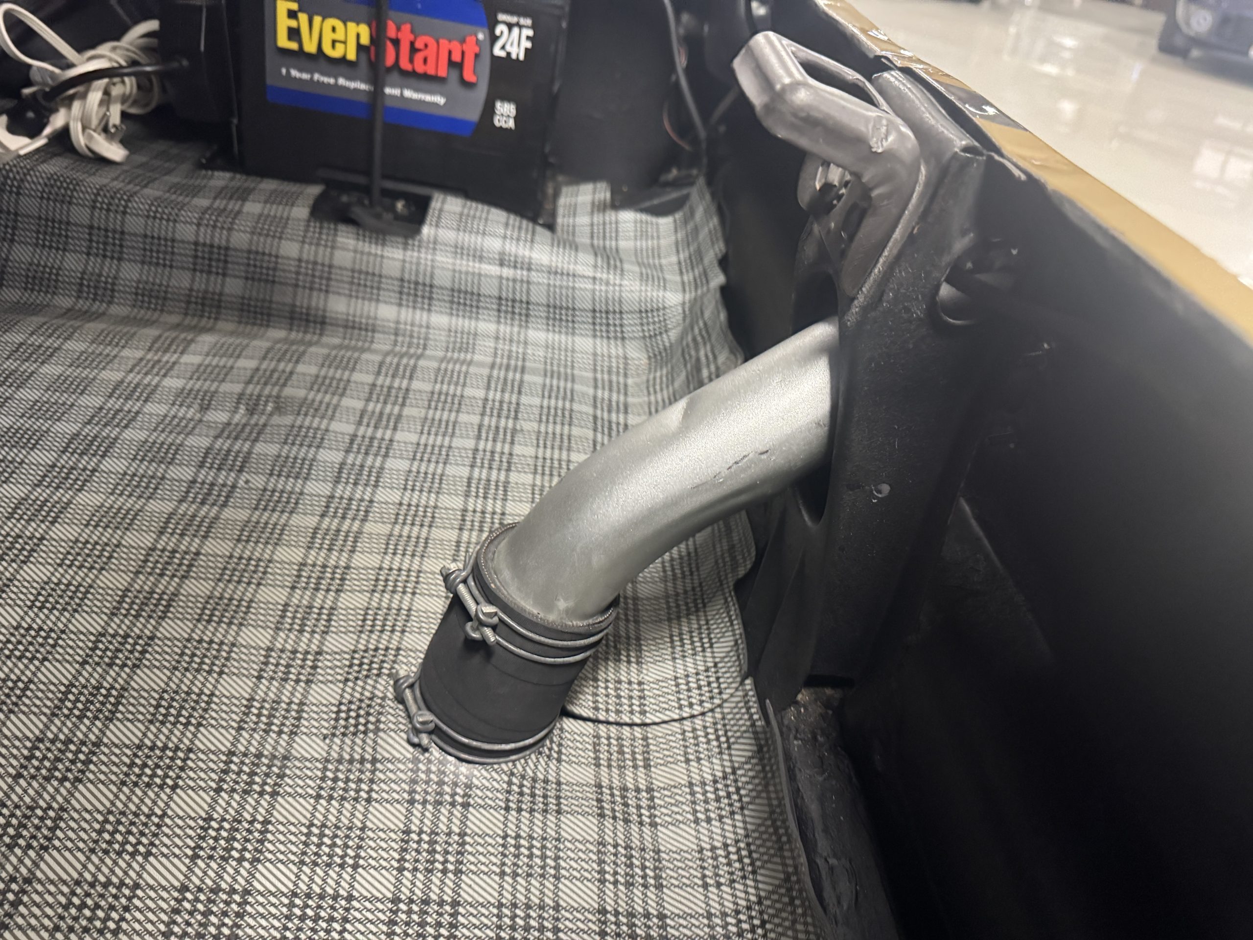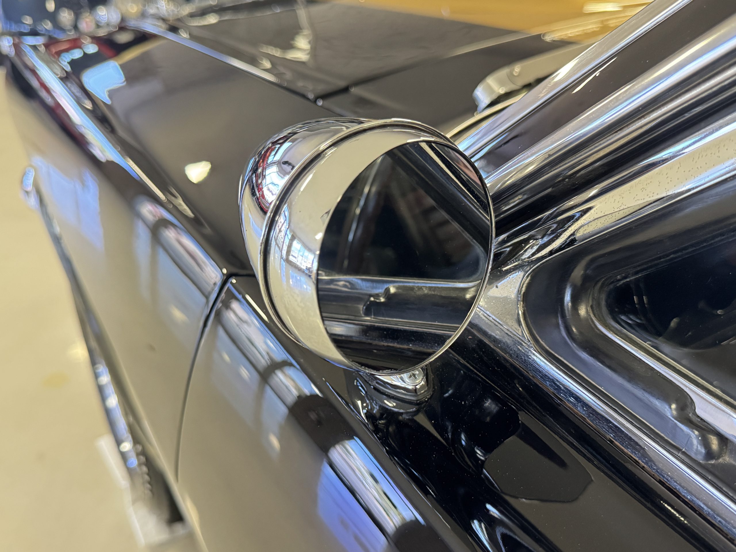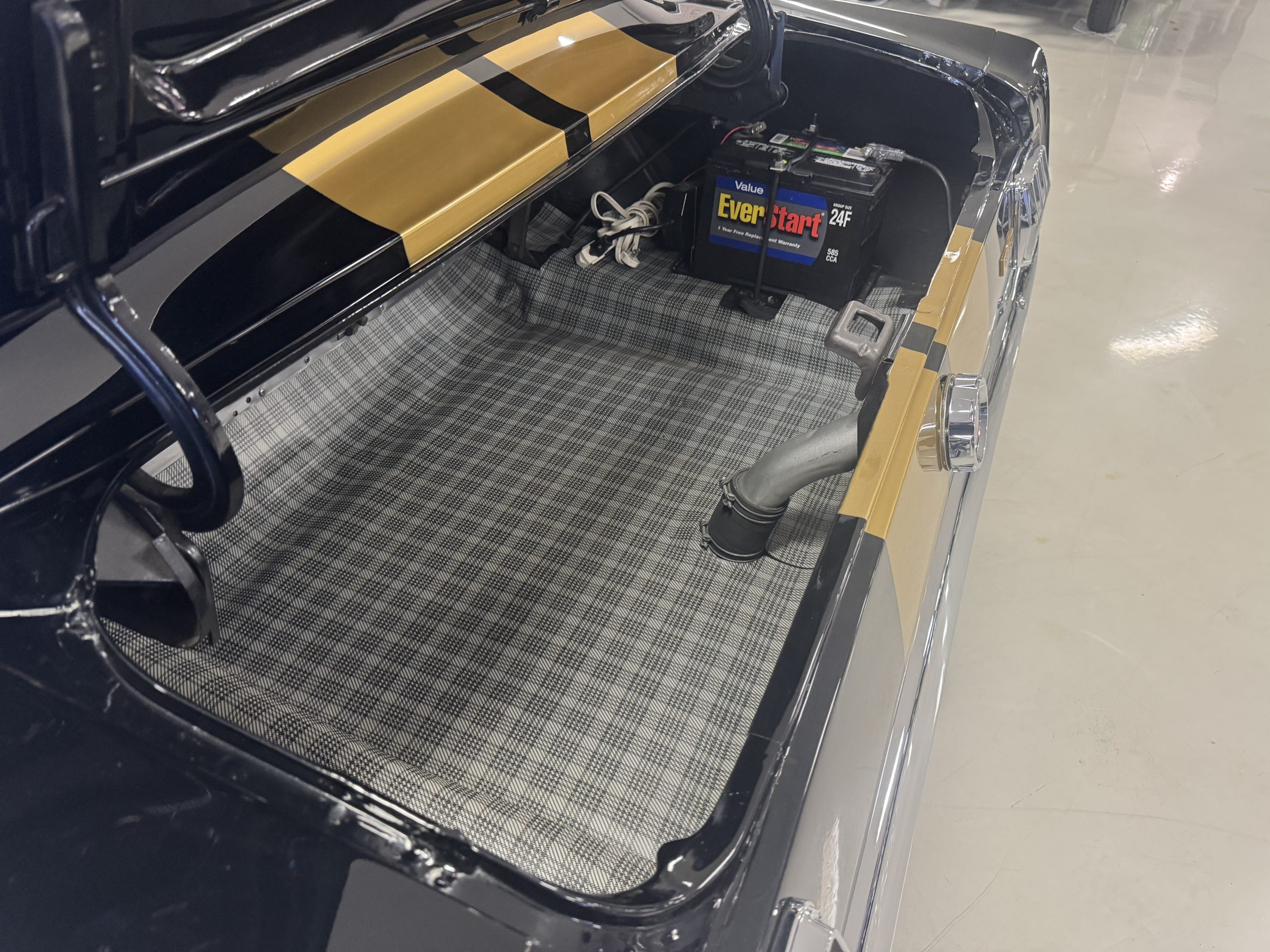 Chrome-plated 14″ Magnum 500 wheels are mounted with Goodyear Blue Streak tires. GT350s were factory-equipped with Kelsey-Hayes front disc brakes as well as larger rear drums than standard Mustangs.