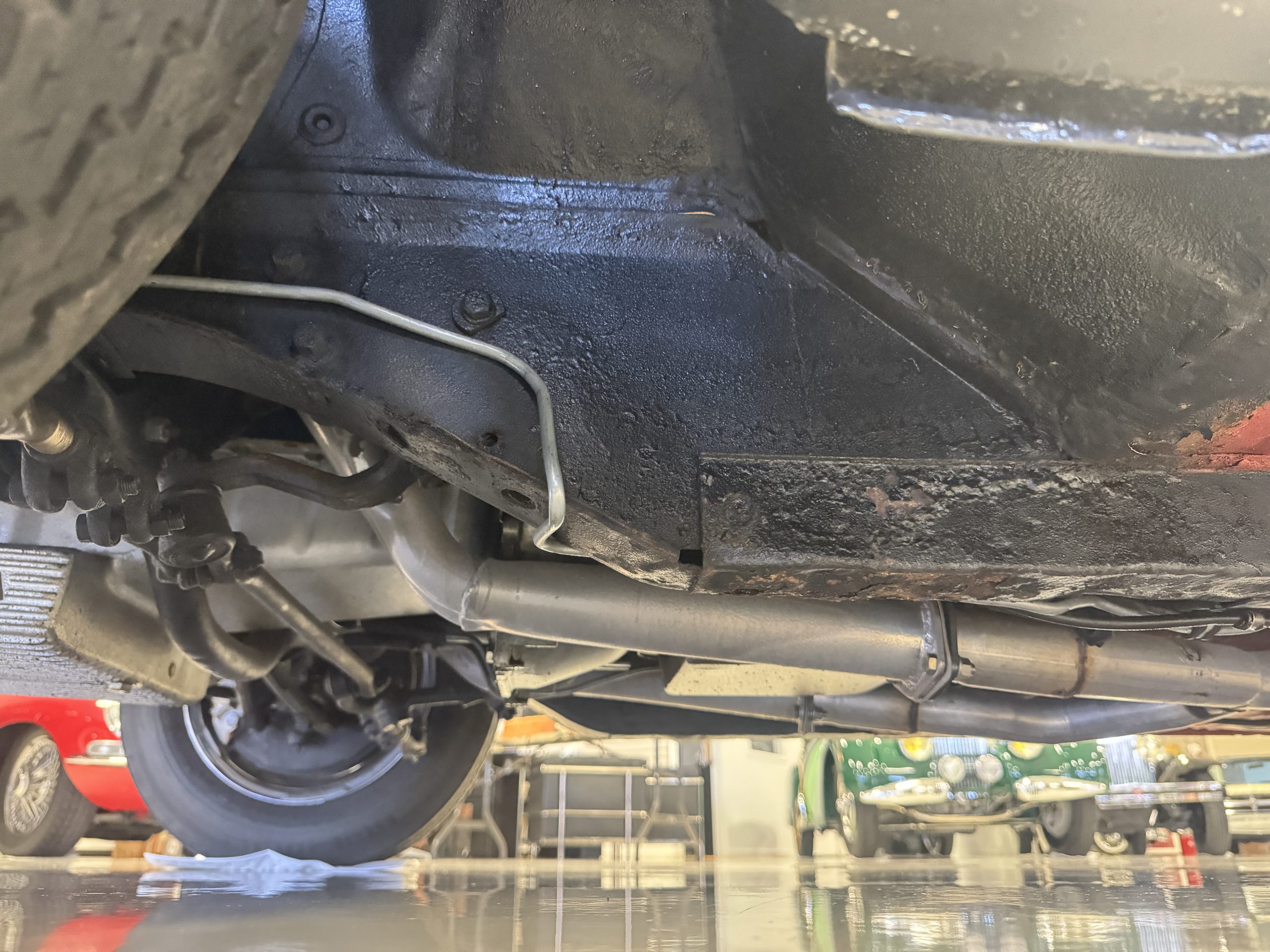 Power is routed to the rear wheels through a C4 three-speed automatic transmission. The dual exhaust system features tri-Y headers as well as an H-pipe.