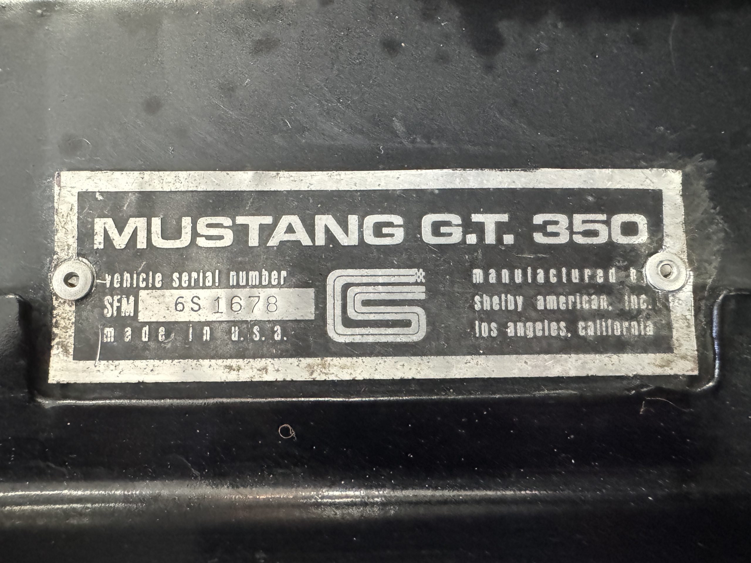 A copy of a delivery receipt from Shelby American Inc. notes chassis SFM6S1678 as a black GT350 Hertz. This Shelby has been verified through the Shelby American Automobile Club.