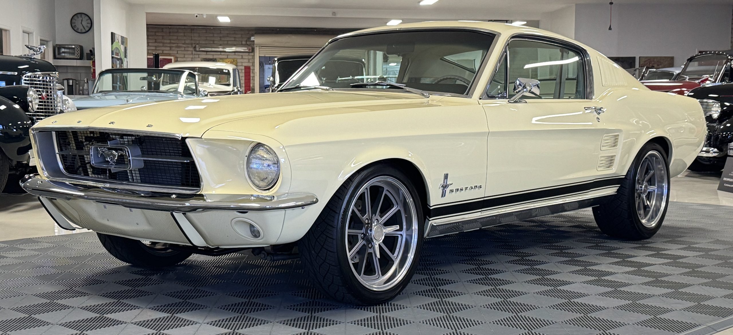 Built in San Jose, California, the Mustang carries a California salvage title brand due to the donor body shell after the original experienced door damage. This Mustang was subjected to an extensive rotisserie restoration that transformed the Mustang into a thoroughly modernized fastback while retaining its unmistakable 1967 character. Photo documentation of the restoration is included, and the quality of workmanship and thoughtful component selection are evident throughout. The digital odometer currently reads 72,612 miles, with roughly 7,000 miles added since completion of the build, and the Mustang is presented as a fully sorted, driver-focused custom rather than a static showpiece.