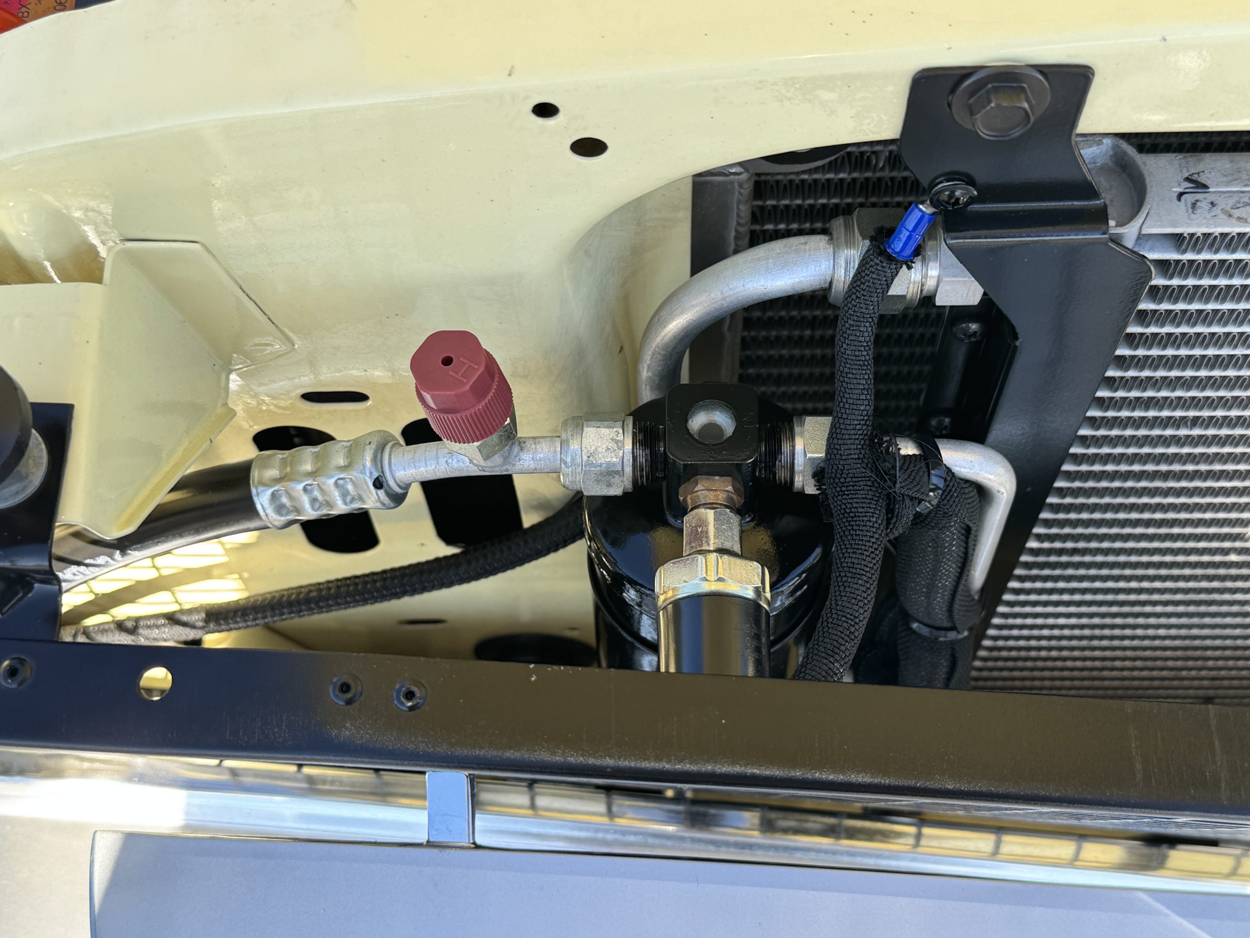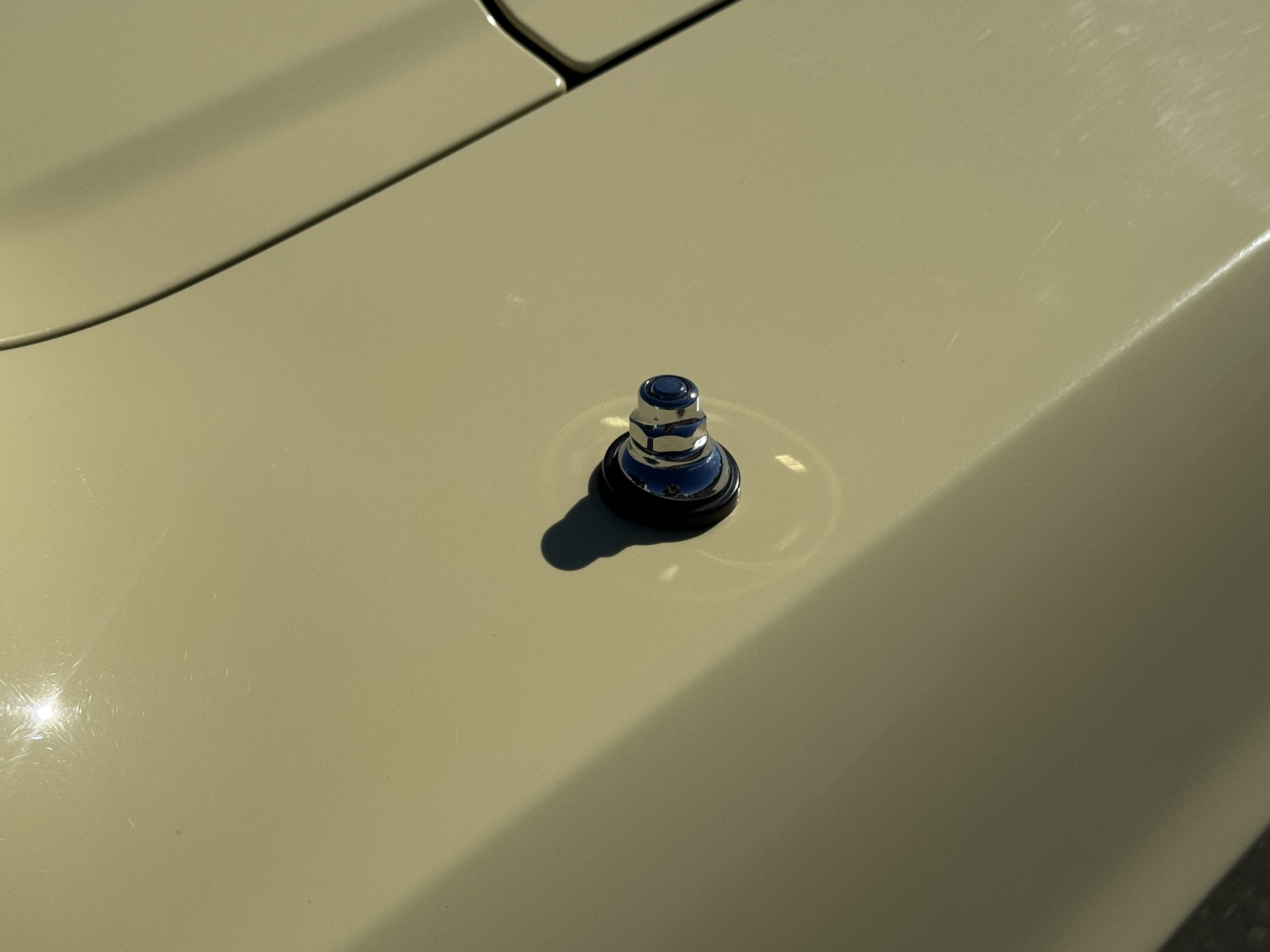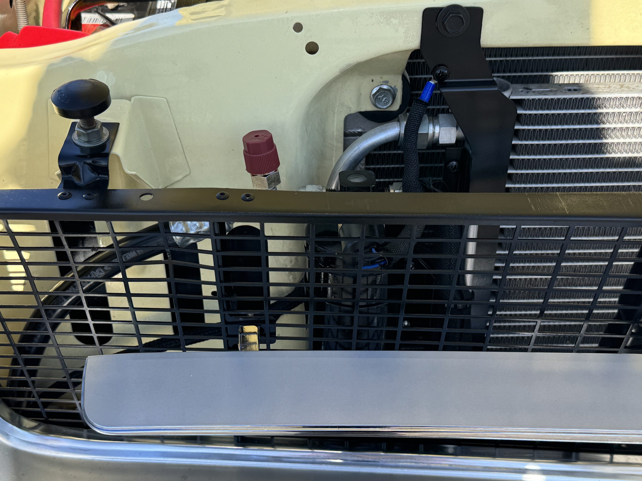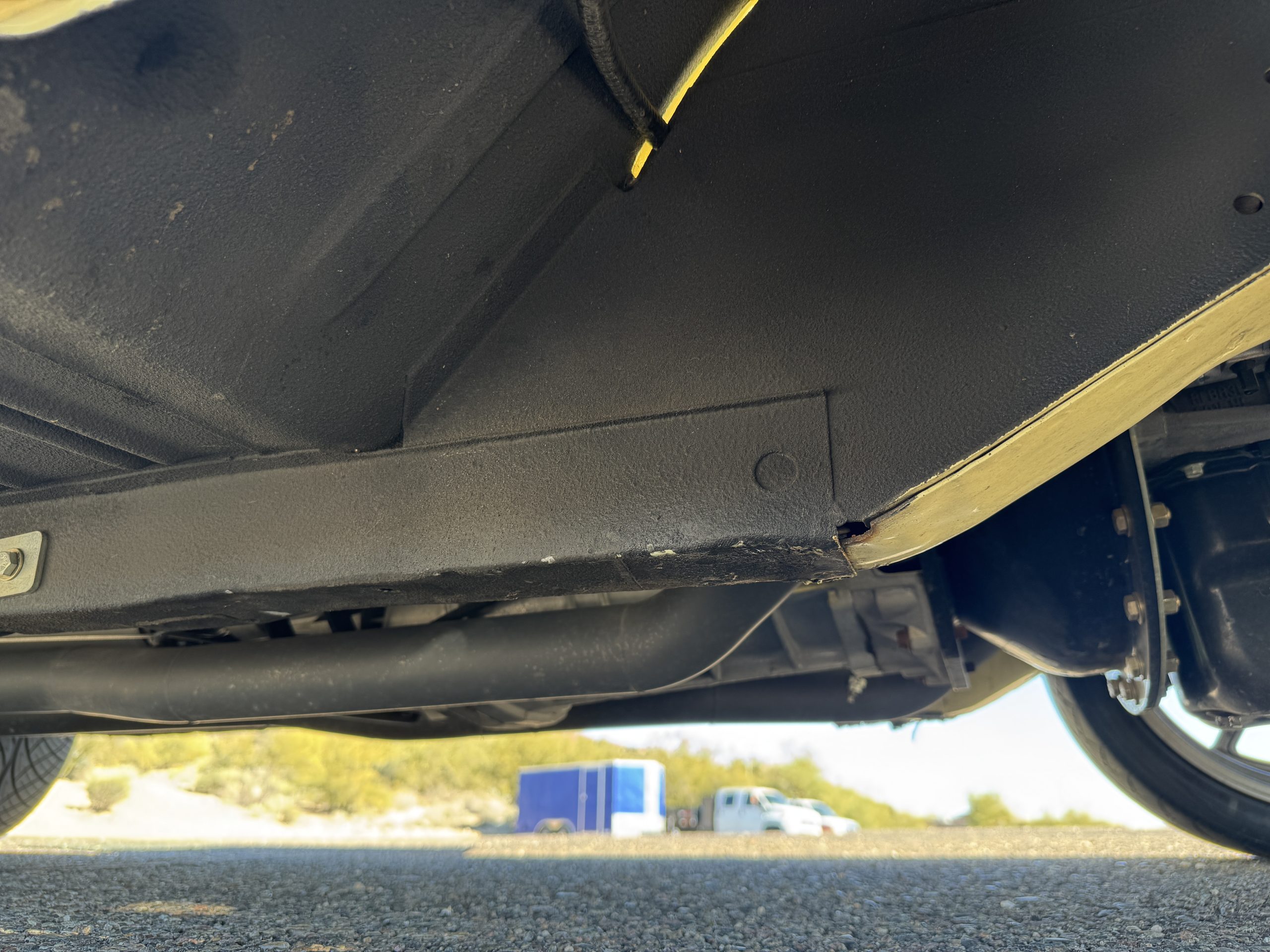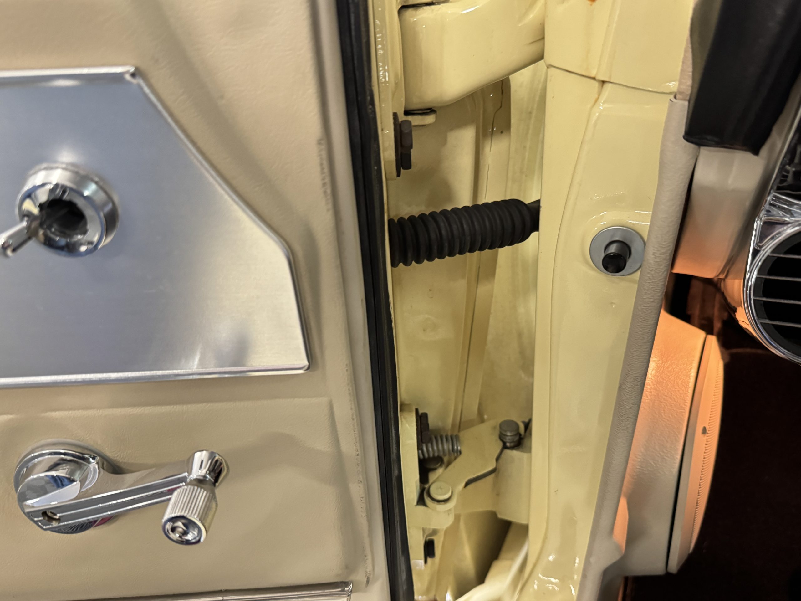 Inside, the Mustang features a Palomino vinyl interior with front bucket seats and a folding Sport Deck rear seat, with deluxe seatbelts, all in very good condition and consistent with the Mustang’s period-correct presentation. Black carpeting with Mustang floor mats remains clean and serviceable, while the 1967-year-only padded horn pad on the wrapped steering wheel shows light wear consistent with careful use. The brushed chrome gauge cluster houses fully functional original instrumentation, including a 140-mph speedometer with digital odometer, and the light gray polyurethane dash pad remains in very good condition. Factory-style amenities include power windows designed to resemble original roll-up glass, power steering, an AM radio plate over upgraded stereo, functional factory air conditioning, and fully operational interior lighting.
