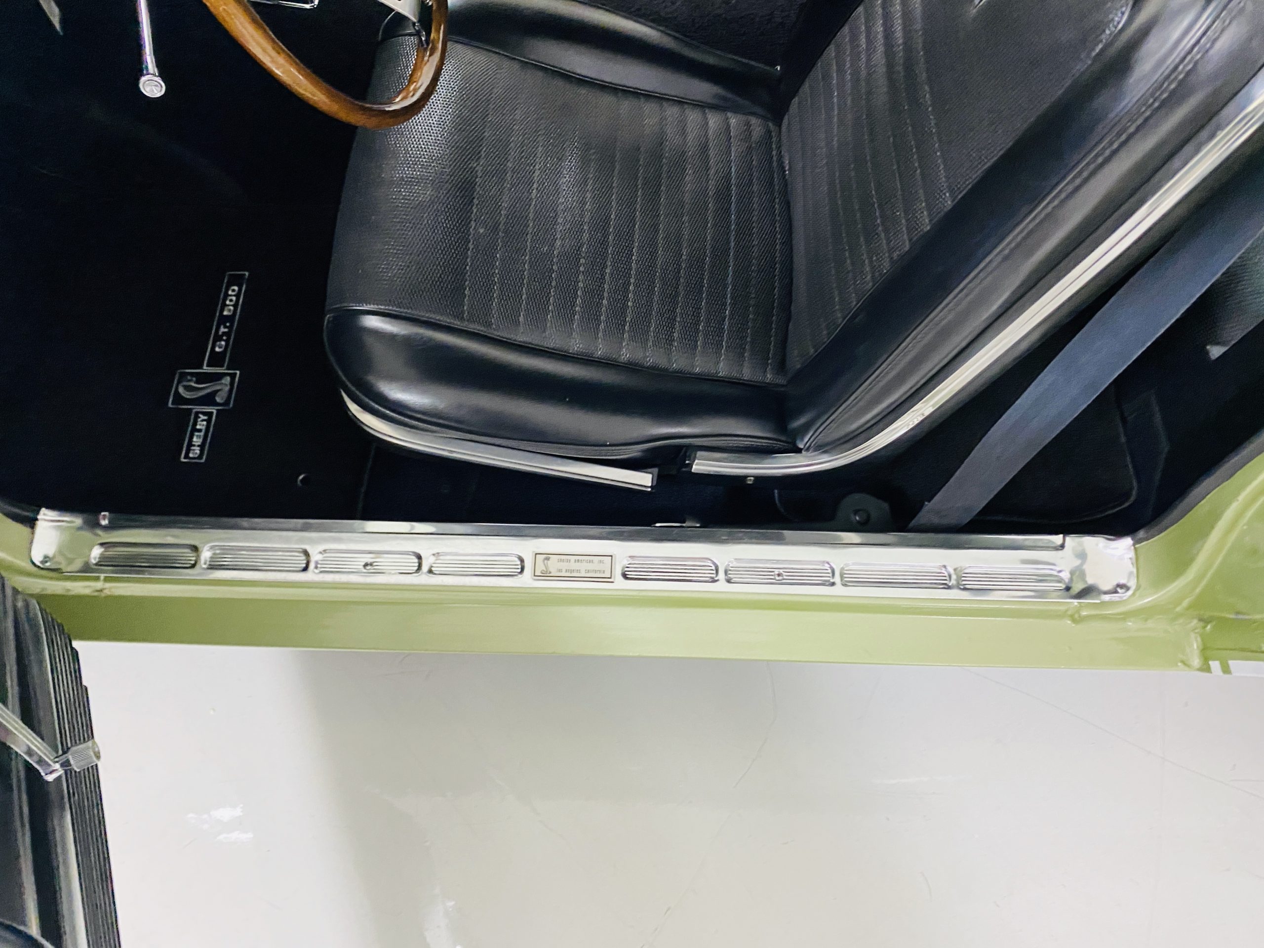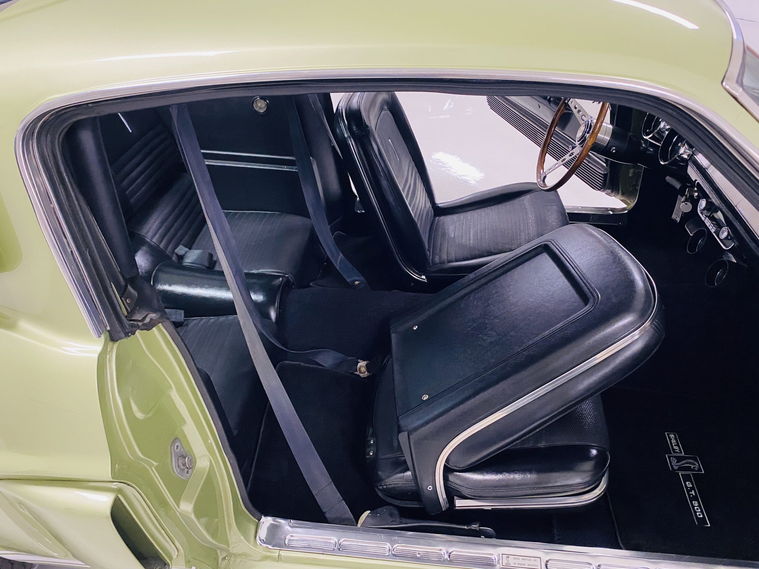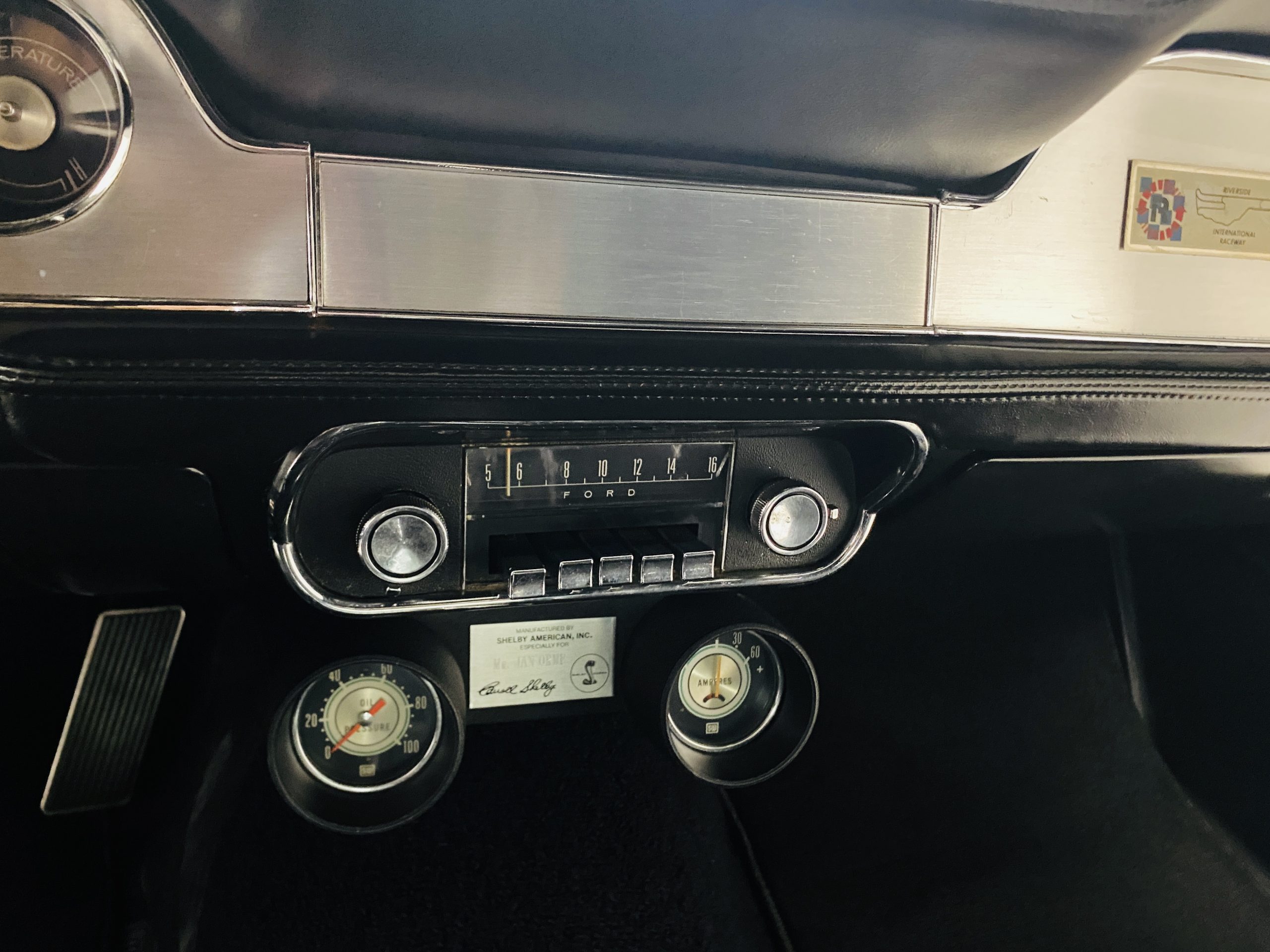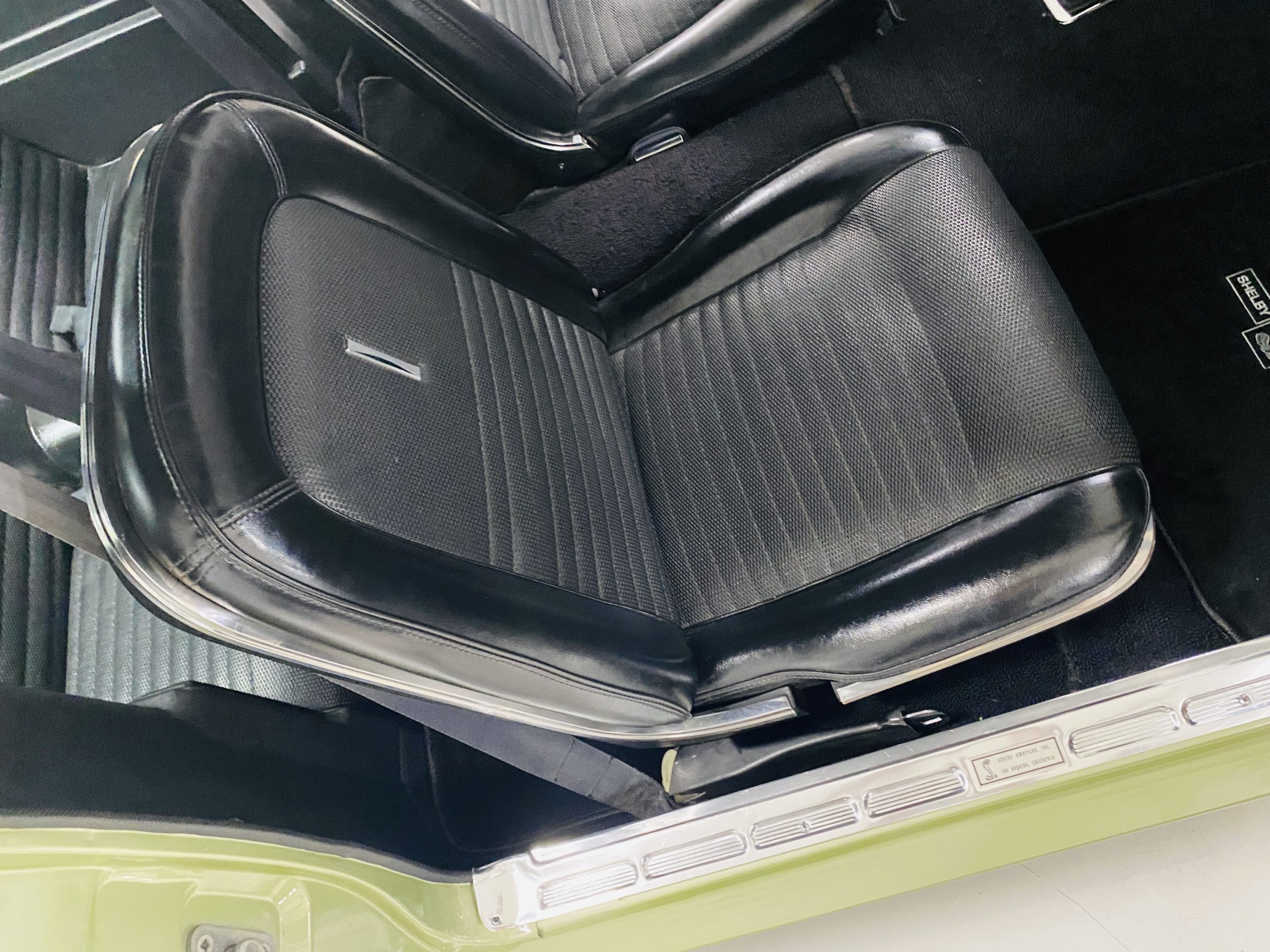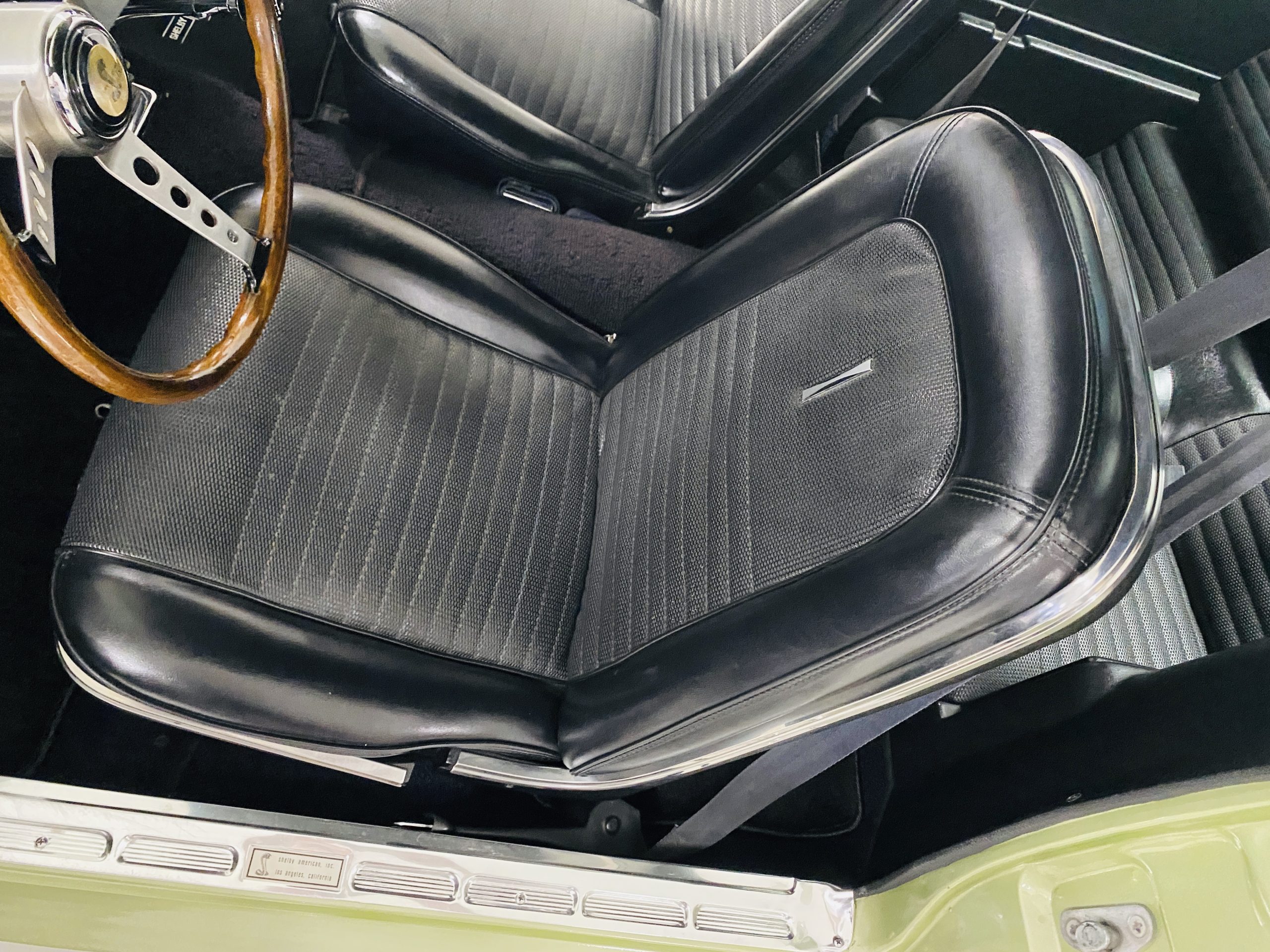 The black interior is very nice and is said to be all original with the exception of the black carpeting.  The condition of the interior reflects a car that has been well cared for.  The interior looks very sharp and has a consistent patina as the rest of the Shelby.