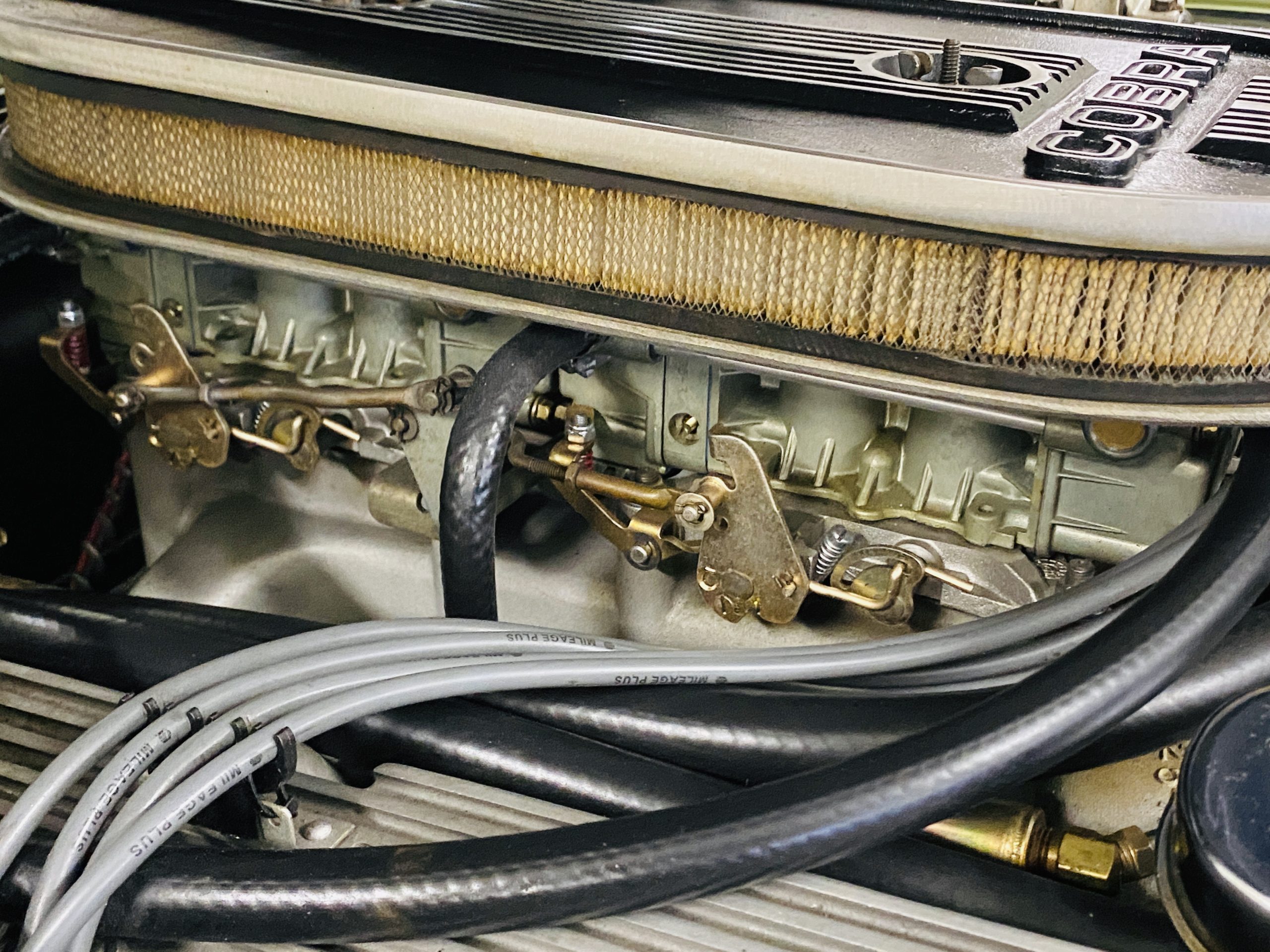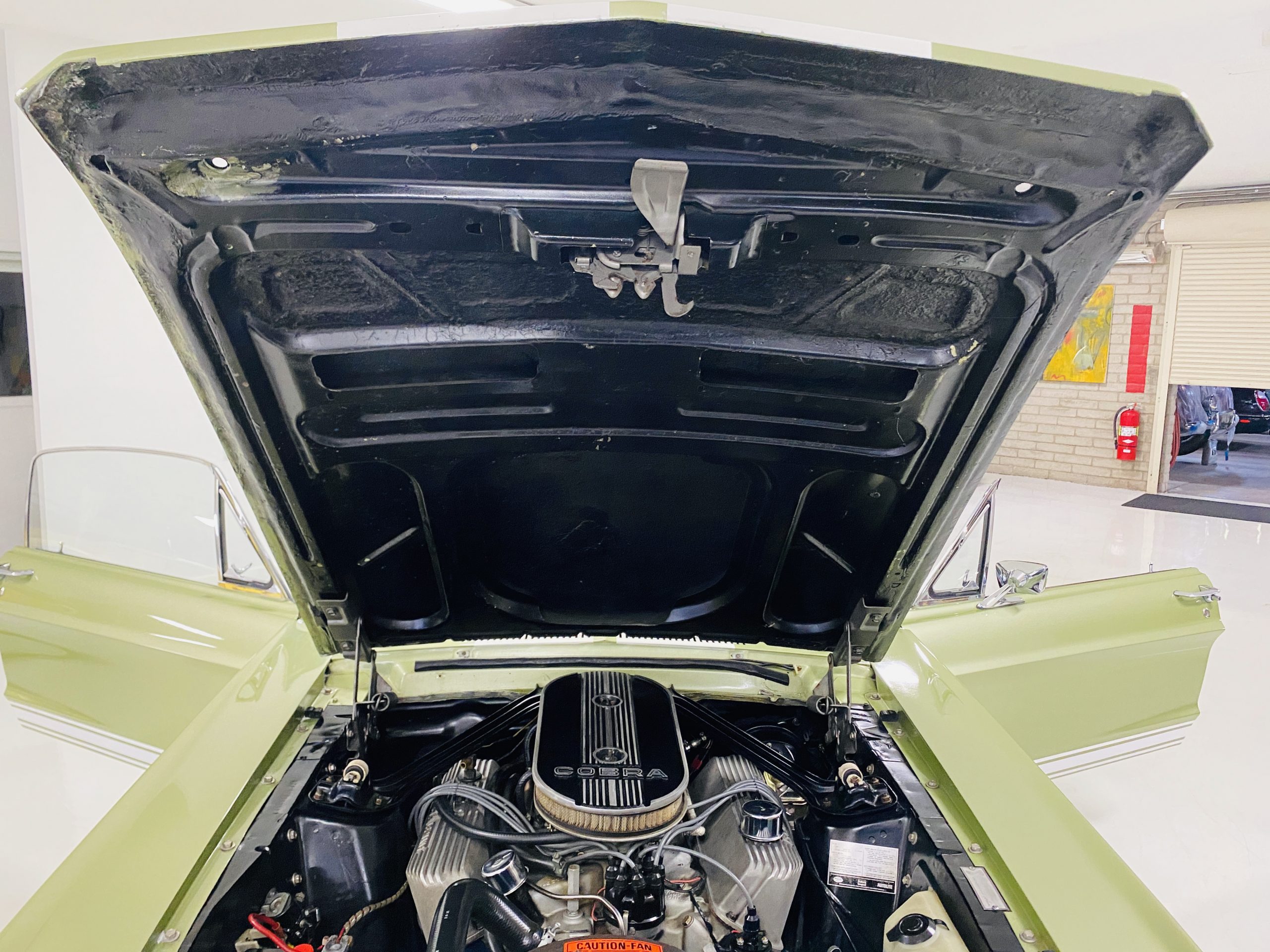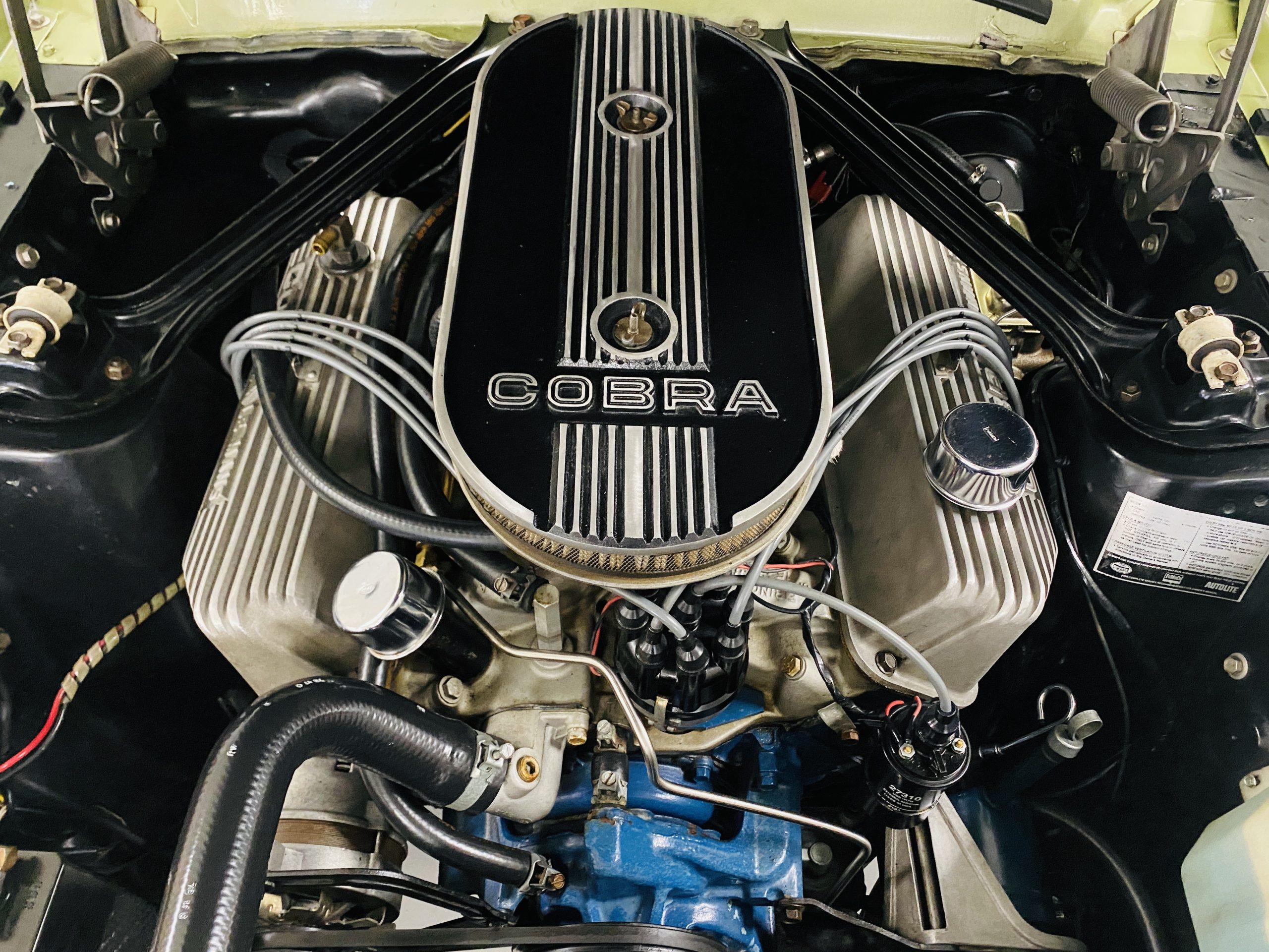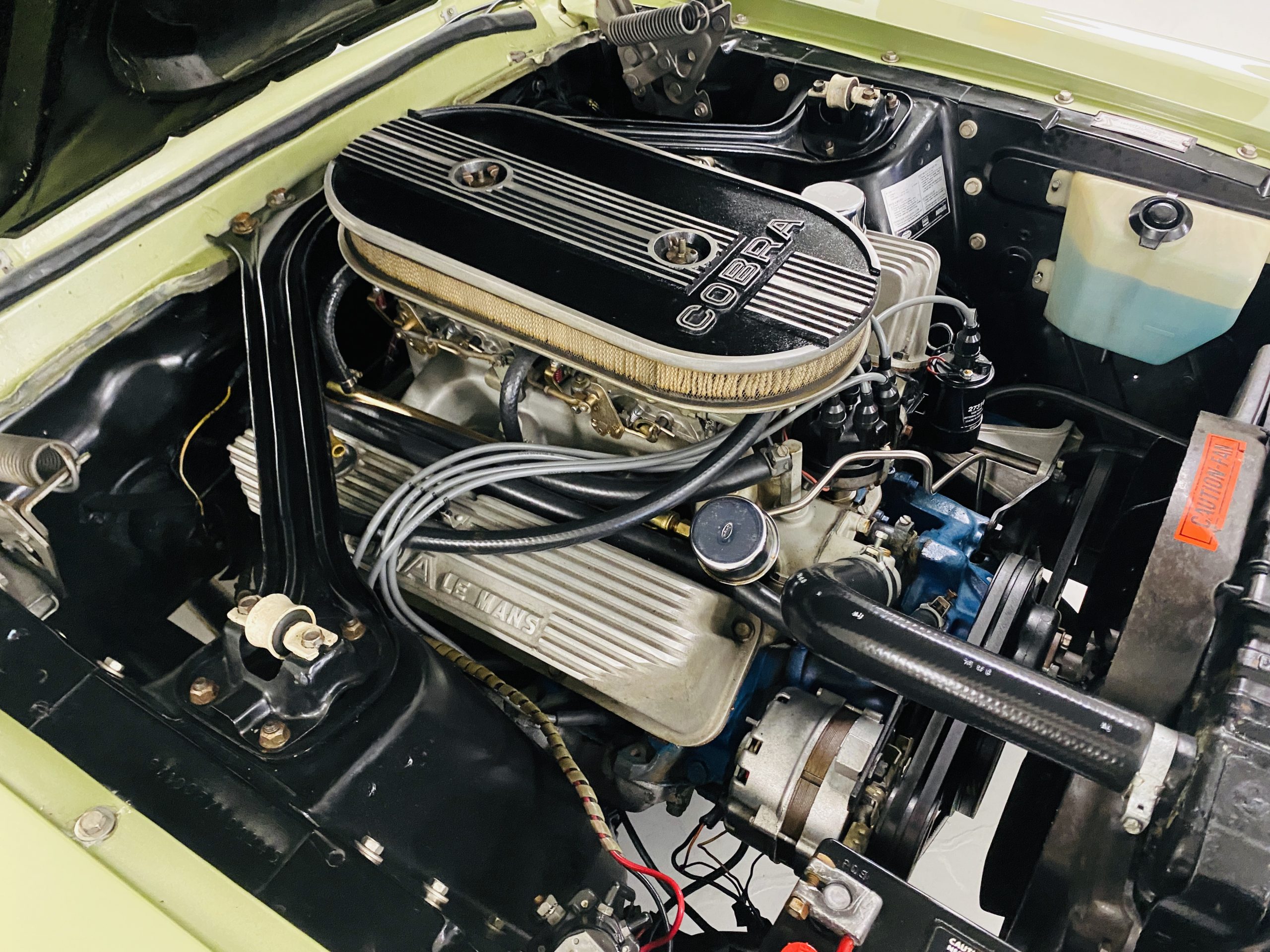 The engine compartment looks very well detailed.  The 428 CID with dual-carbs is said to produce close to 400 hp.  The details in the engine compartment look very correct and original.  This Shelby is equipped with power disc brakes, power steering, the shoulder harness and the four-speed manual transmission.