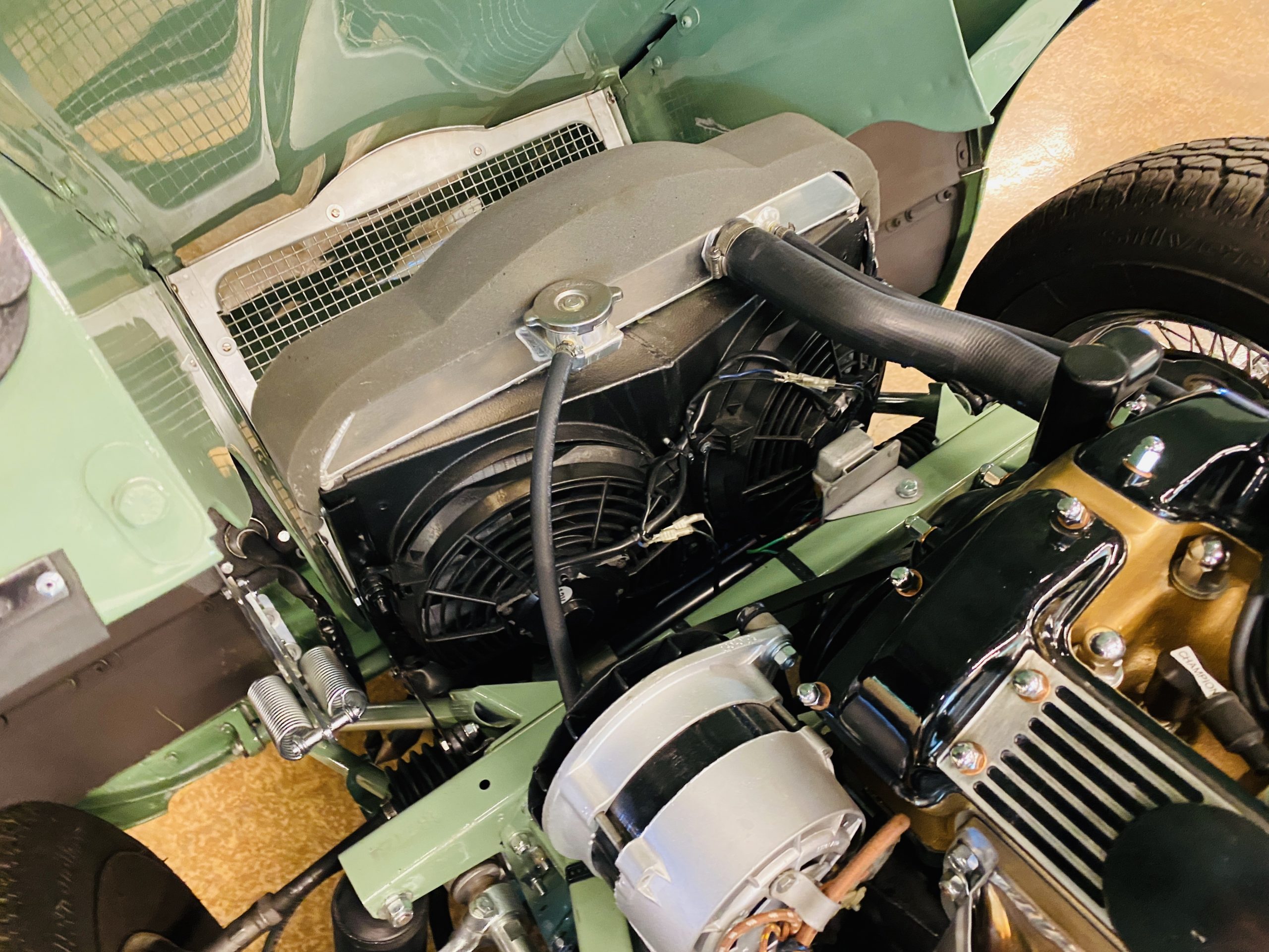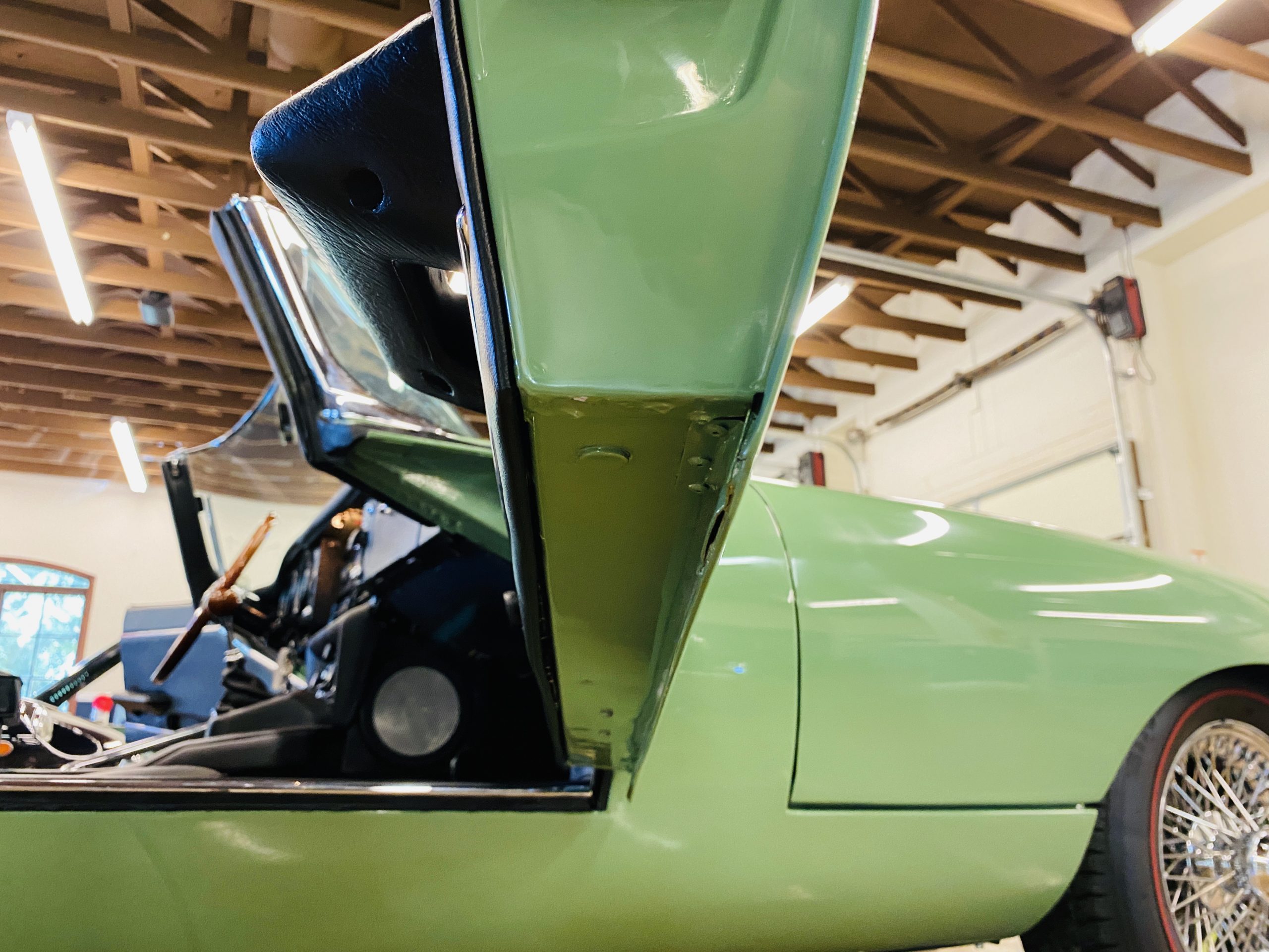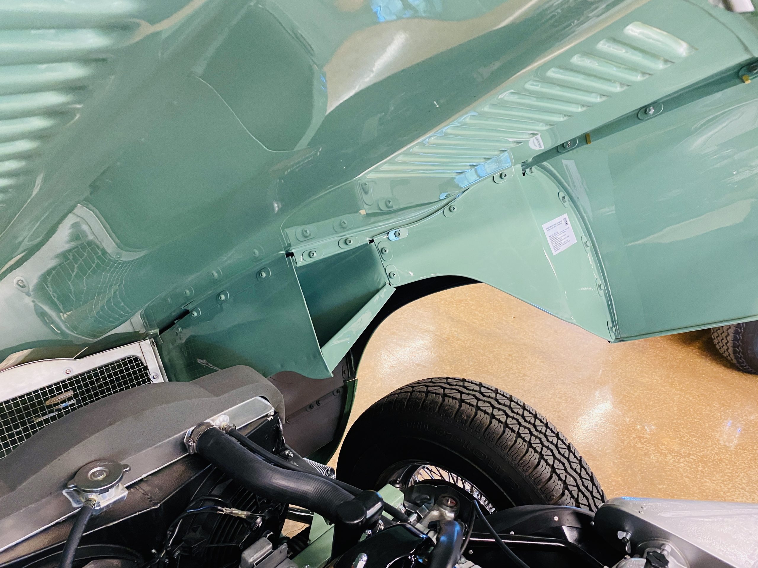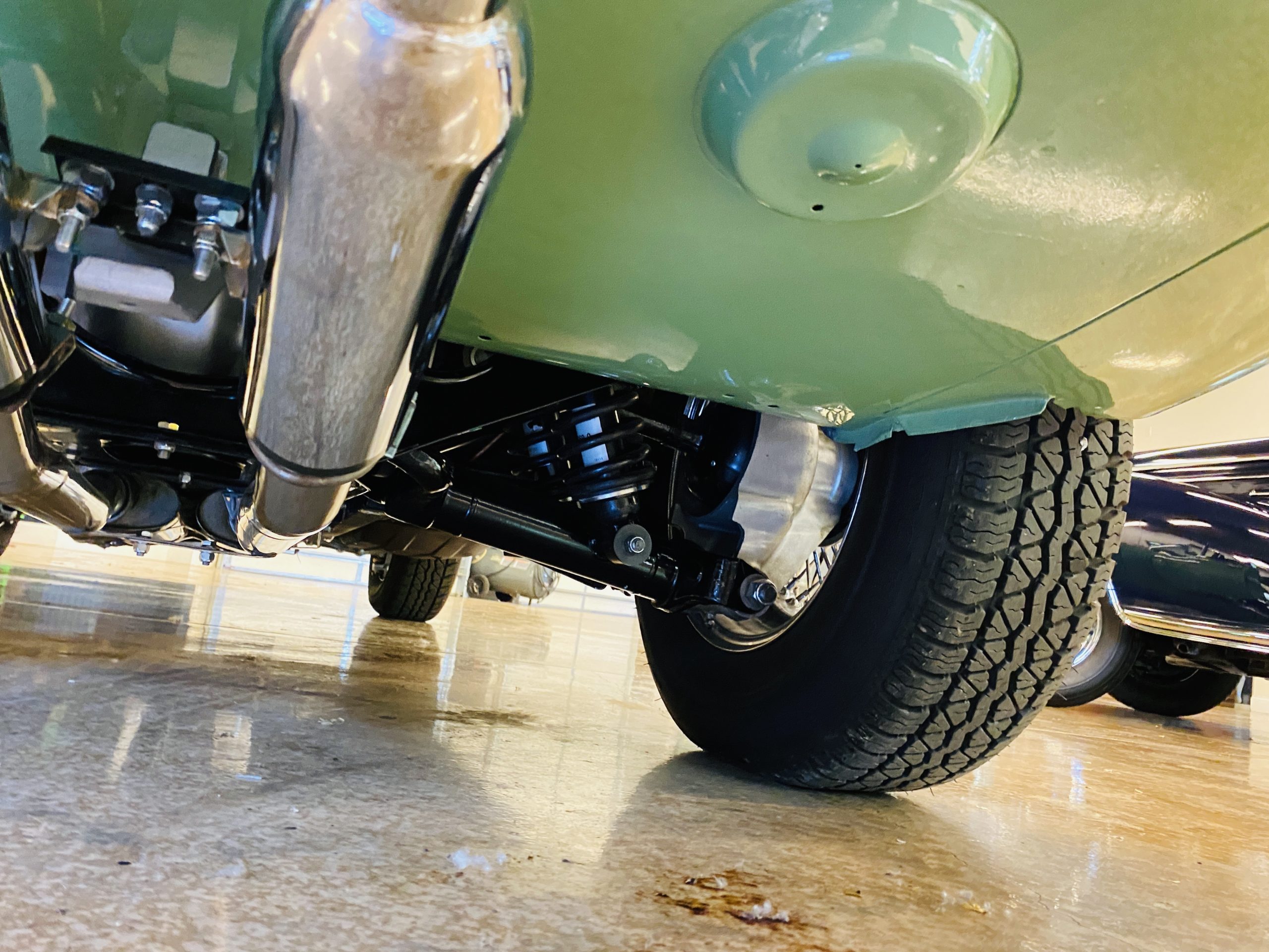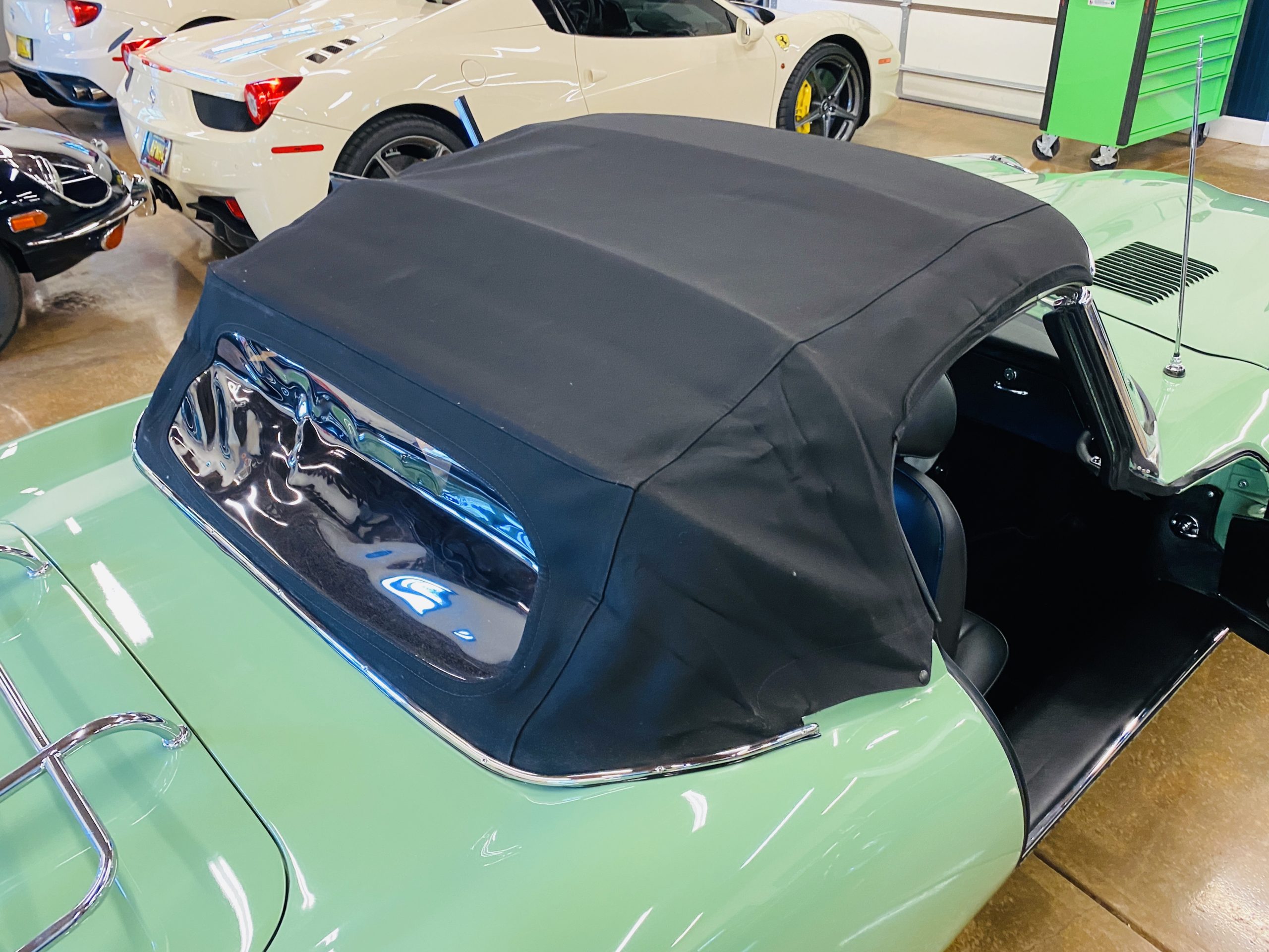 This E-Type has been beautifully finished in Willow Green and has the chrome wire wheels, giving it a spectacular look. The paint, chrome and all the finish work are all in excellent condition. This is ready to be competitive at concours events.