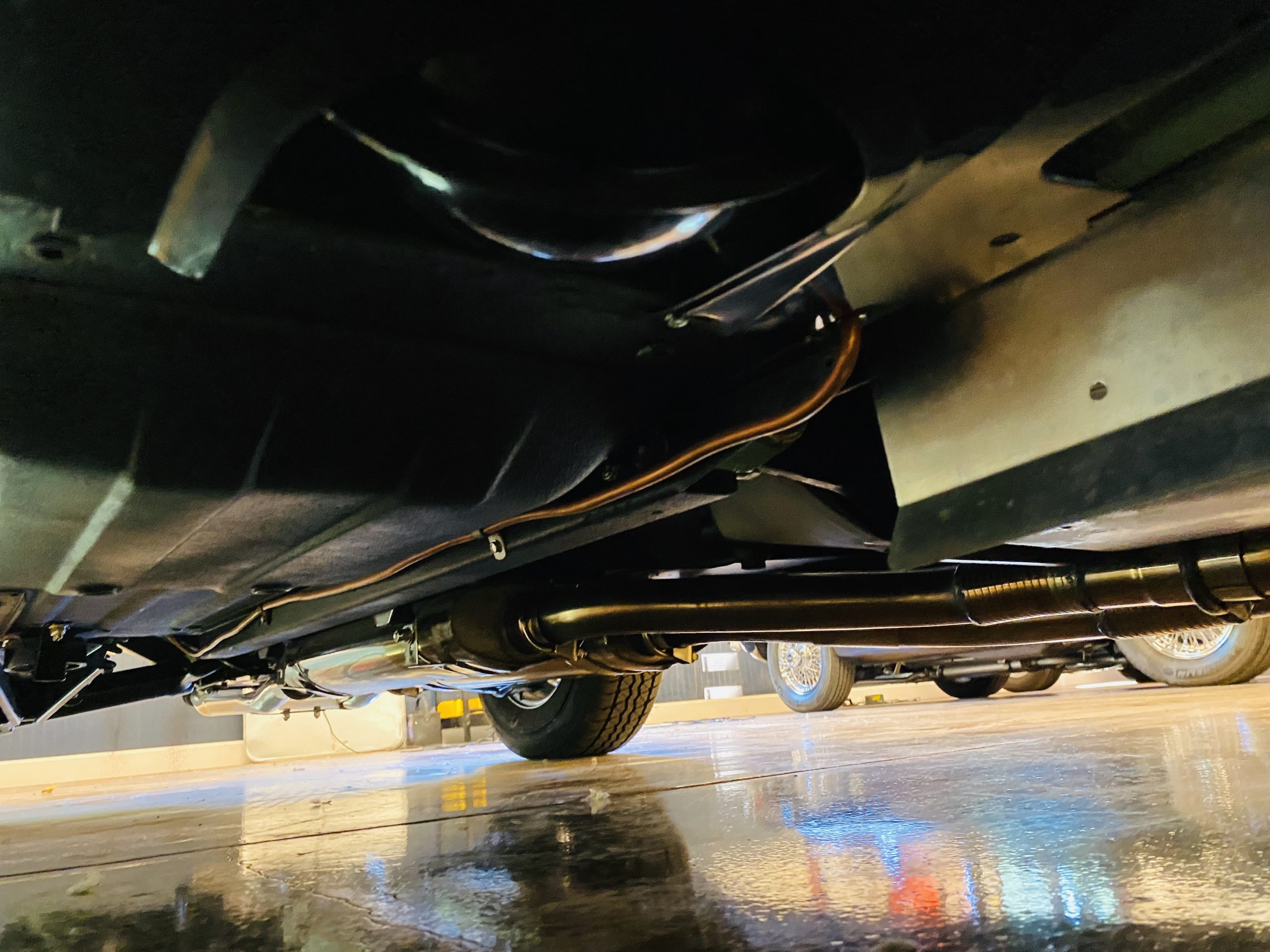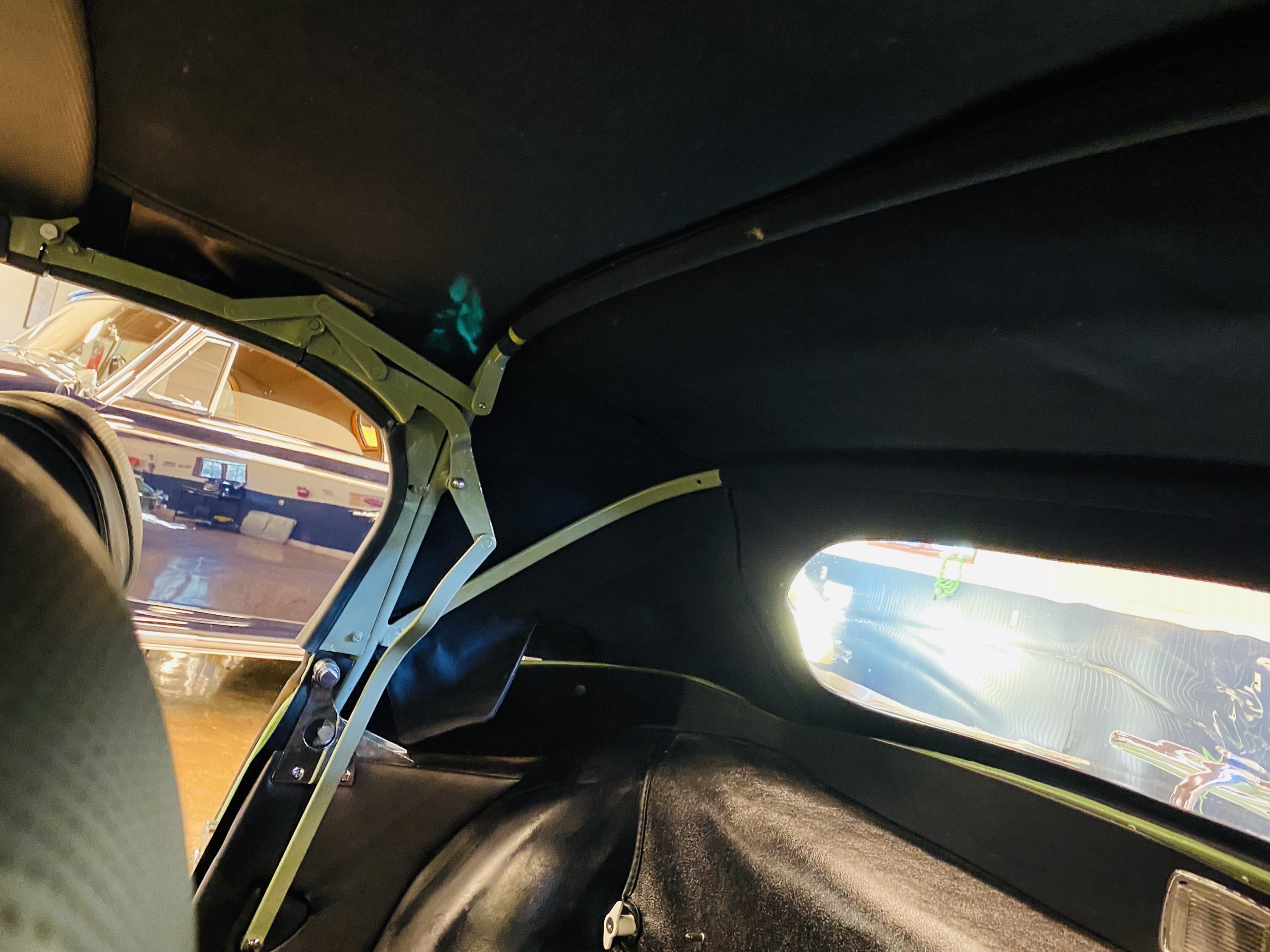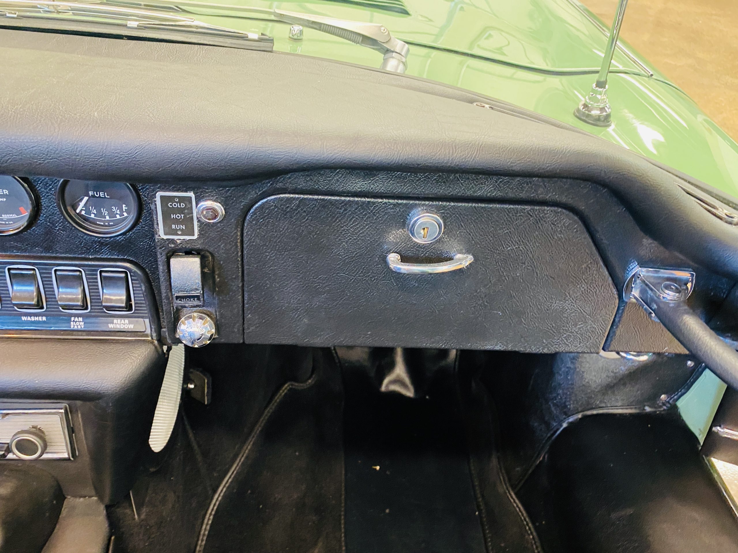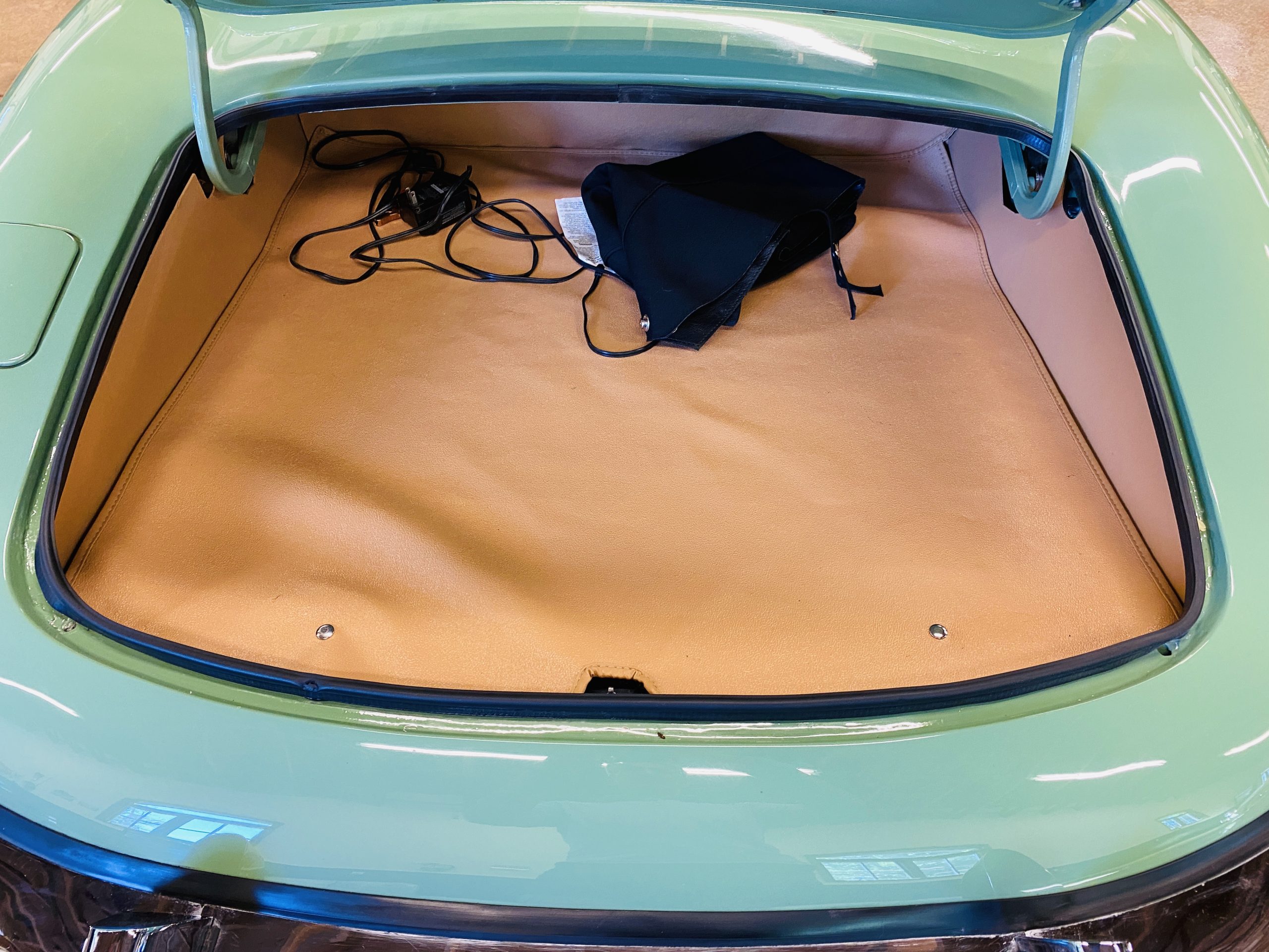 The gorgeous black leather interior and matching black carpeting is all new and without fault. New Jaguar branded seatbelts have been installed and everything in the interior is as-new. The dash, instruments and door panels are also either new or restored. Everything works as it should.