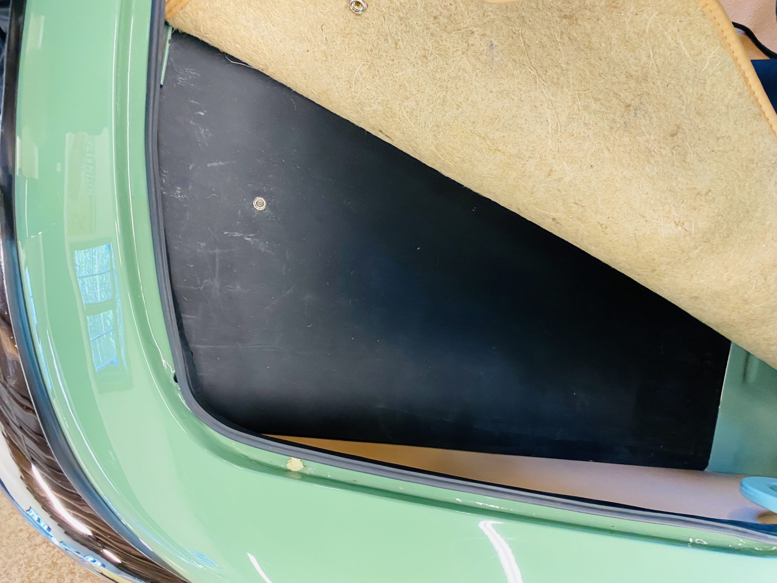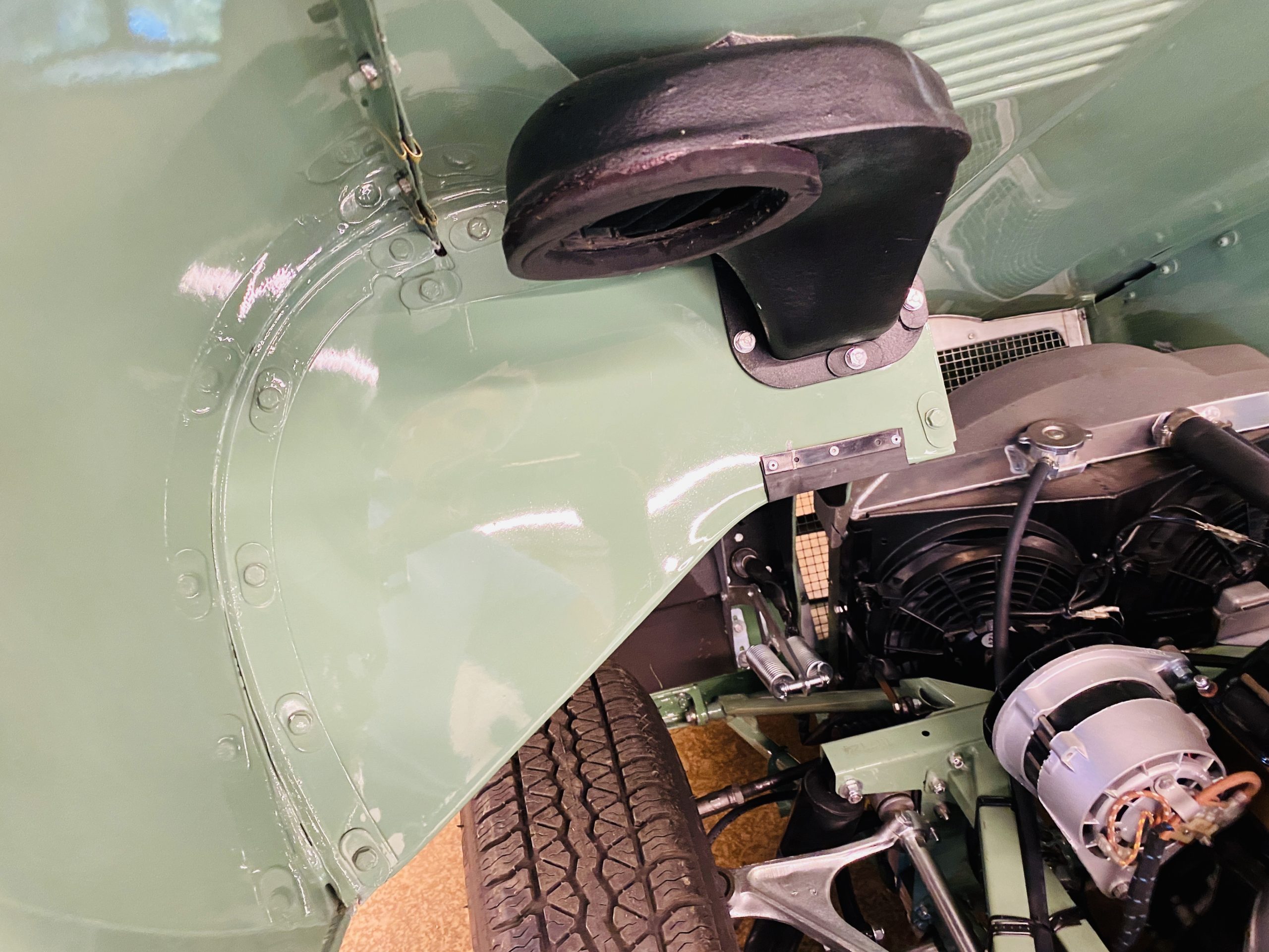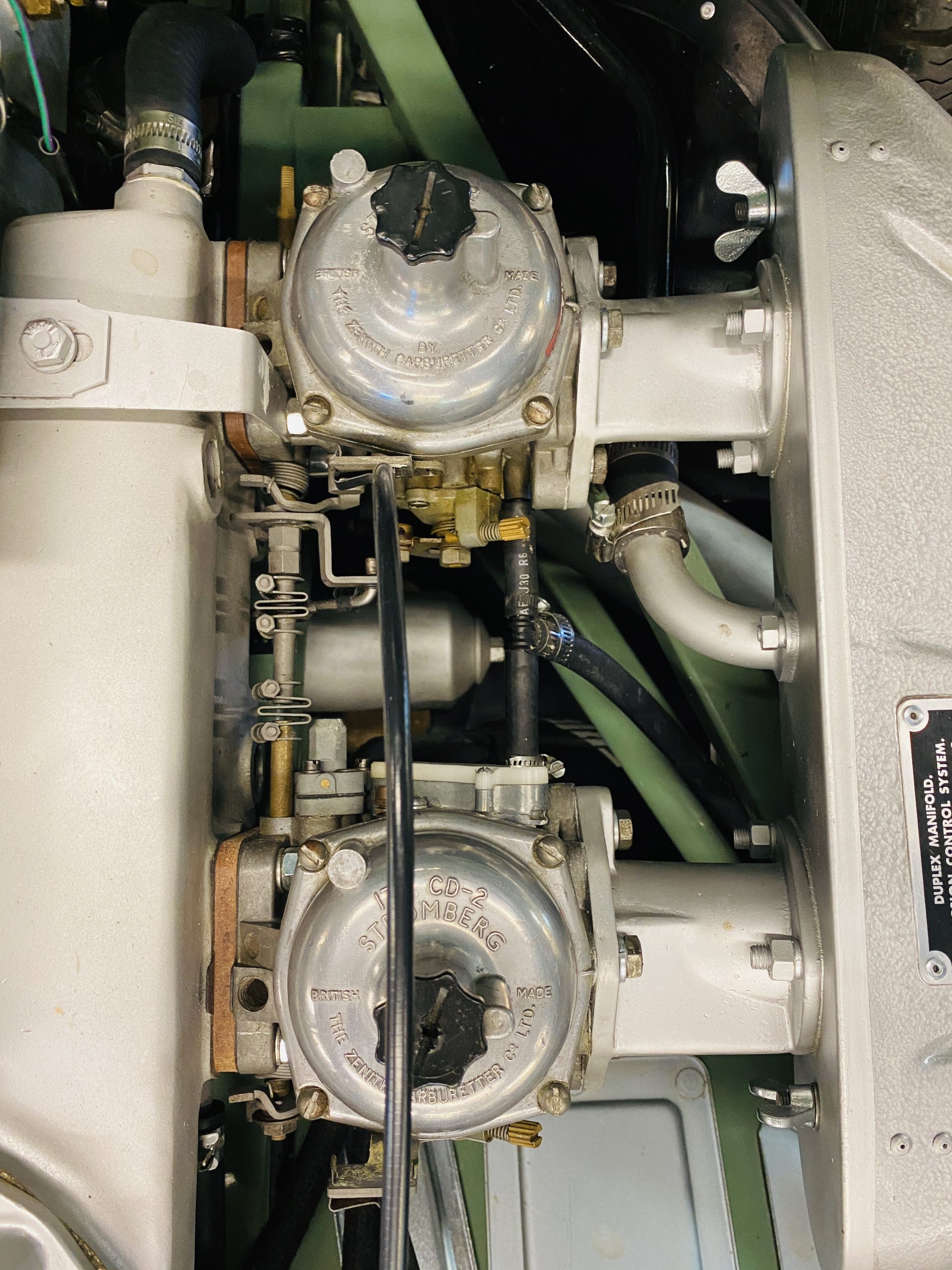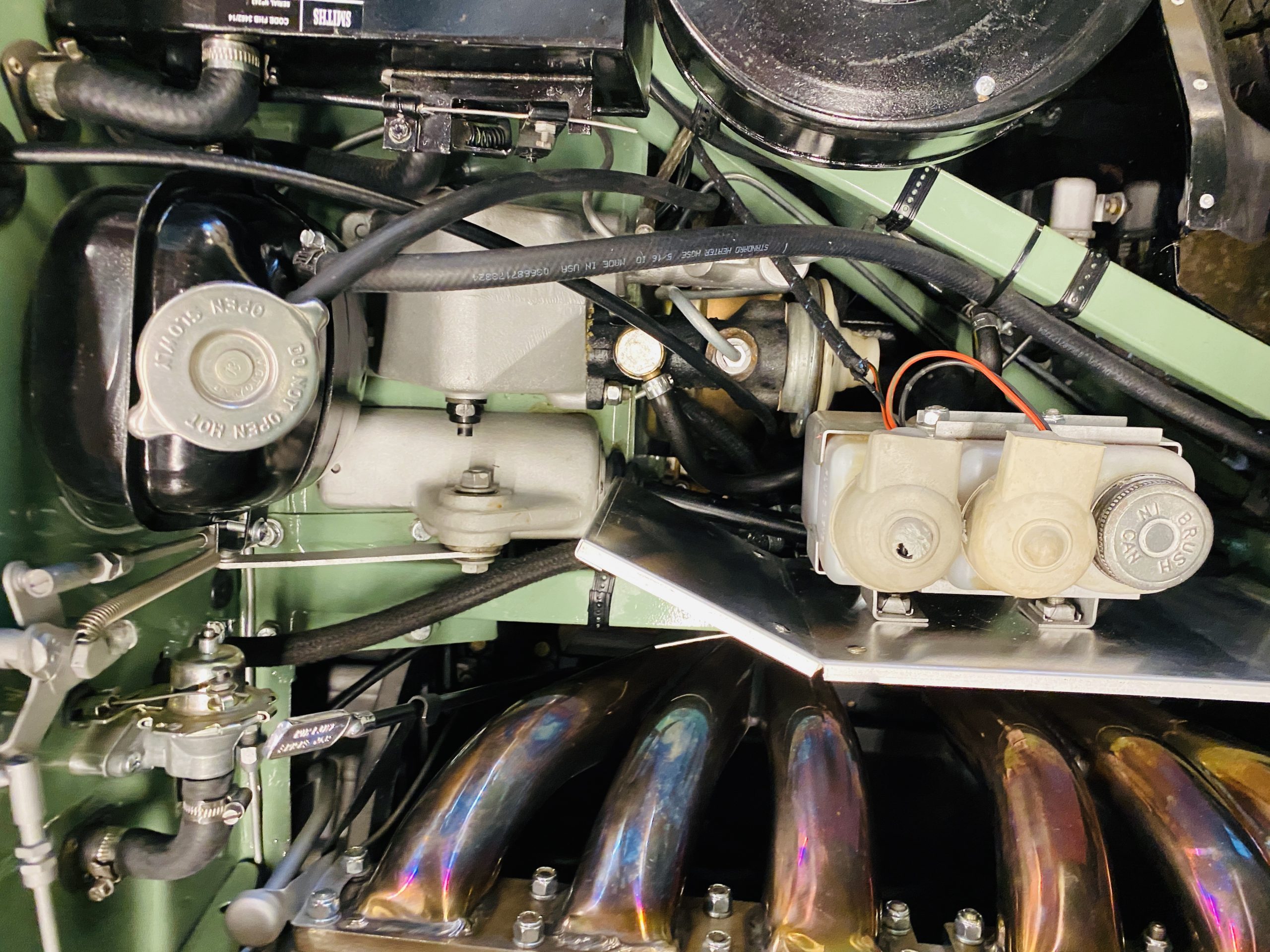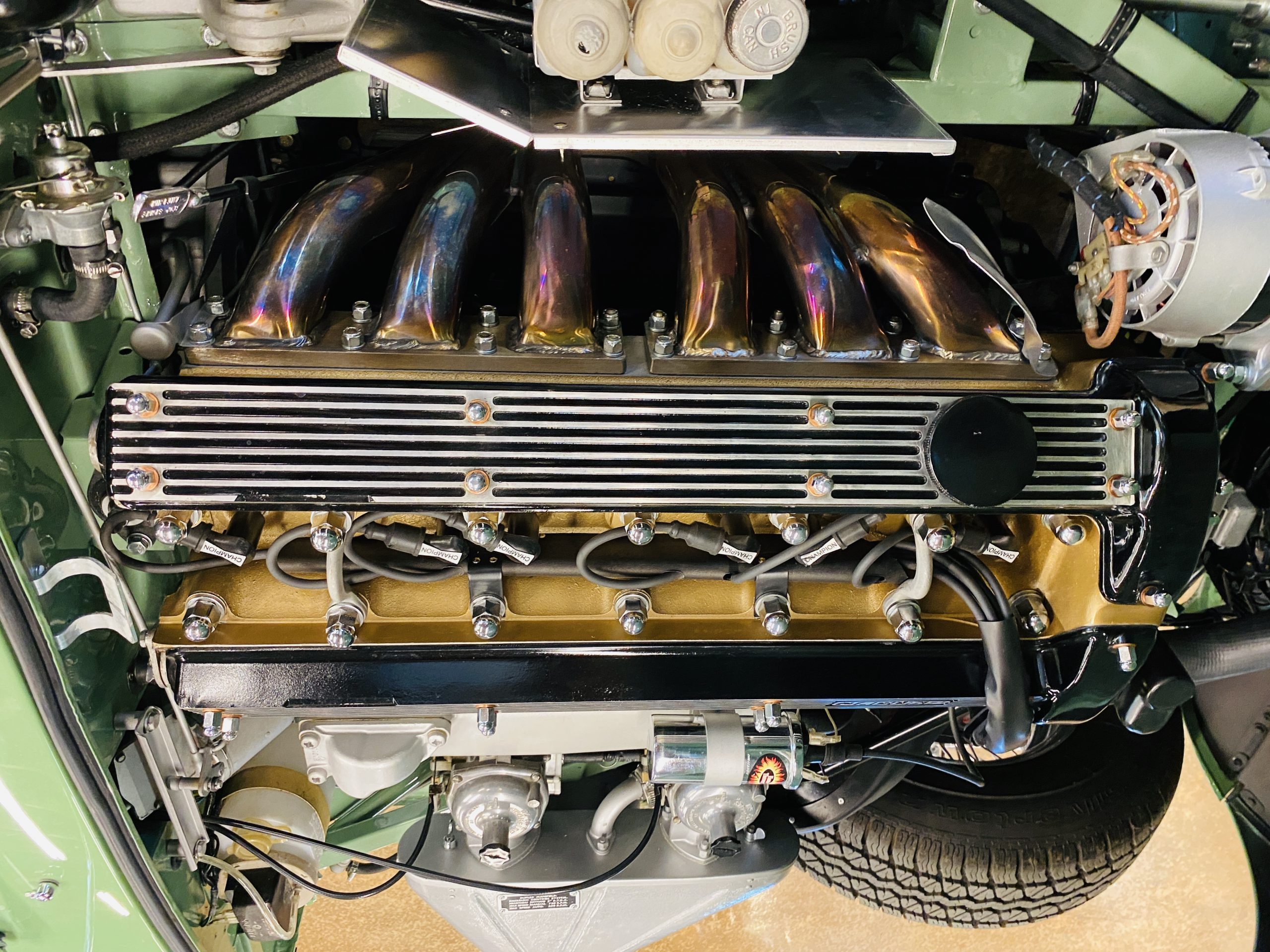 The gorgeous black leather interior and matching black carpeting is all new and without fault. New Jaguar branded seatbelts have been installed and everything in the interior is as-new. The dash, instruments and door panels are also either new or restored. Everything works as it should.